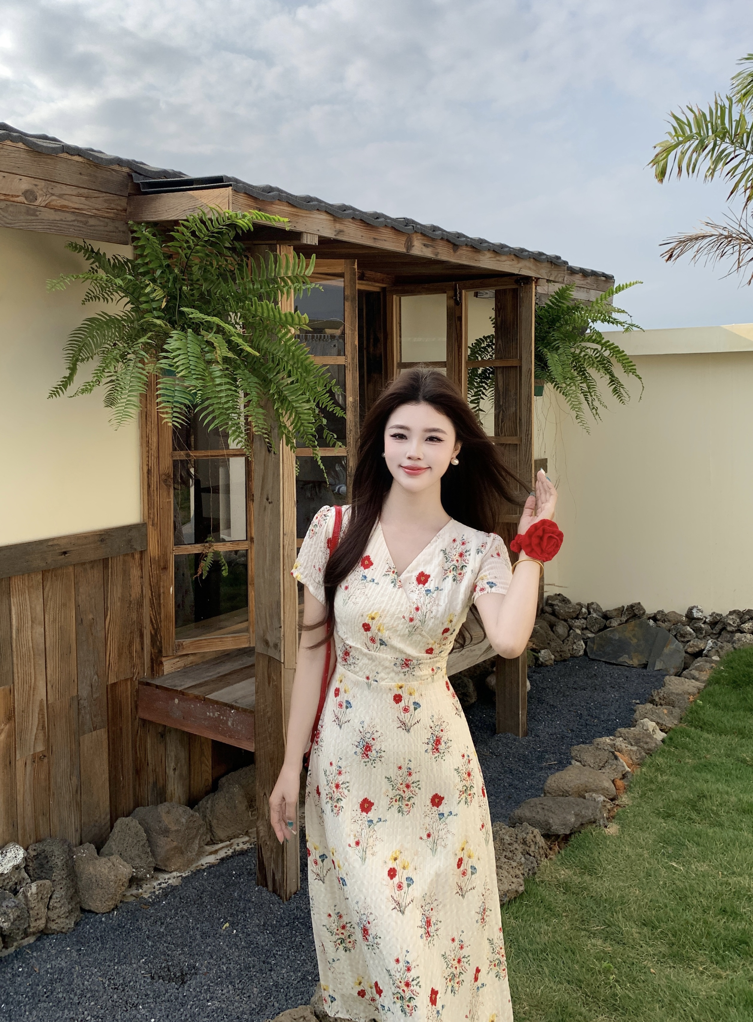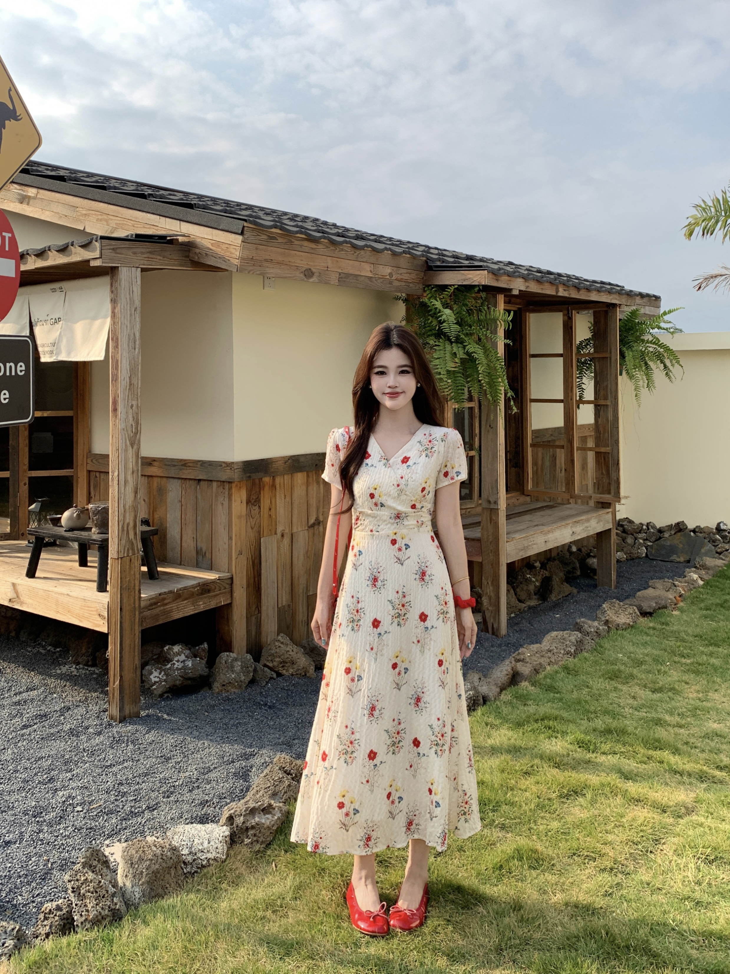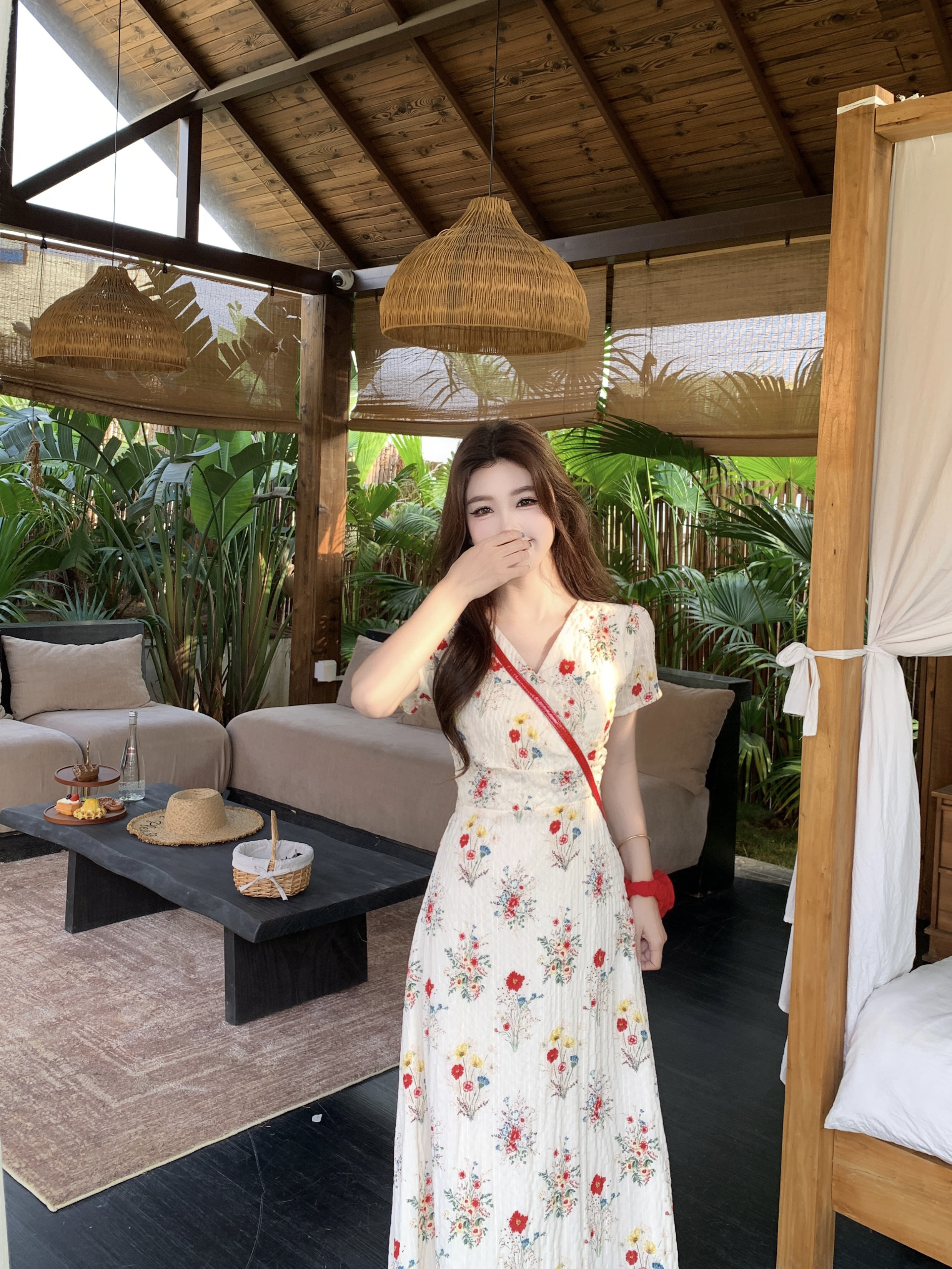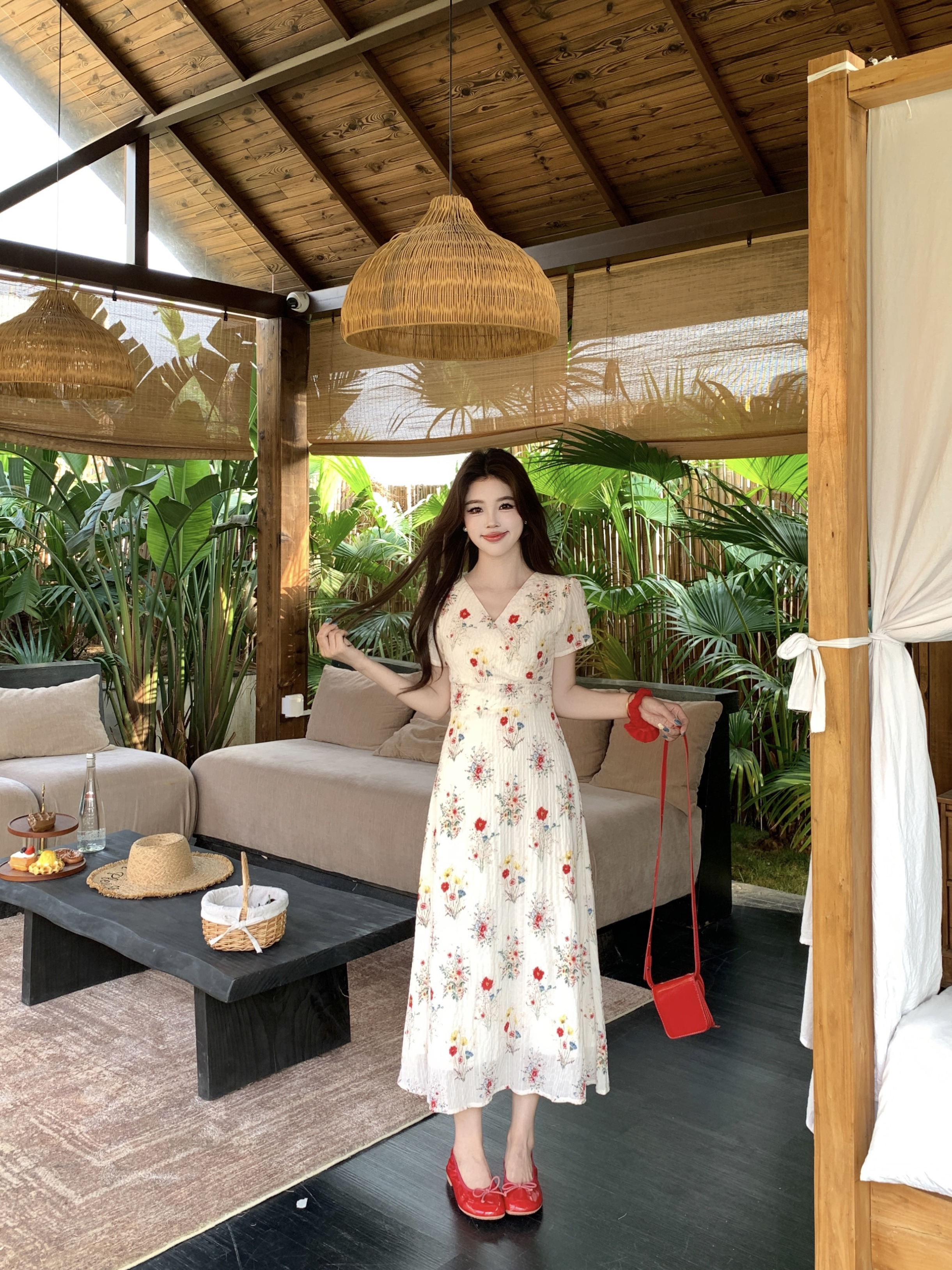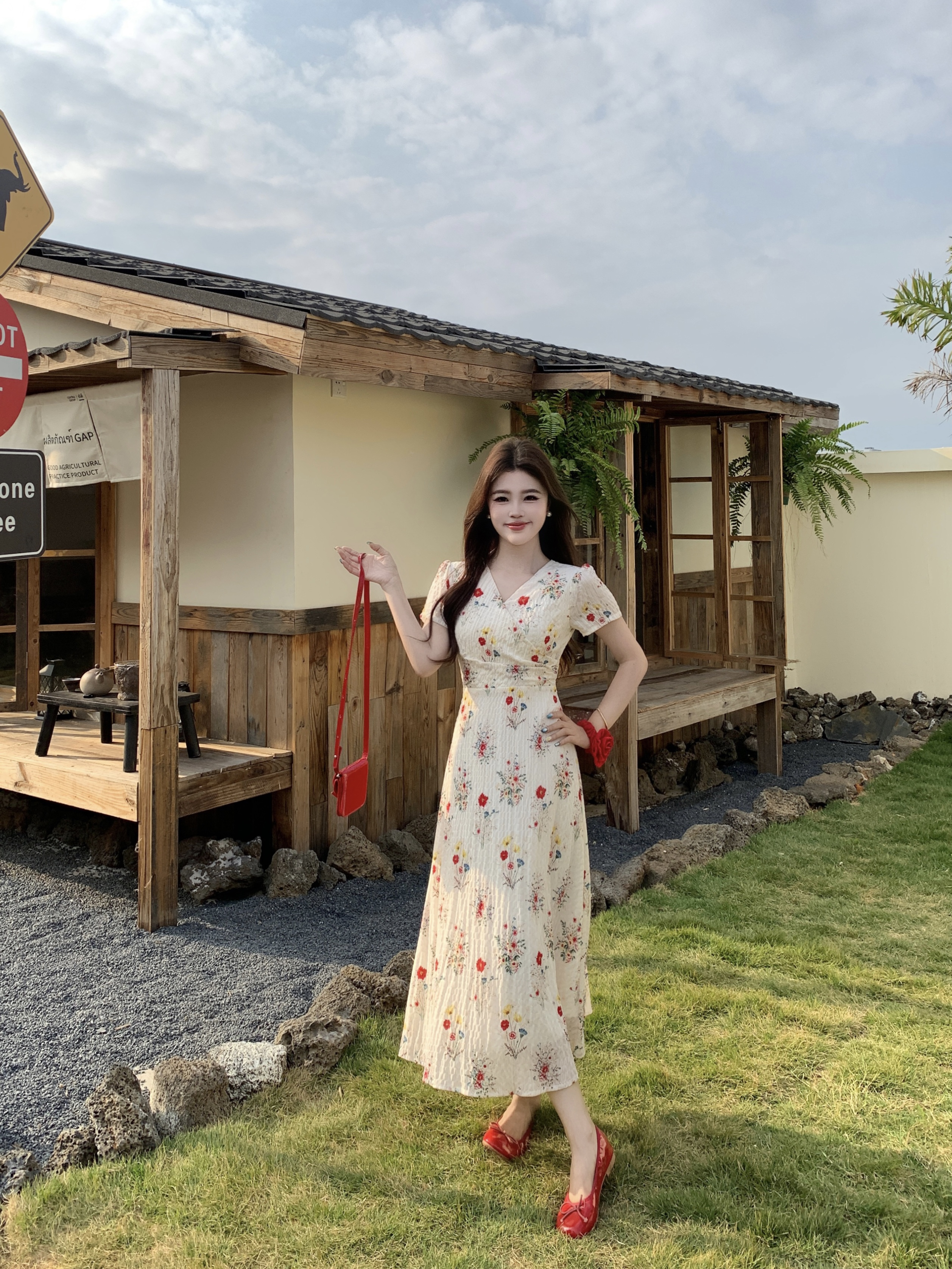 RY2286# 大码石榴花语碎花明媚大方温柔法式初恋小众显瘦气质中长款连衣裙