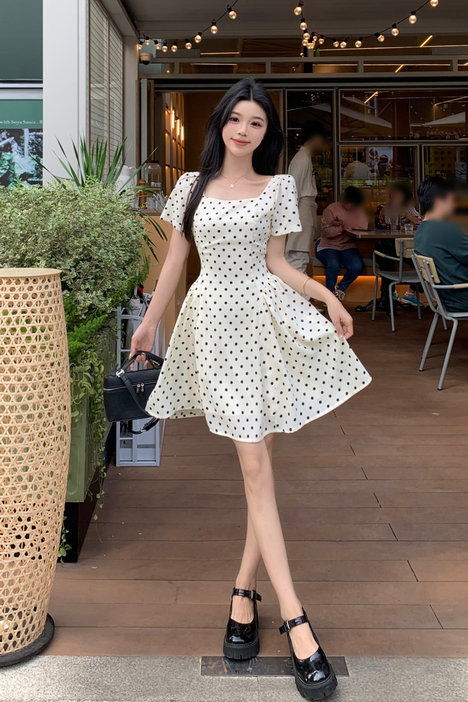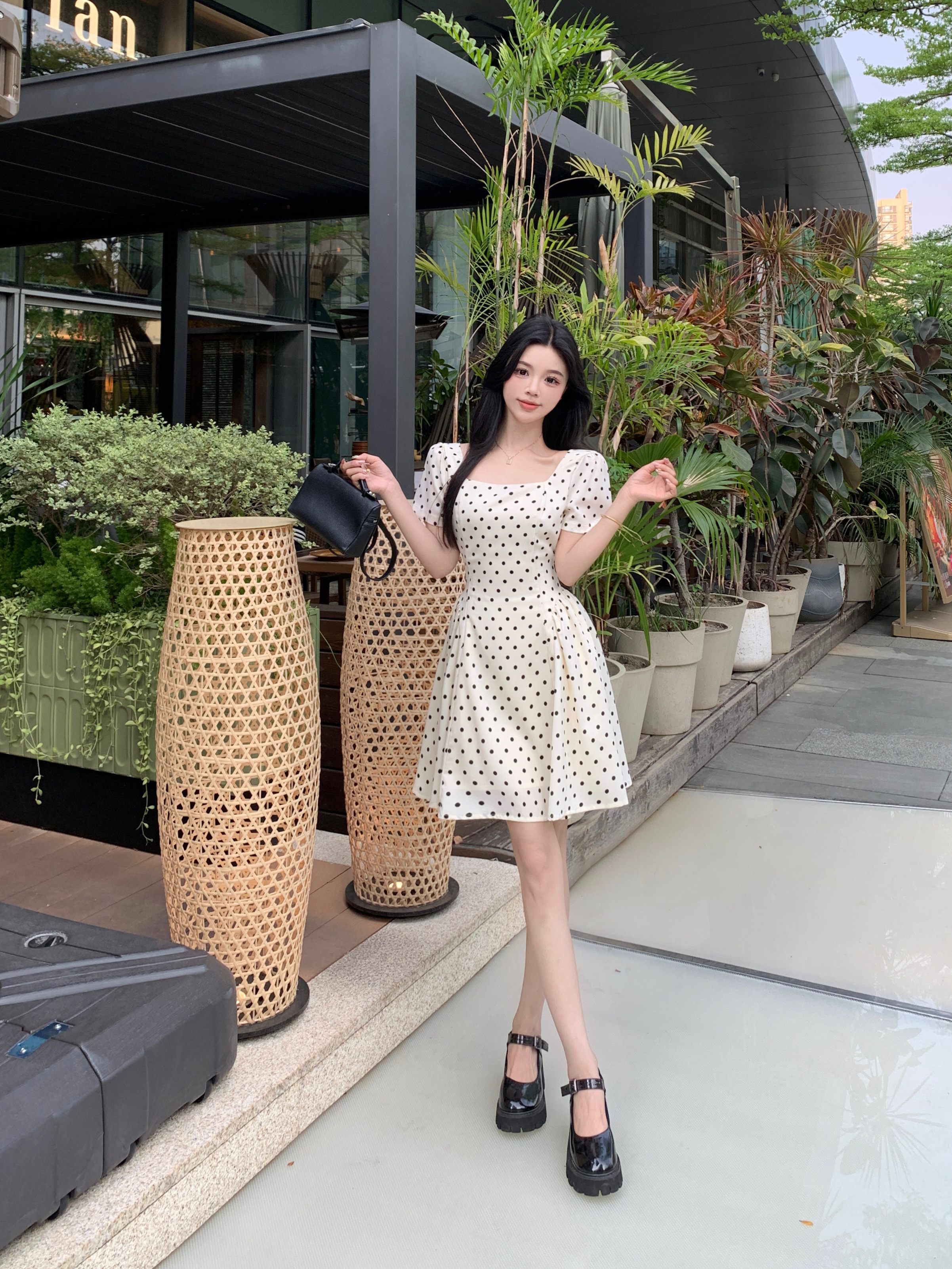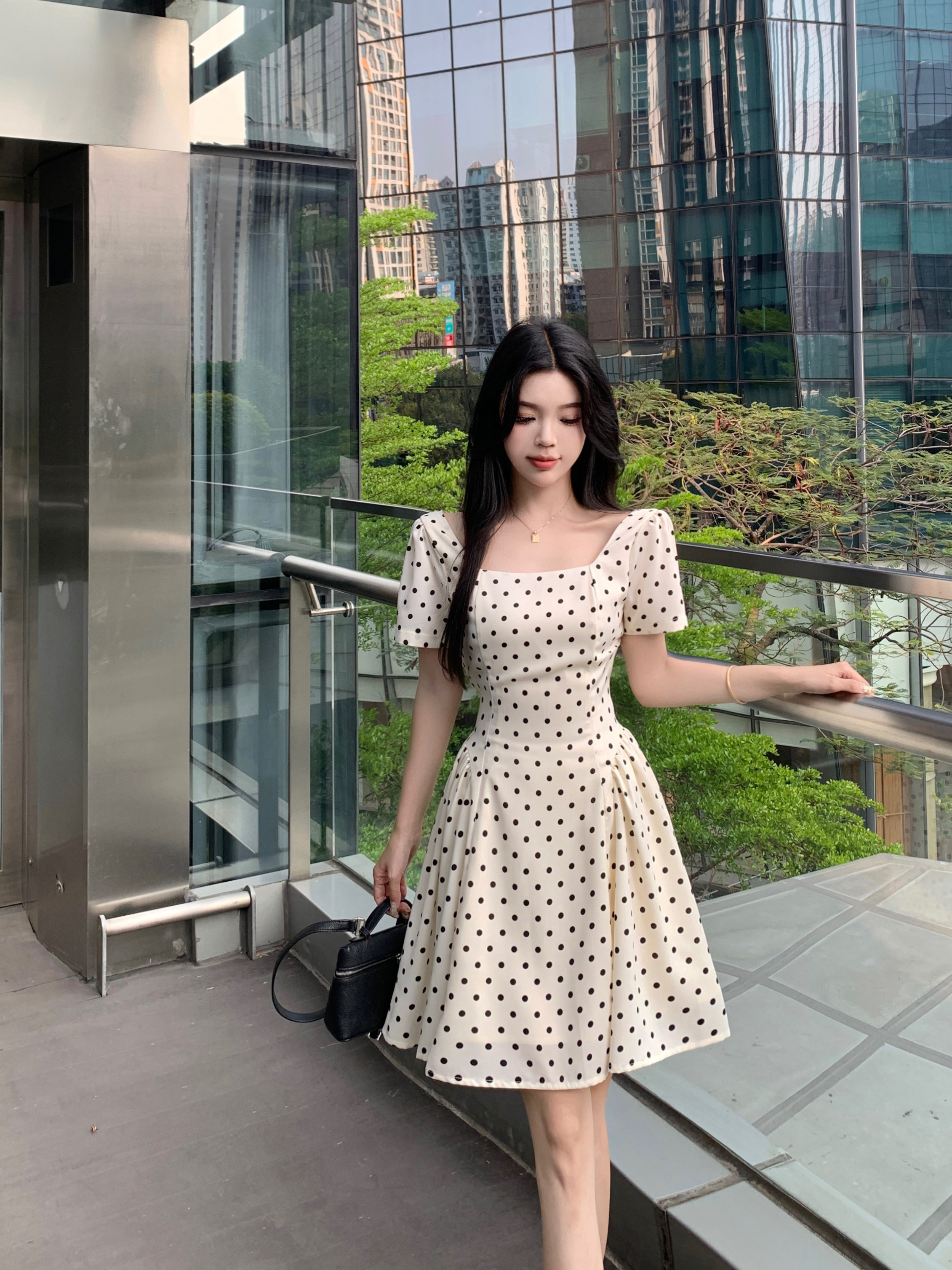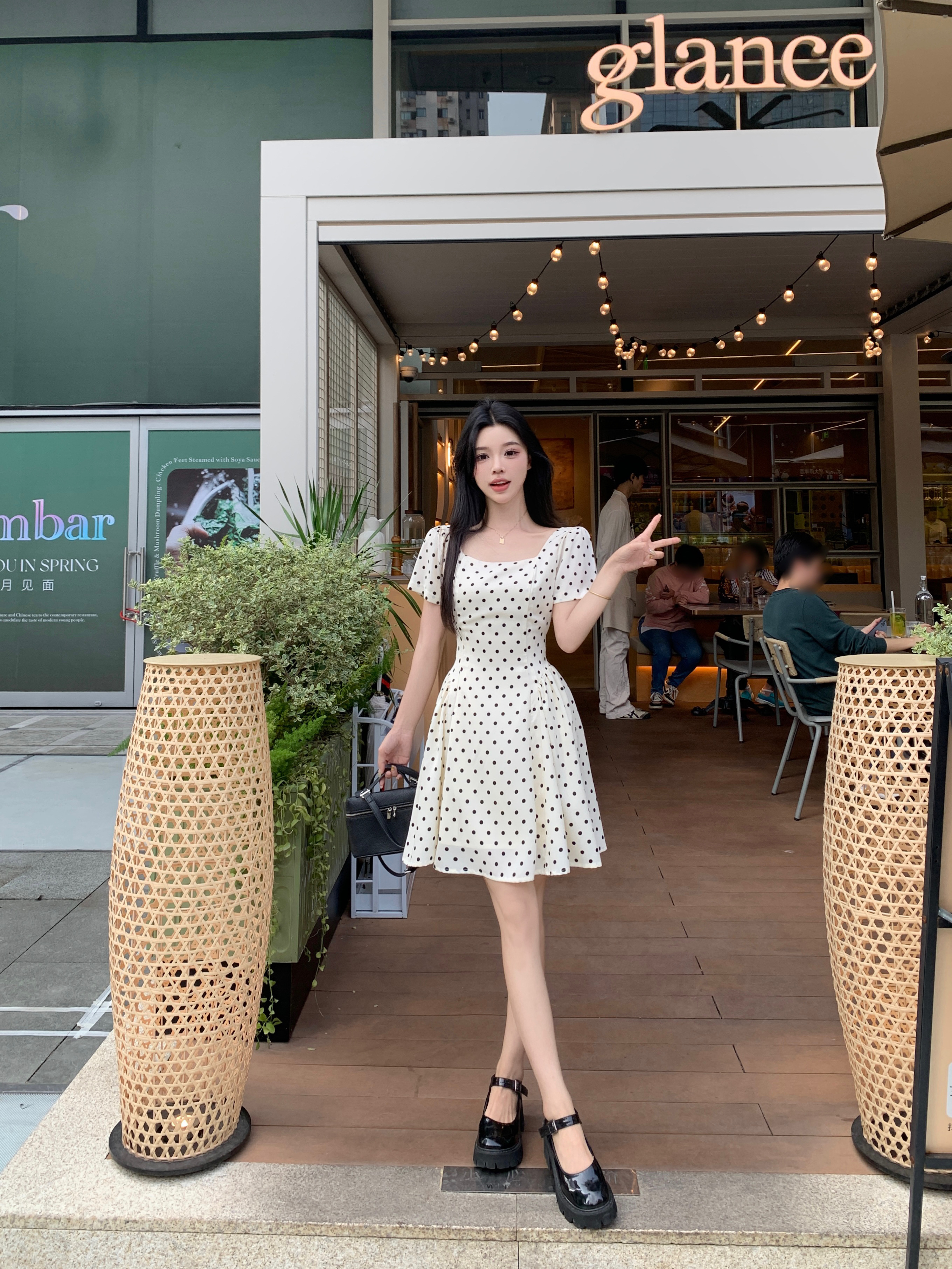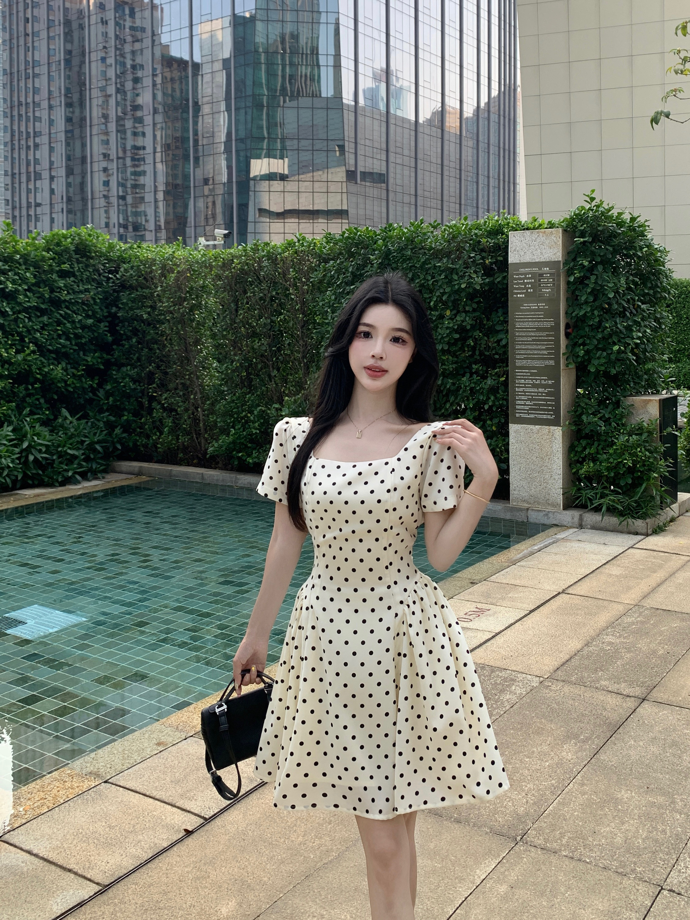 RY2289# 大码气质方领波点连衣裙美人滤镜2026年新款夏季收腰显瘦a字裙女