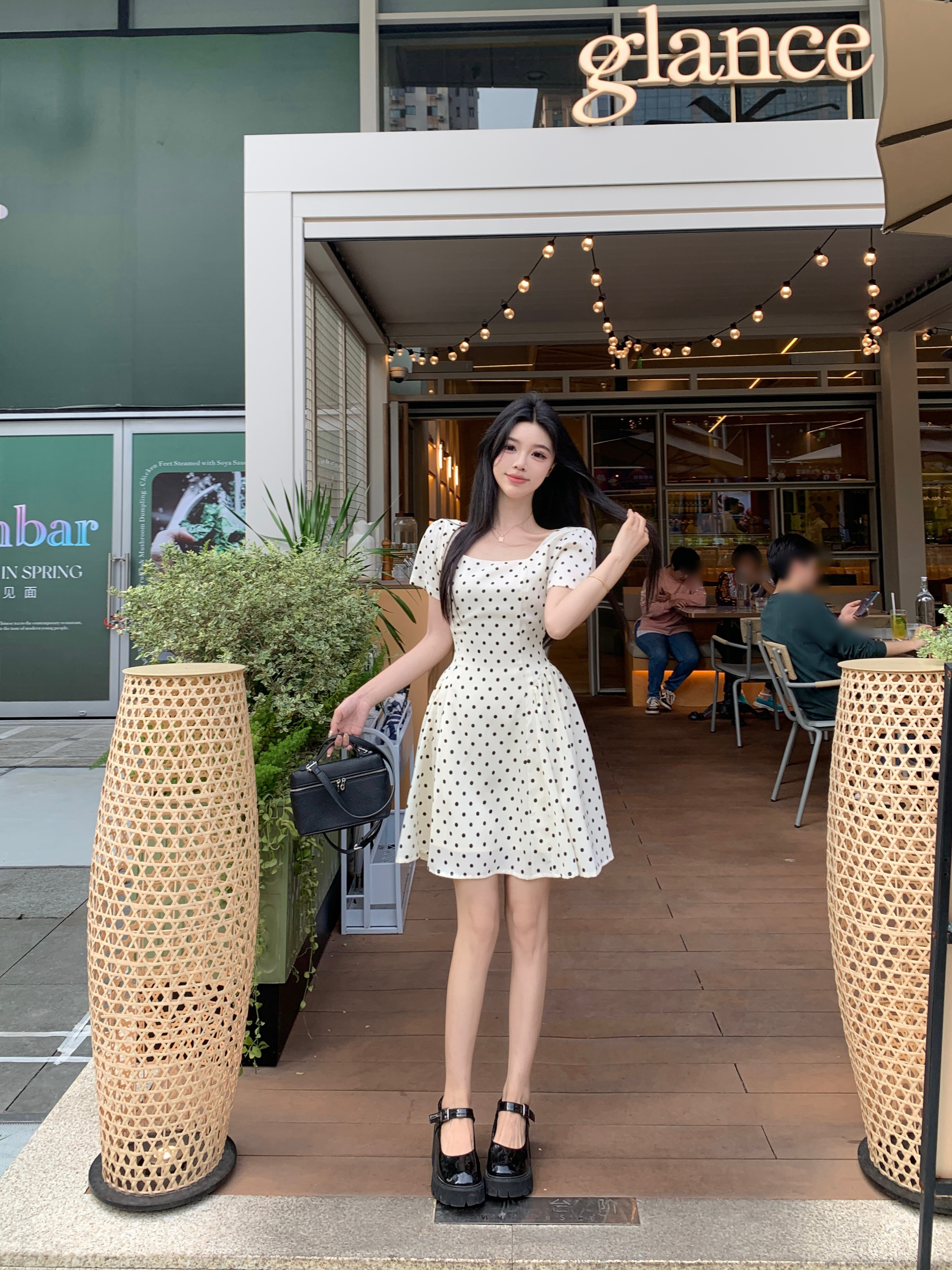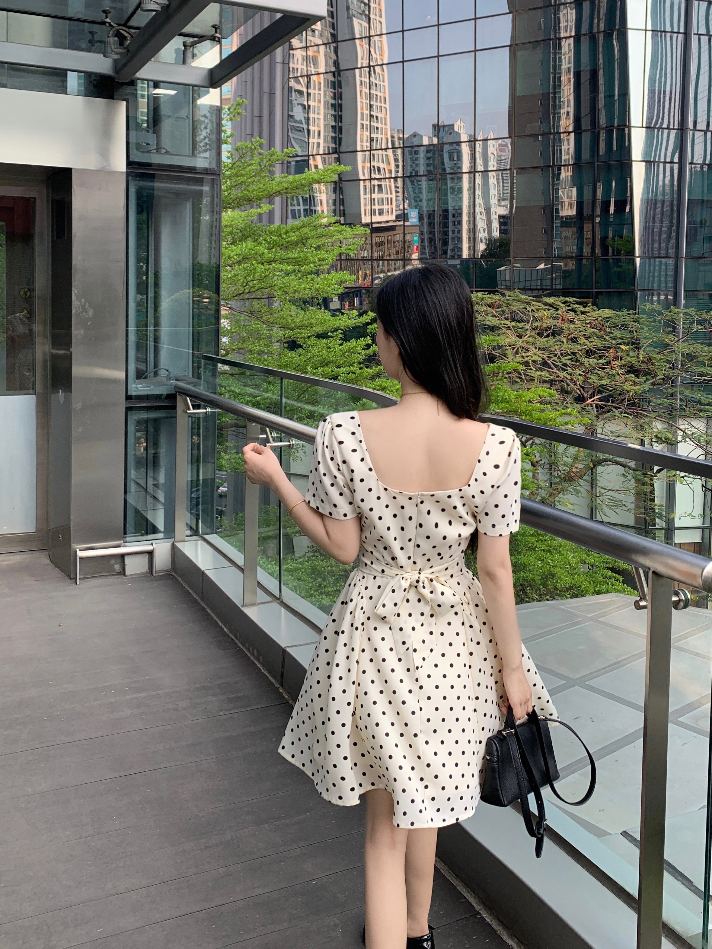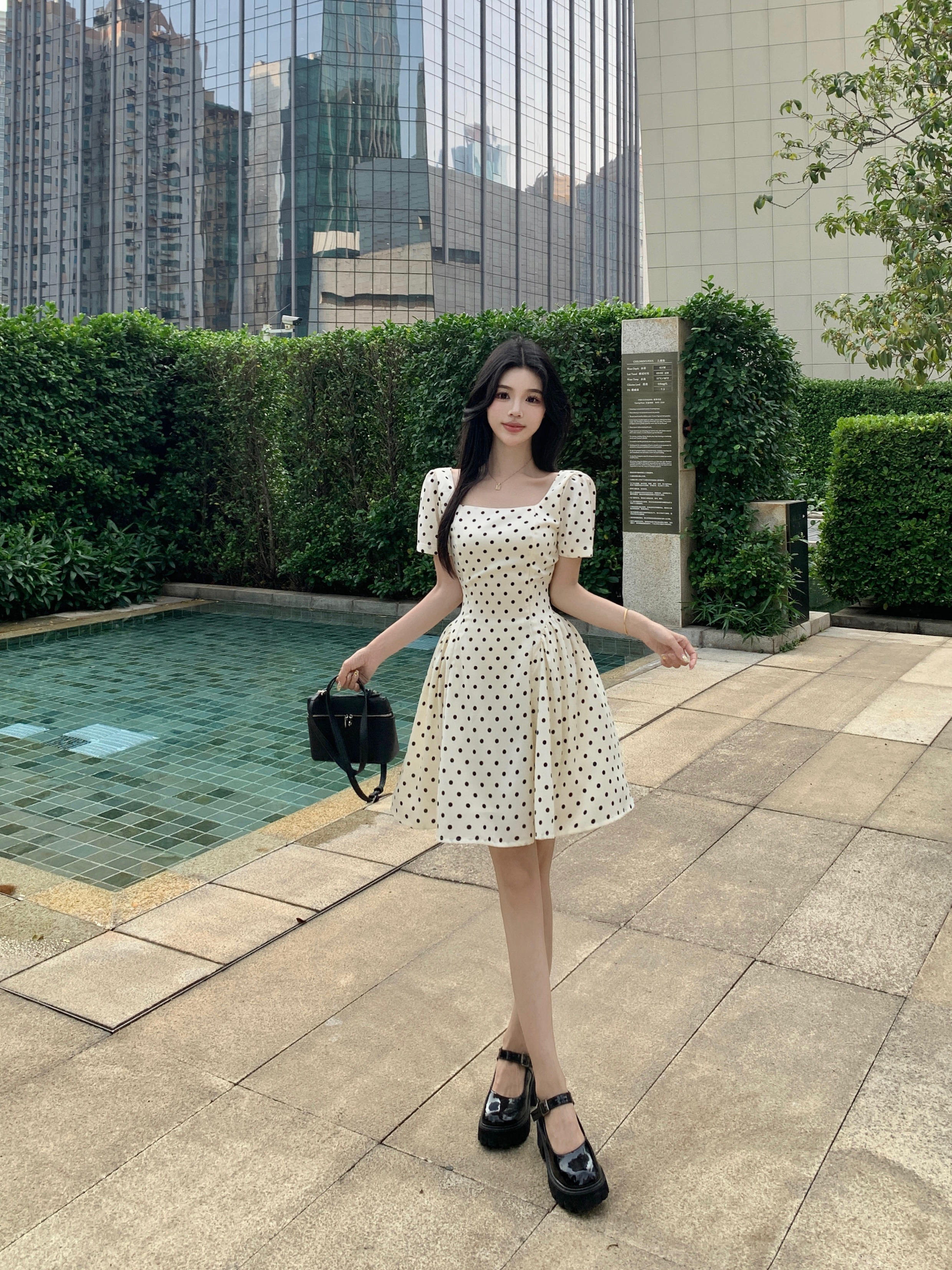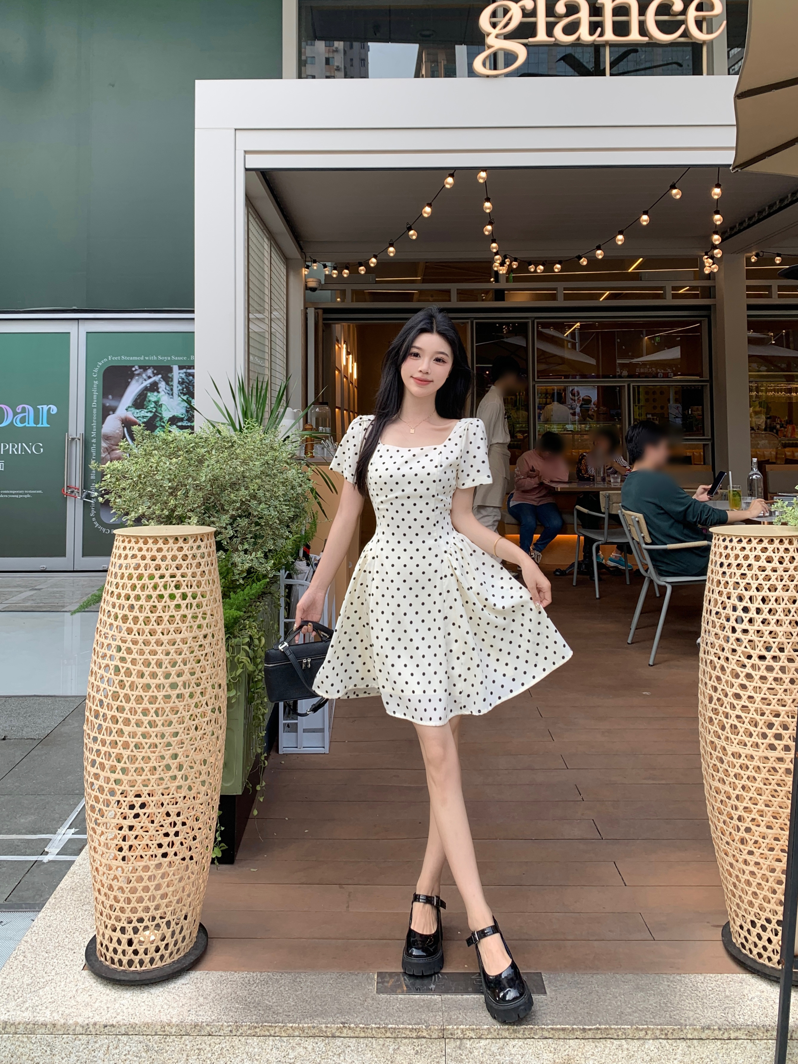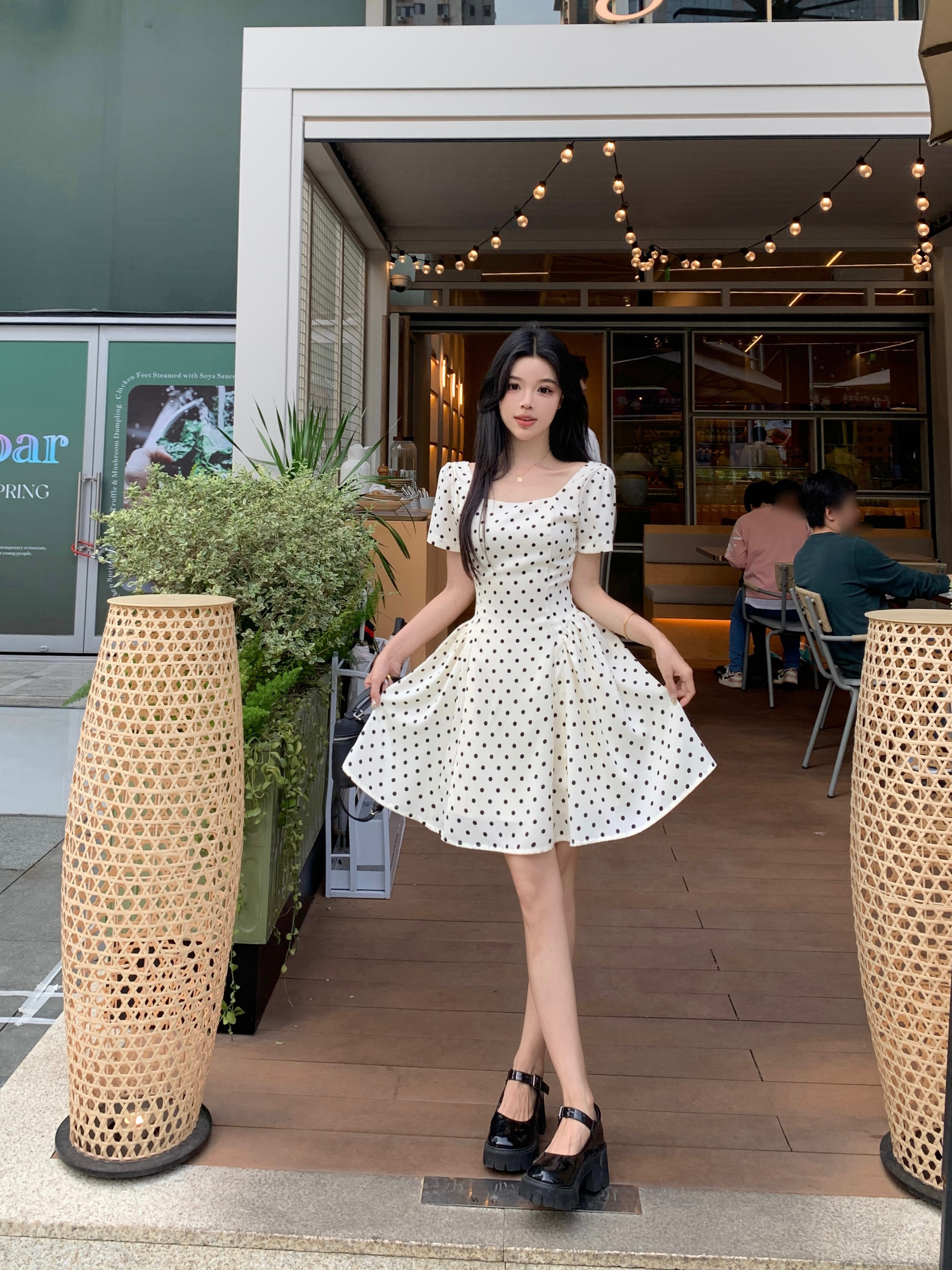 RY2289# 大码气质方领波点连衣裙美人滤镜2026年新款夏季收腰显瘦a字裙女