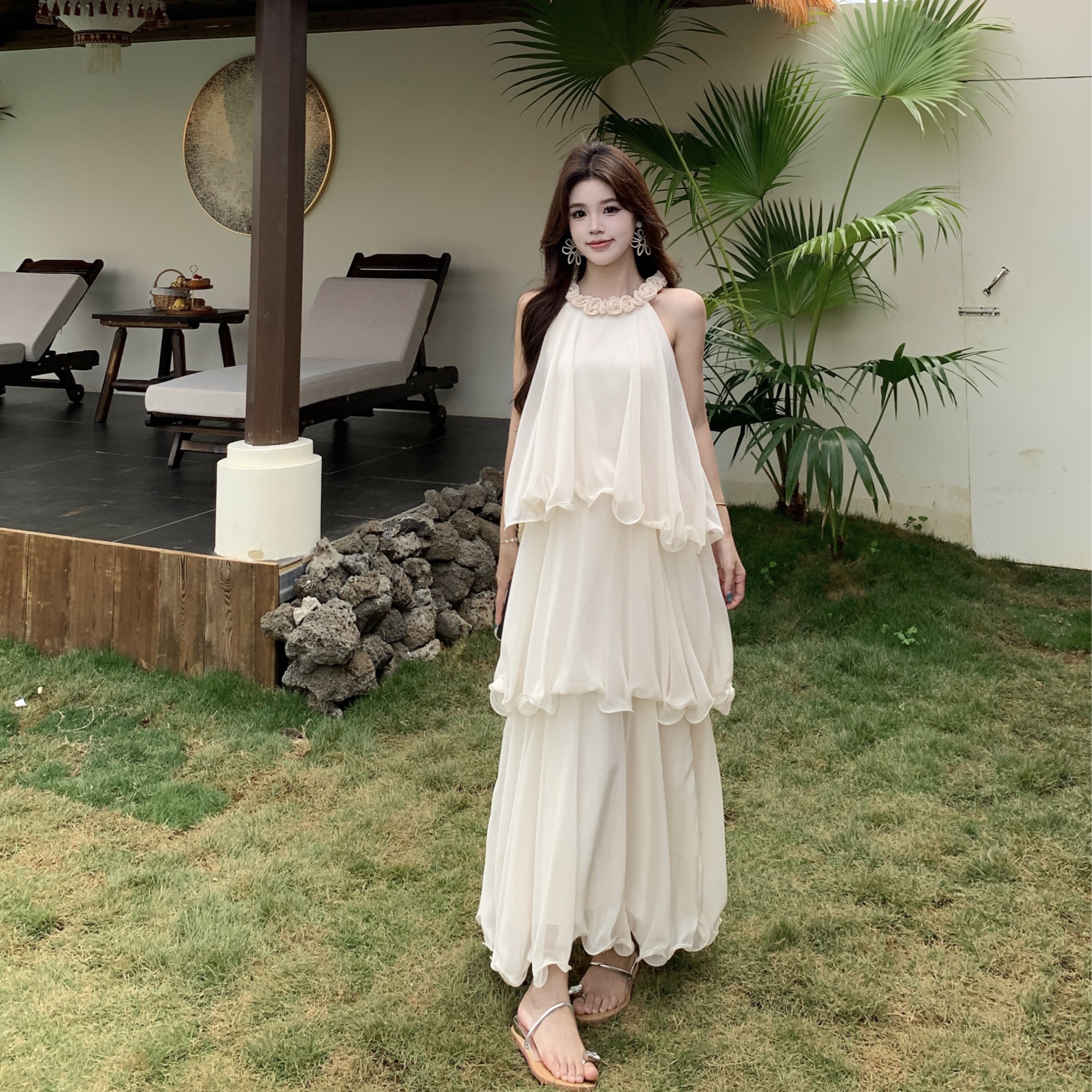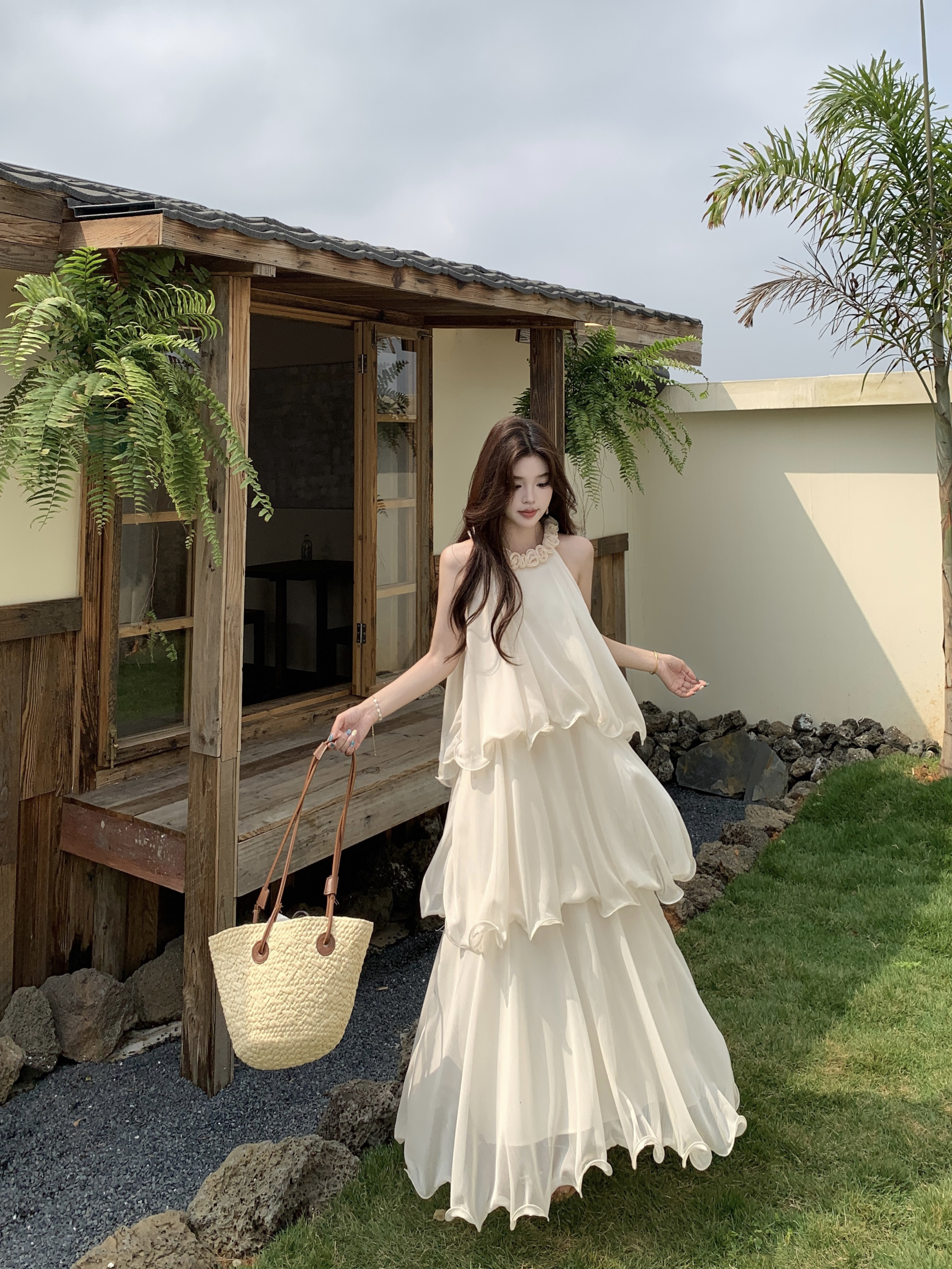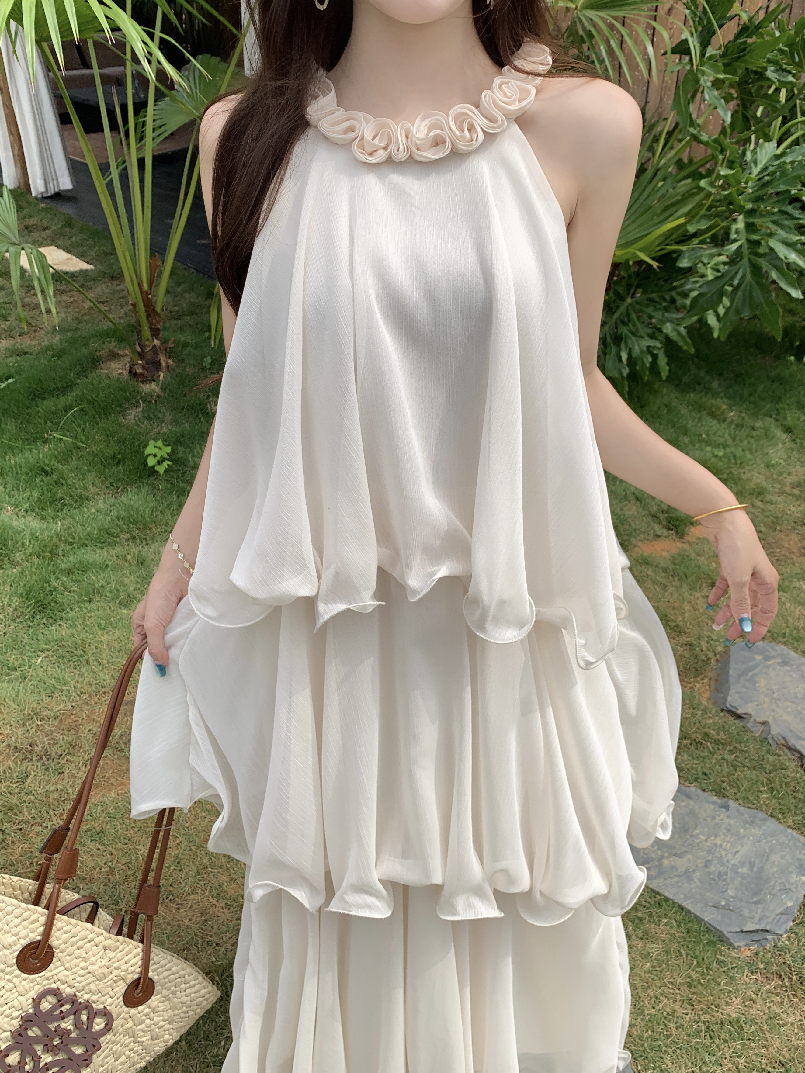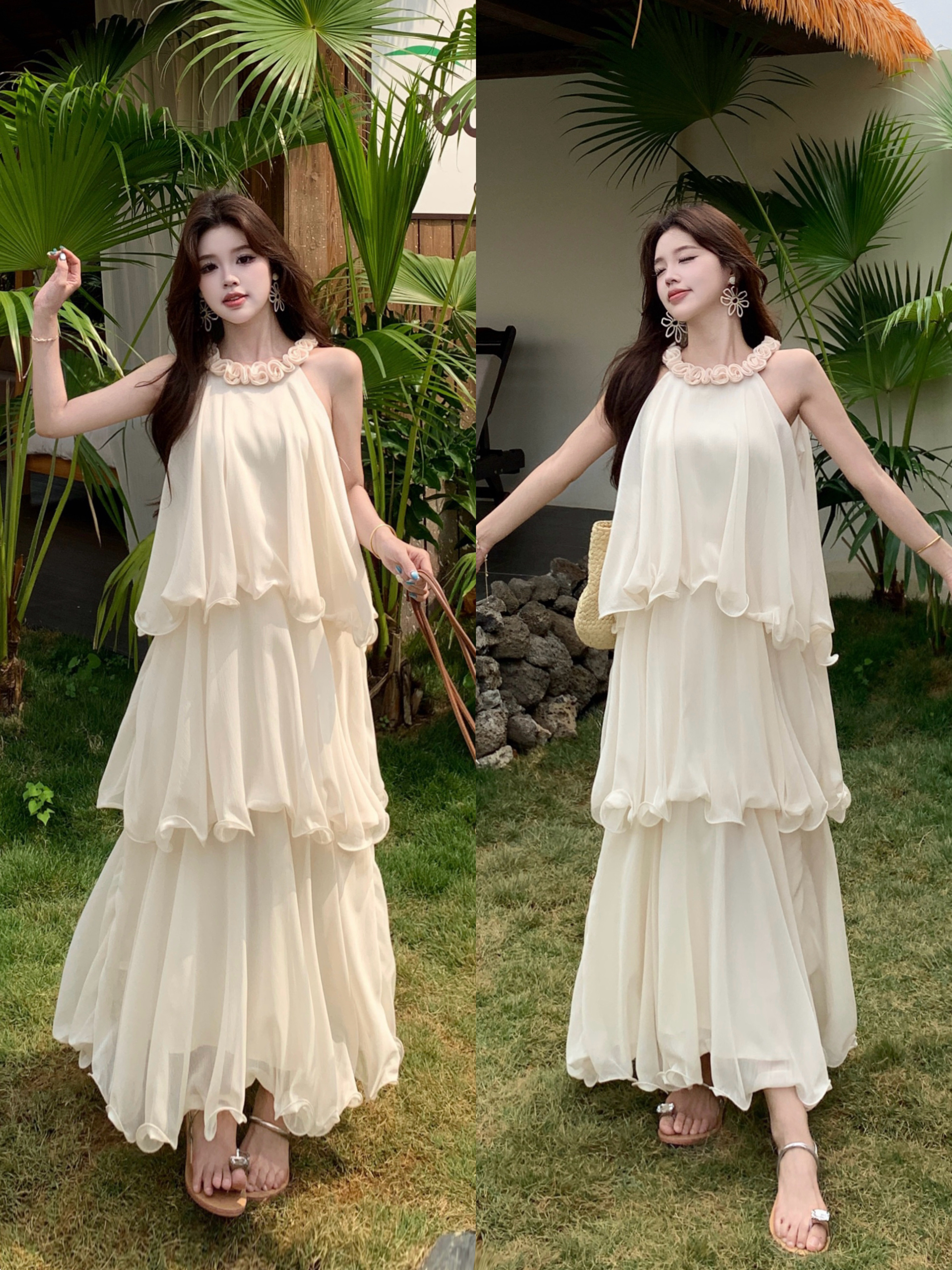 RY2290# 大码法式度假风名媛千金雪纺蛋糕裙气质无袖连衣裙女夏季超仙裙子