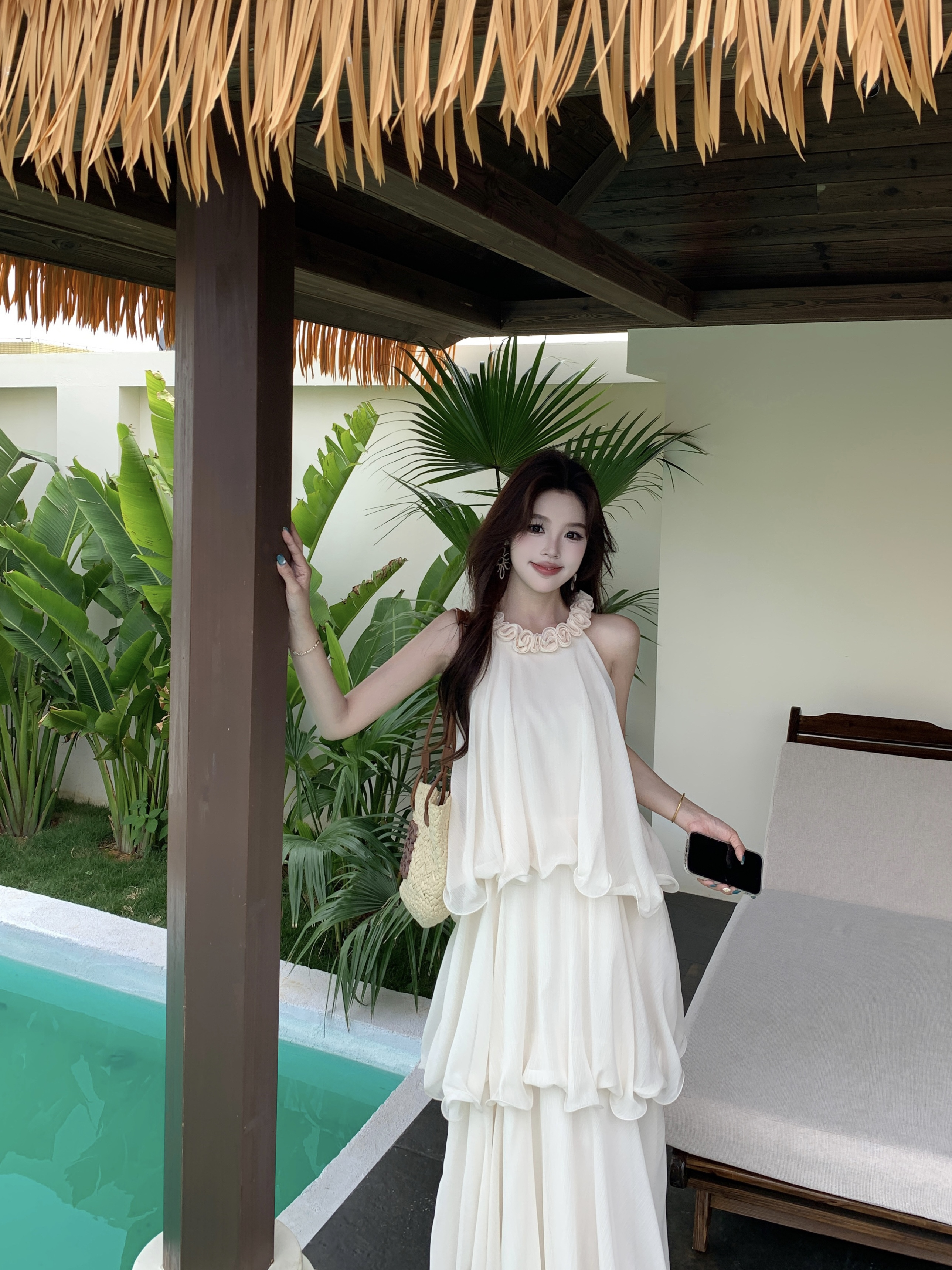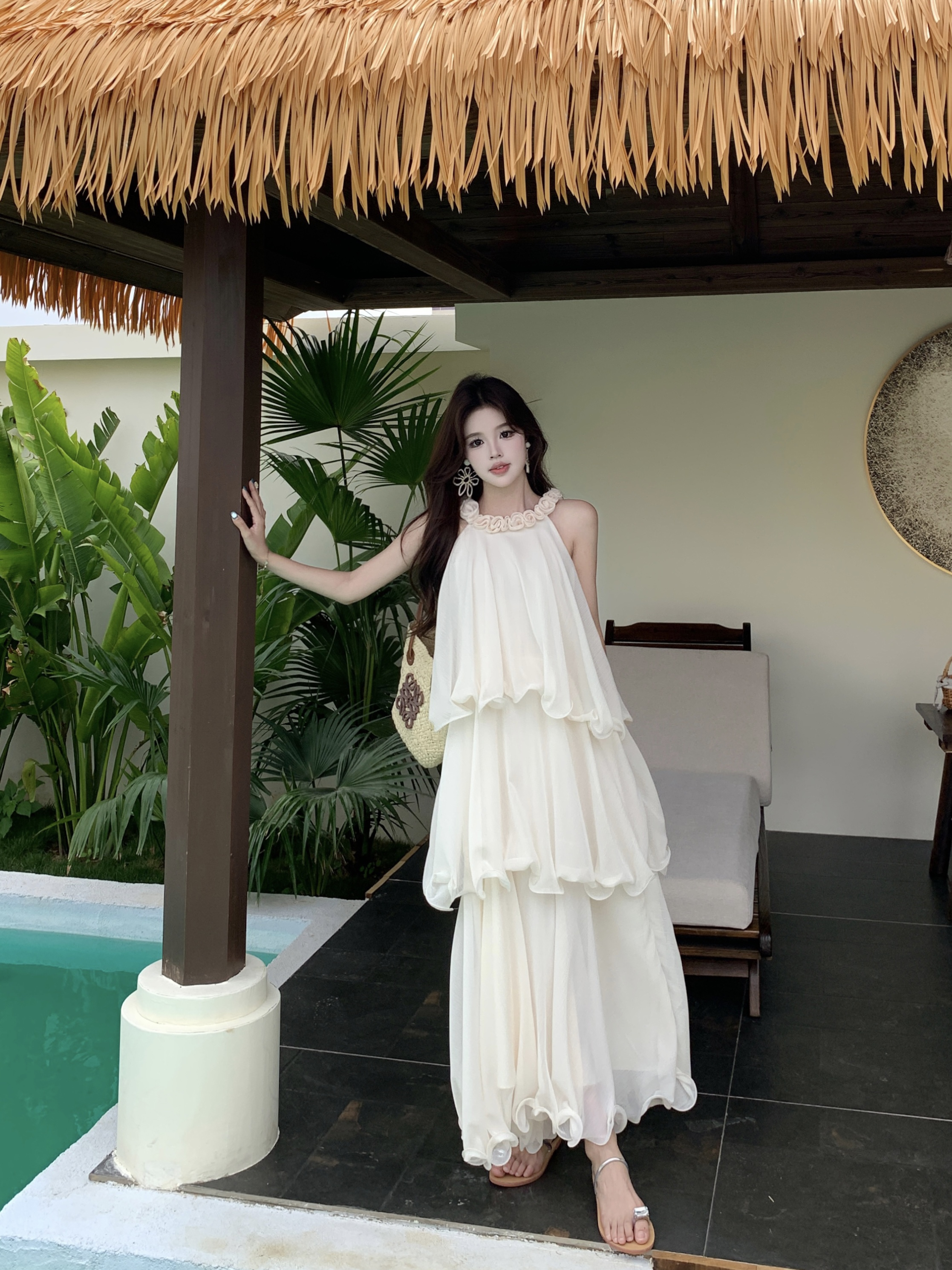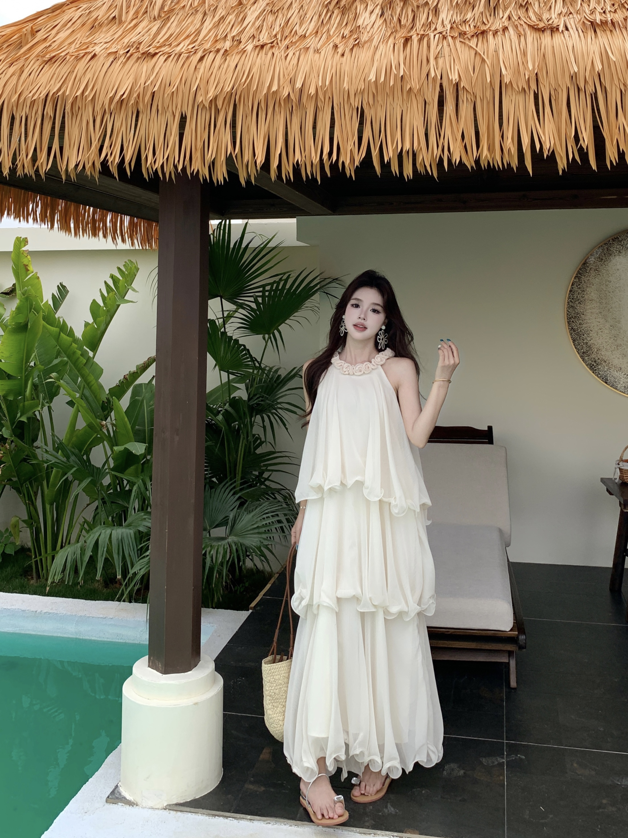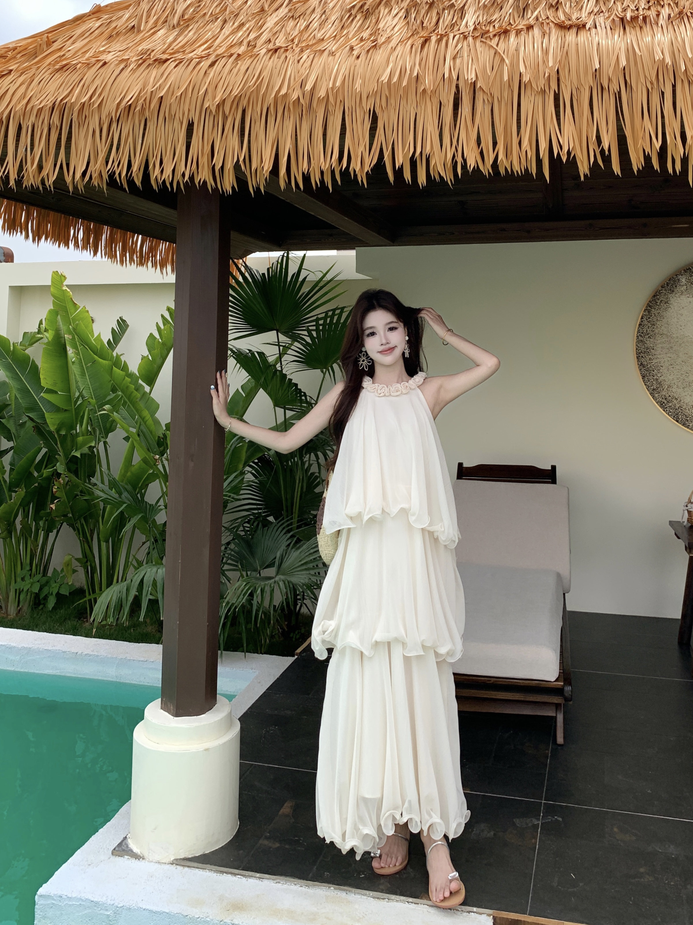 RY2290# 大码法式度假风名媛千金雪纺蛋糕裙气质无袖连衣裙女夏季超仙裙子