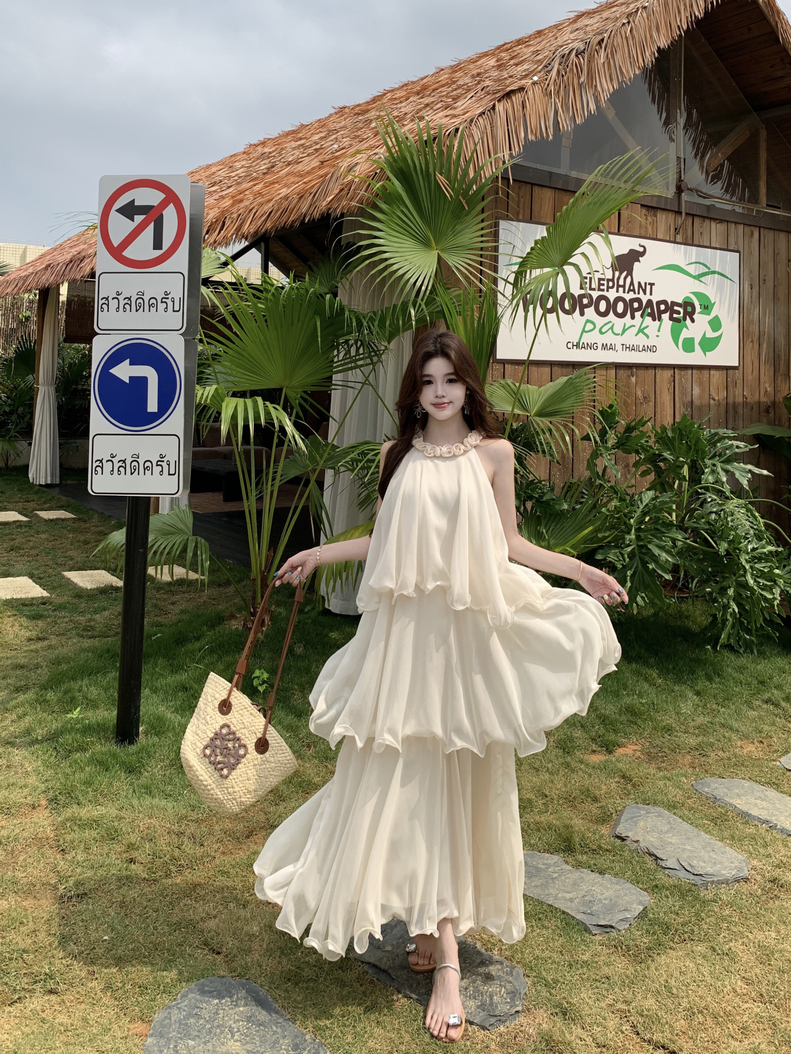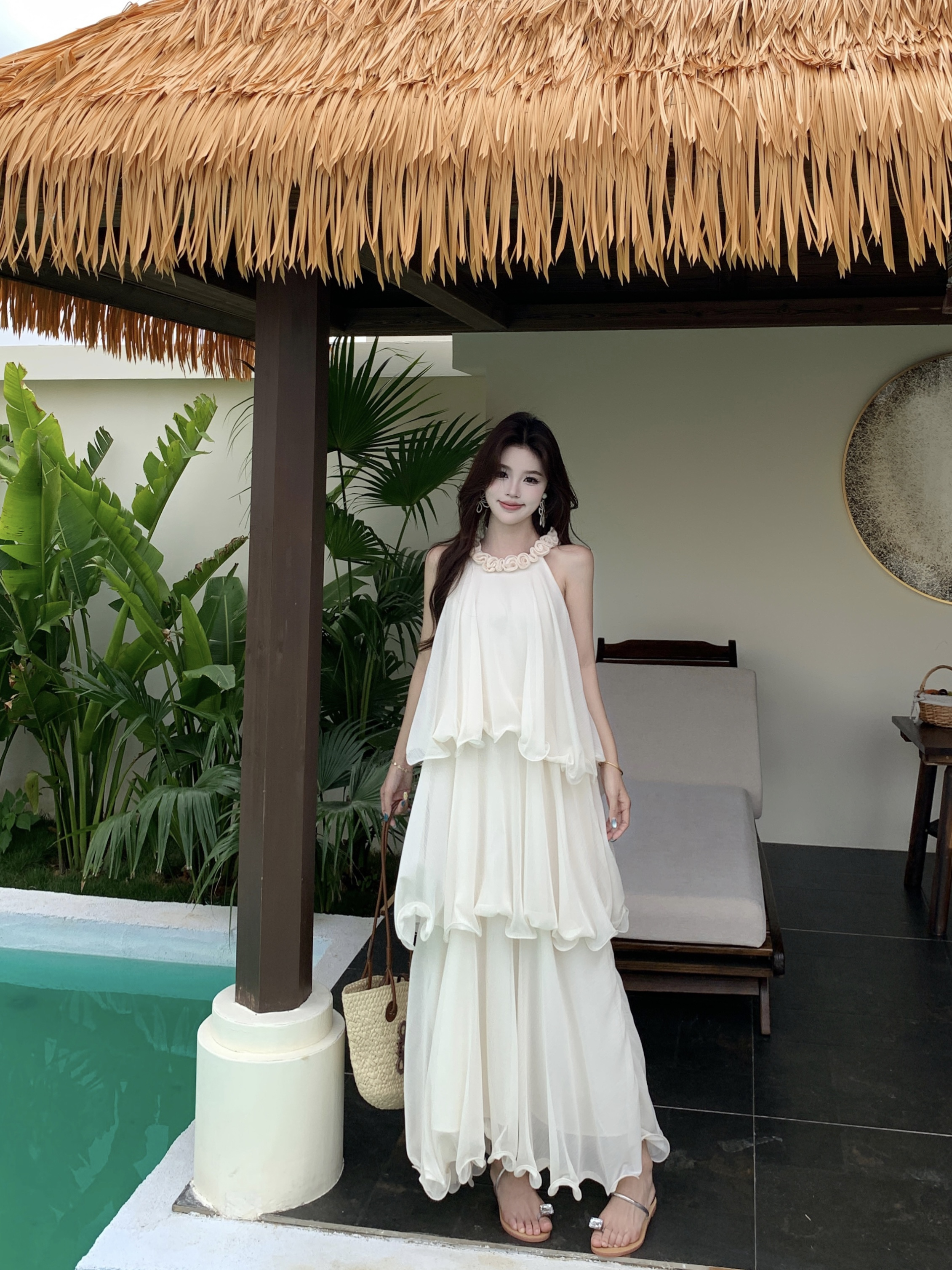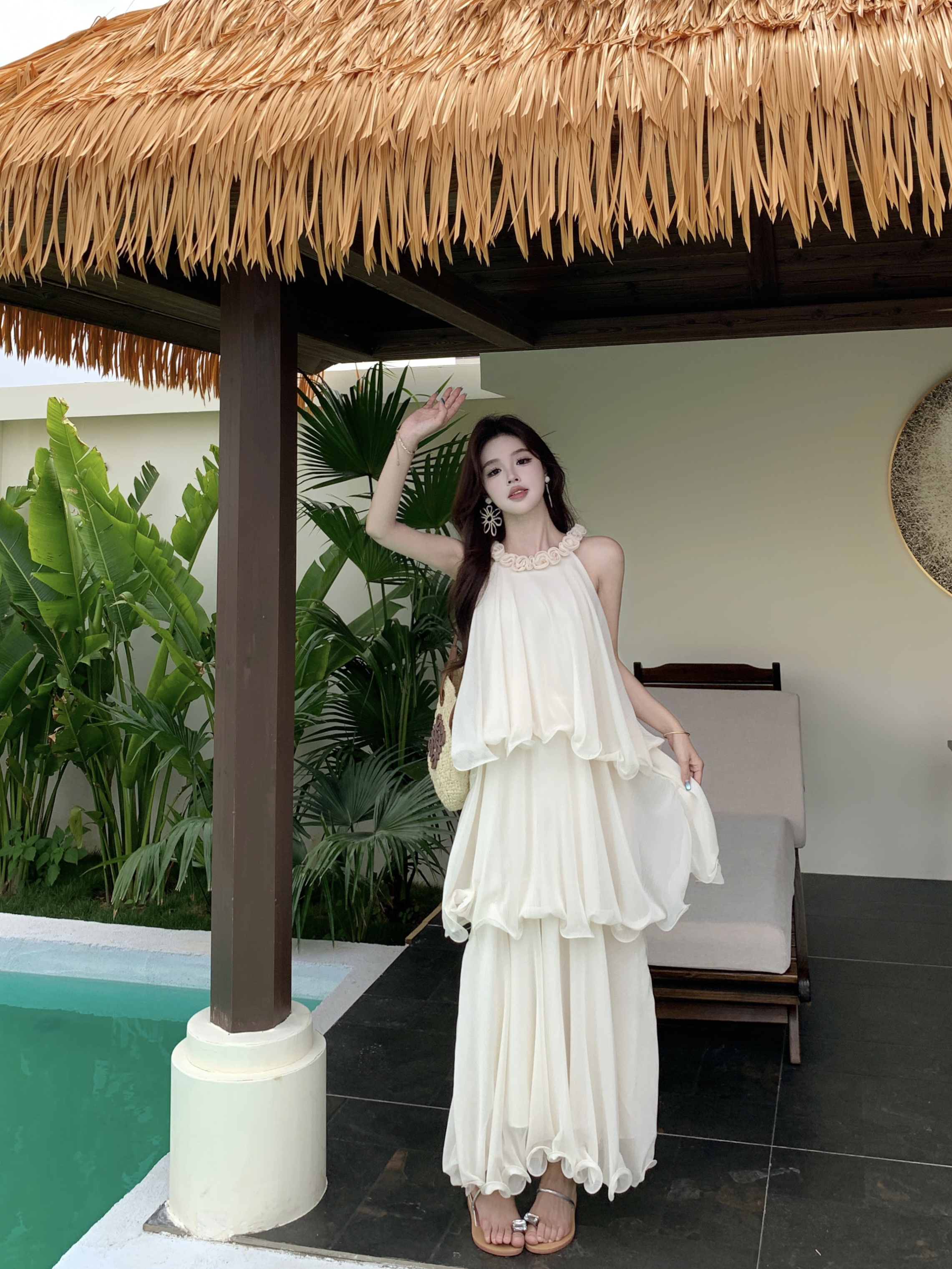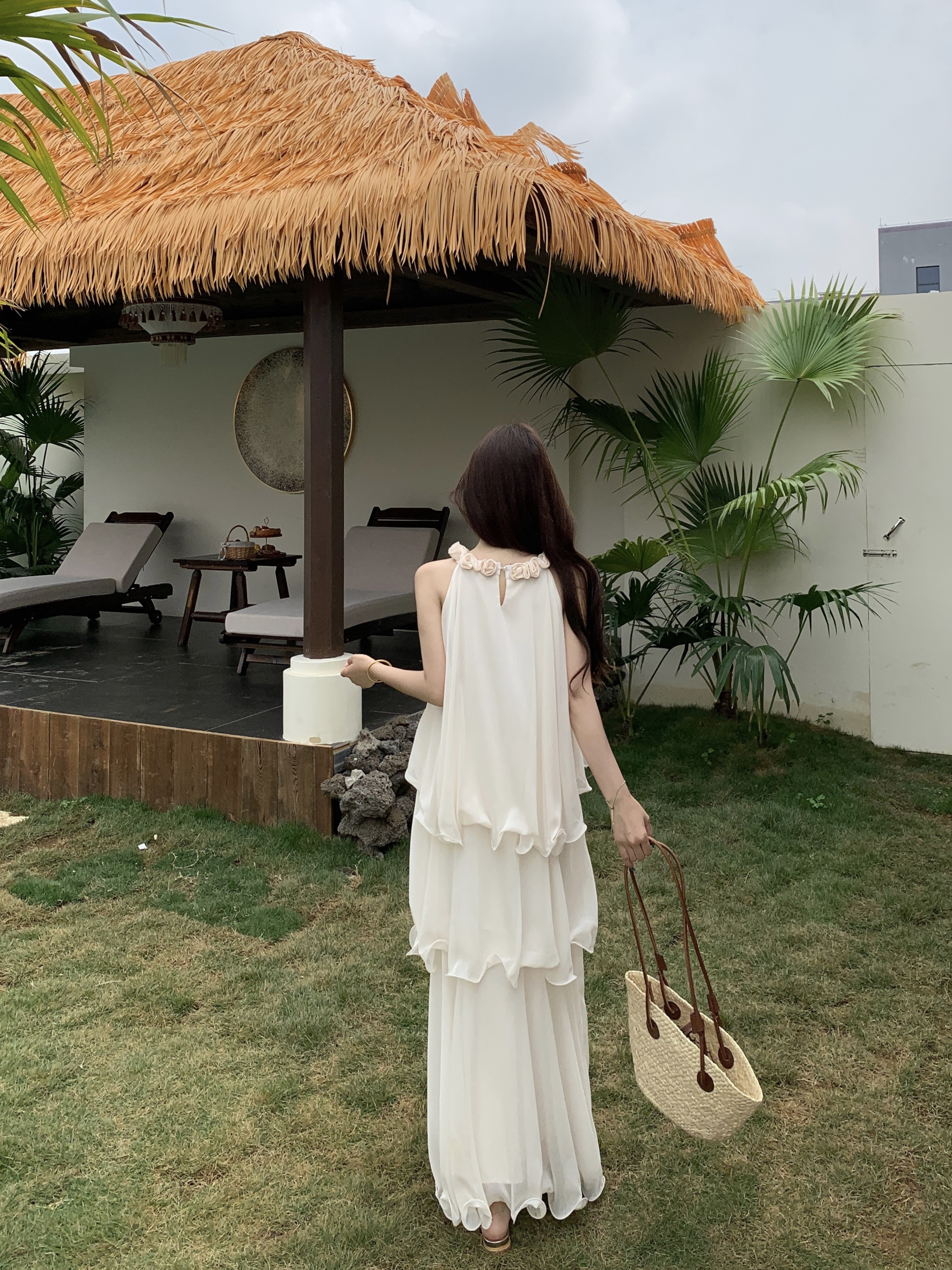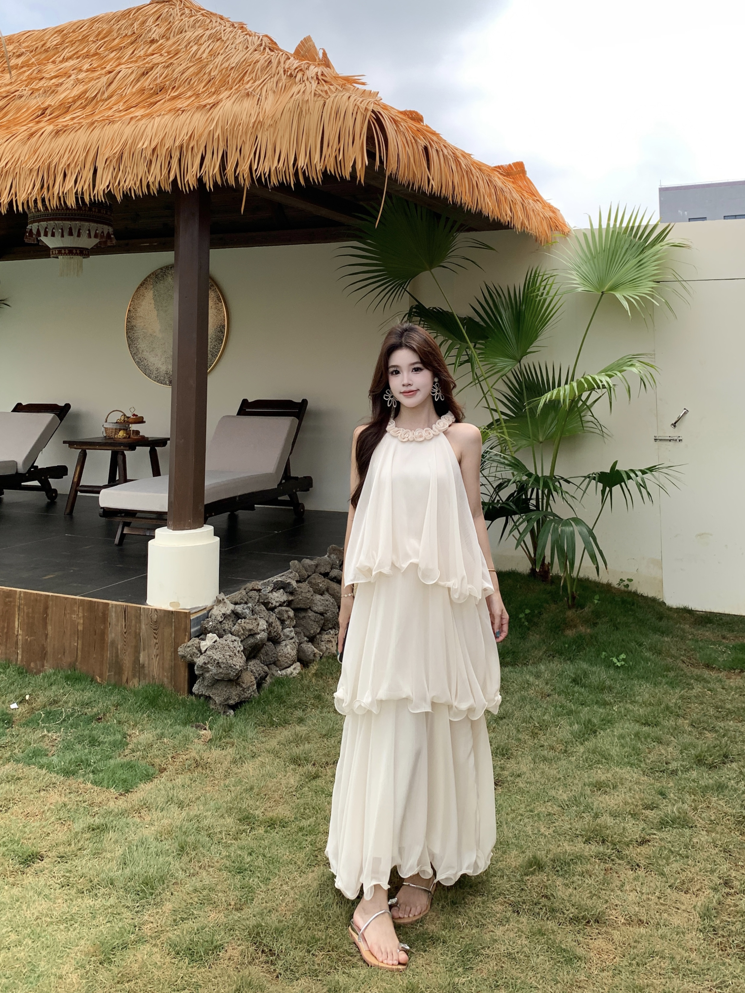 RY2290# 大码法式度假风名媛千金雪纺蛋糕裙气质无袖连衣裙女夏季超仙裙子