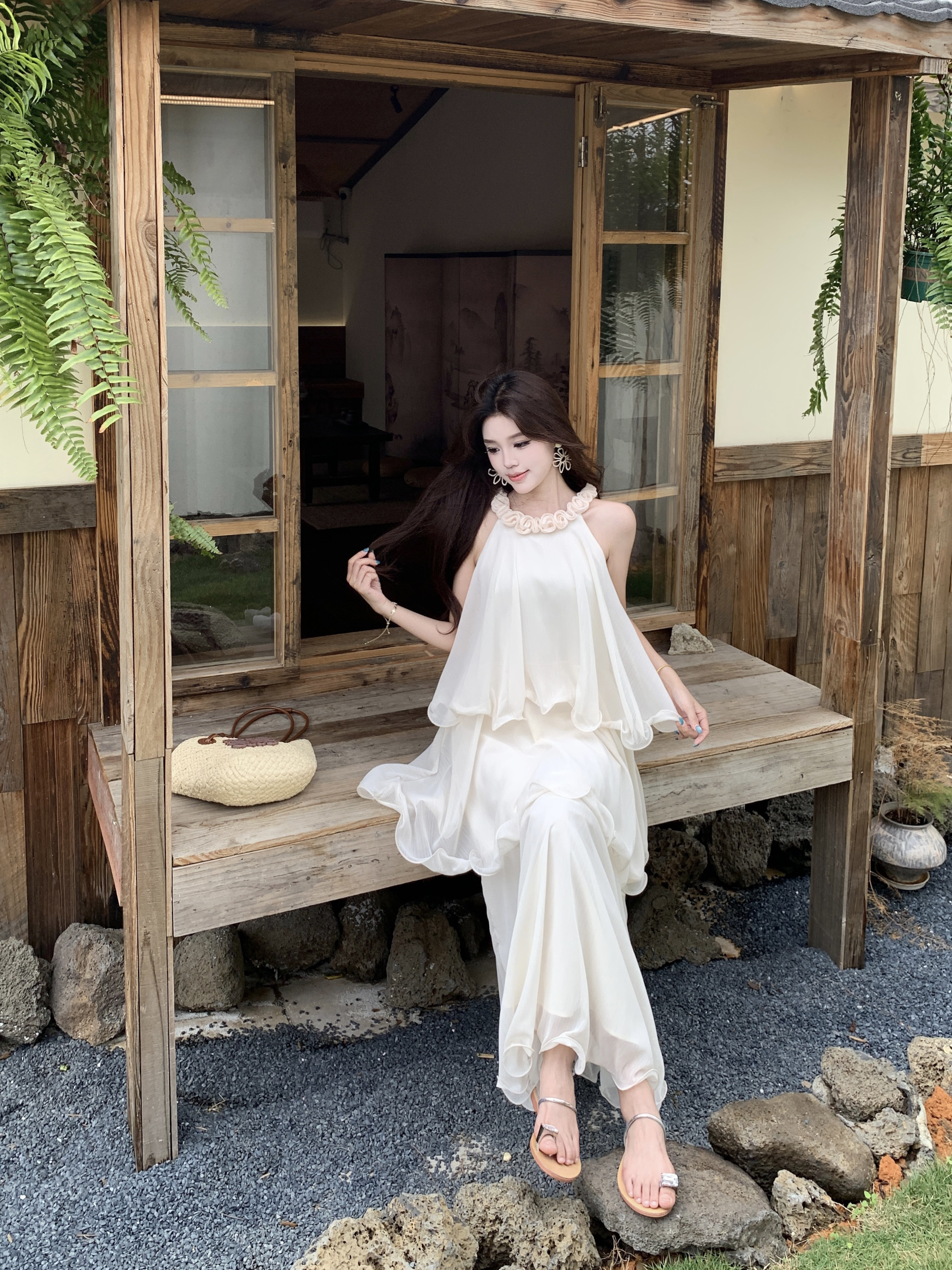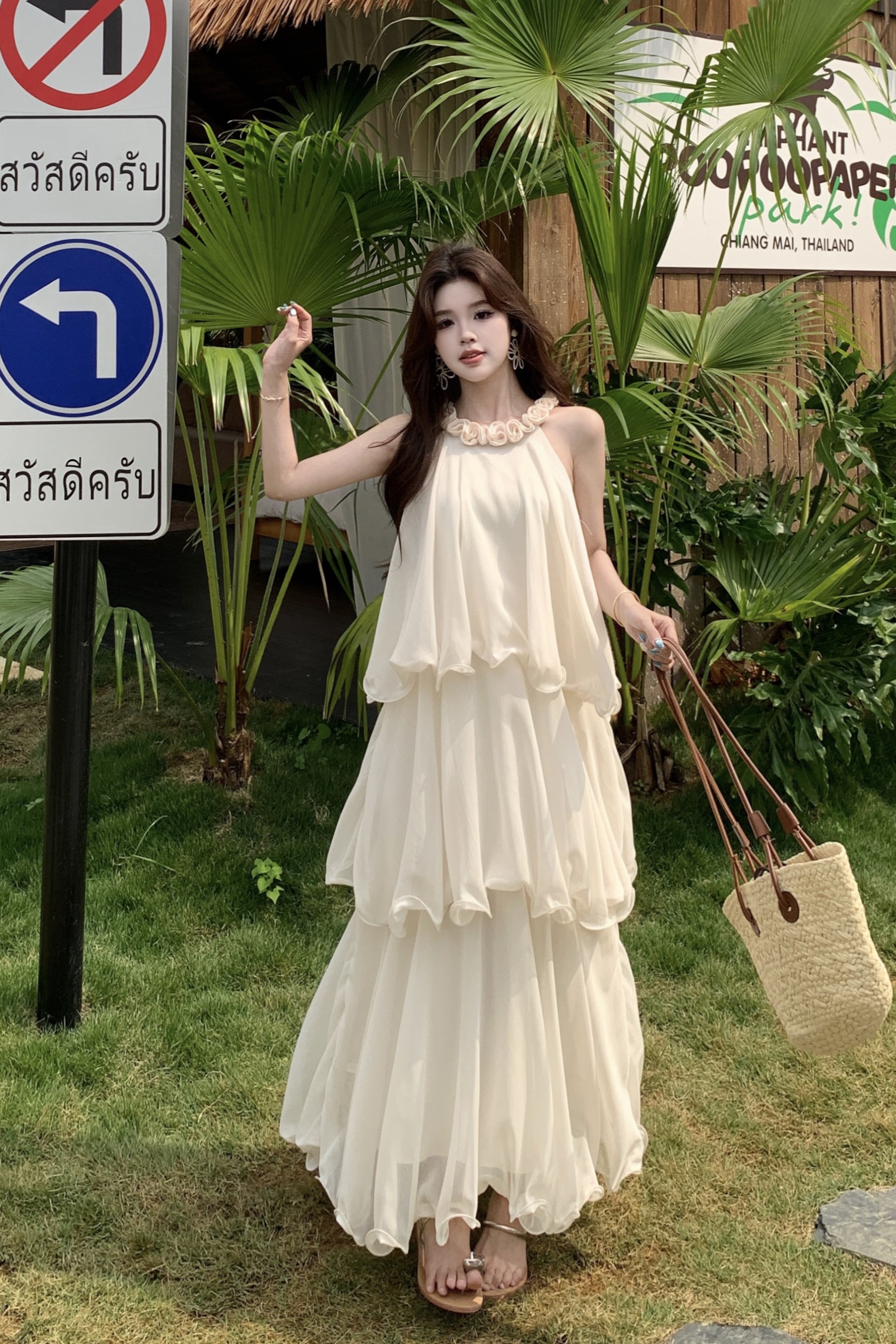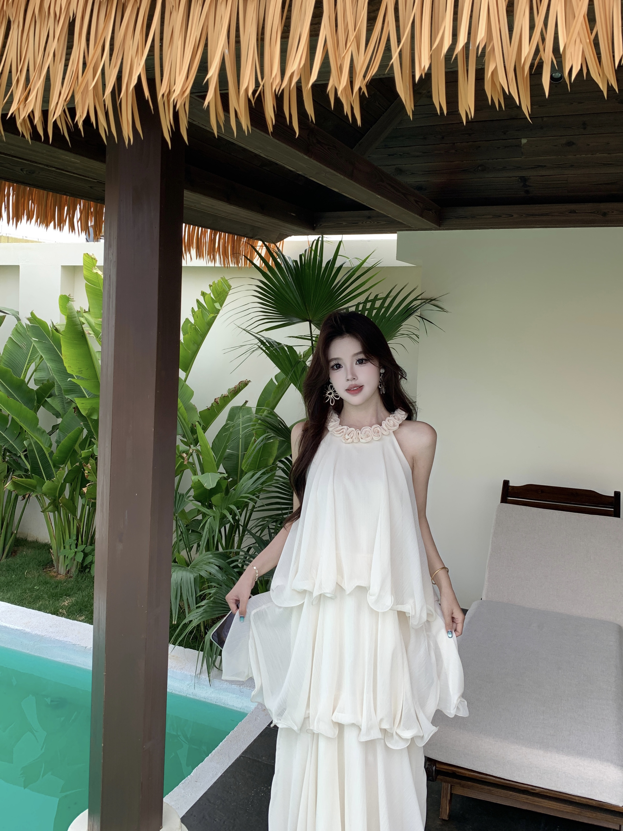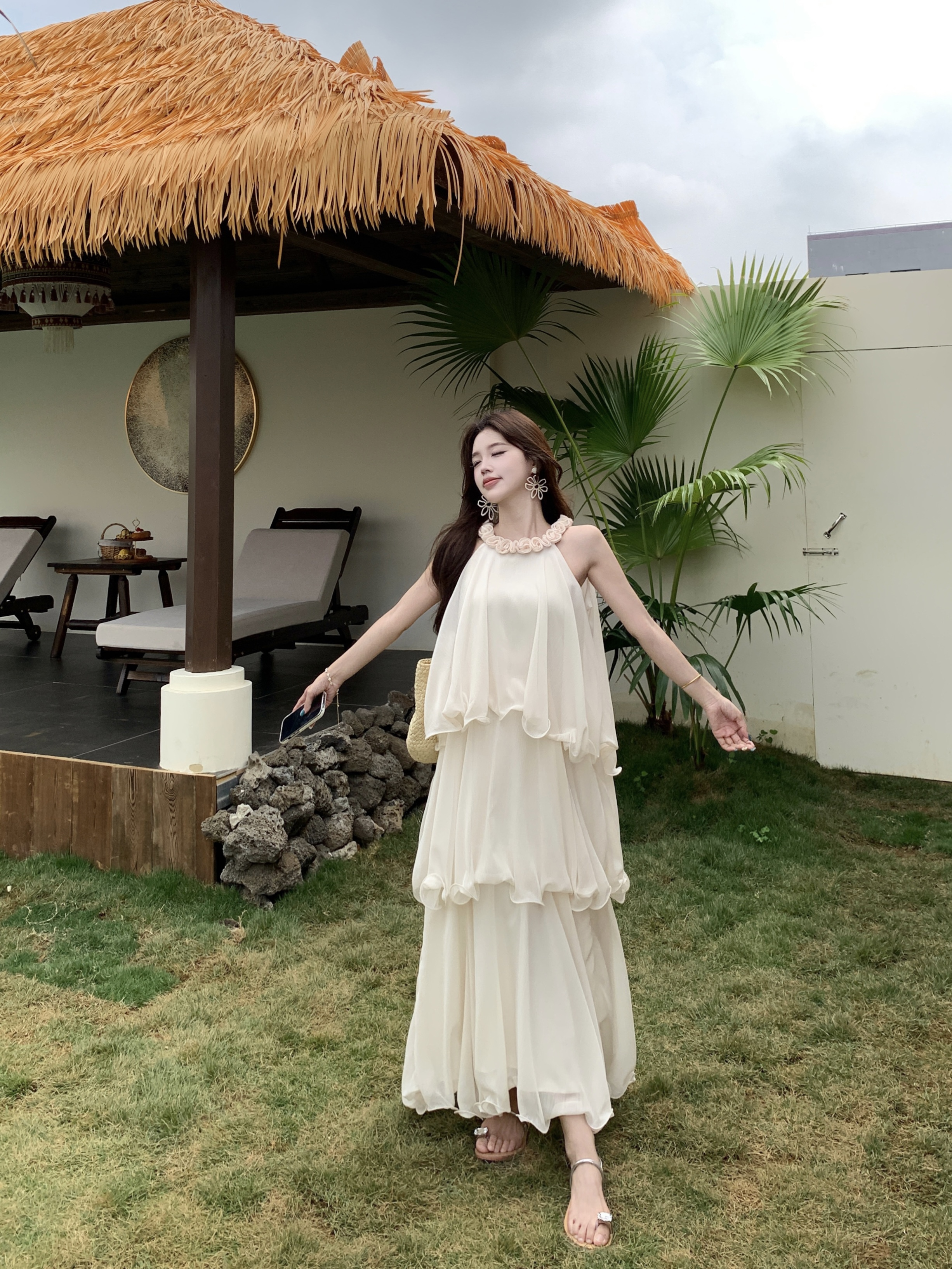 RY2290# 大码法式度假风名媛千金雪纺蛋糕裙气质无袖连衣裙女夏季超仙裙子