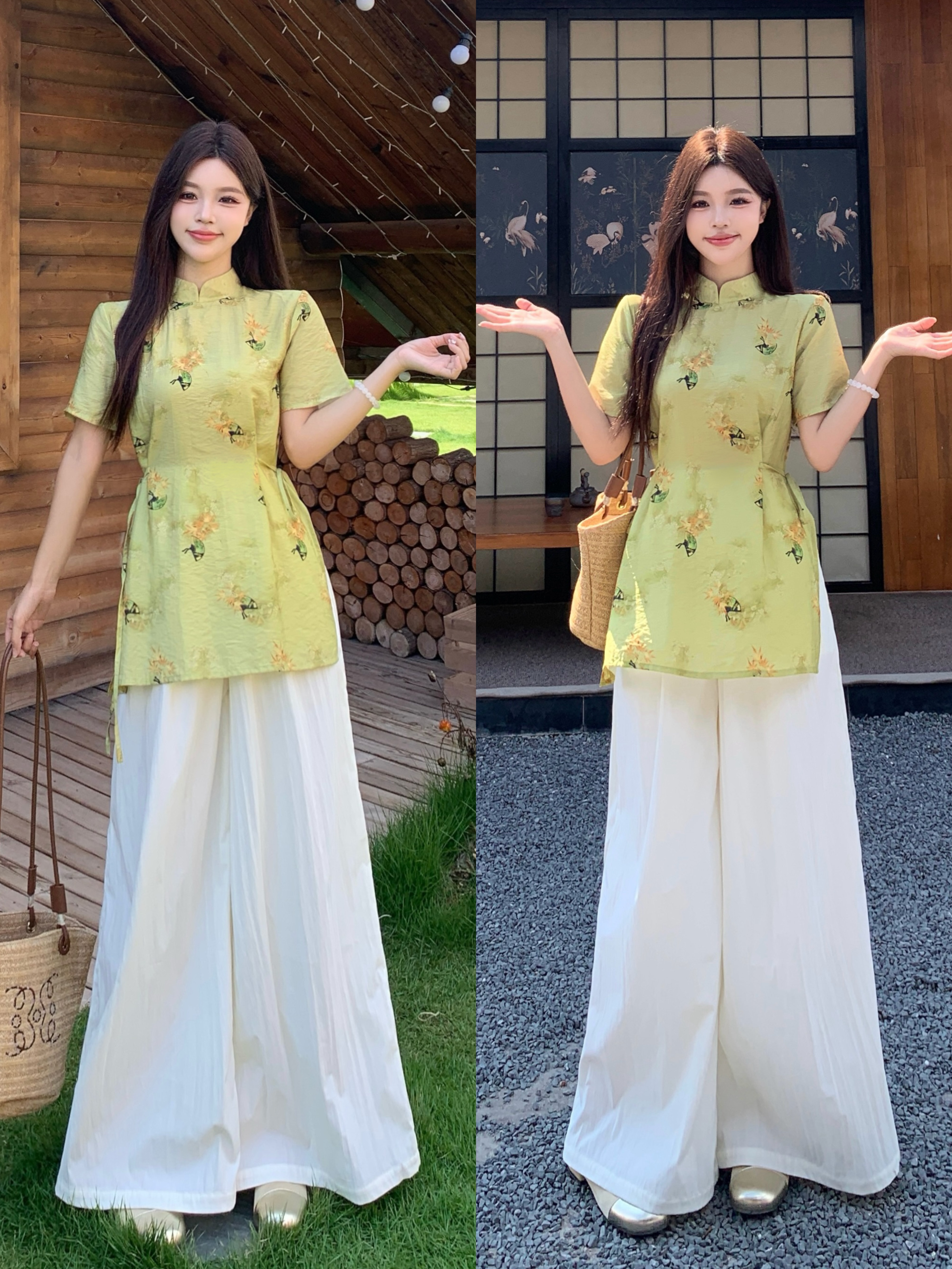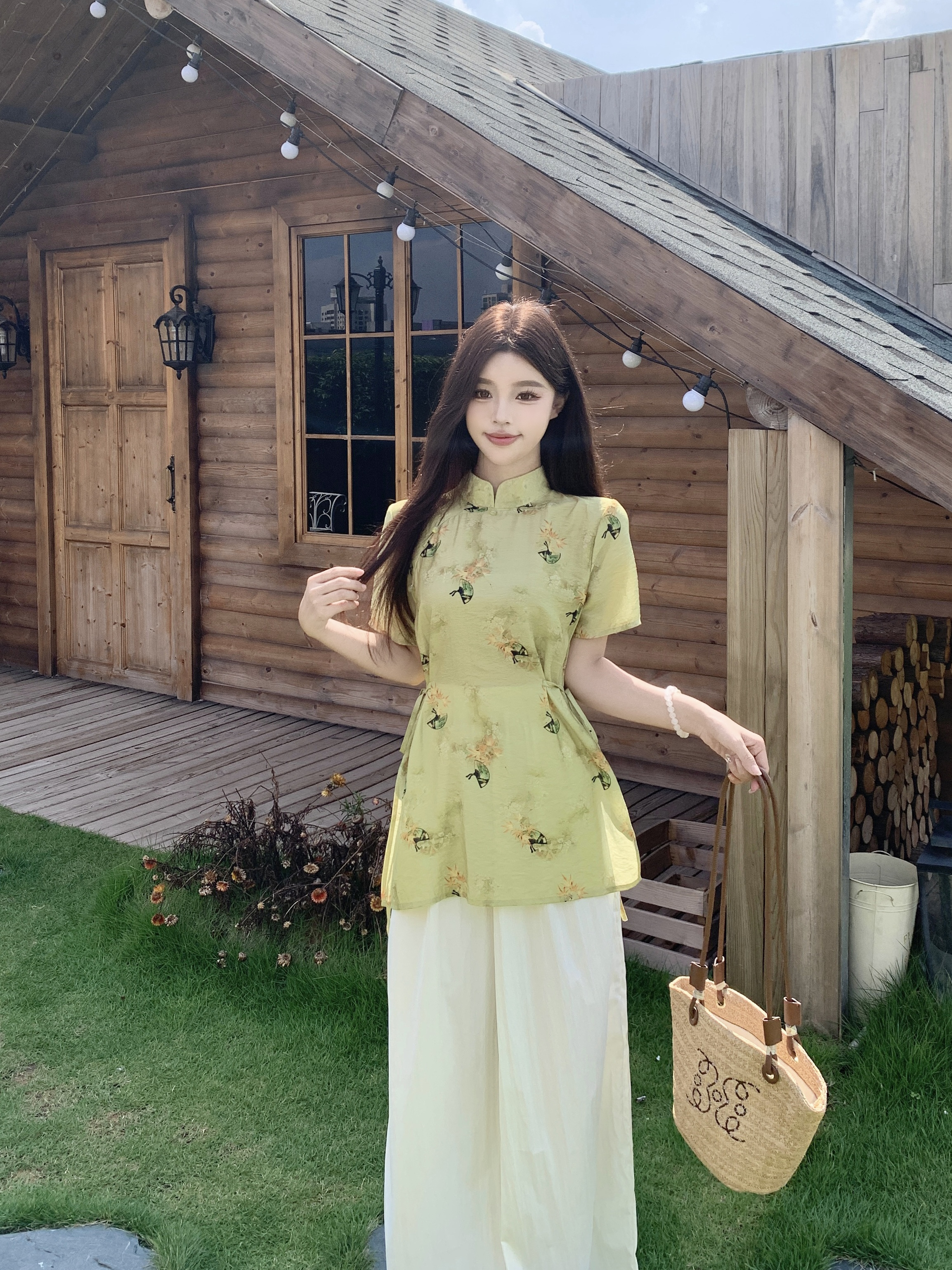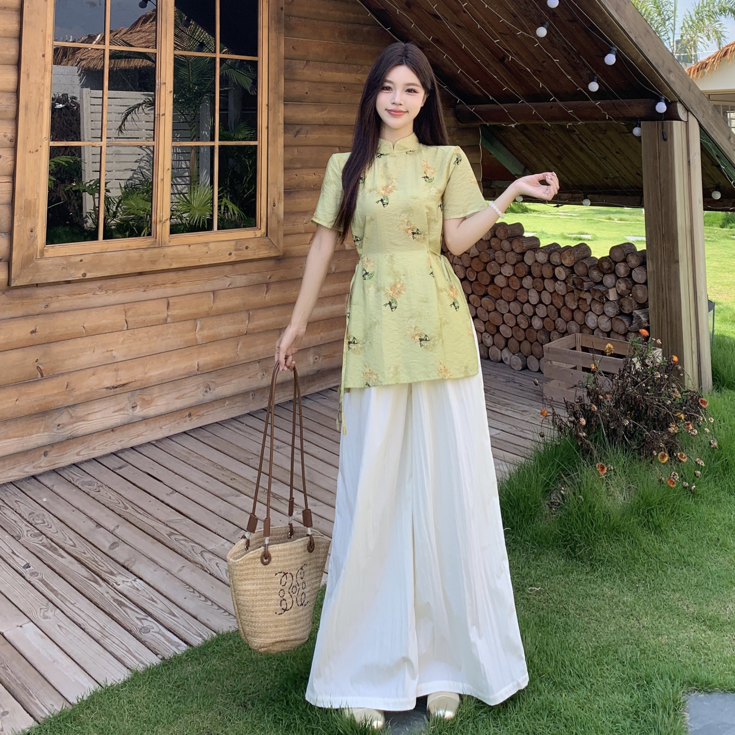 RY2295# 大码套装女装2026年夏季新中式复古高级感气质收腰显瘦上衣裙裤女