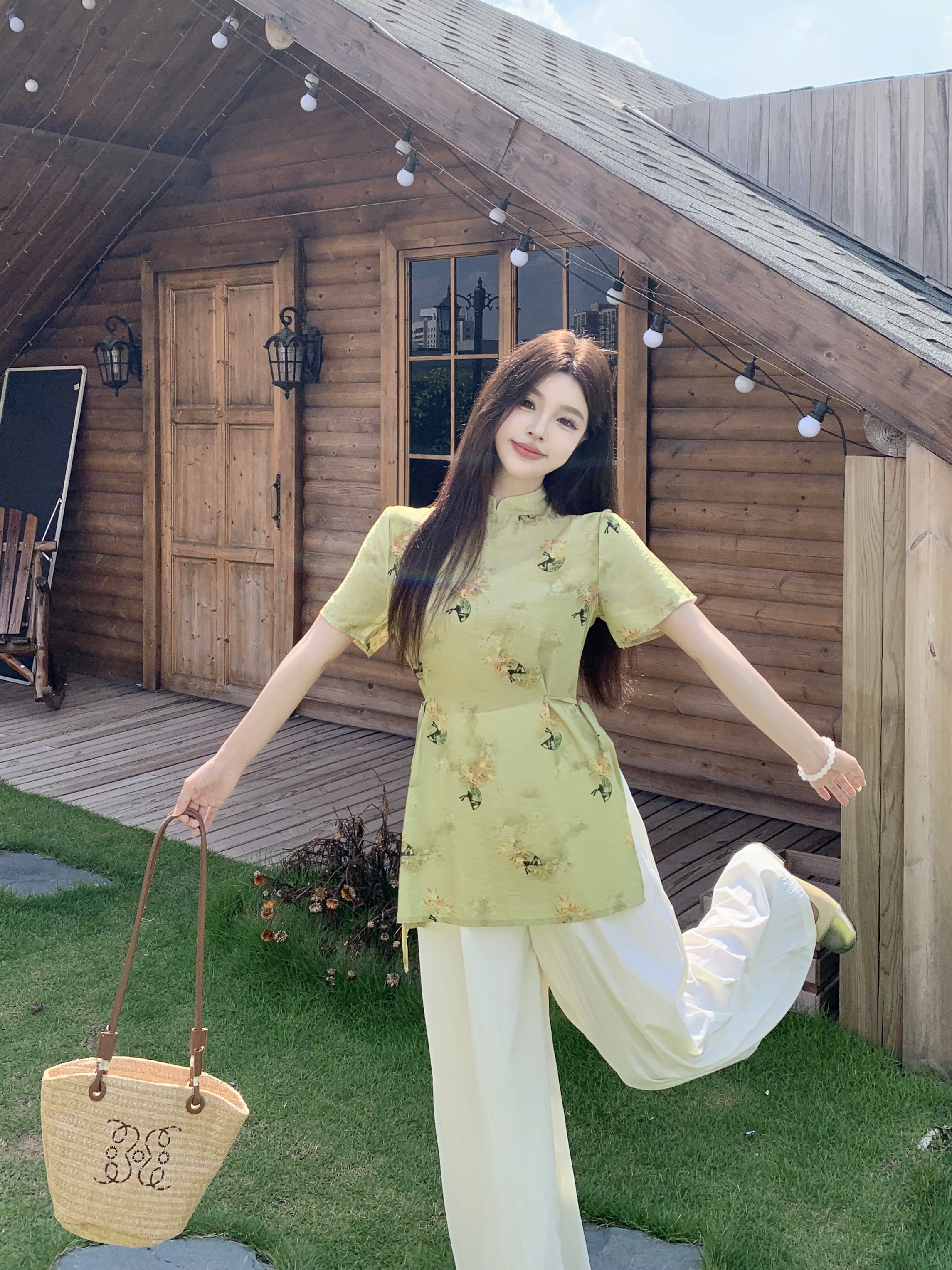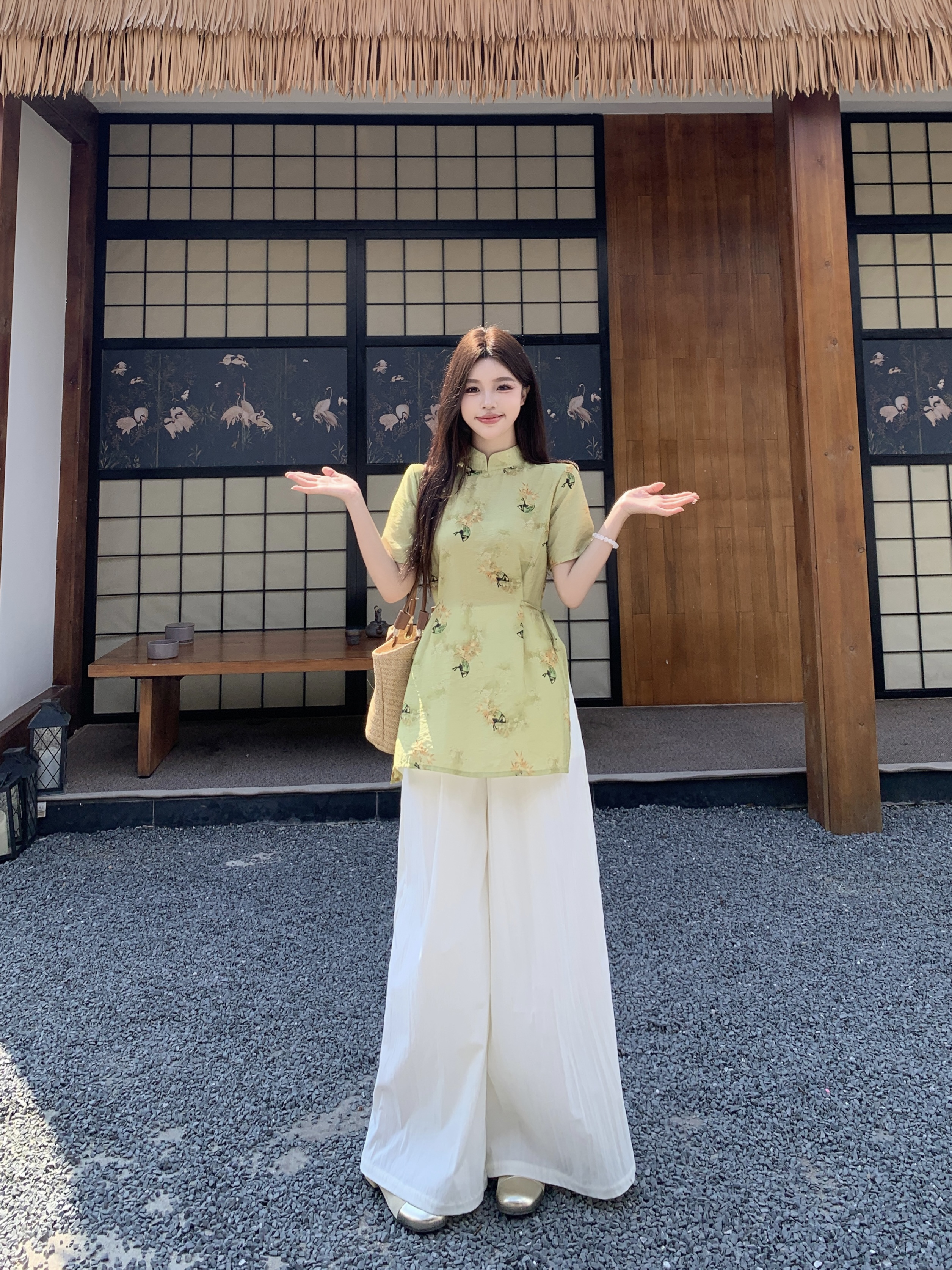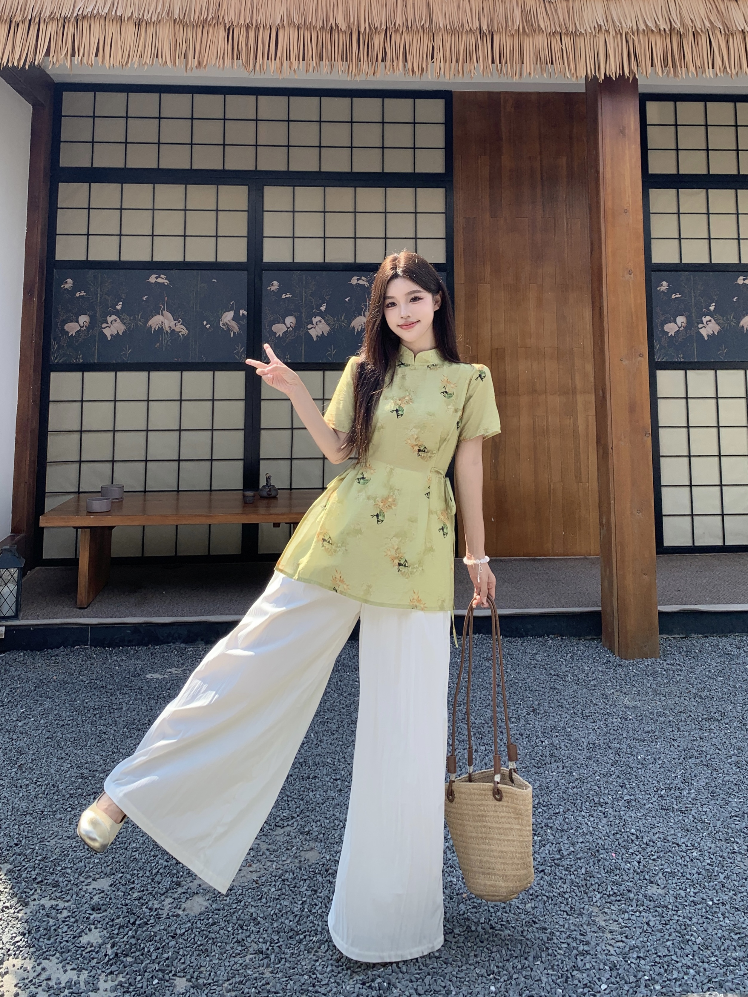 RY2295# 大码套装女装2026年夏季新中式复古高级感气质收腰显瘦上衣裙裤女
