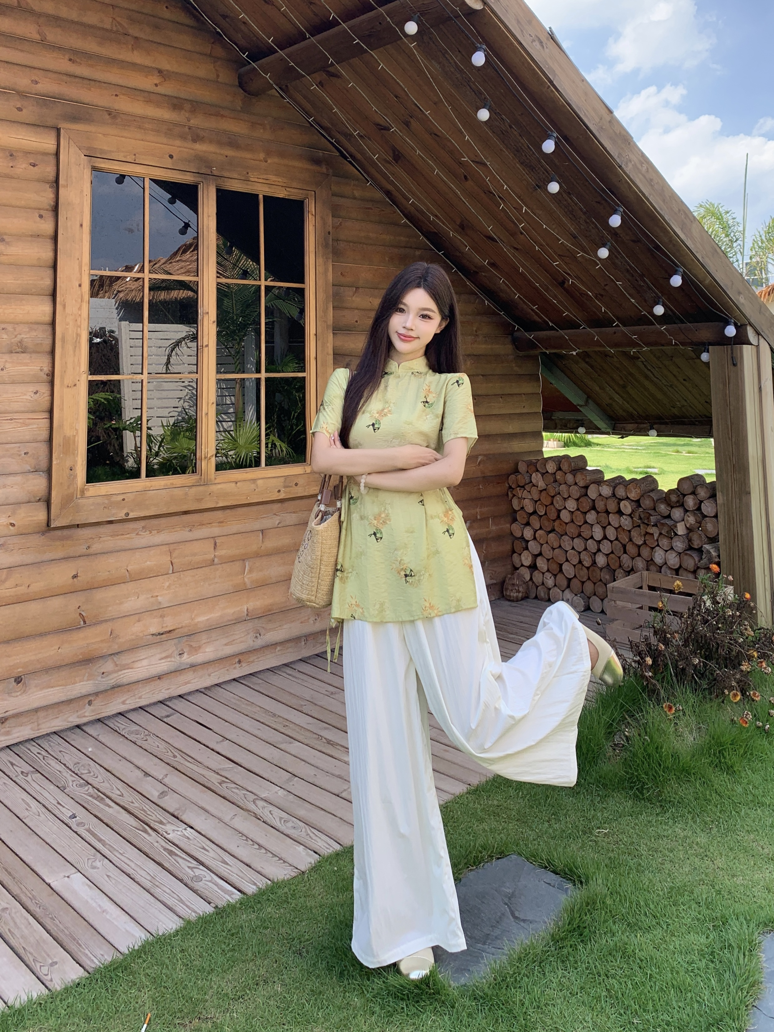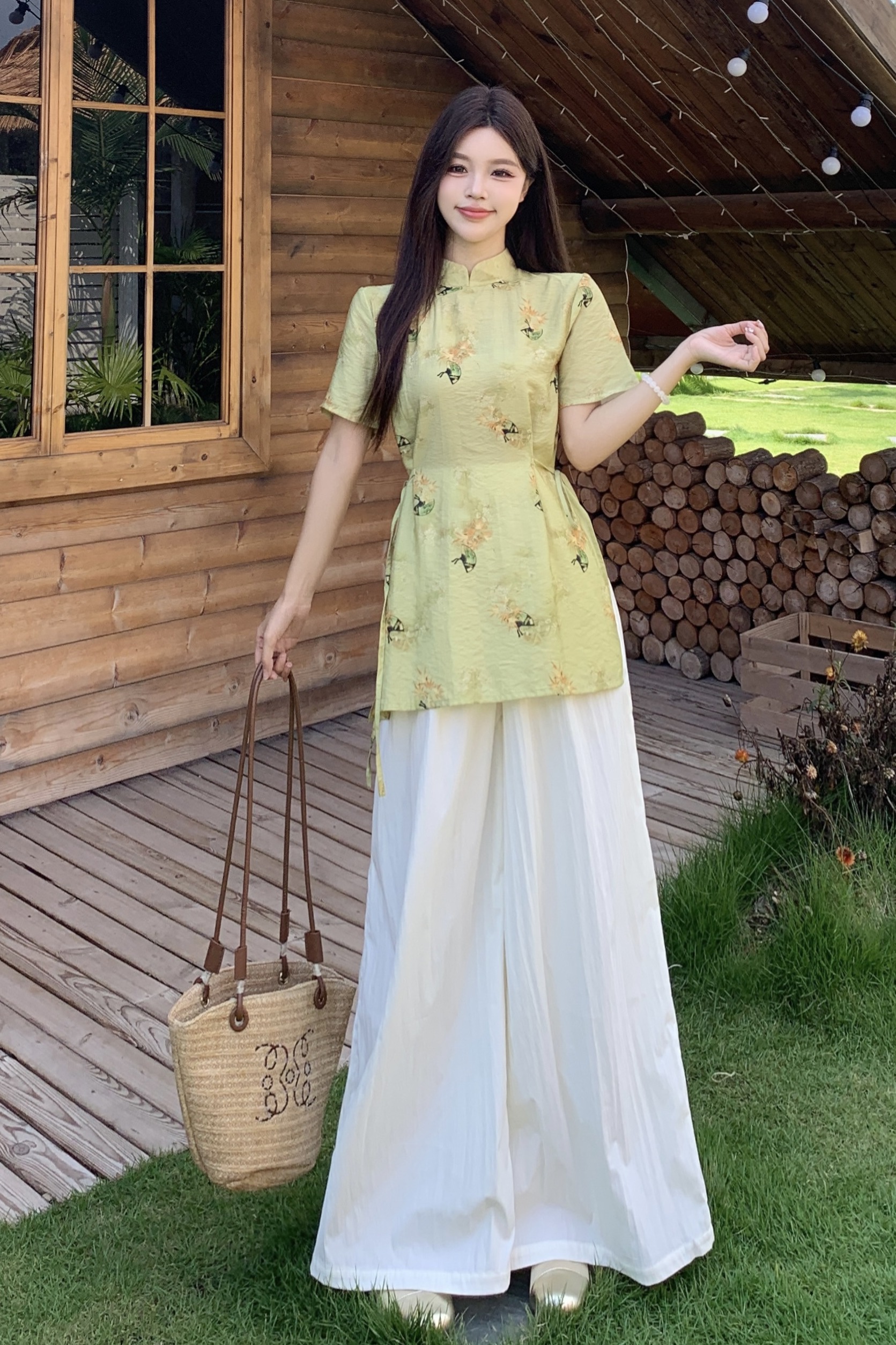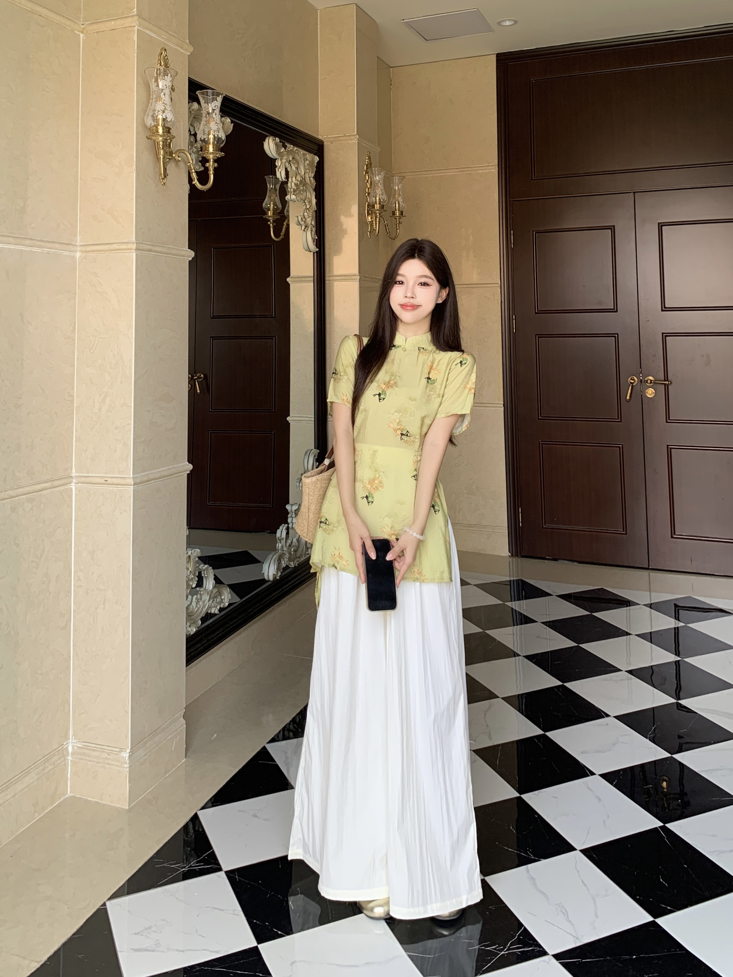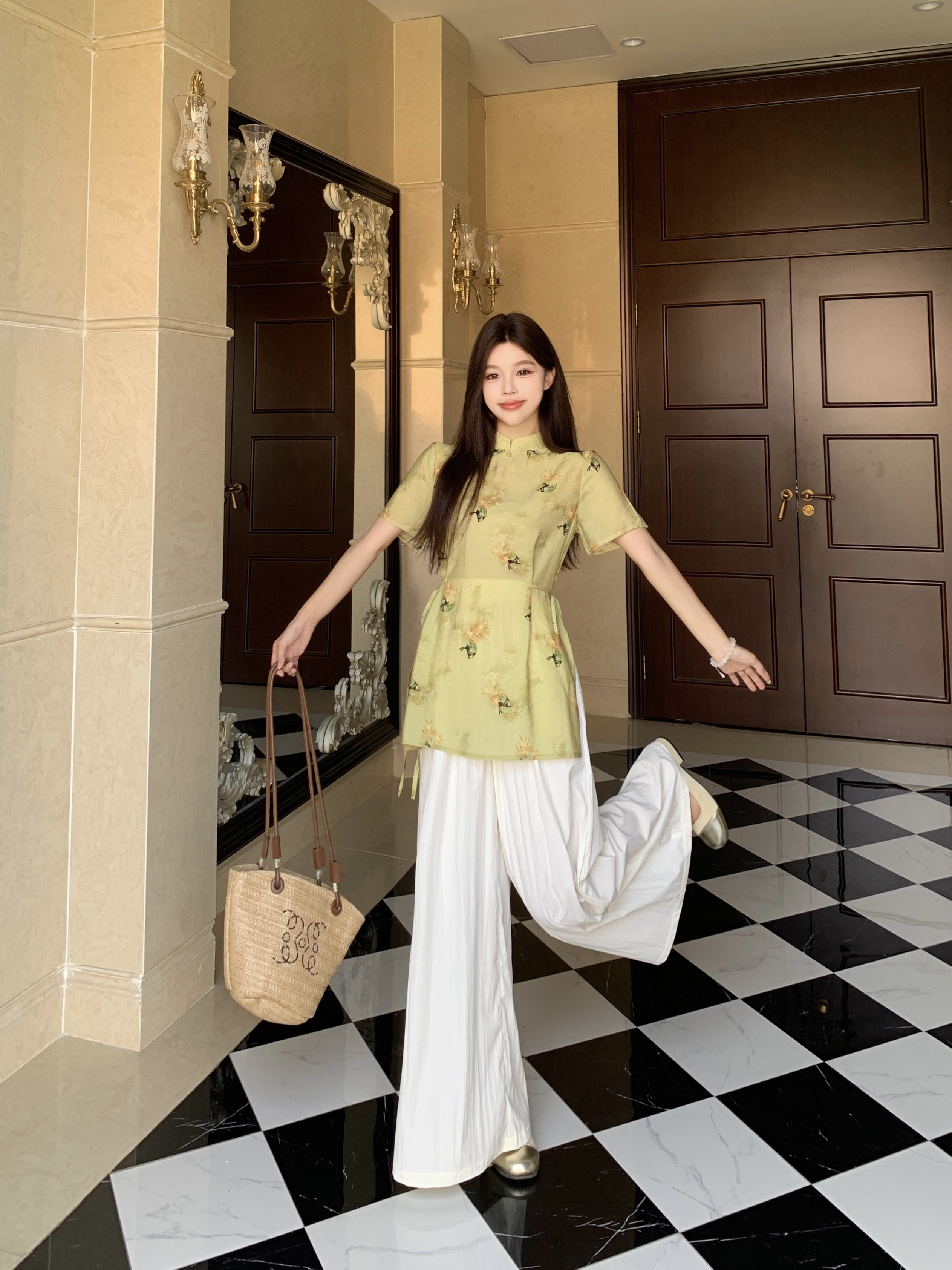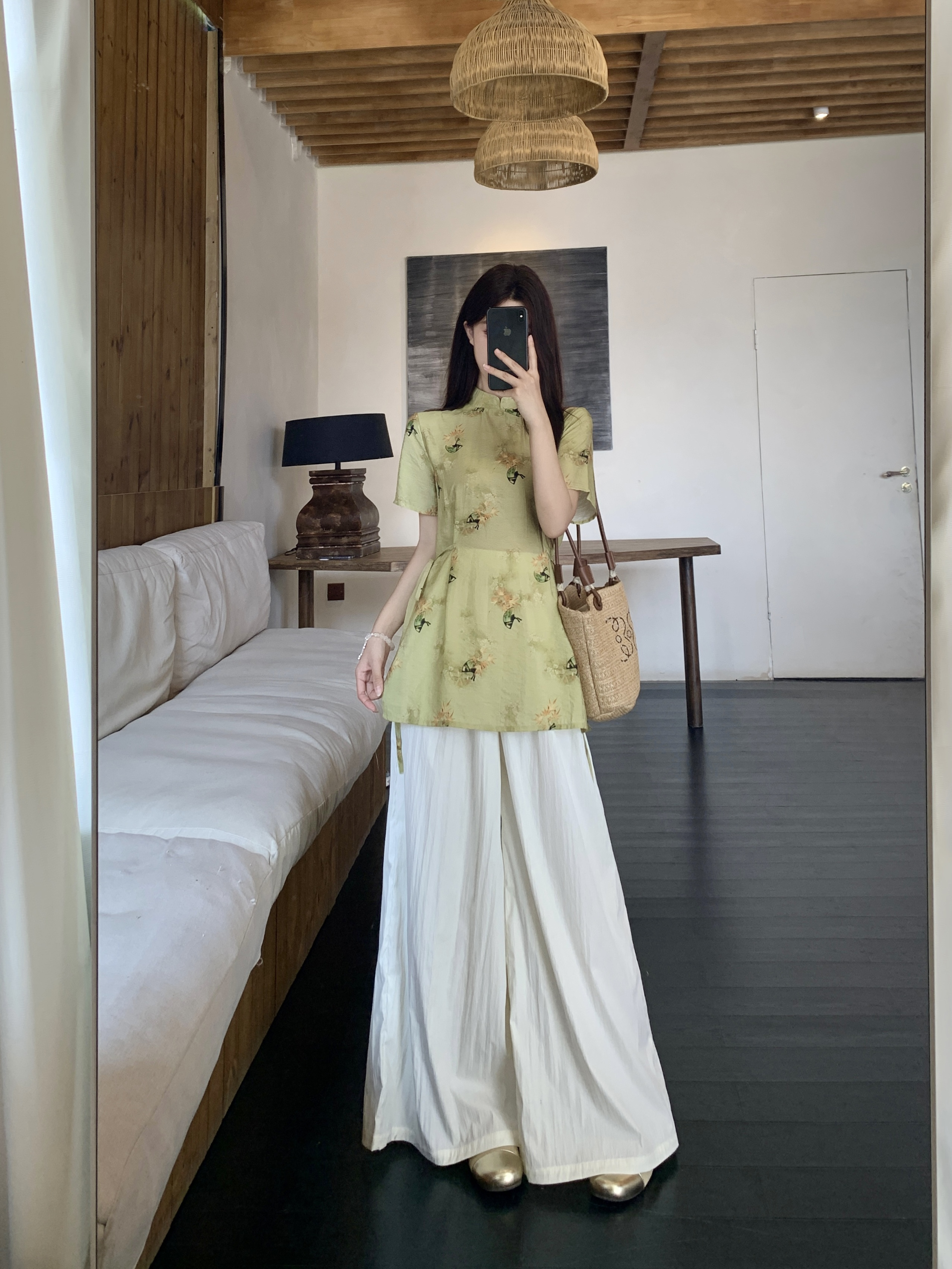 杏色裤裙