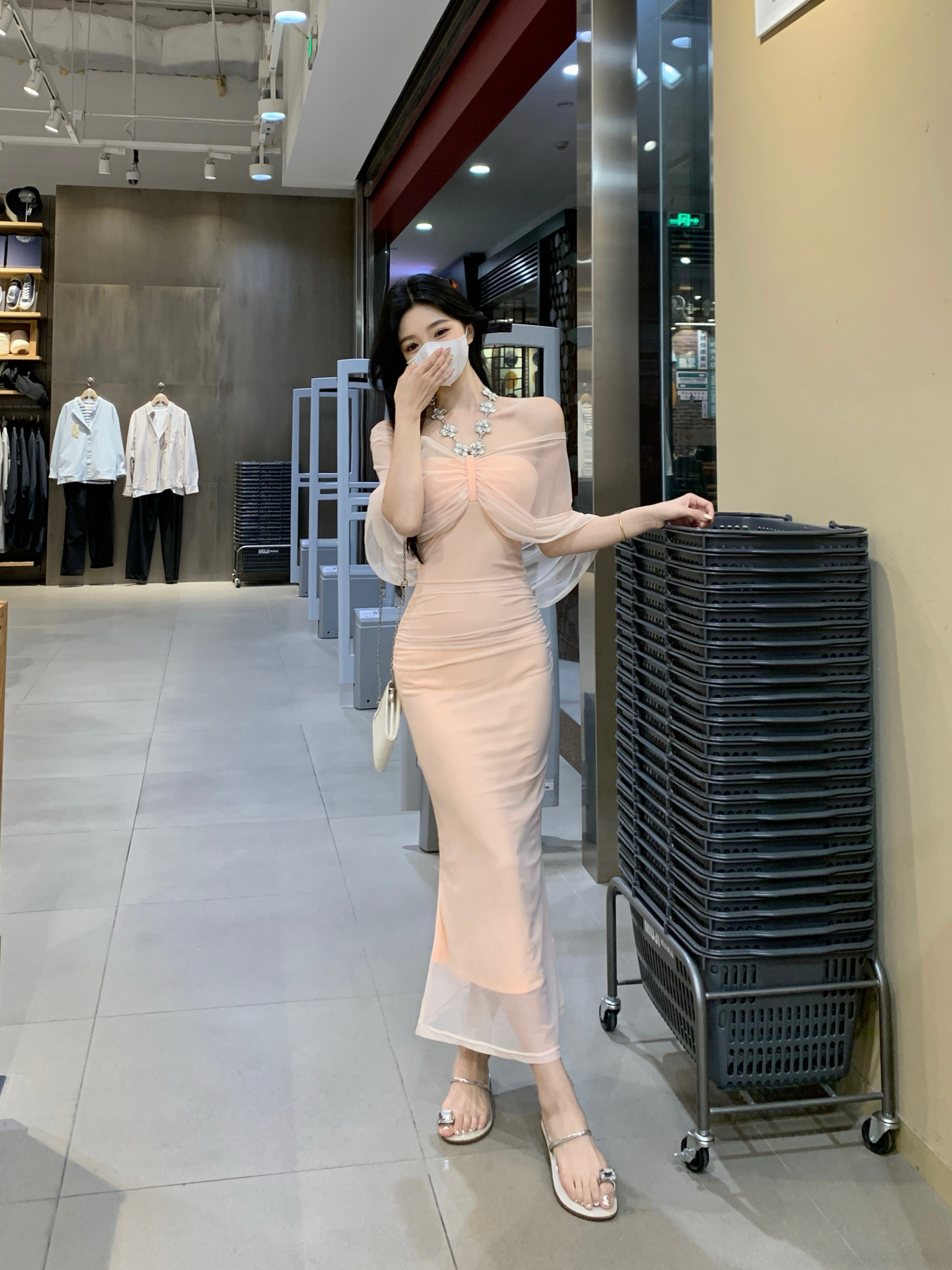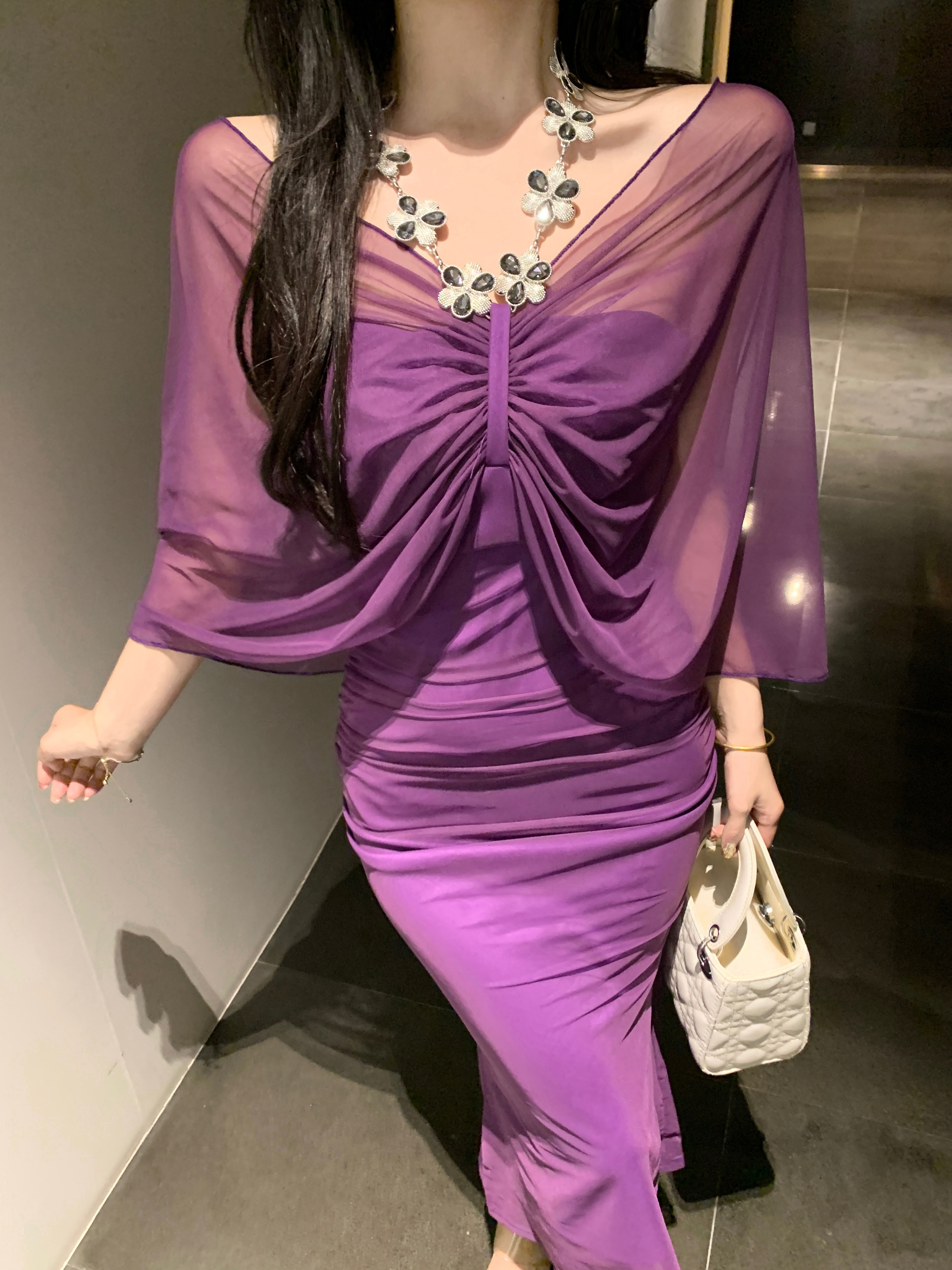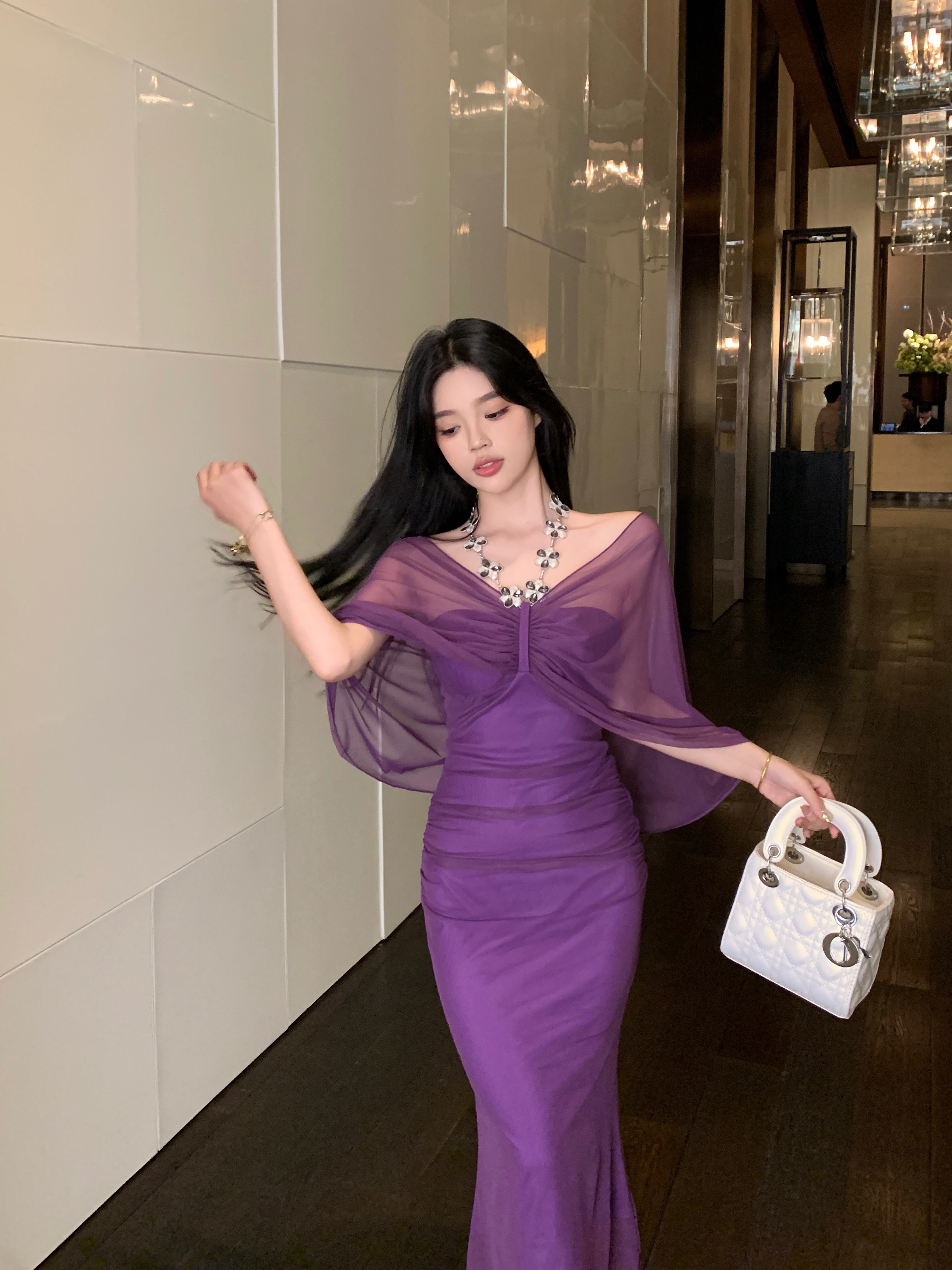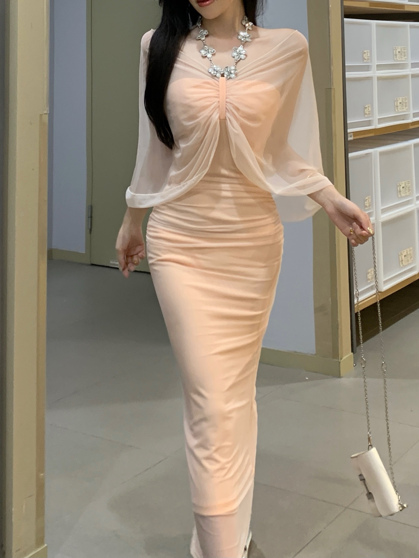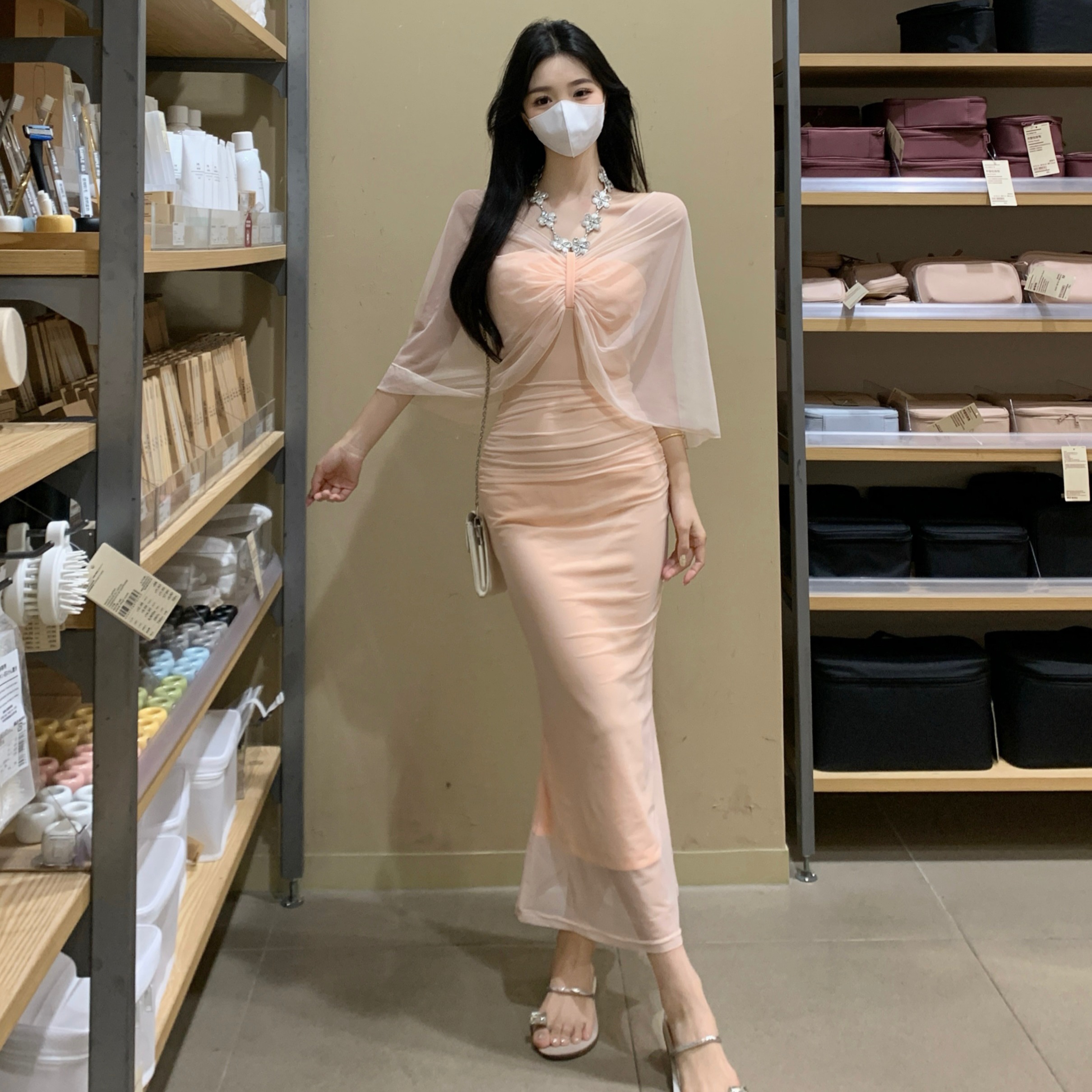 RY2302# 2026夏雾纱之梦贵气钻石纯色韵味高腰包臀连衣裙纯欲鱼尾显瘦裙女