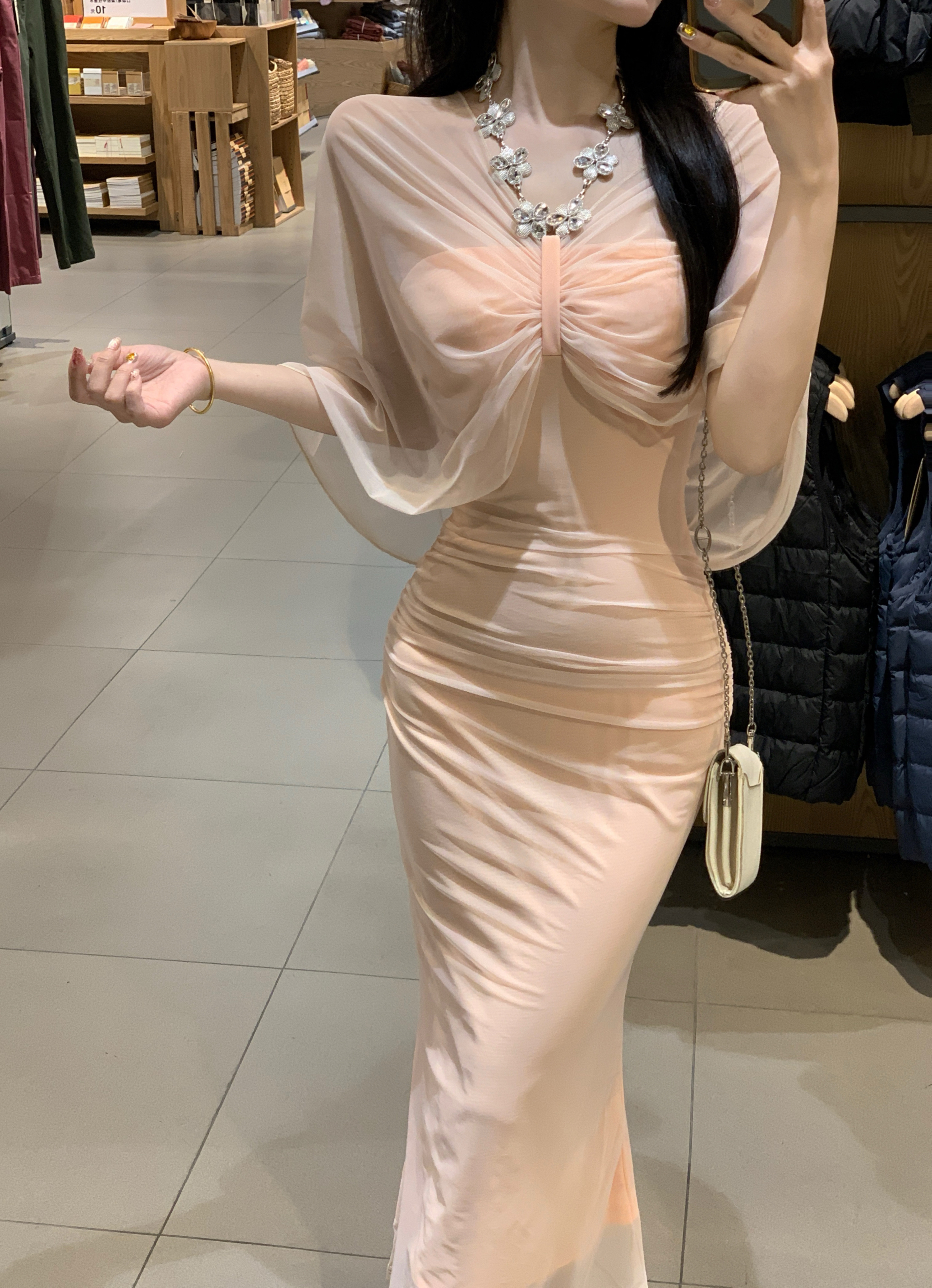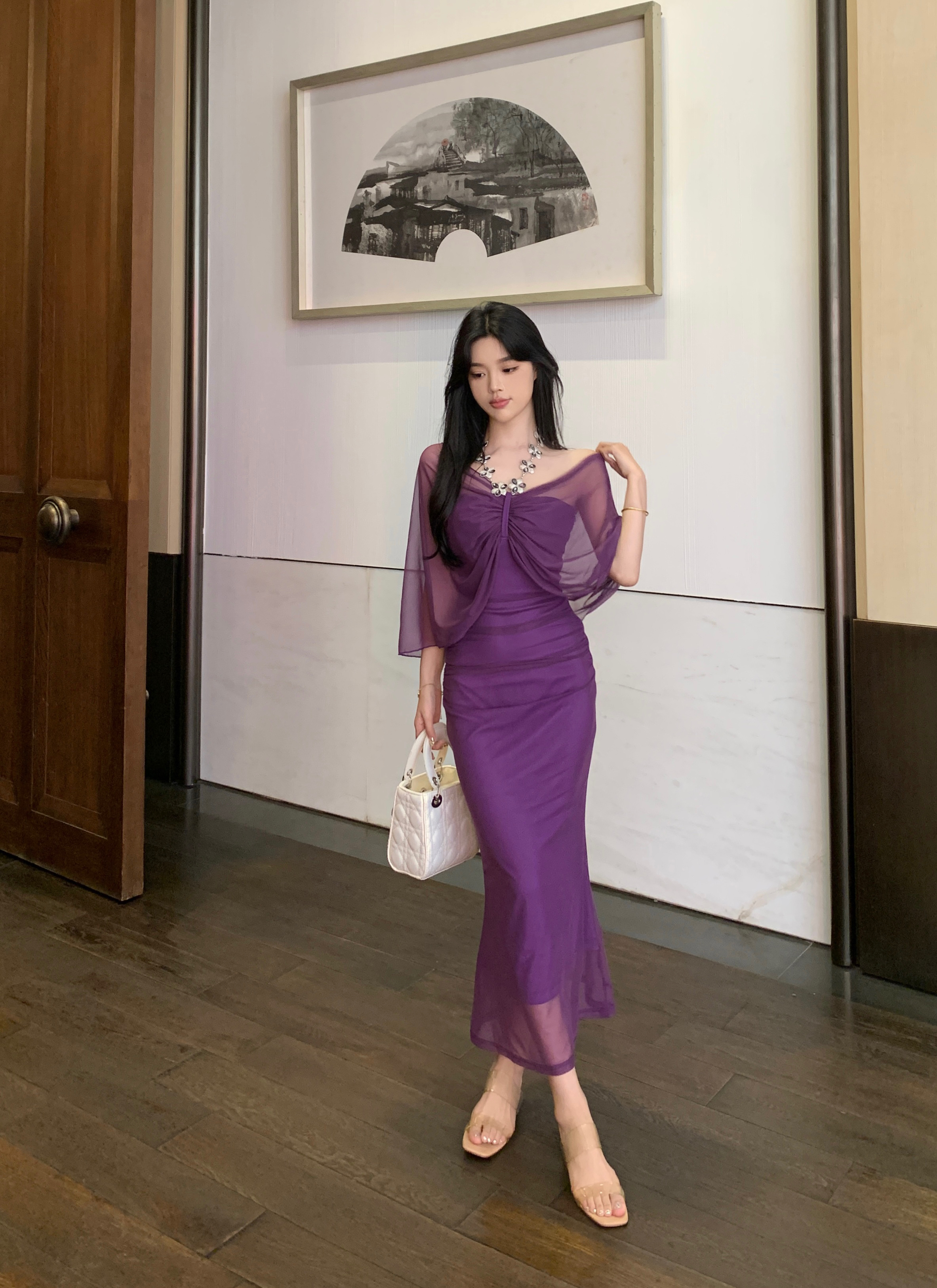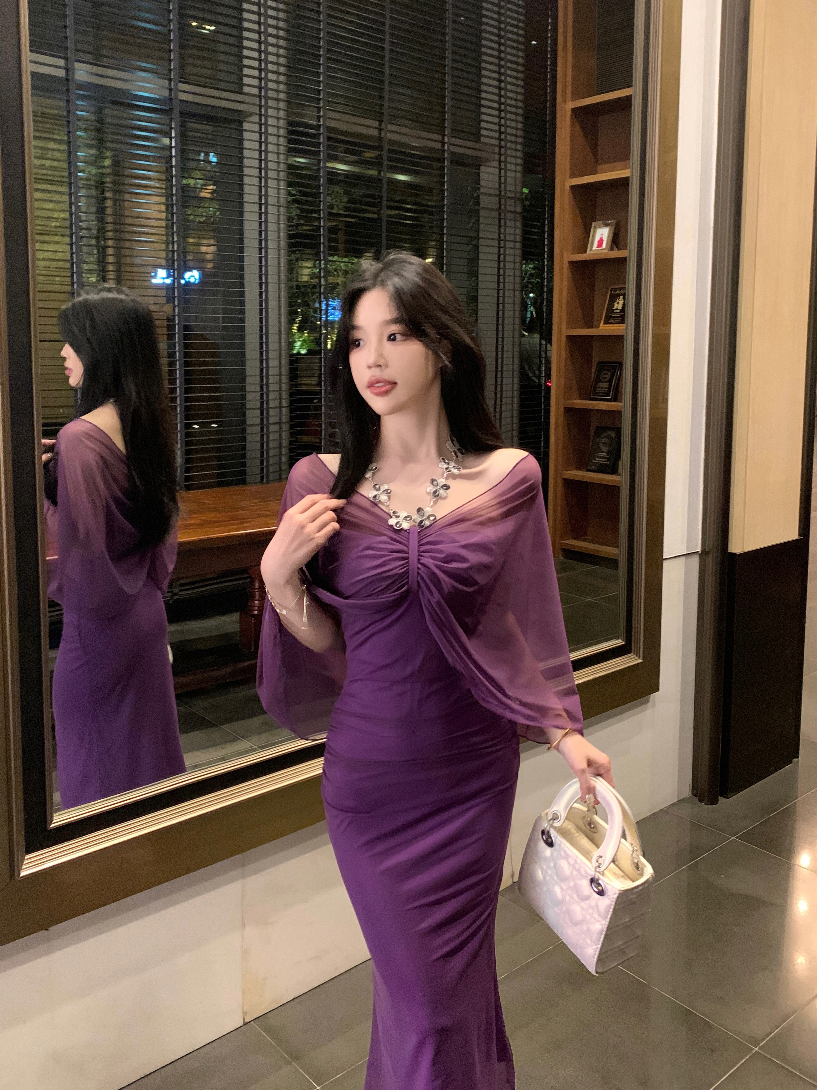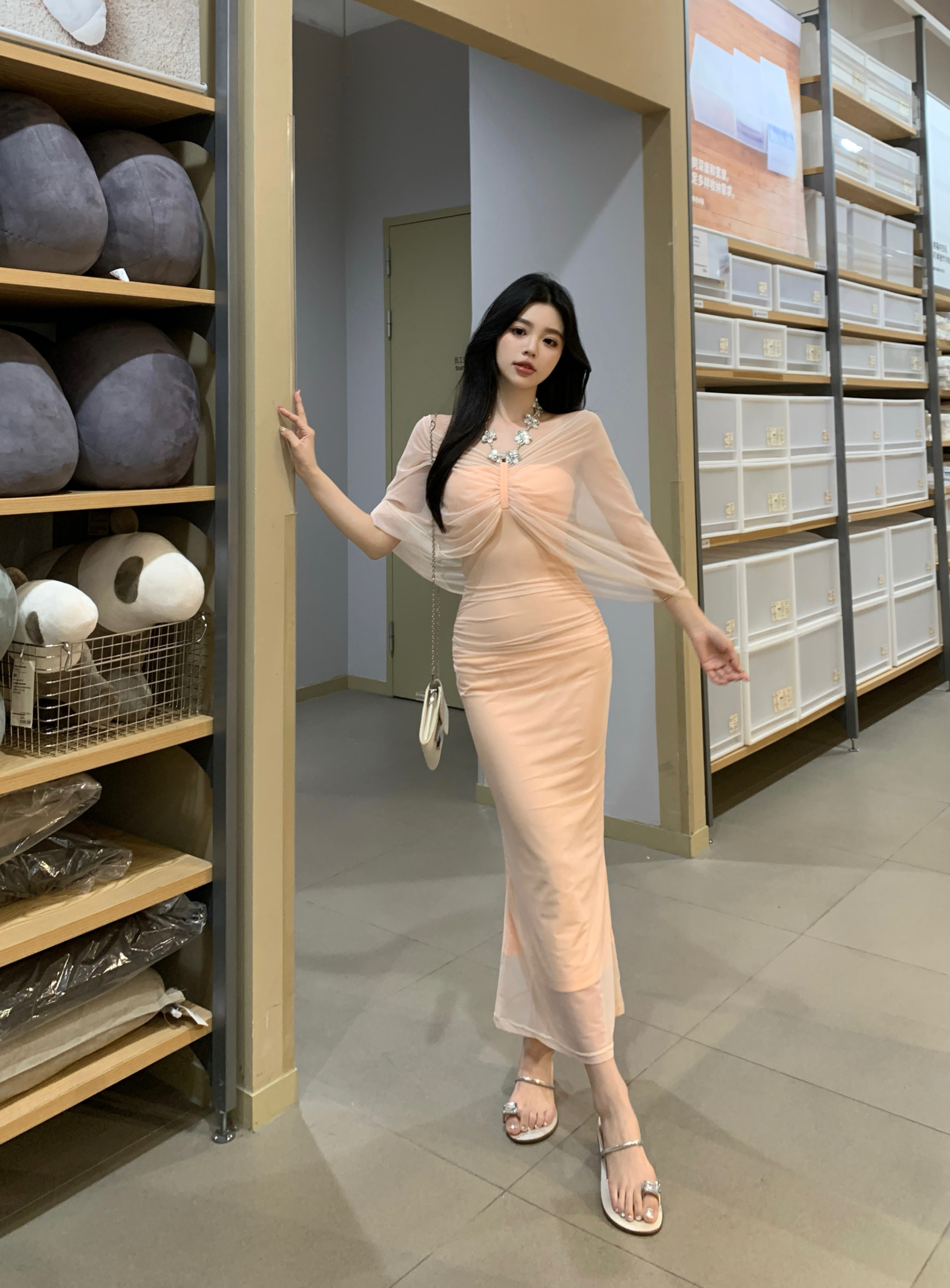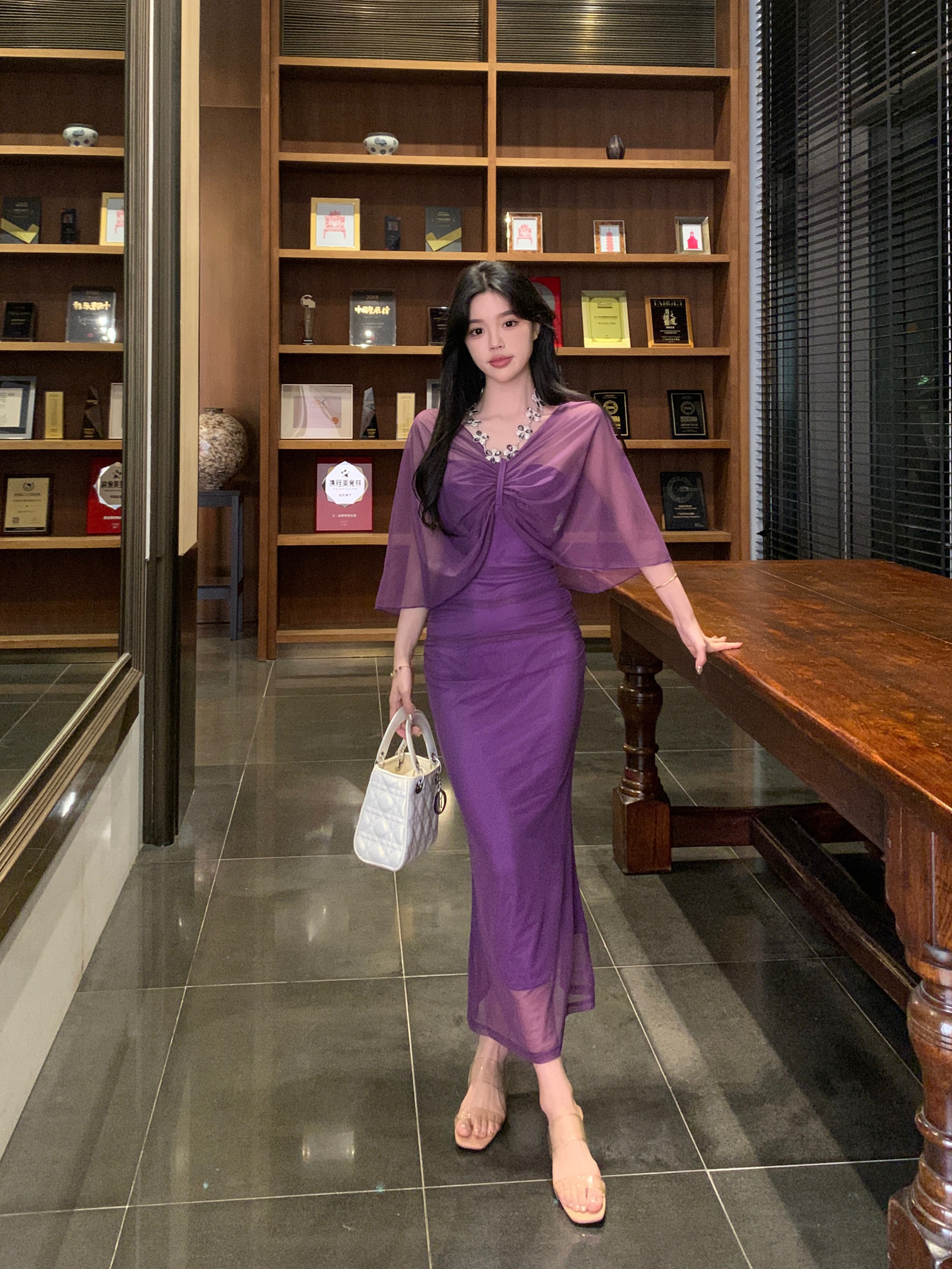 RY2302# 2026夏雾纱之梦贵气钻石纯色韵味高腰包臀连衣裙纯欲鱼尾显瘦裙女
