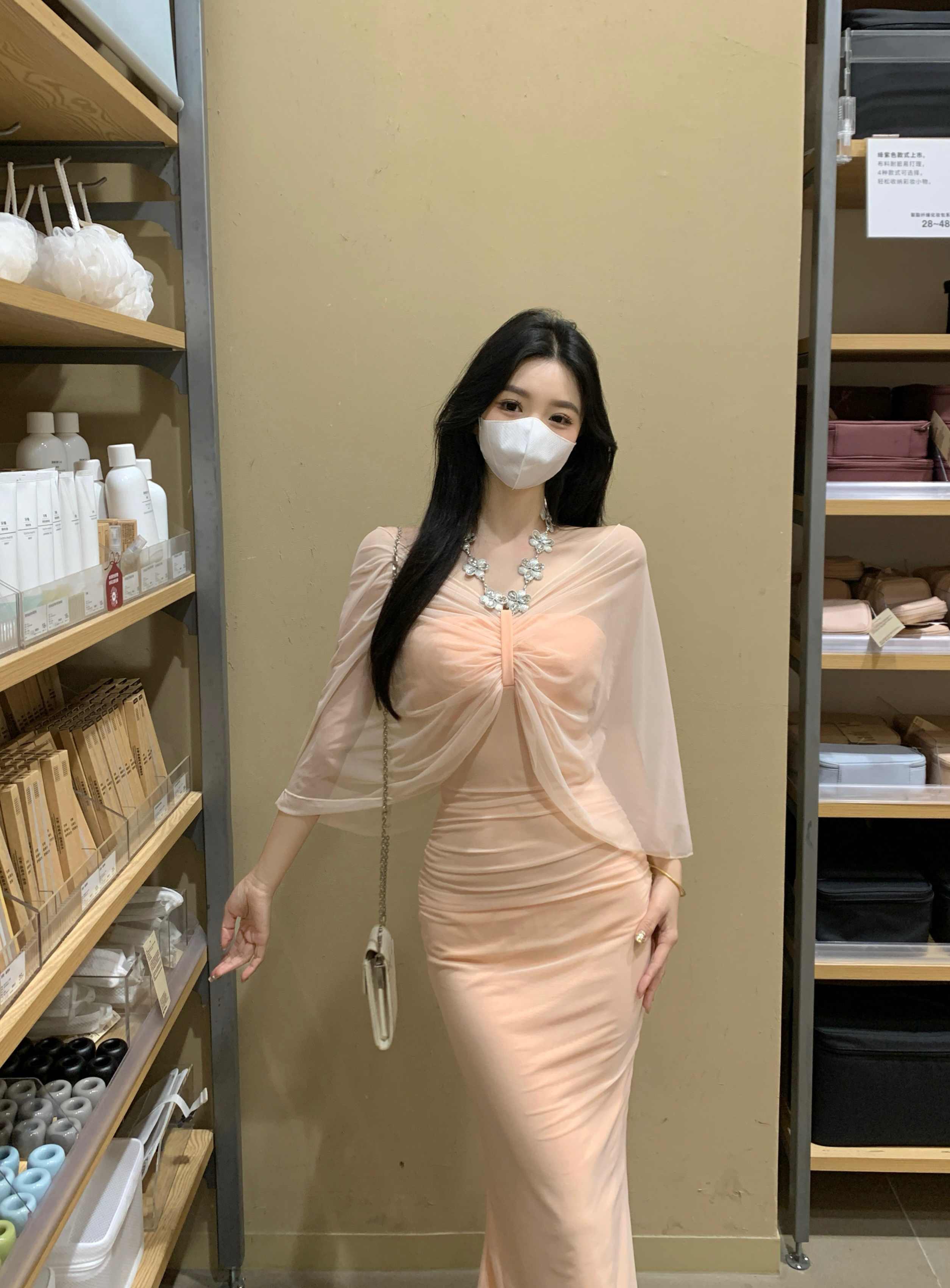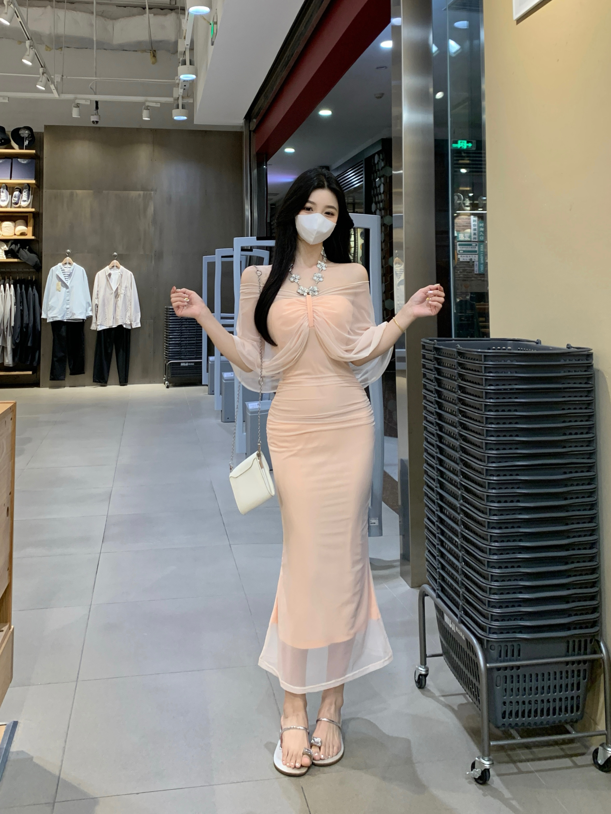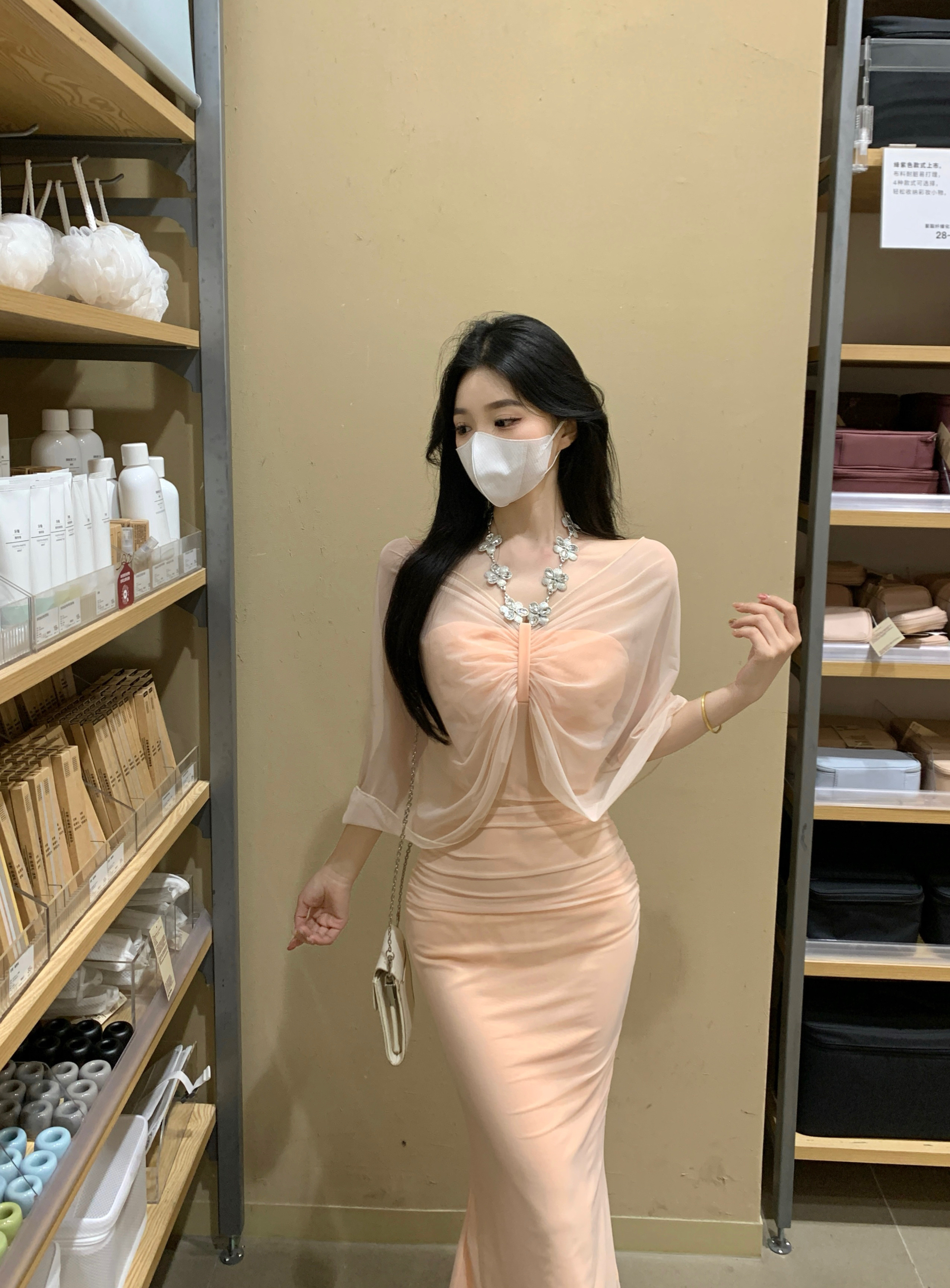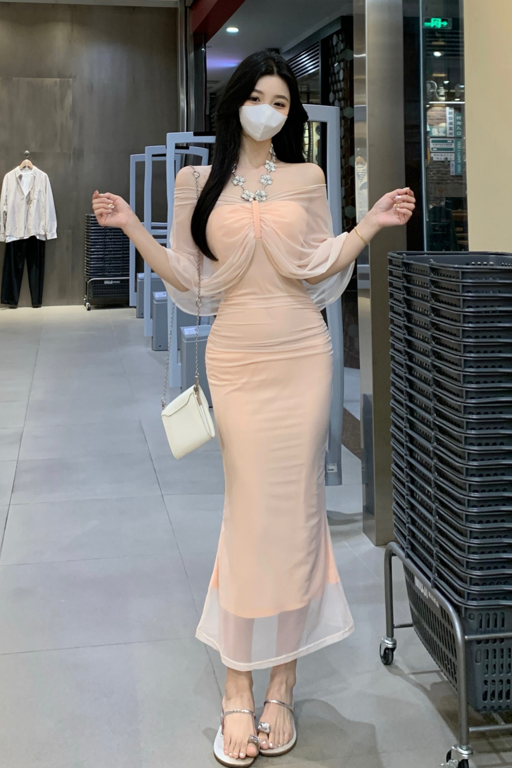 RY2302# 2026夏雾纱之梦贵气钻石纯色韵味高腰包臀连衣裙纯欲鱼尾显瘦裙女