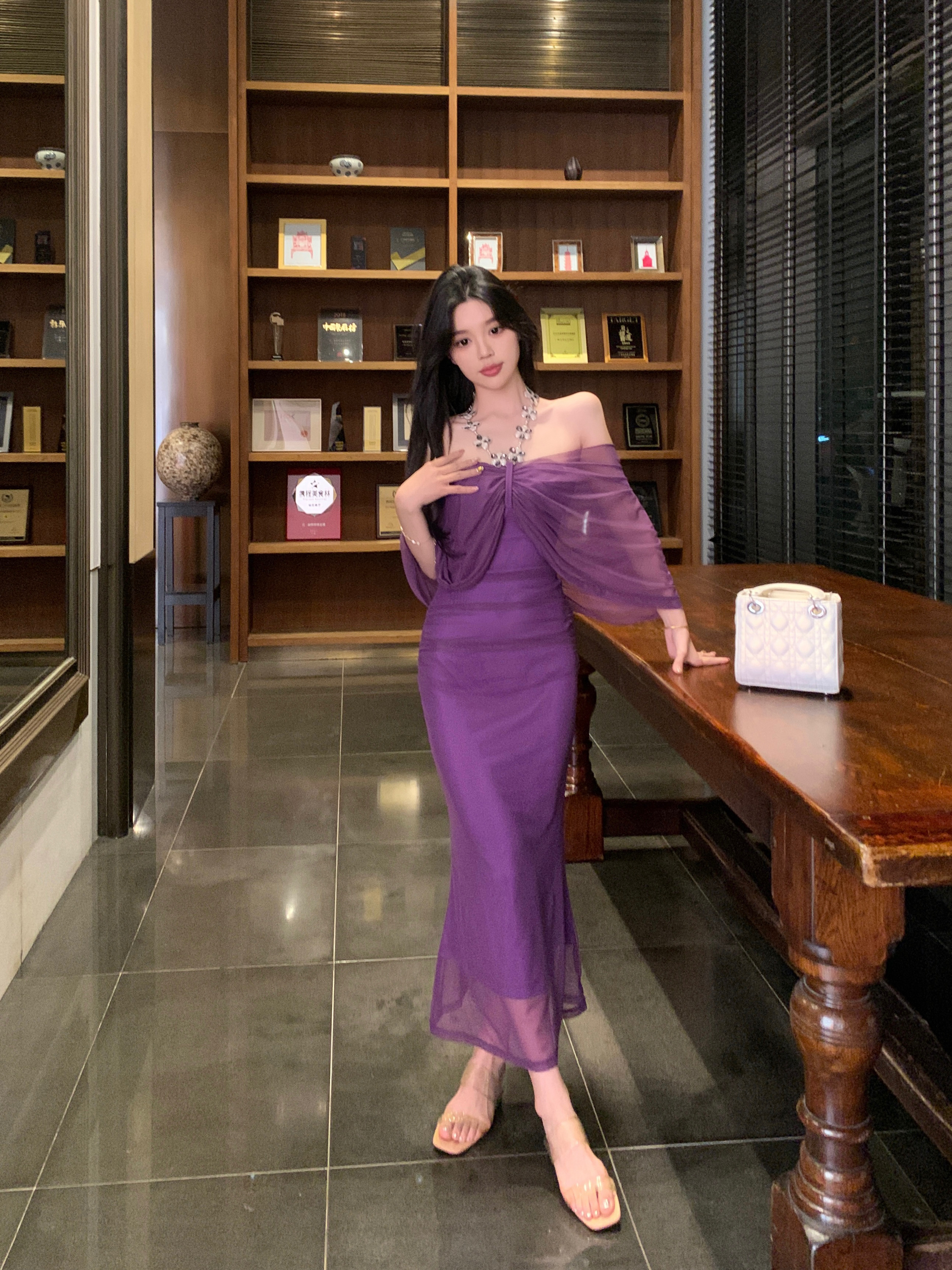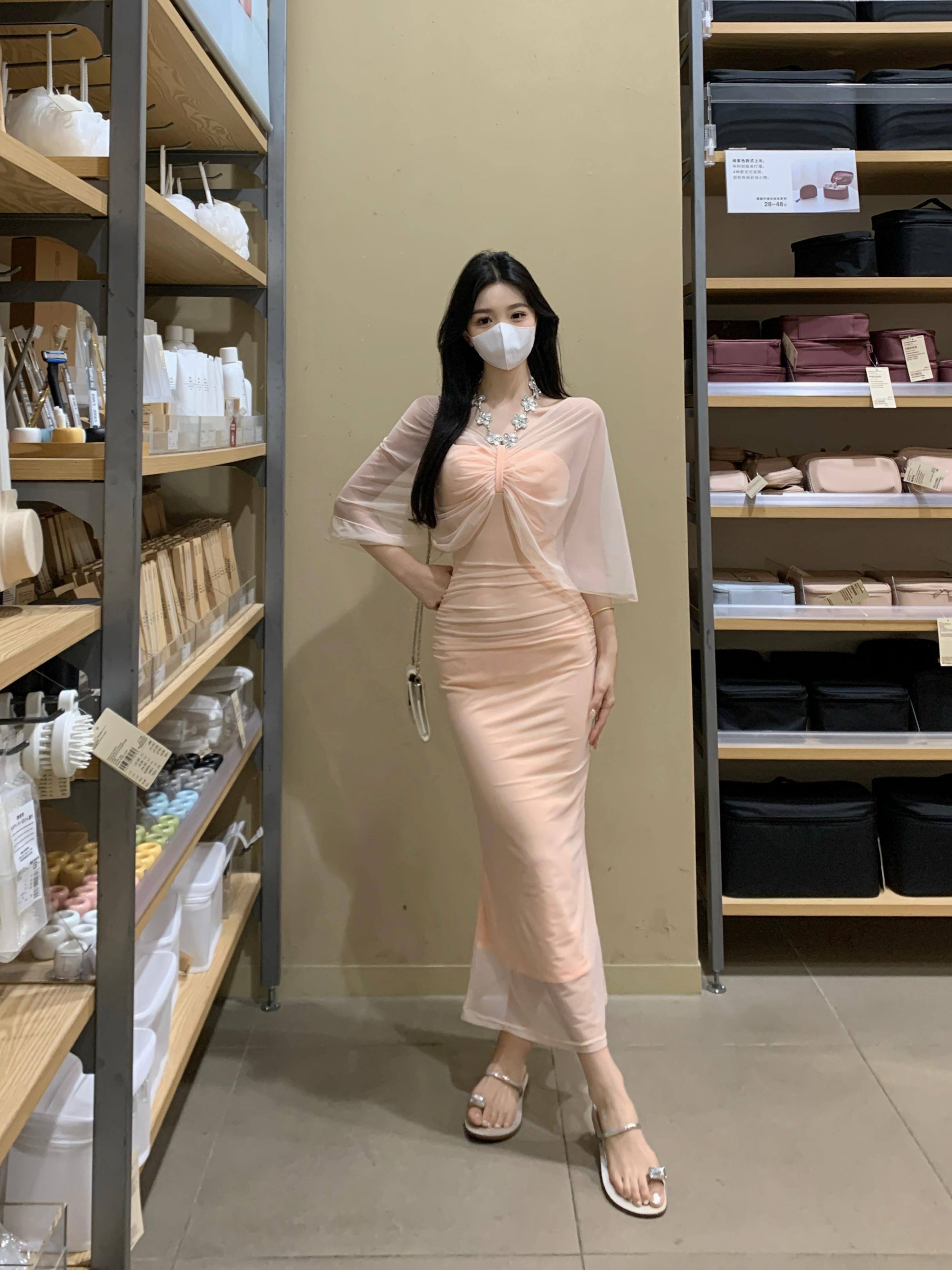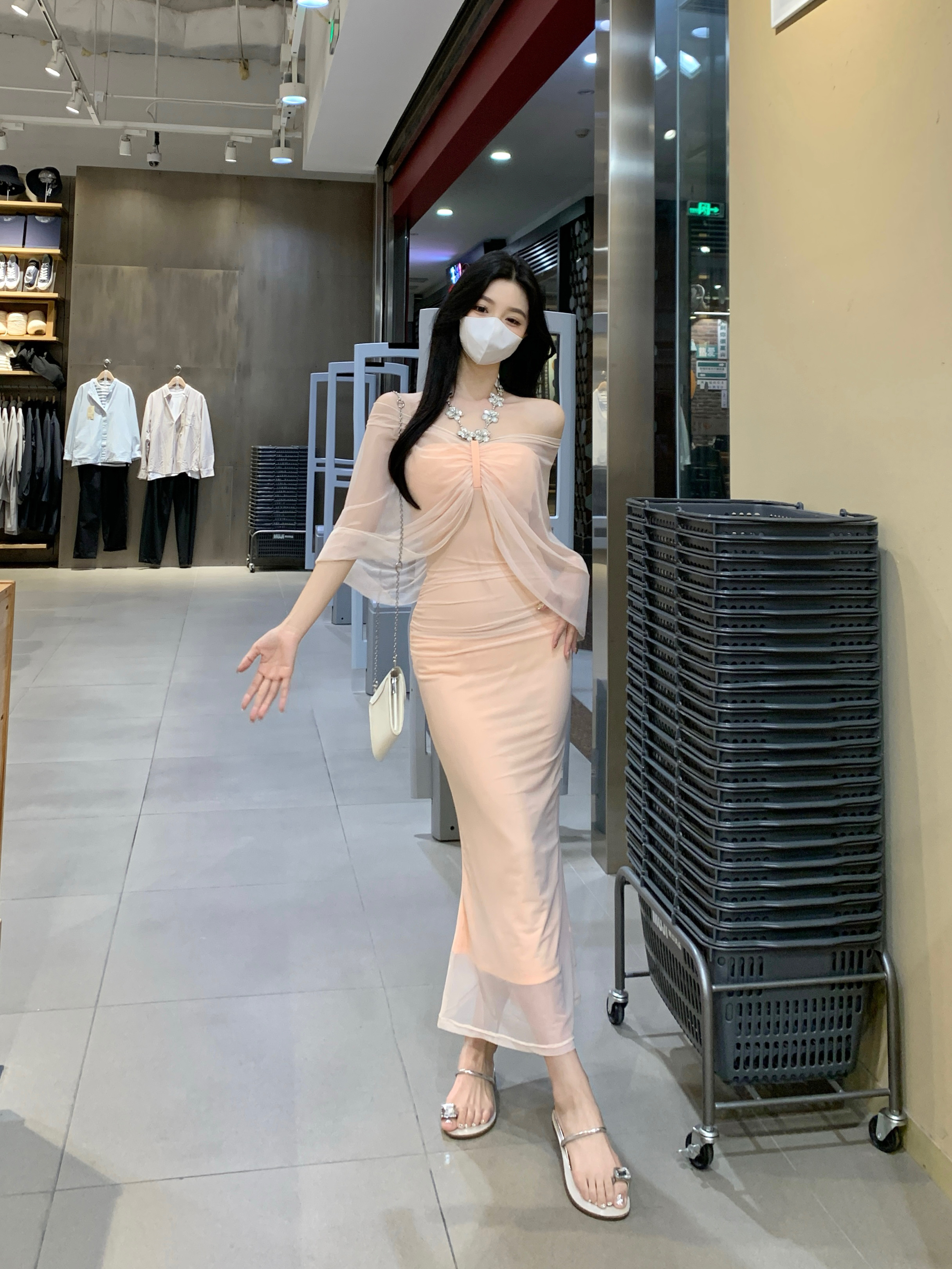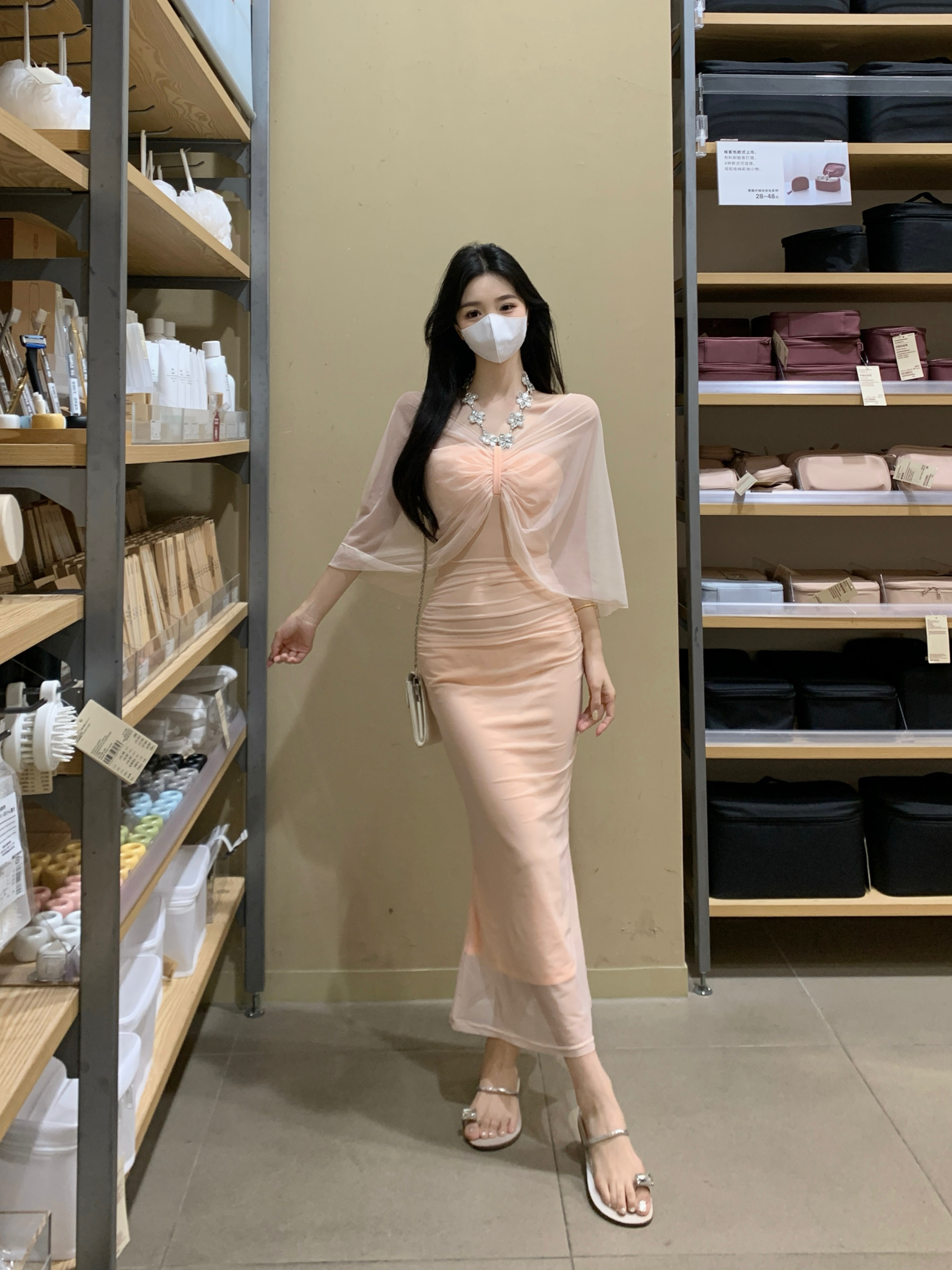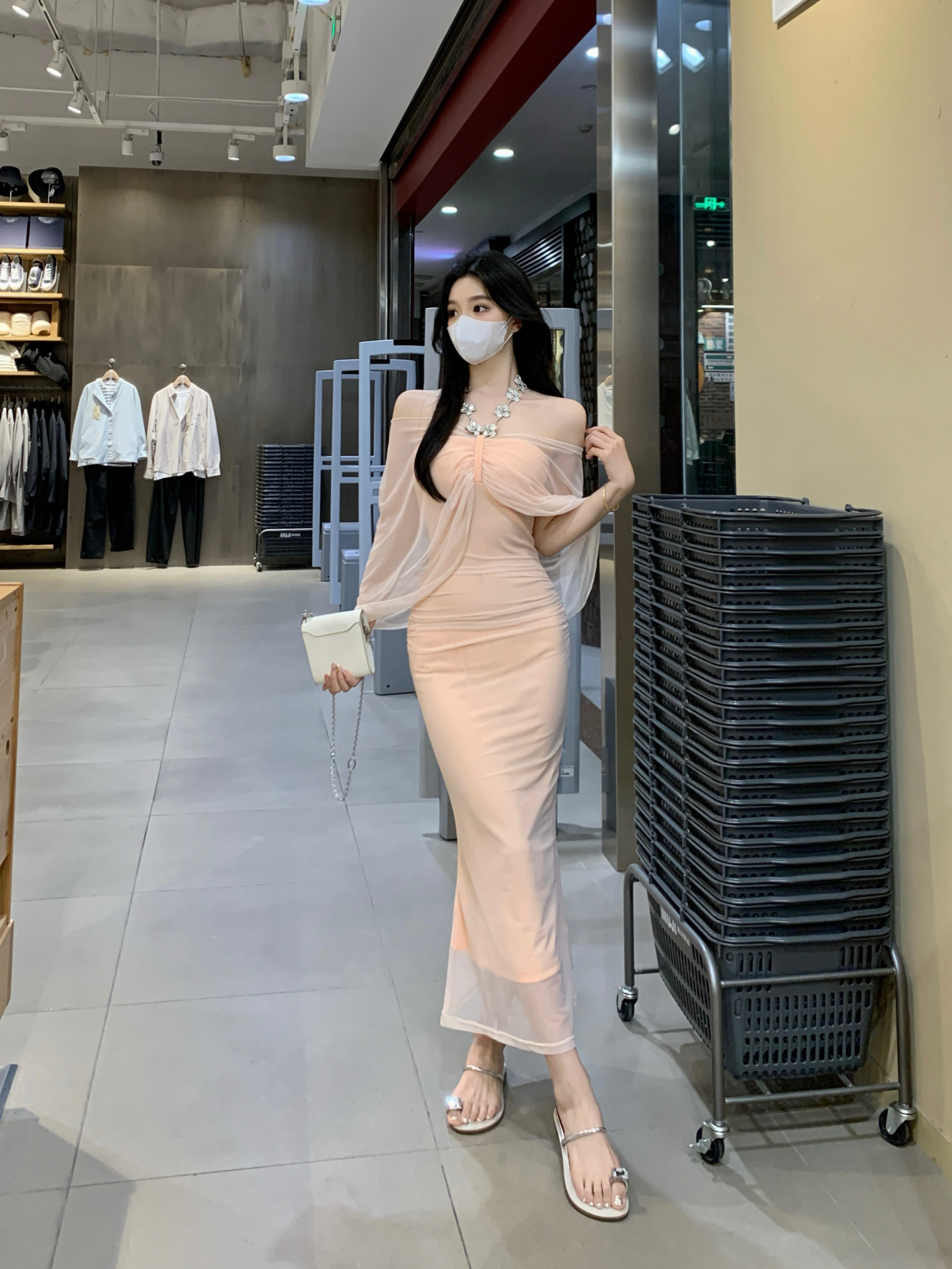 RY2302# 2026夏雾纱之梦贵气钻石纯色韵味高腰包臀连衣裙纯欲鱼尾显瘦裙女
