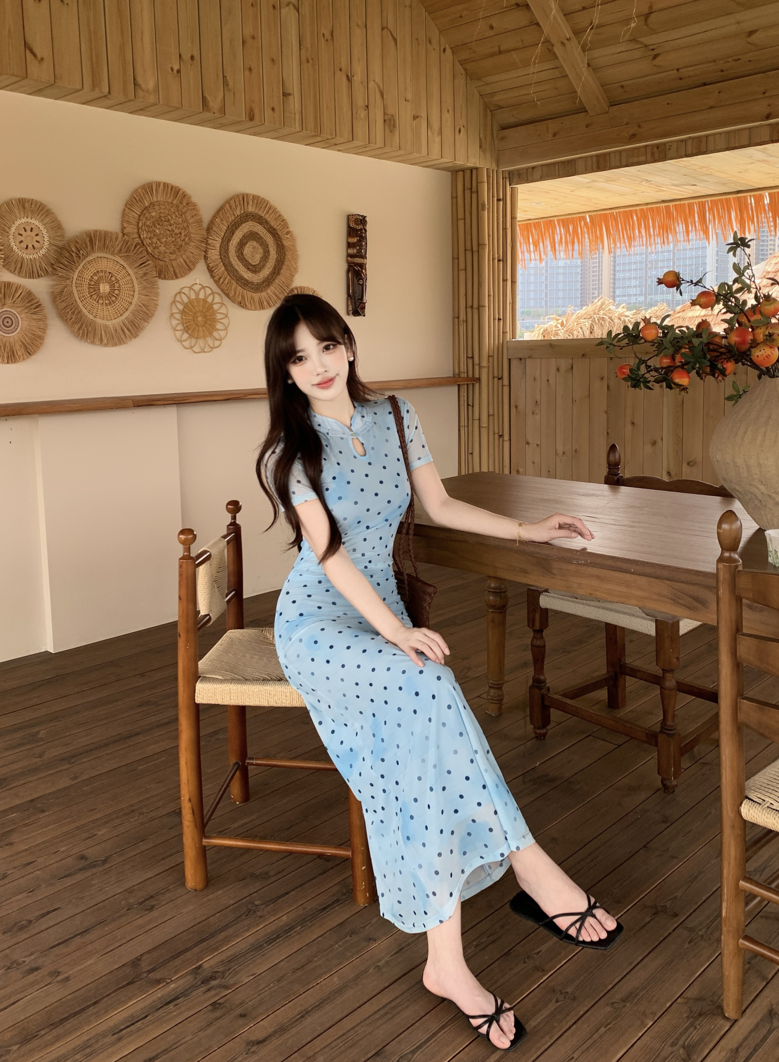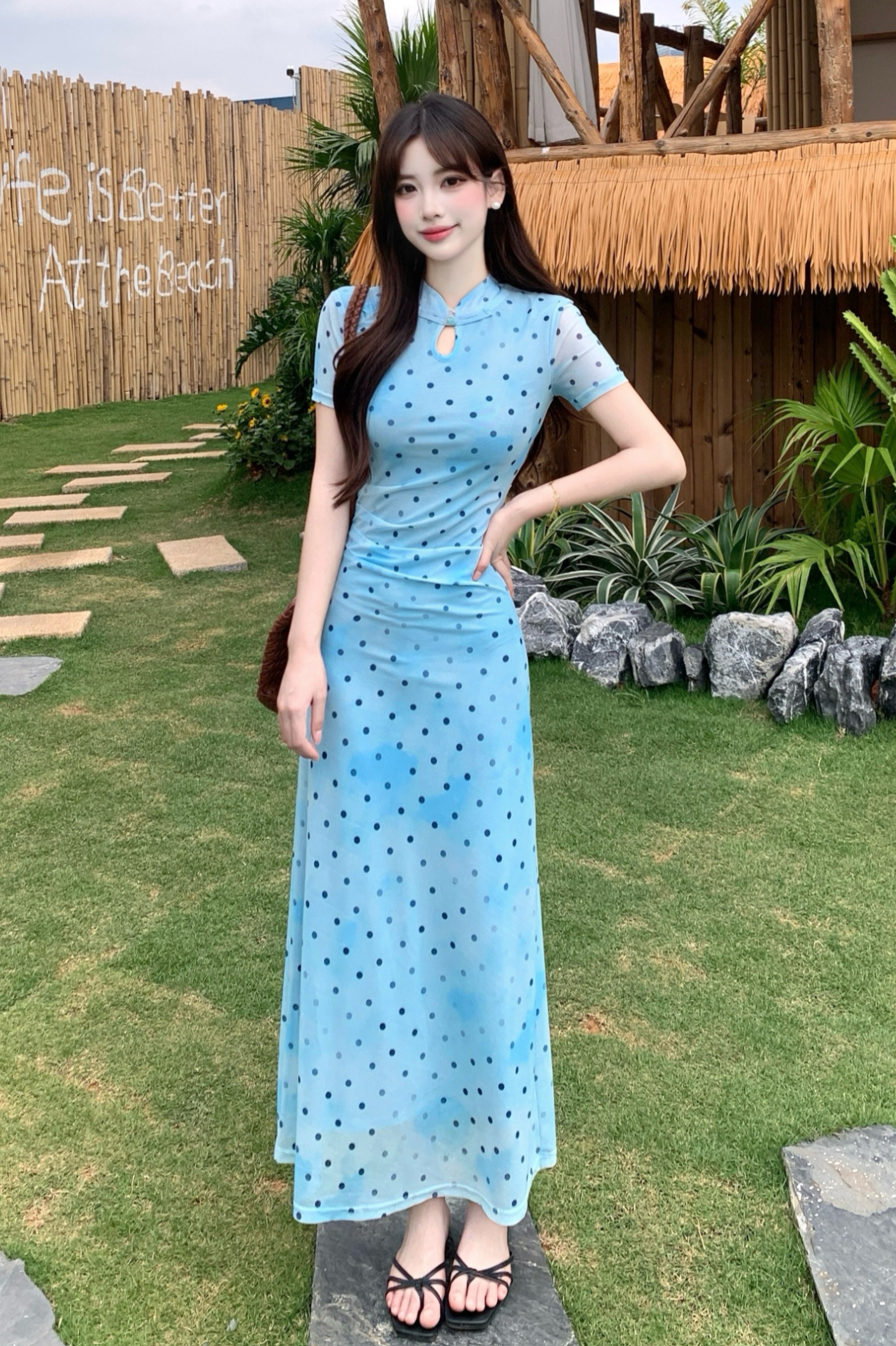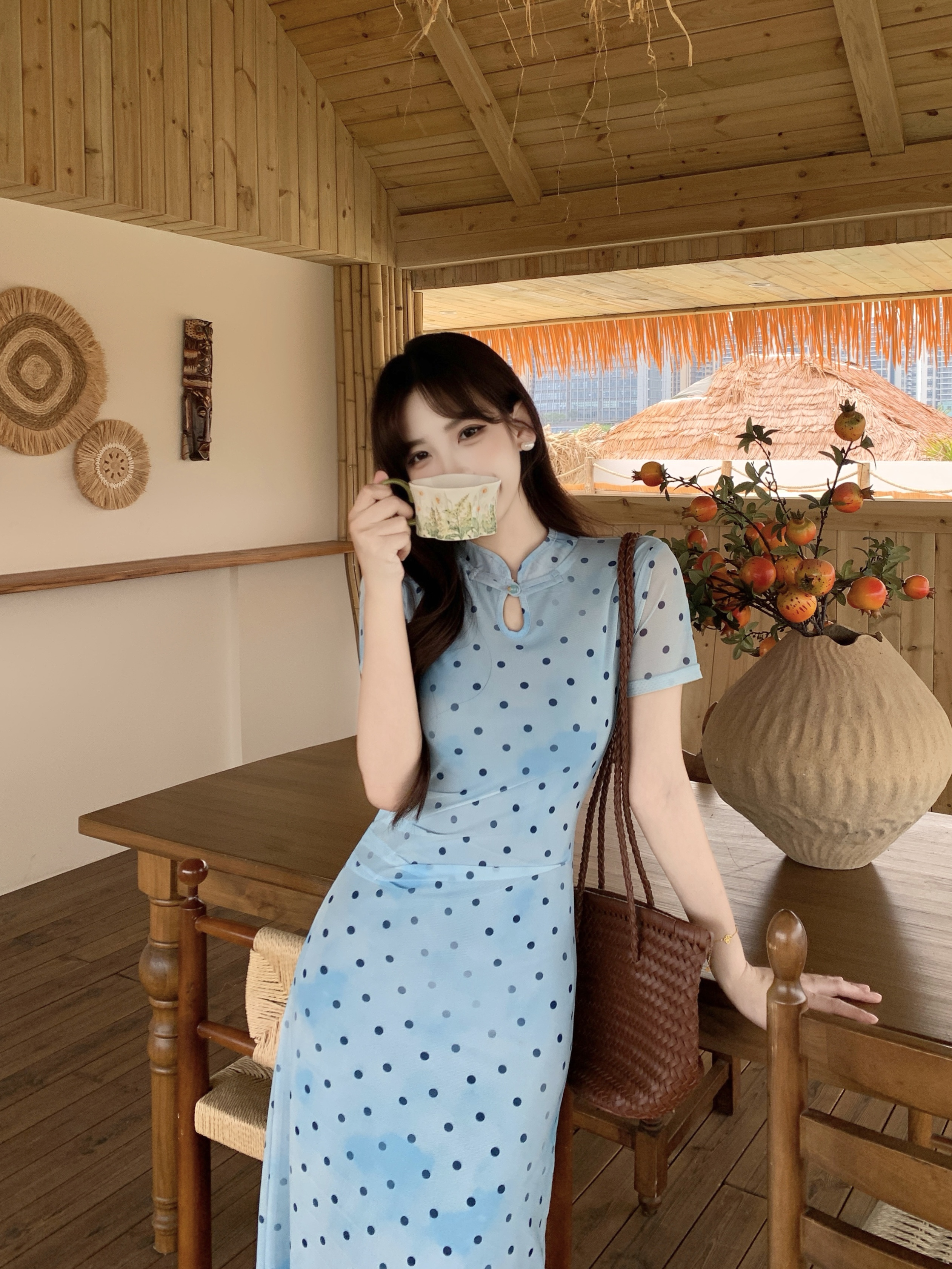 蓝色波点裙