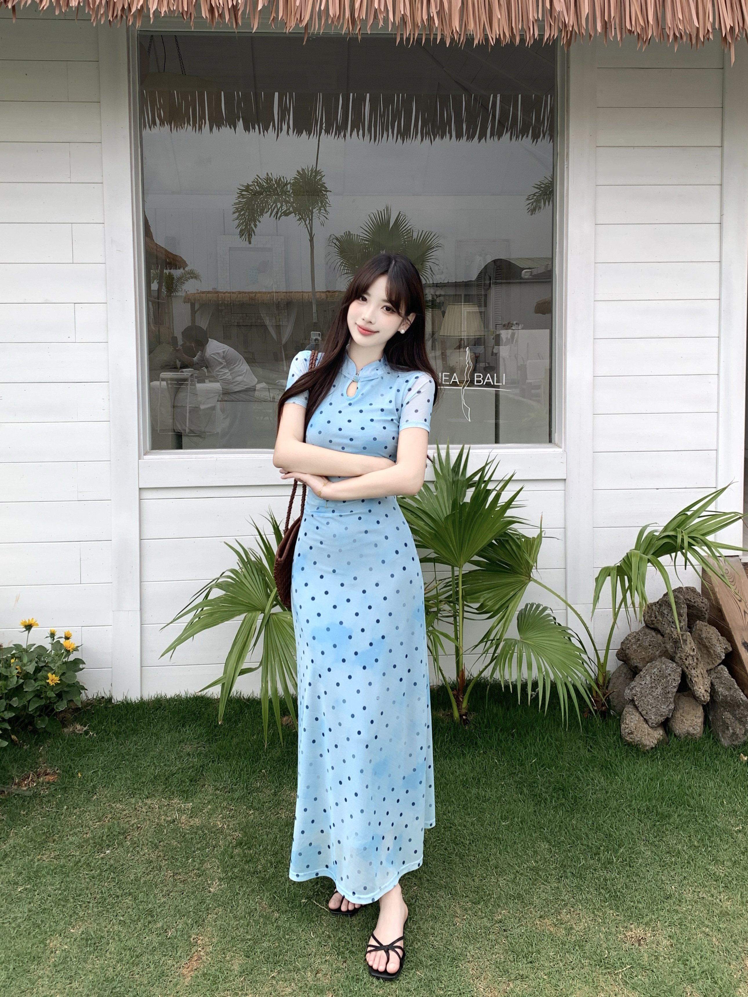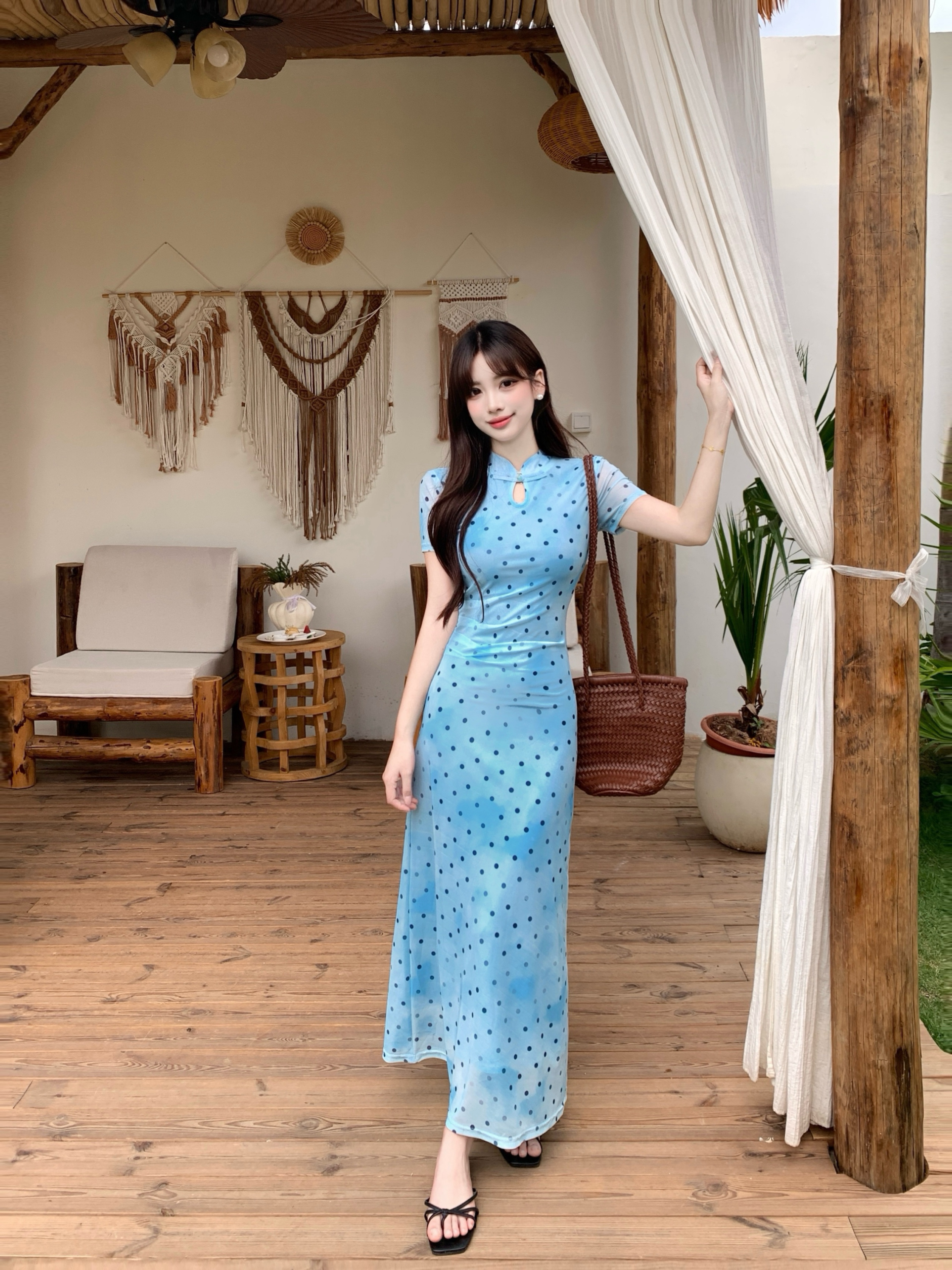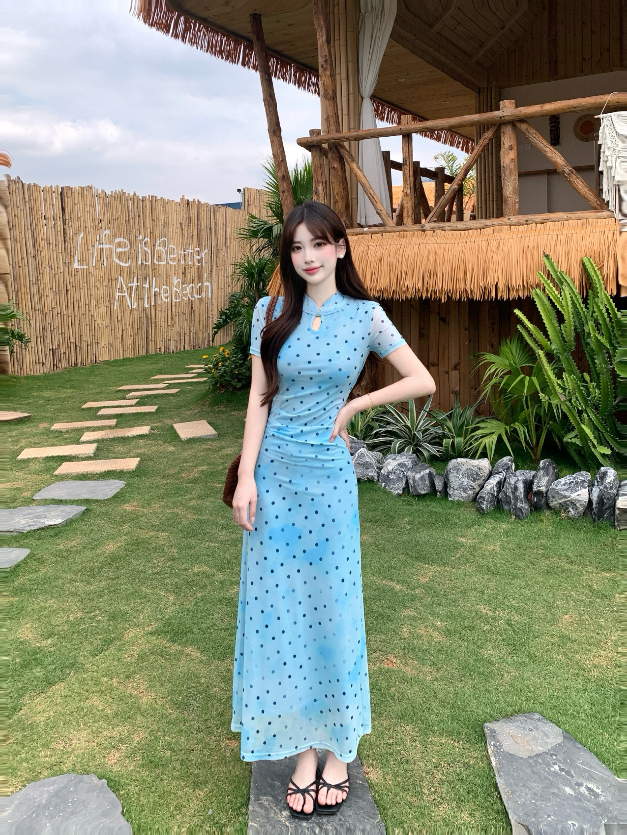 蓝色波点裙