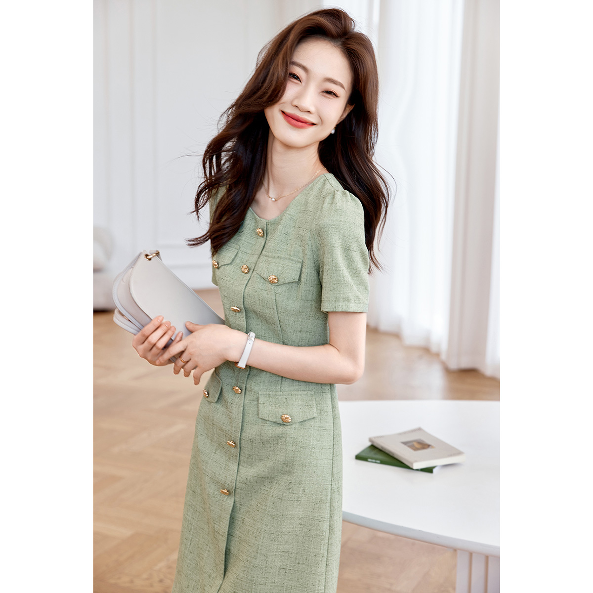 RY2312# 气质法式小香风裙子2026年夏季新款精致淑女百搭显瘦连衣裙