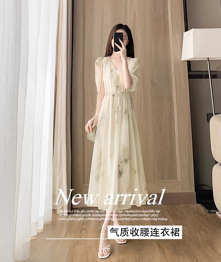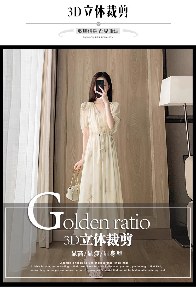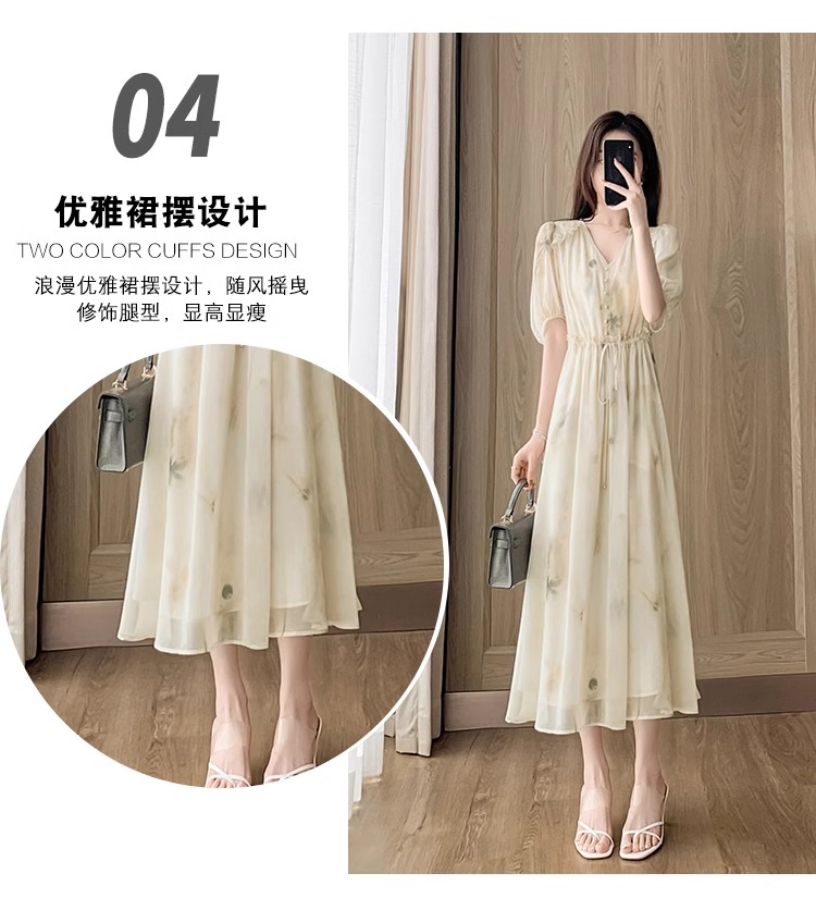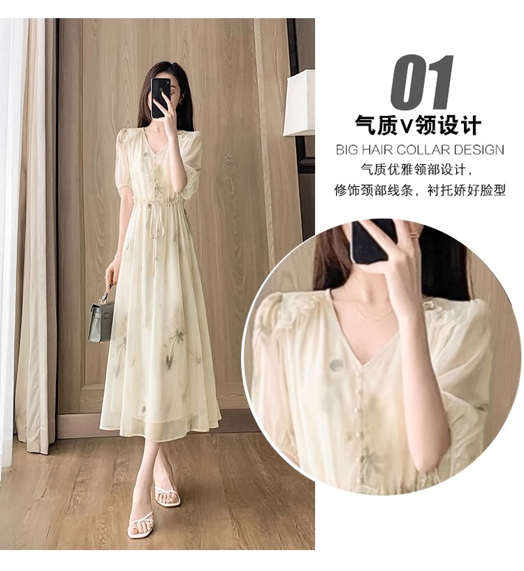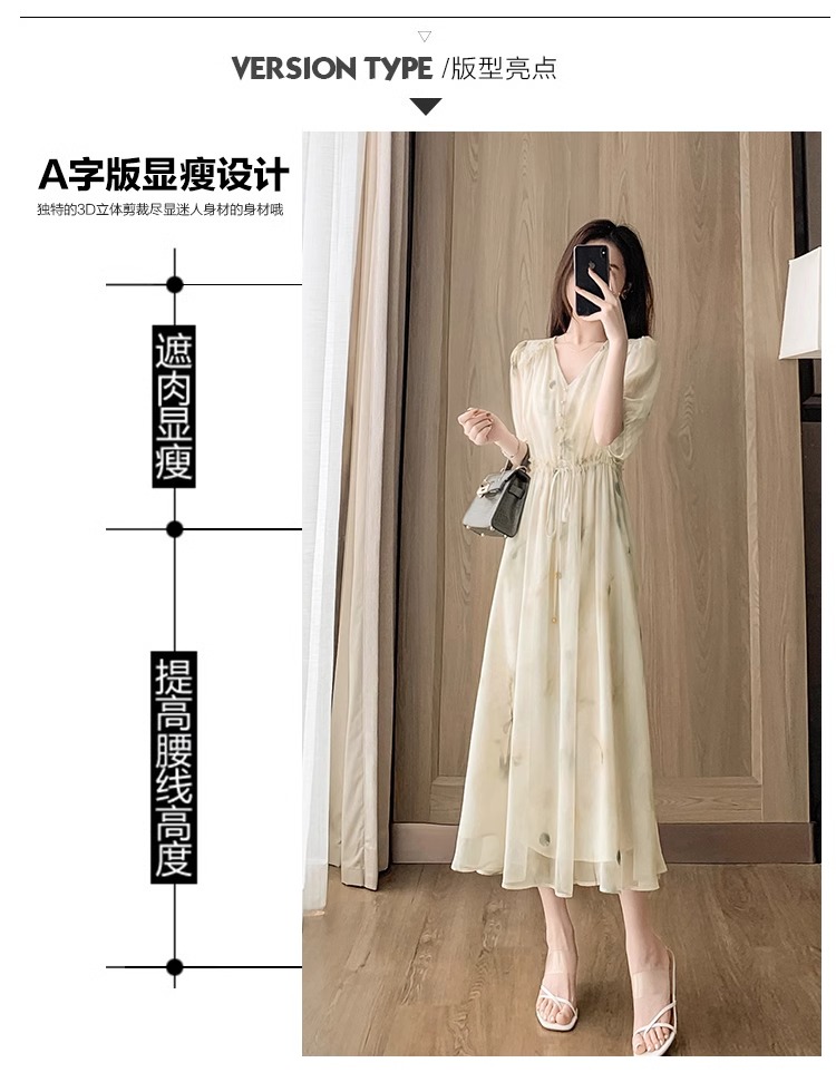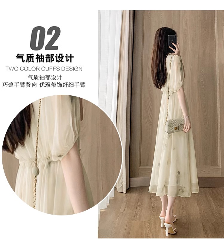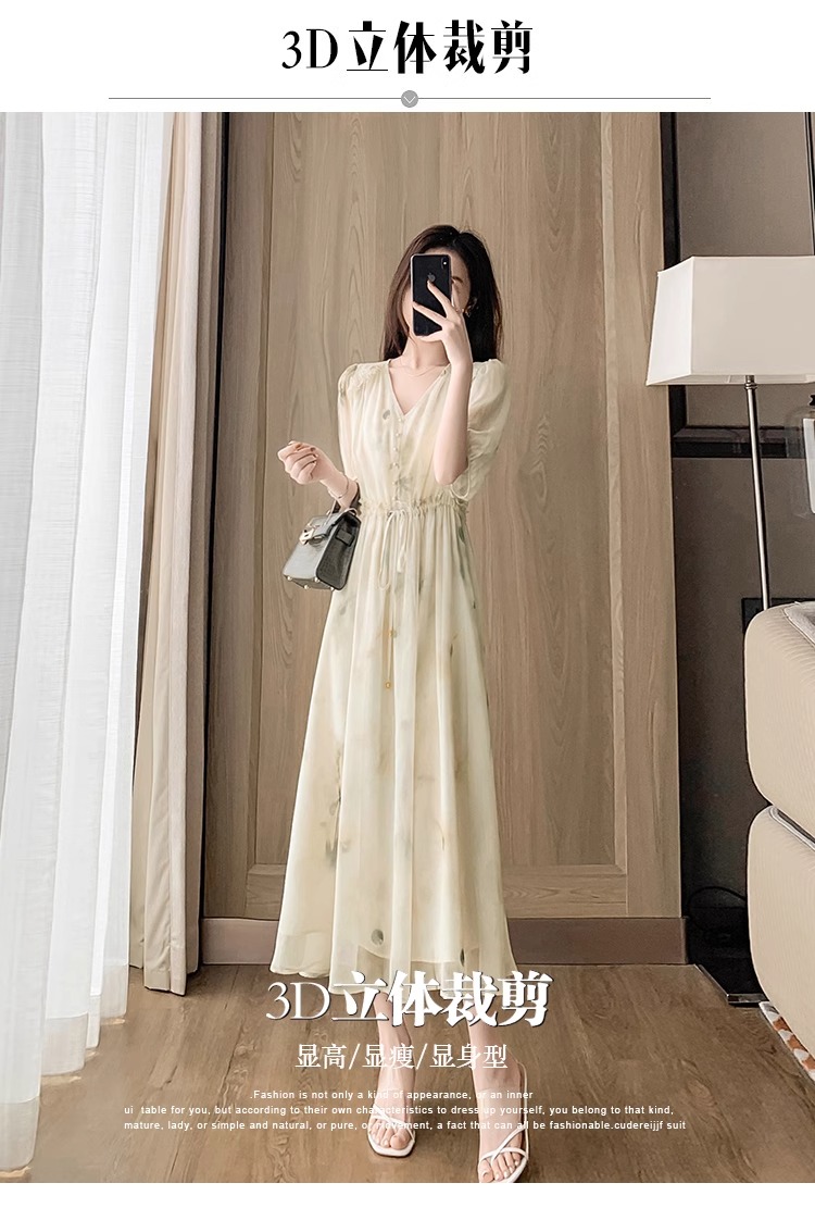 RY2314# 超仙高级感碎花雪纺连衣裙女夏2026新款收腰显瘦气质遮肚a字裙子
