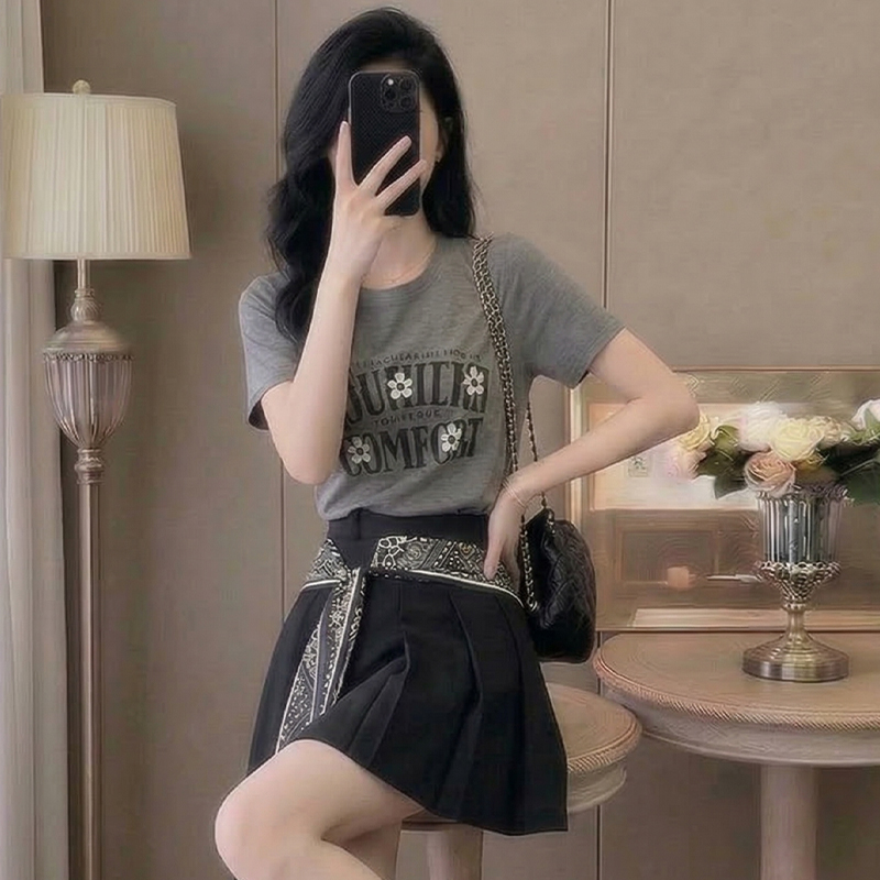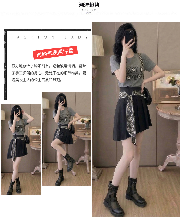 RY2323# 2026夏季新款大码女装胖妹妹时尚减龄宽松遮肉显瘦两件套套...