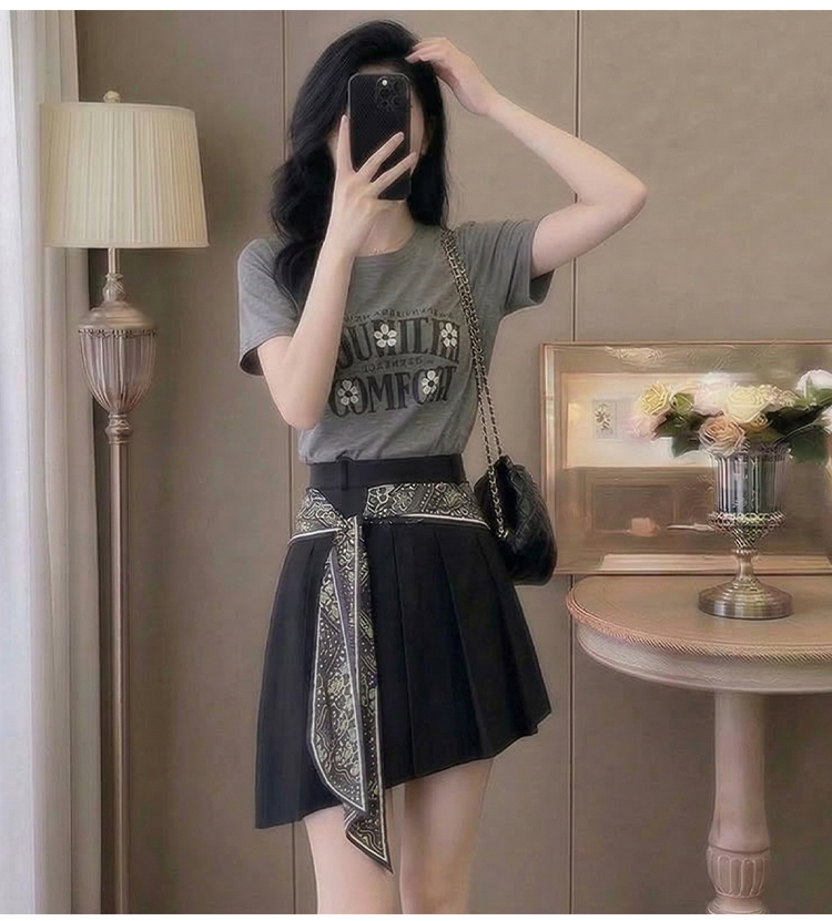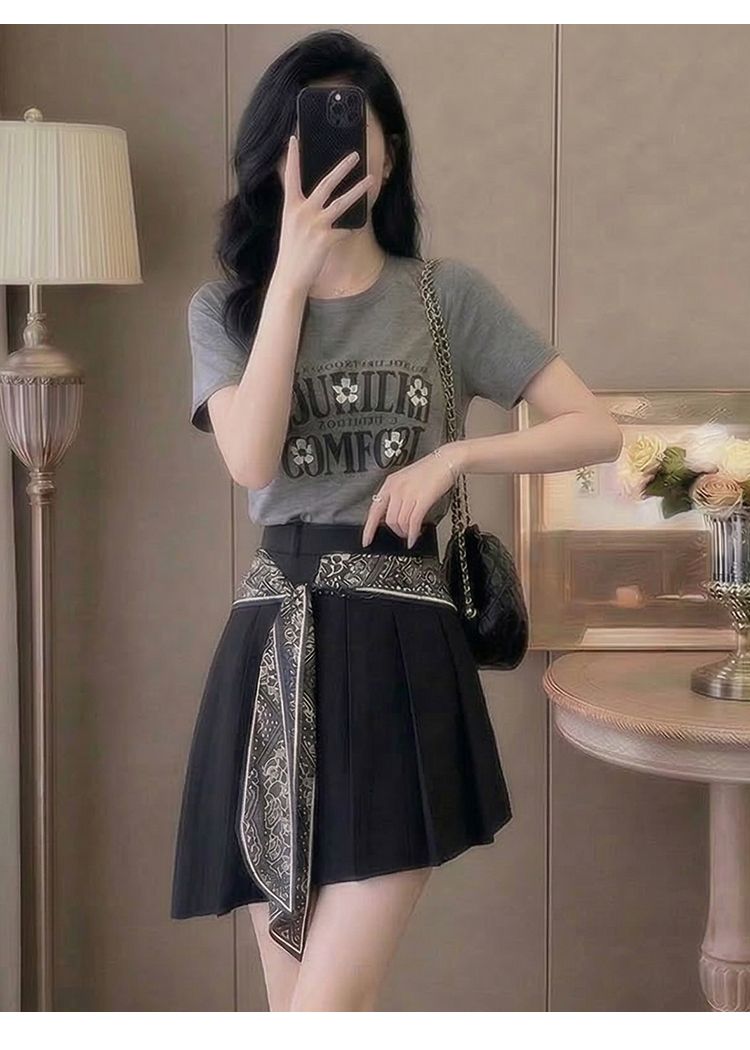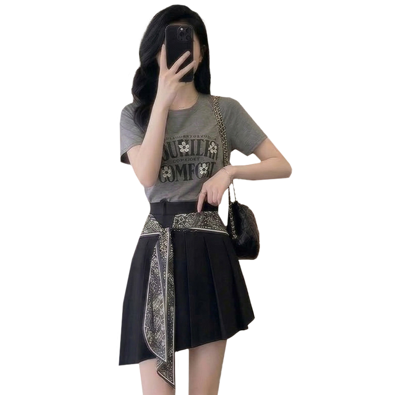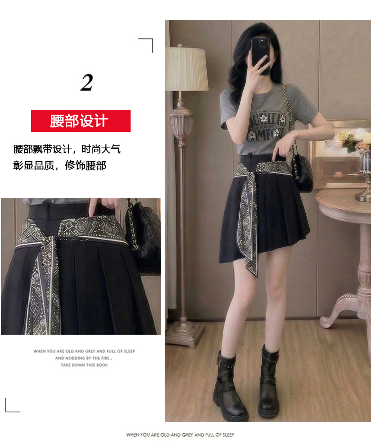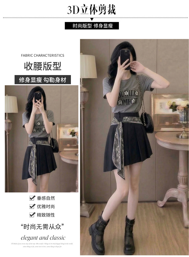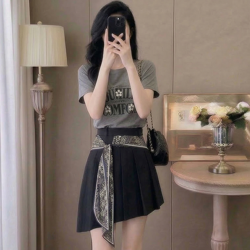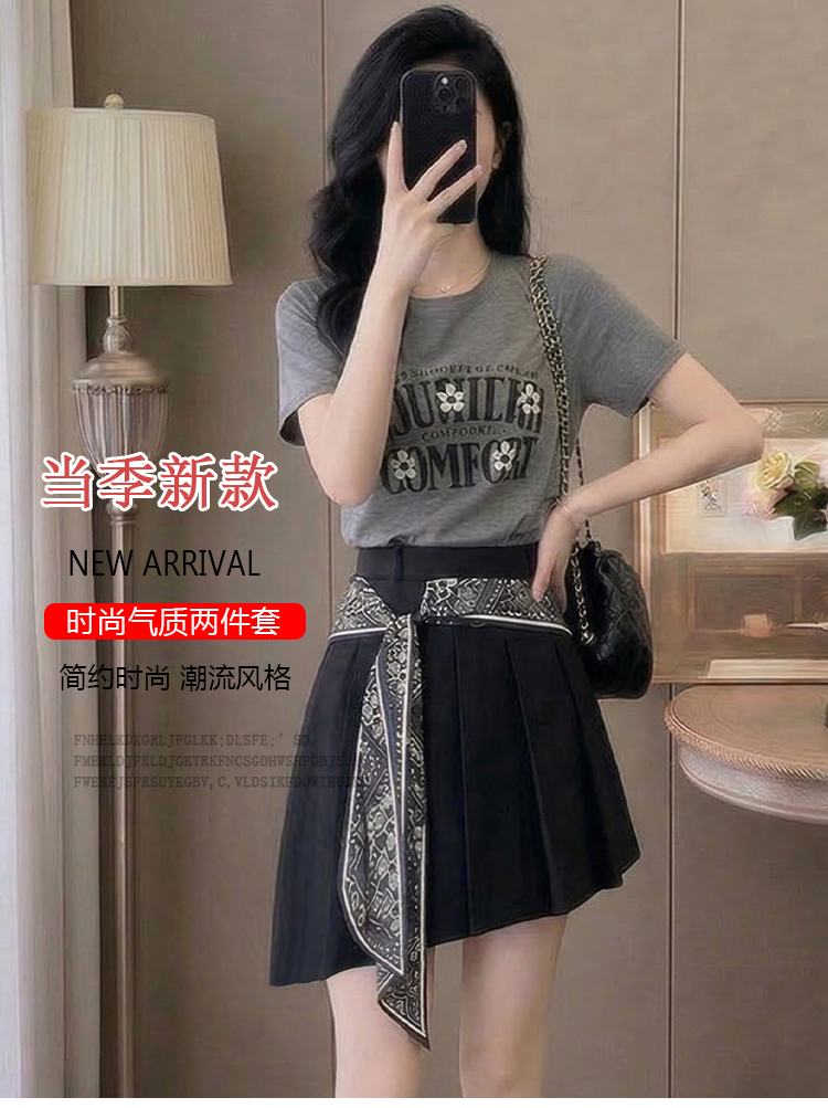 RY2325# 2026夏季新款旷野风眠莱赛尔薄款短袖+飘带不规则百褶裙两件套女