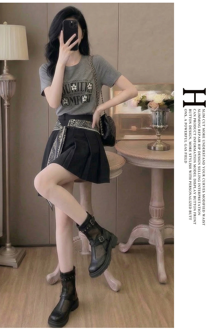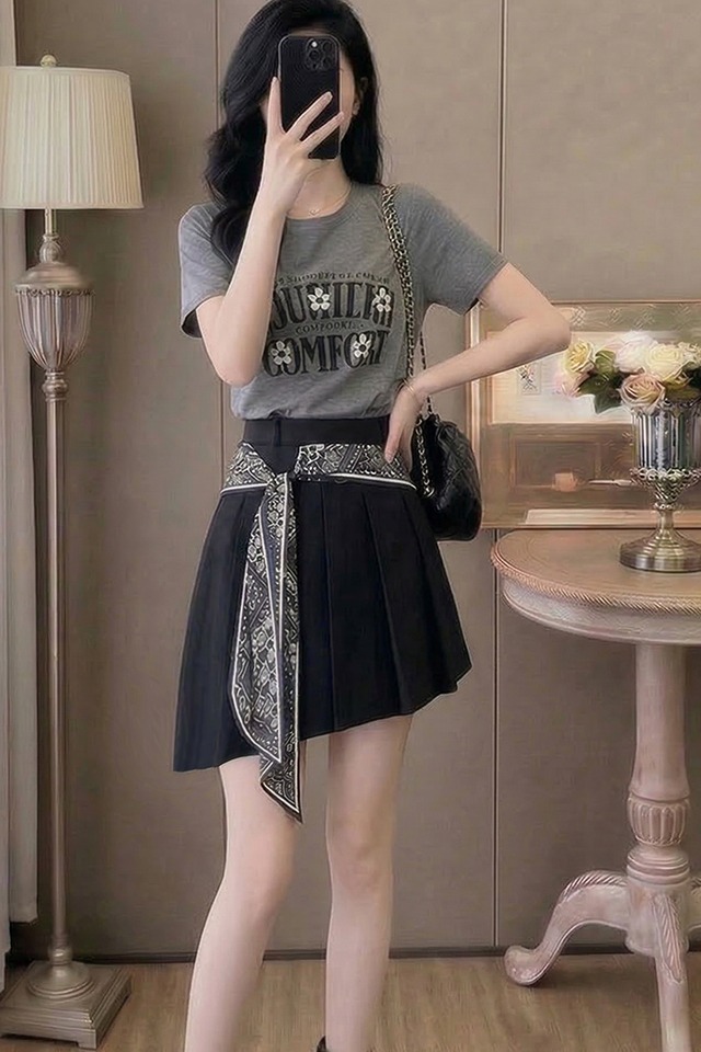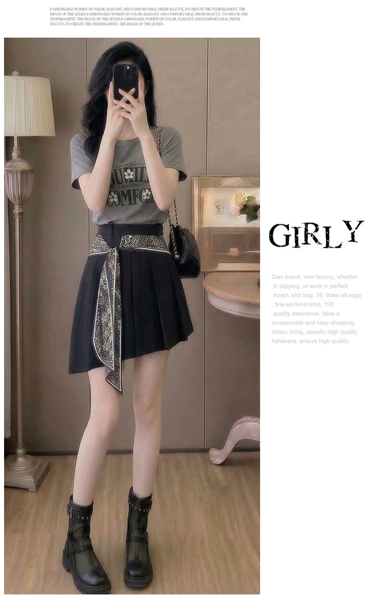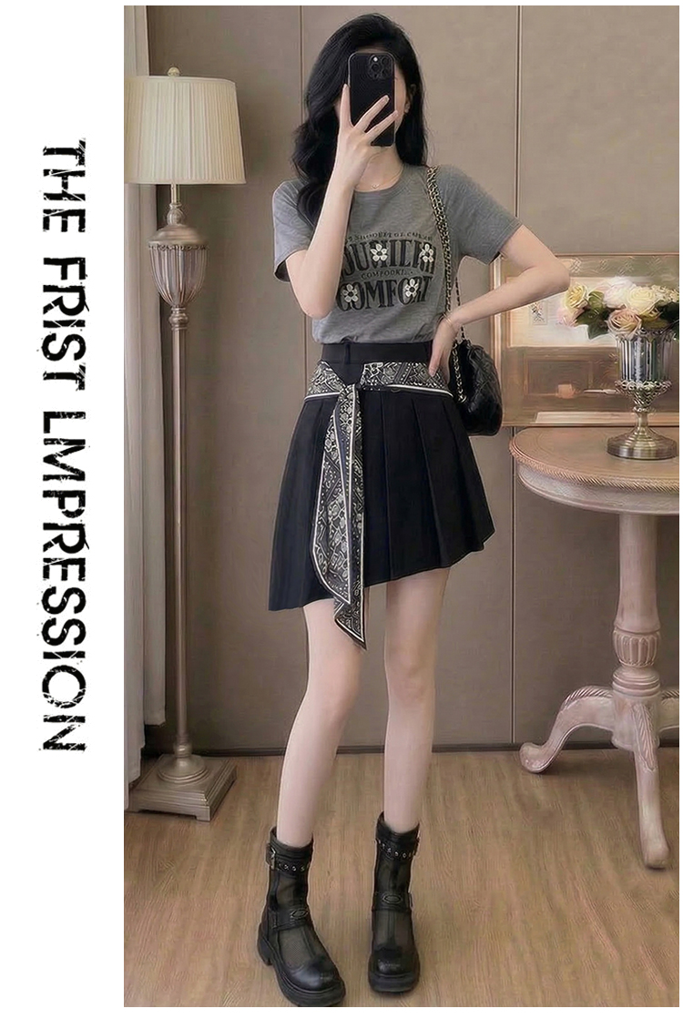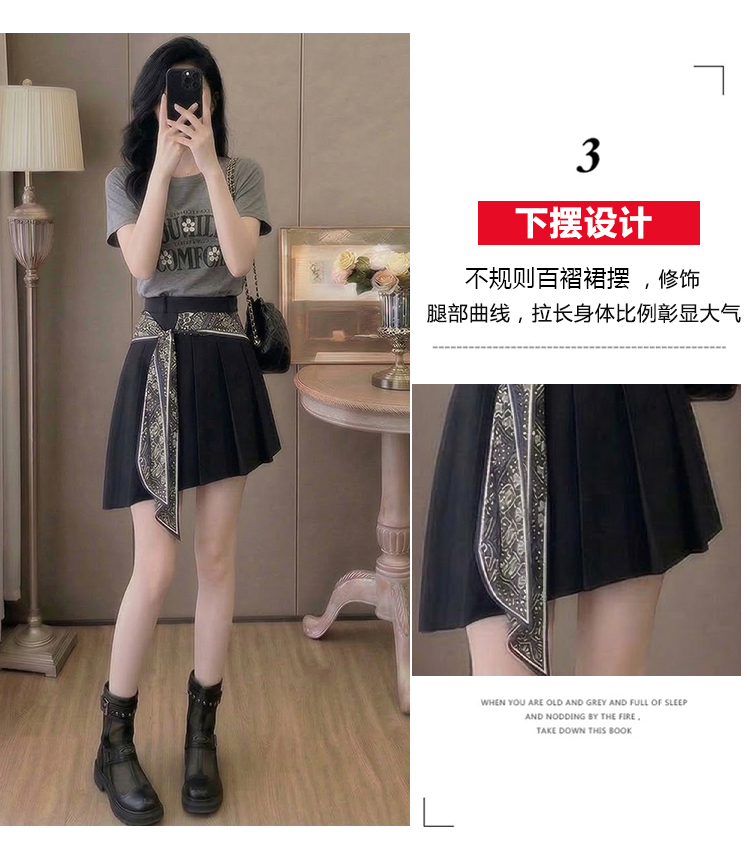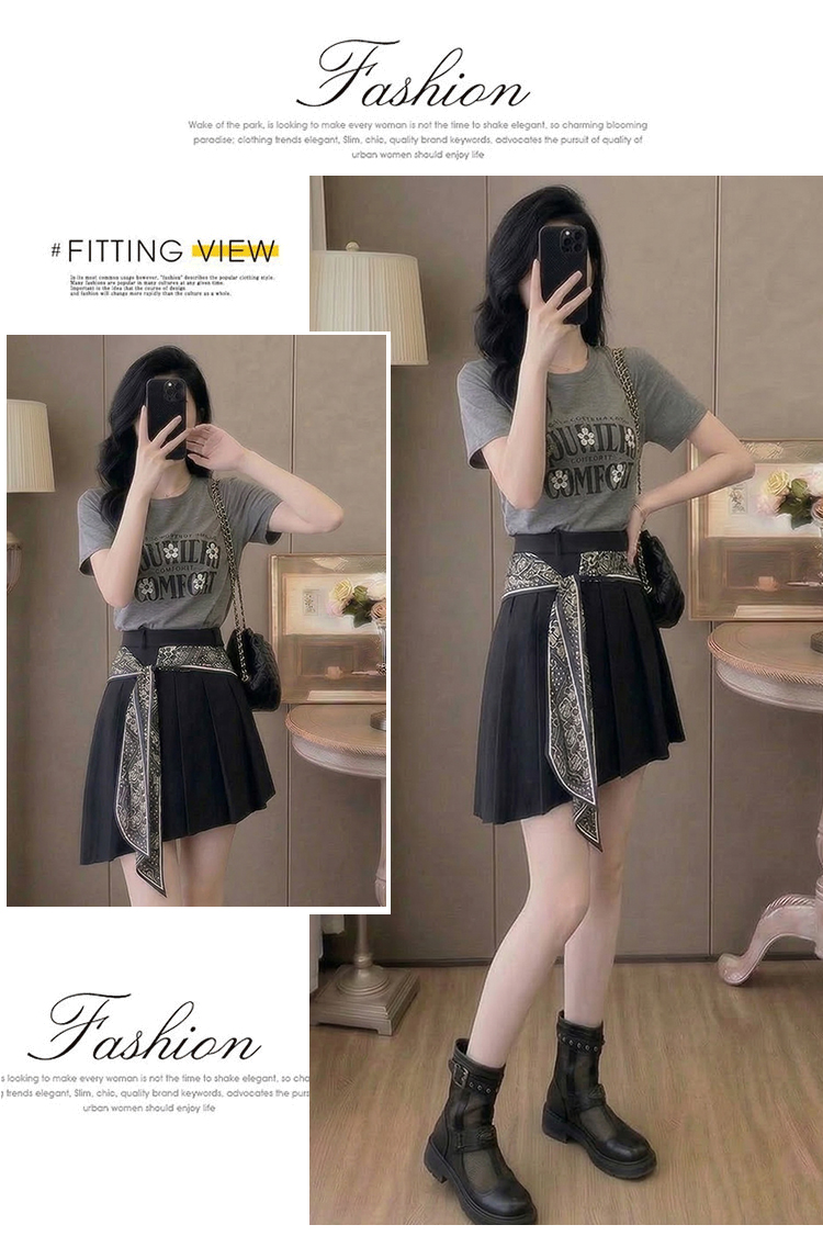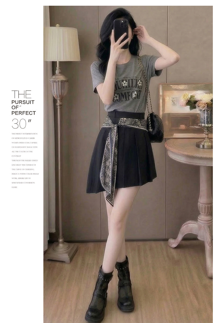 RY2325# 2026夏季新款旷野风眠莱赛尔薄款短袖+飘带不规则百褶裙两件套女