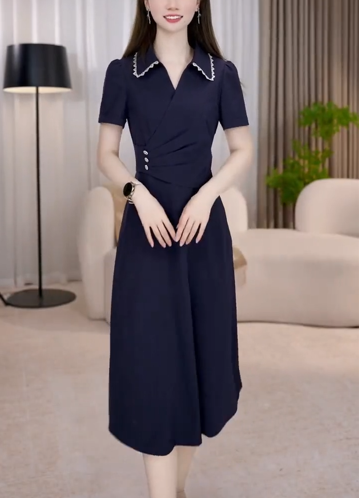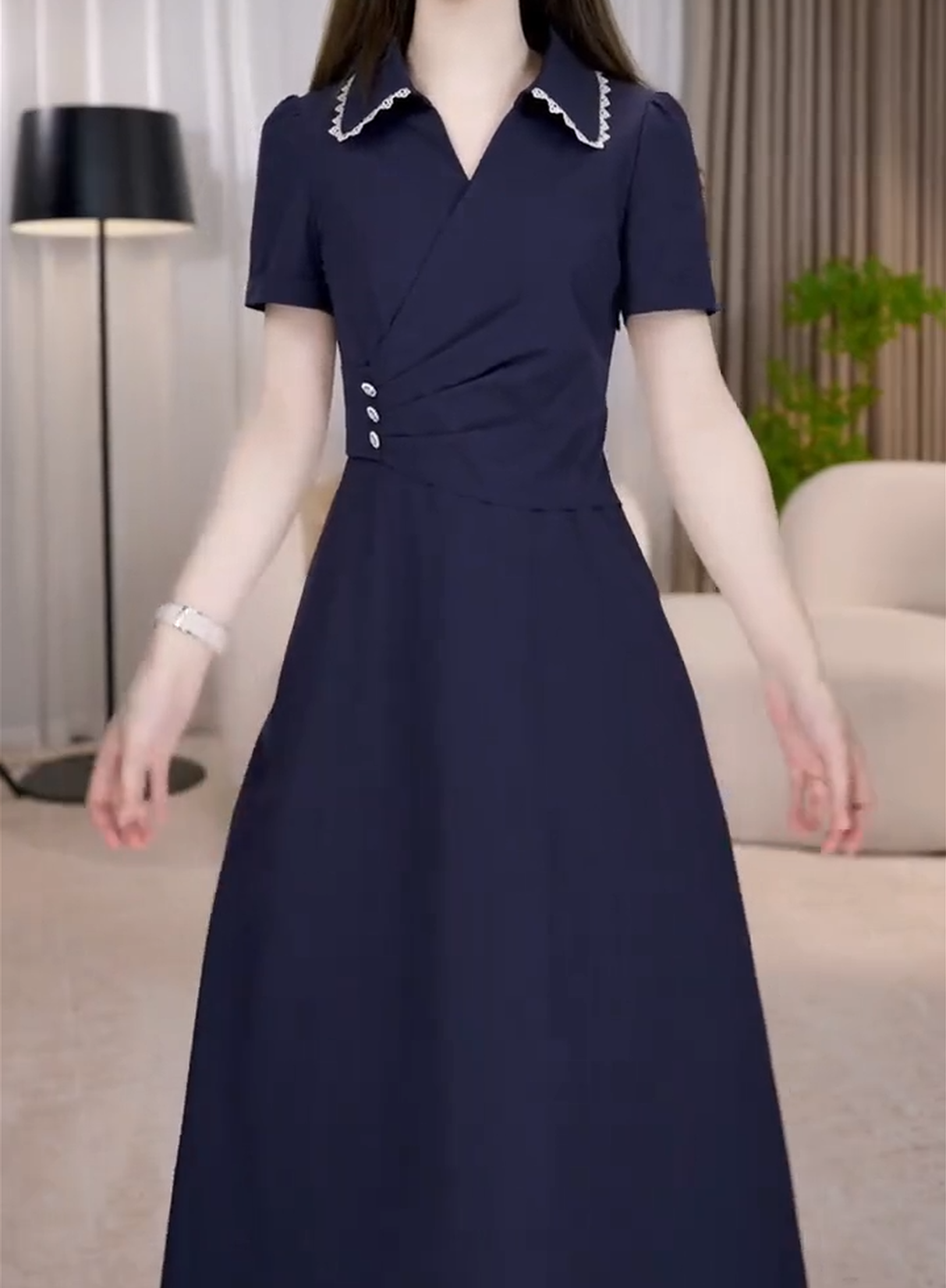 RY2350# 新中式大码短袖连衣裙女夏季新款气质中长款收腰显瘦中年妈妈裙子