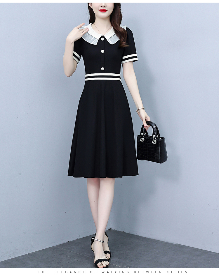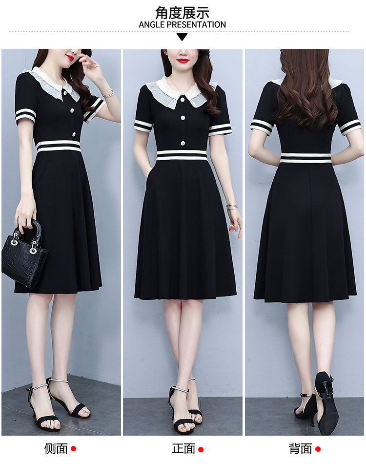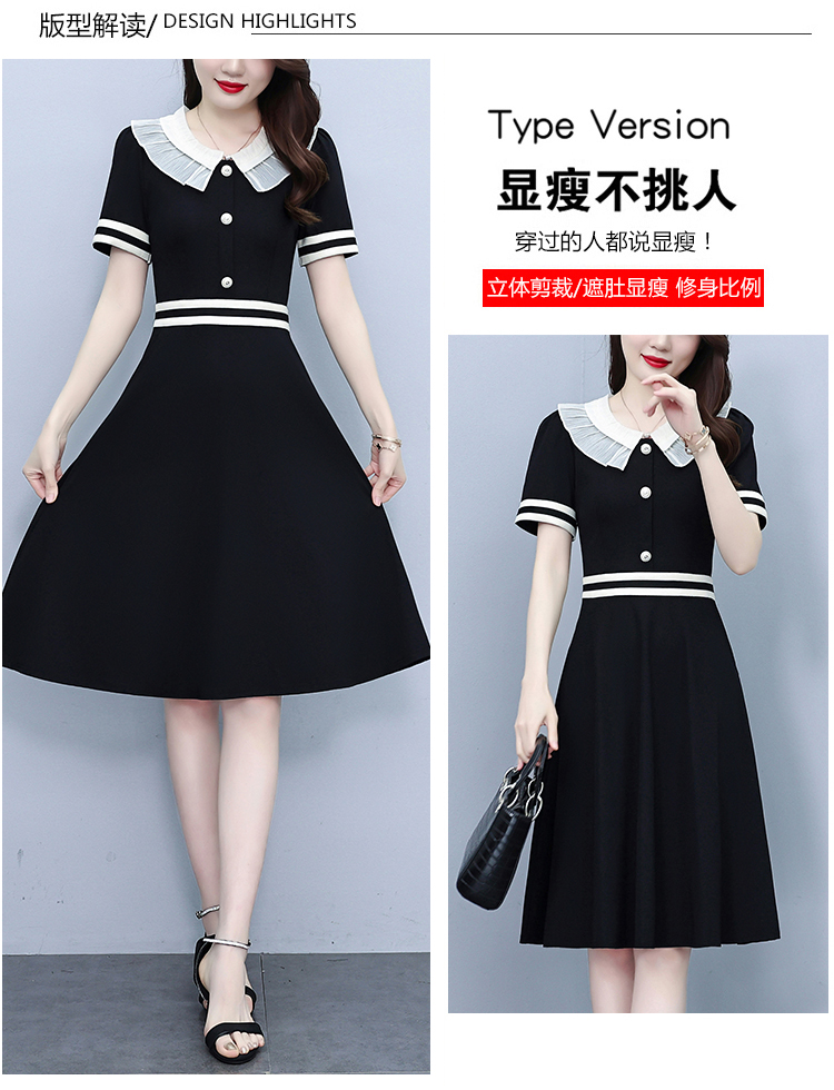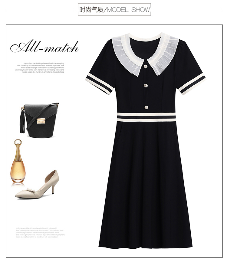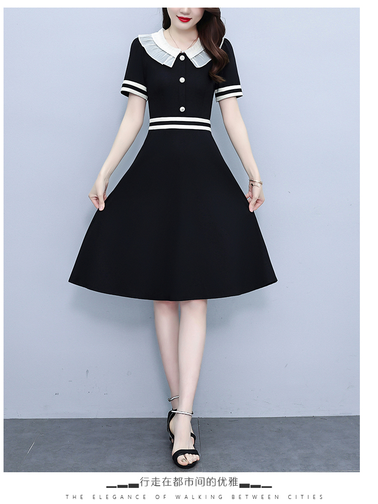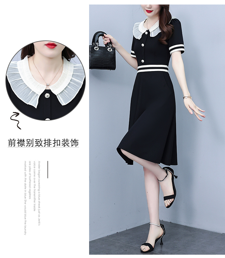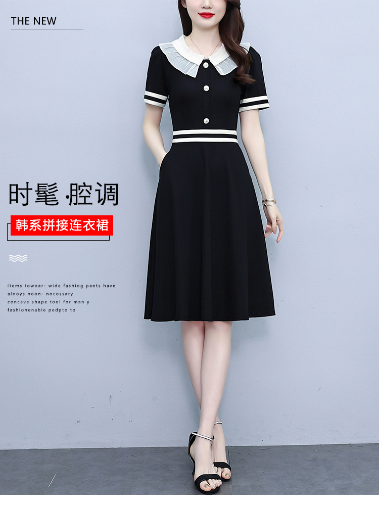 RY2365# 实拍小香风娃娃领连衣裙女2026夏季新款气质黑色短袖收腰显瘦裙子