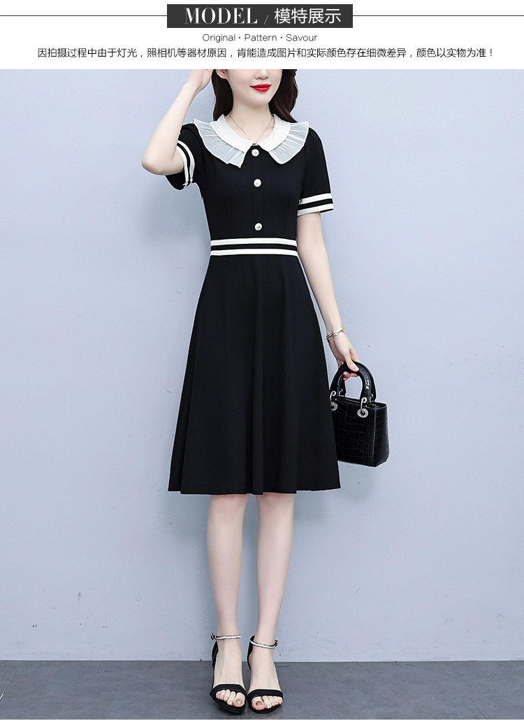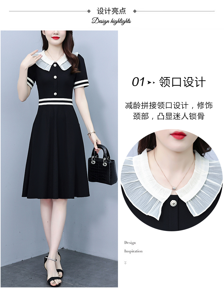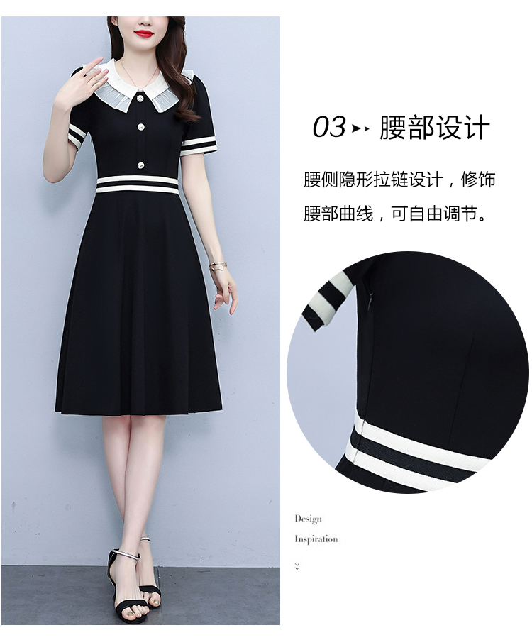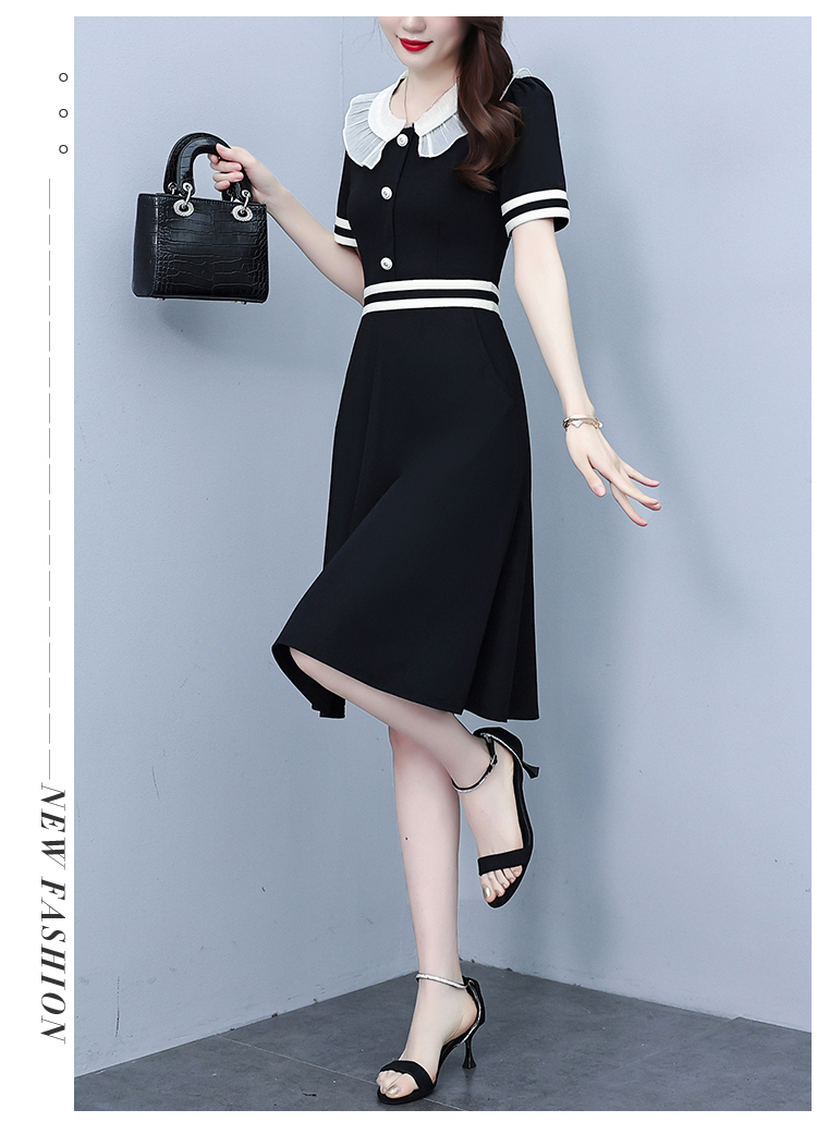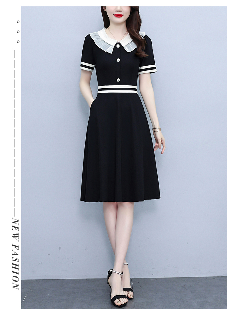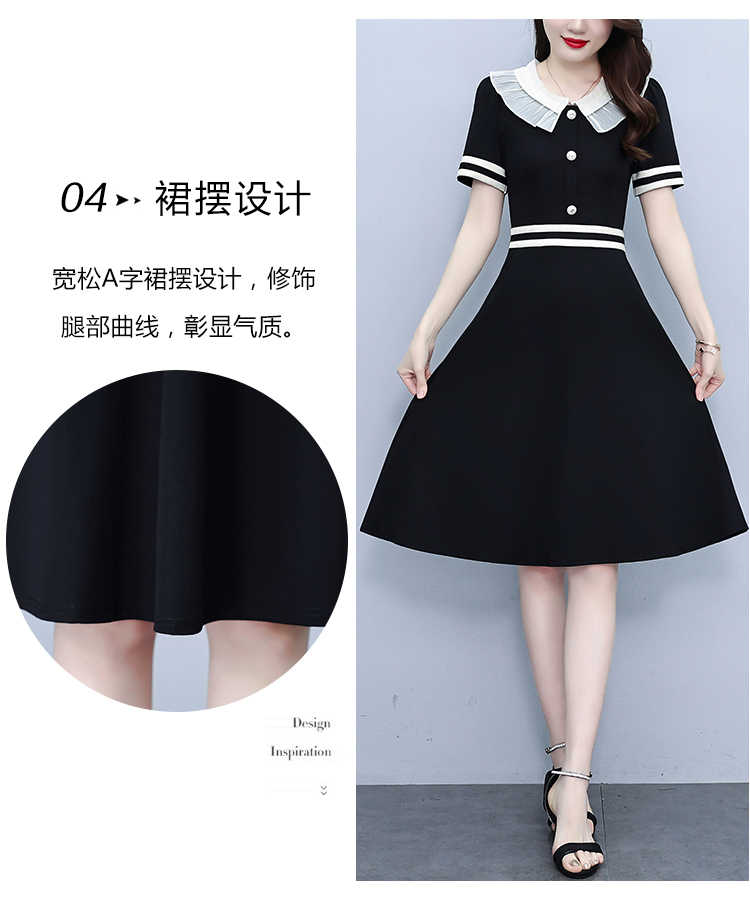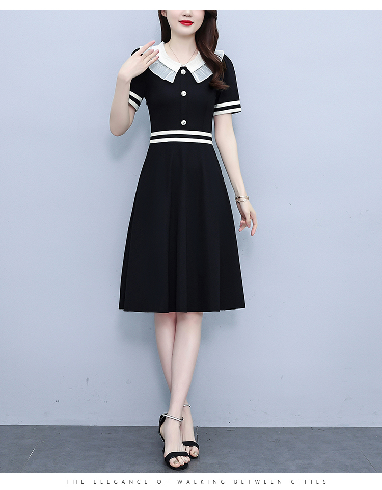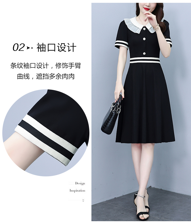 RY2365# 实拍小香风娃娃领连衣裙女2026夏季新款气质黑色短袖收腰显瘦裙子