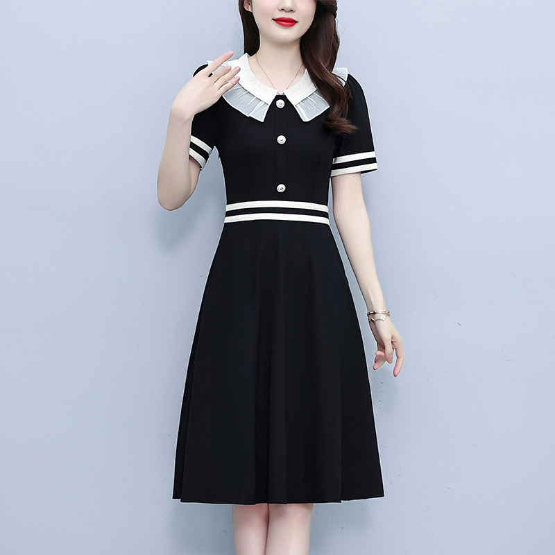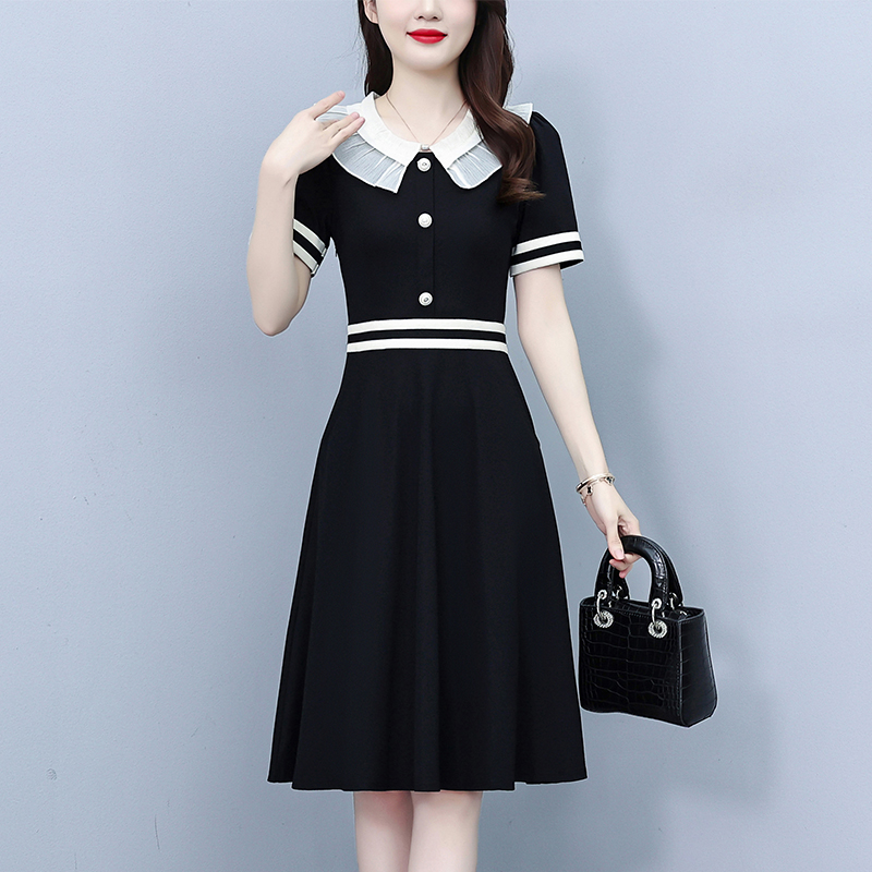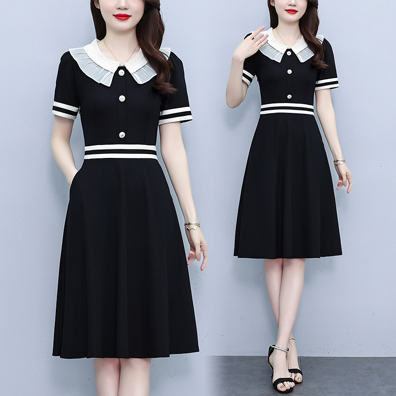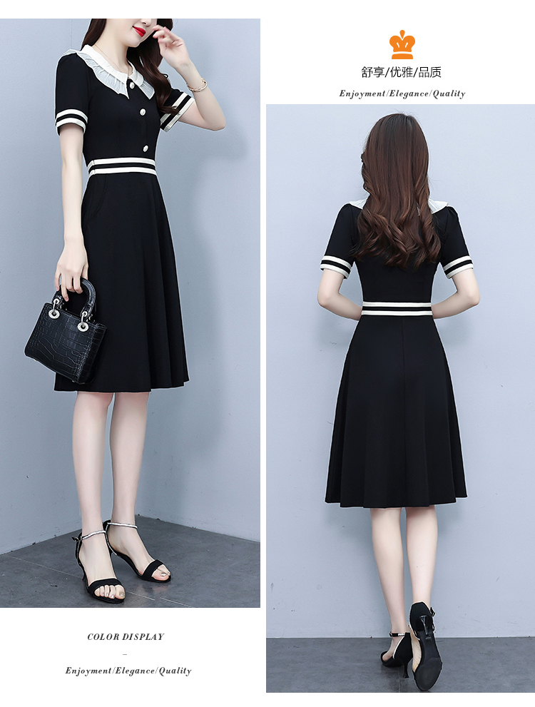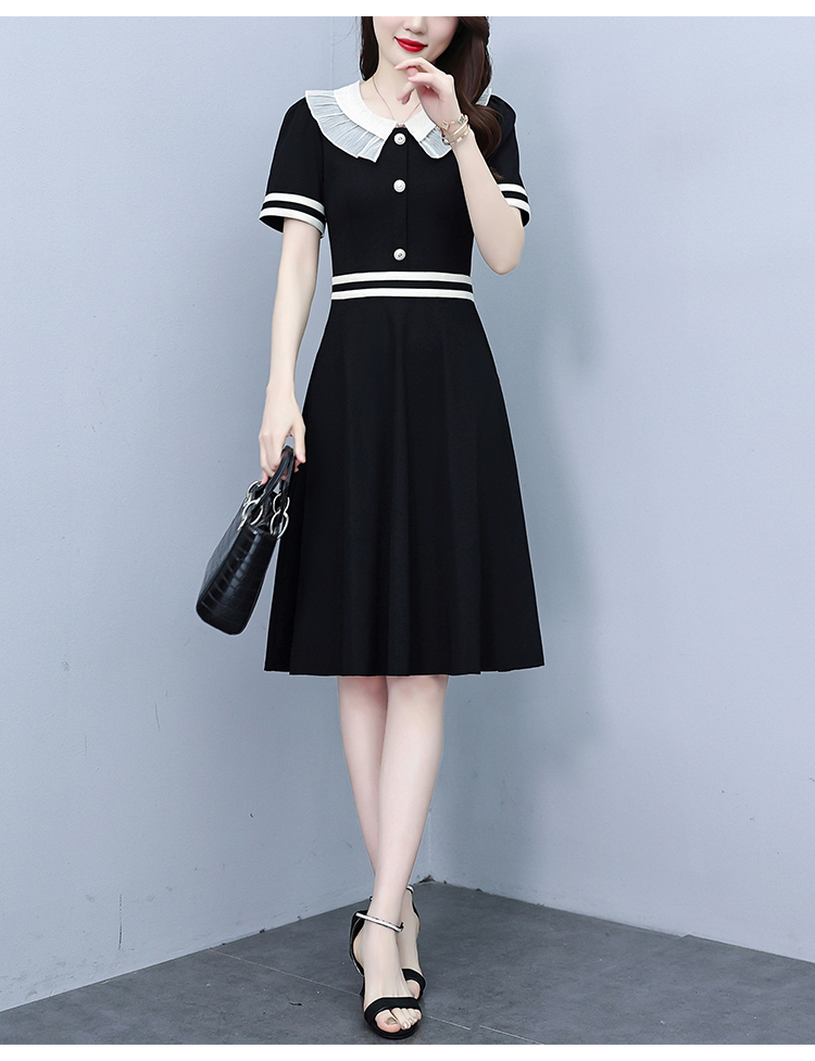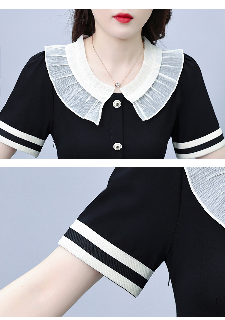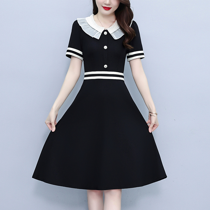 RY2365# 实拍小香风娃娃领连衣裙女2026夏季新款气质黑色短袖收腰显瘦裙子