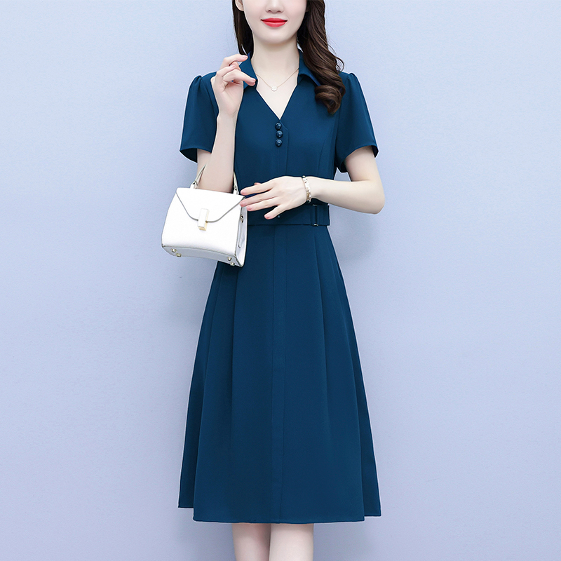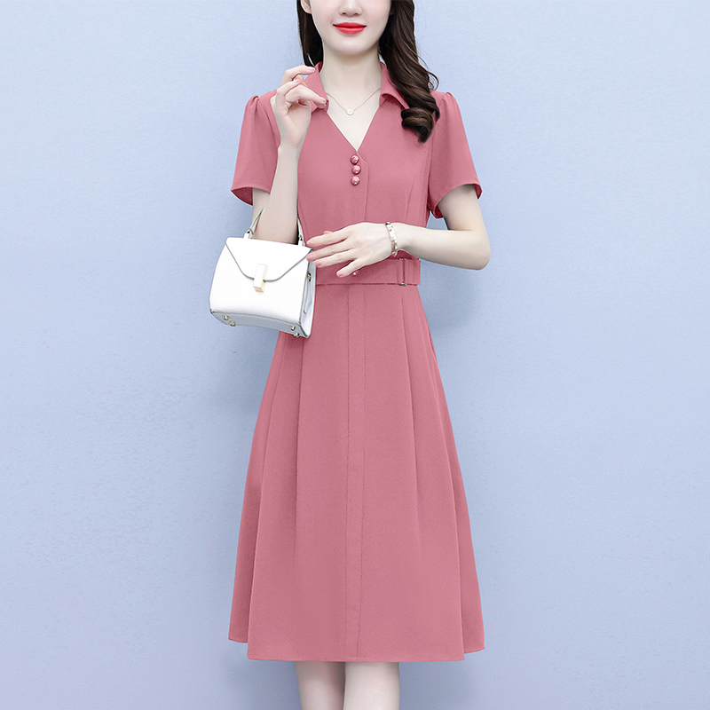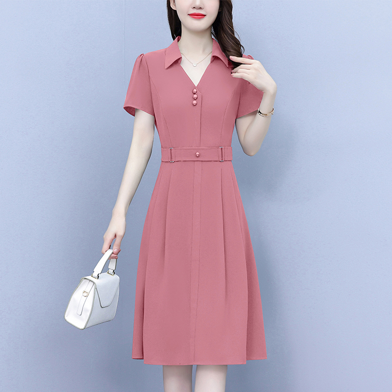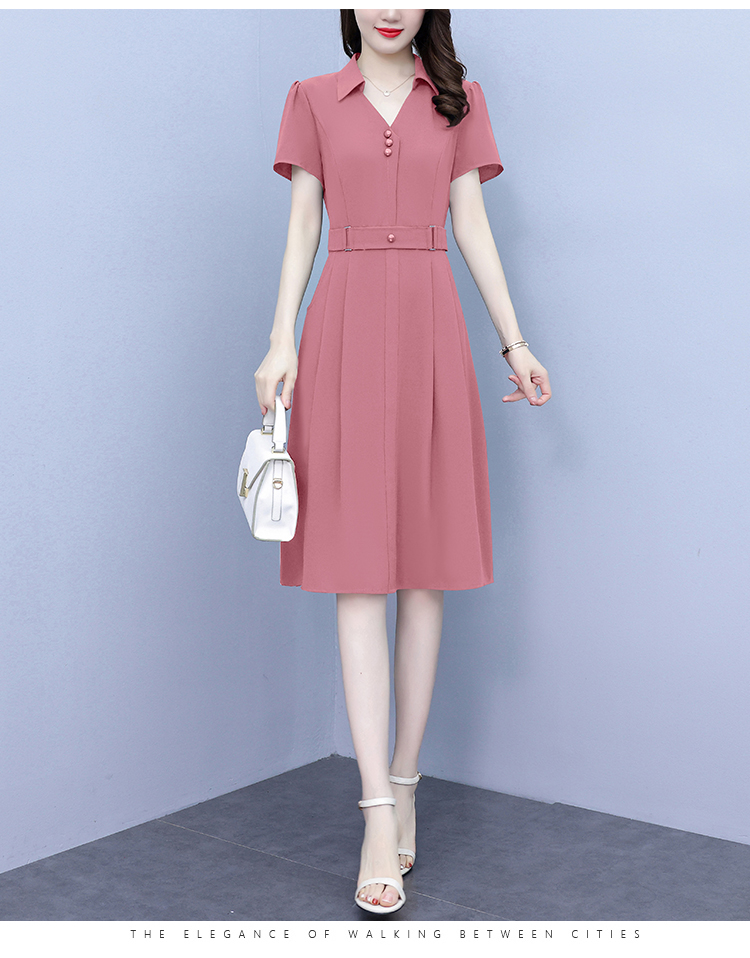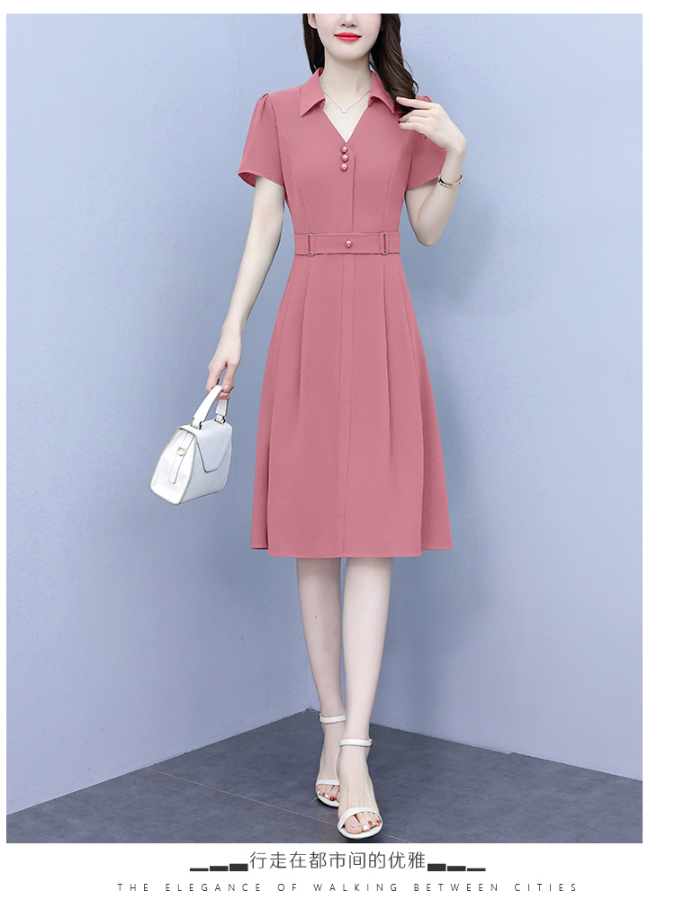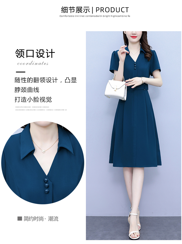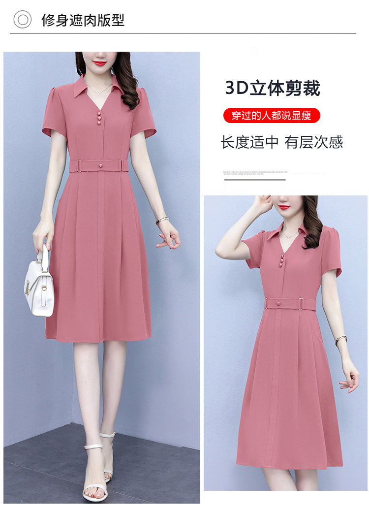 RY2371# 实拍2026大码时尚高腰短袖轻奢时髦洋气夏装新款遮肚子高档连衣裙