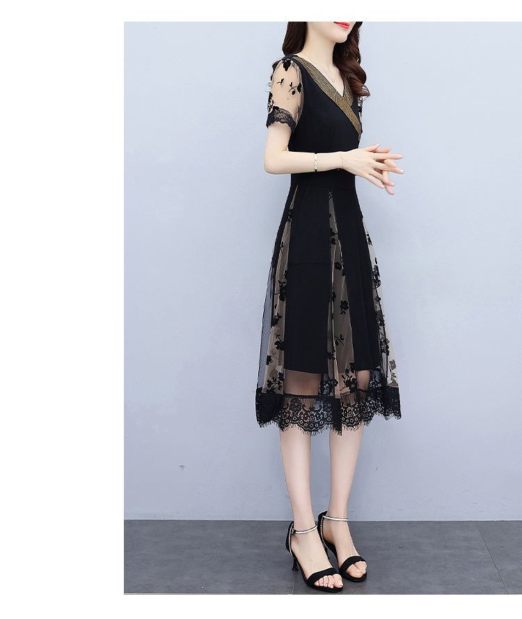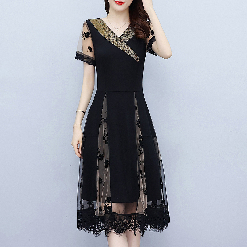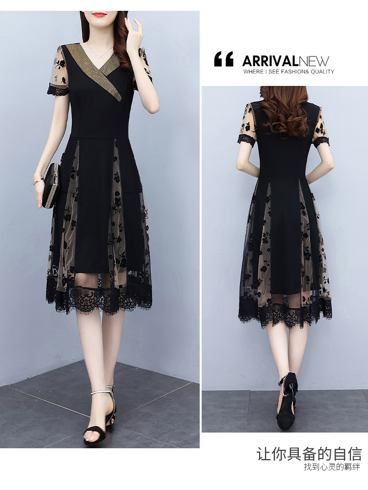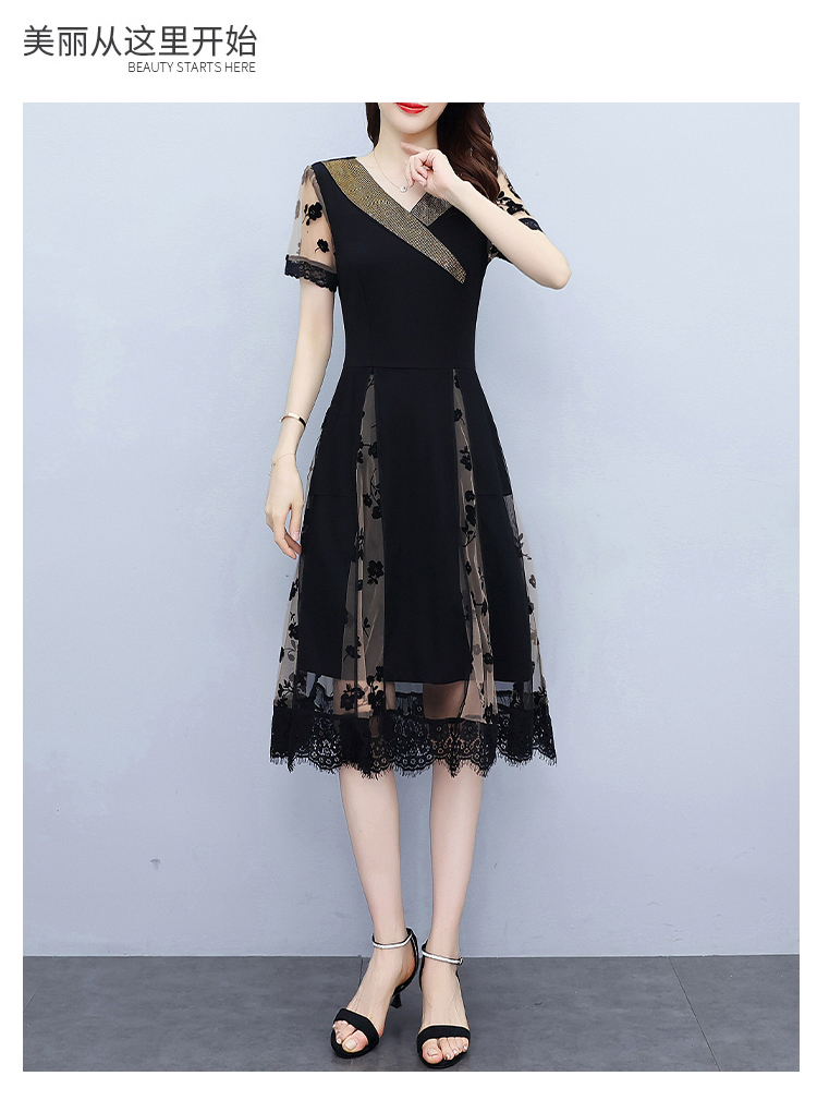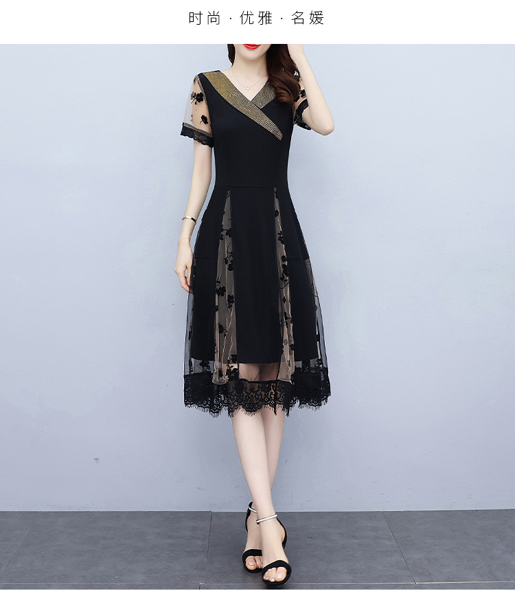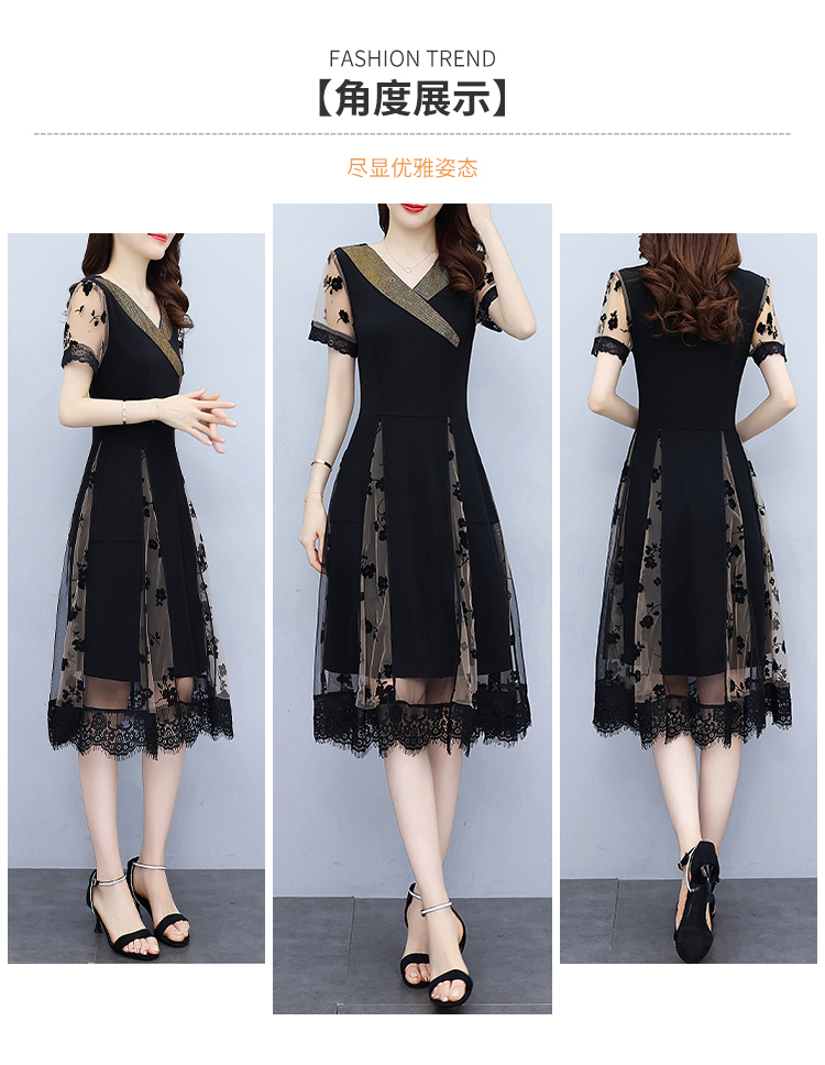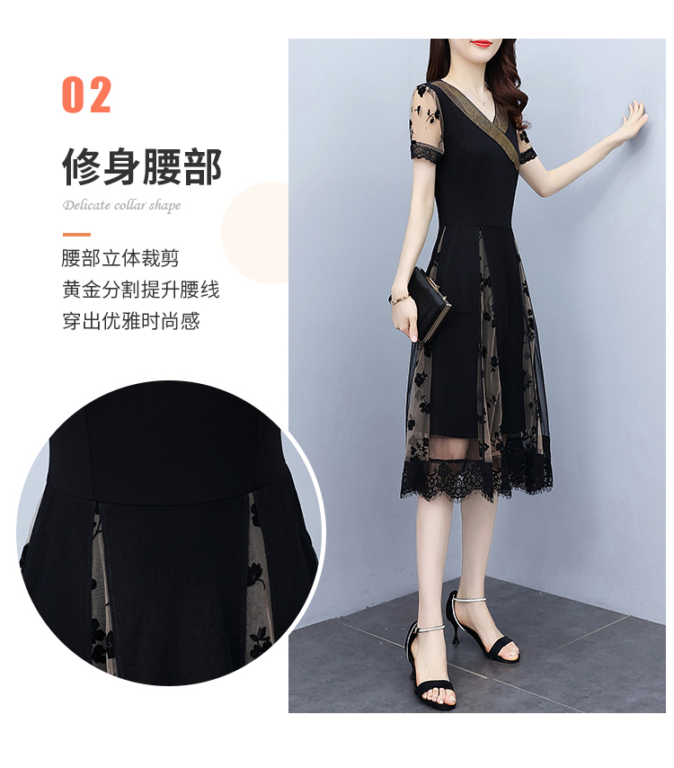 RY2372# 2026年夏装新款连衣裙大码收腰显瘦气质西装领网纱拼接大摆长裙