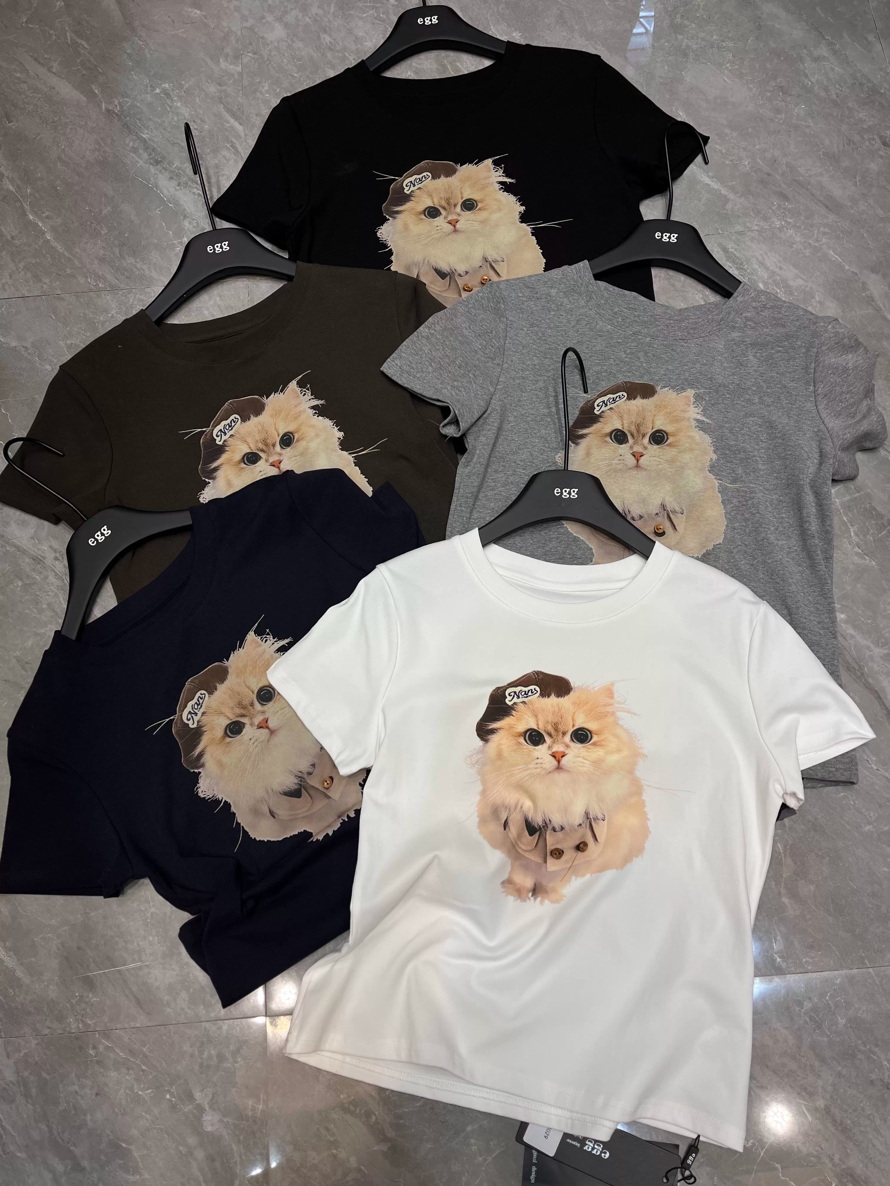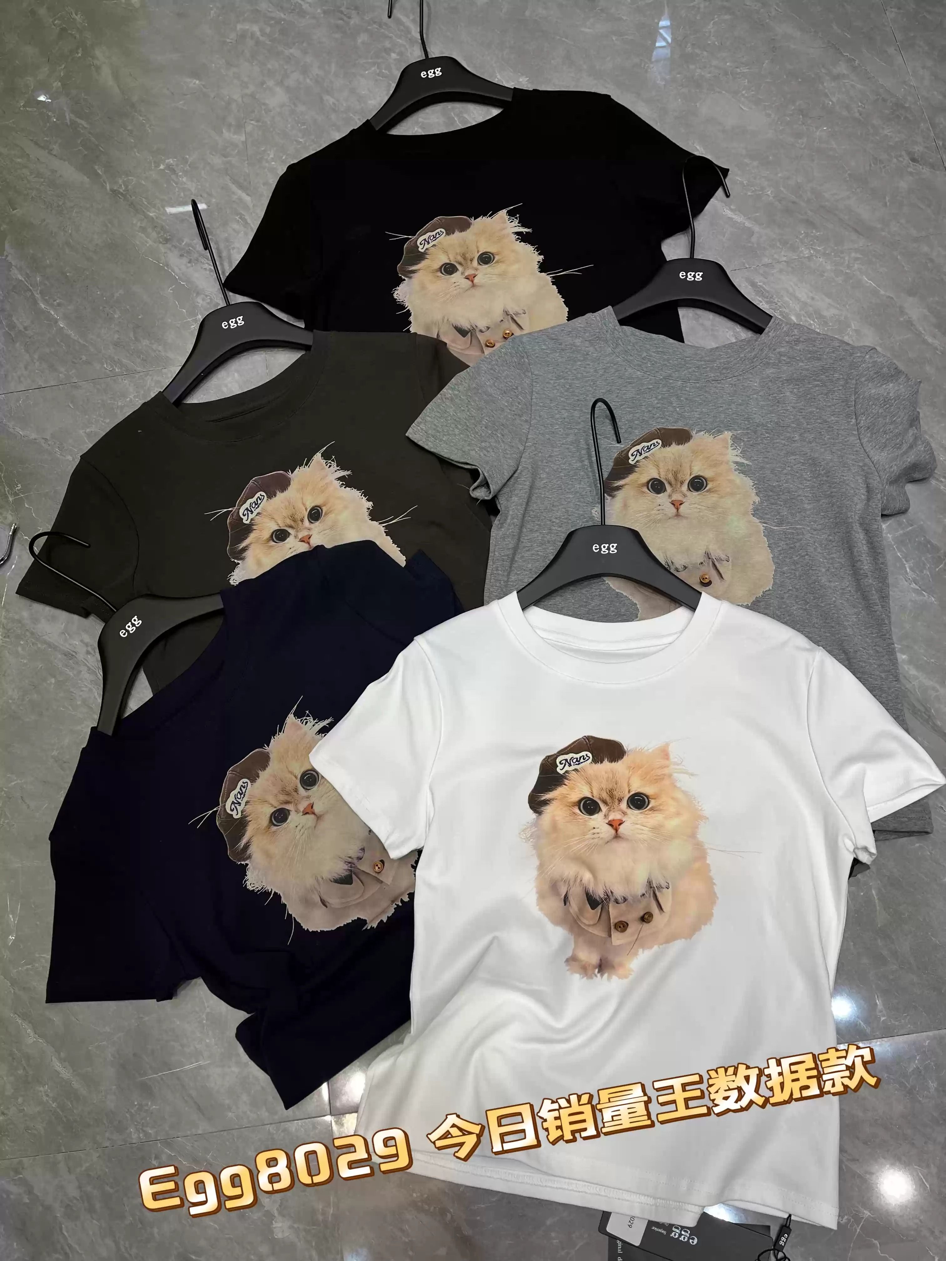 RY2384# 纯棉夏季韩版正肩短袖T恤女辣妹印花