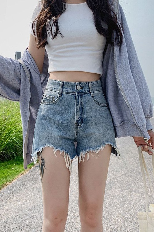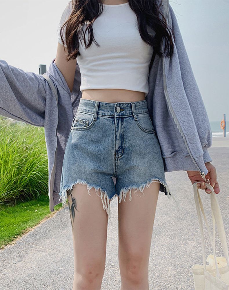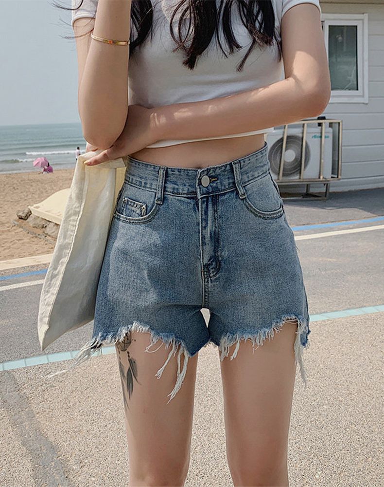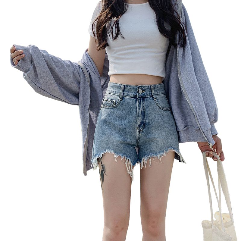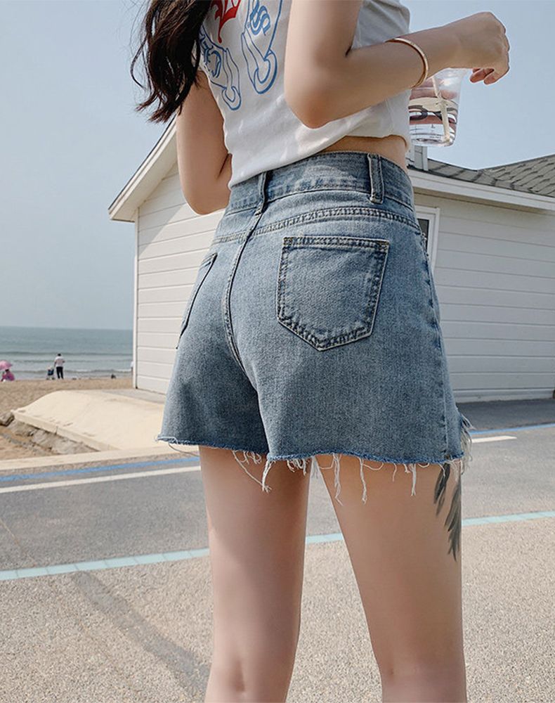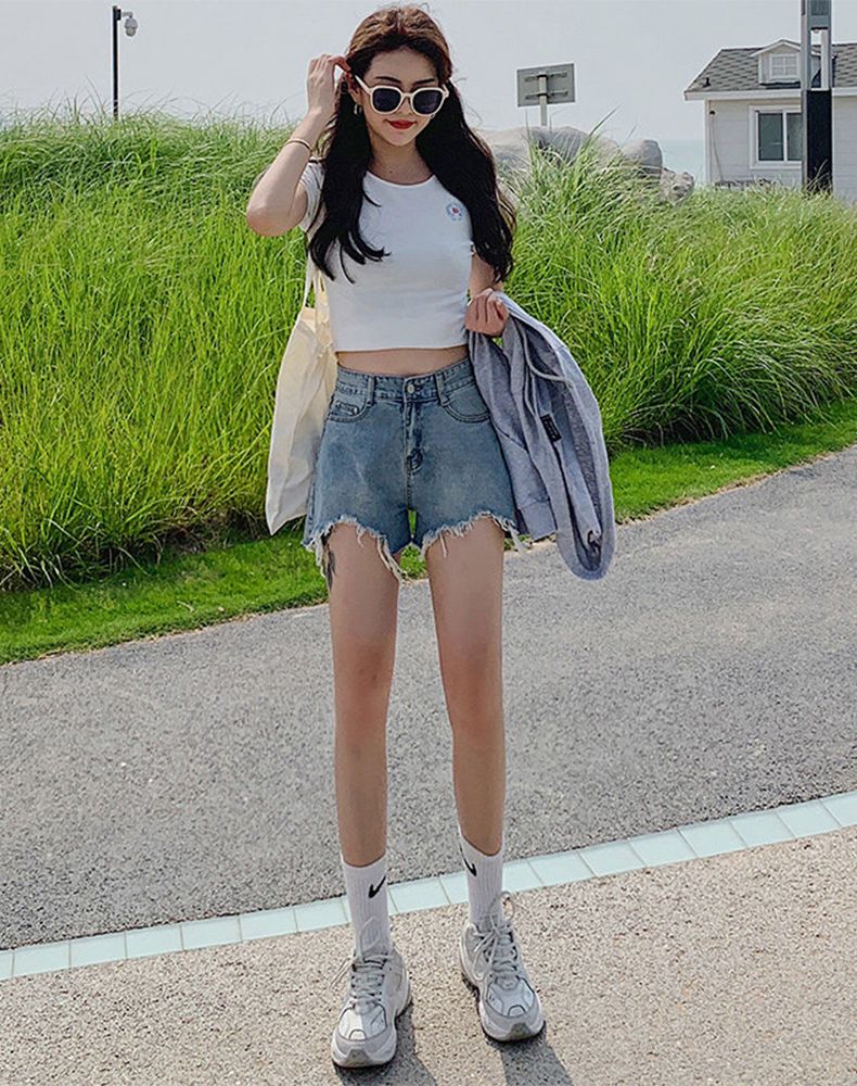 RY2395# 韩版宽松牛仔短裤女2026夏季不规则毛边设计宽松显瘦外穿阔腿热裤