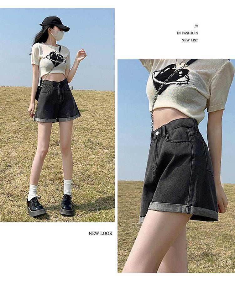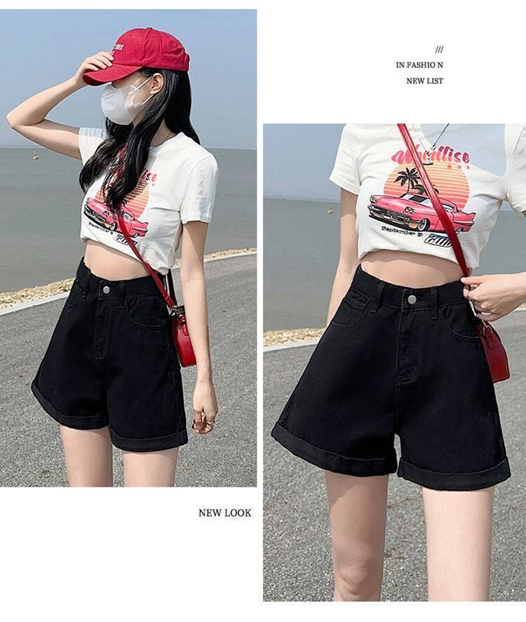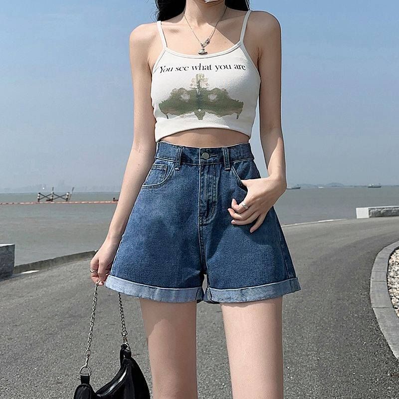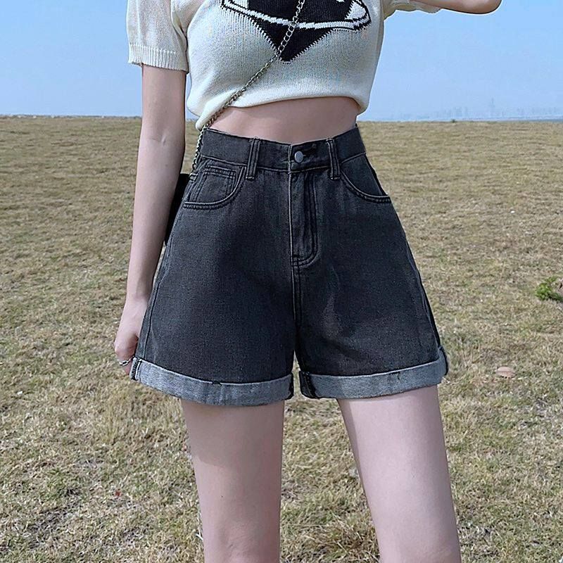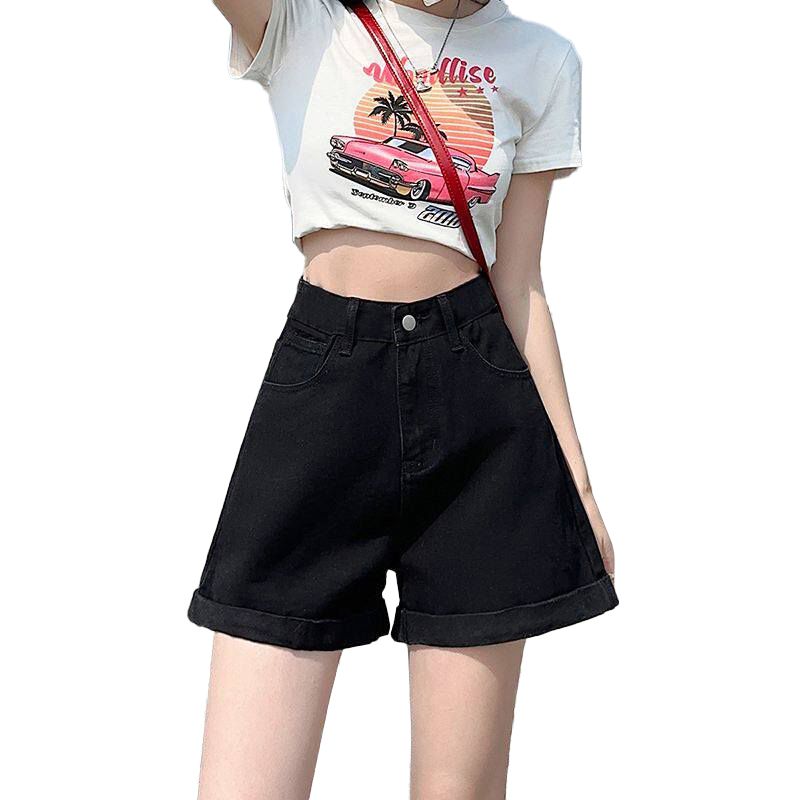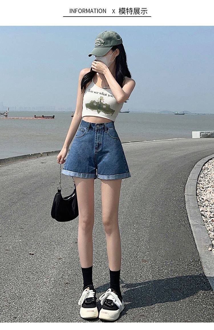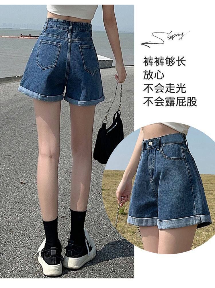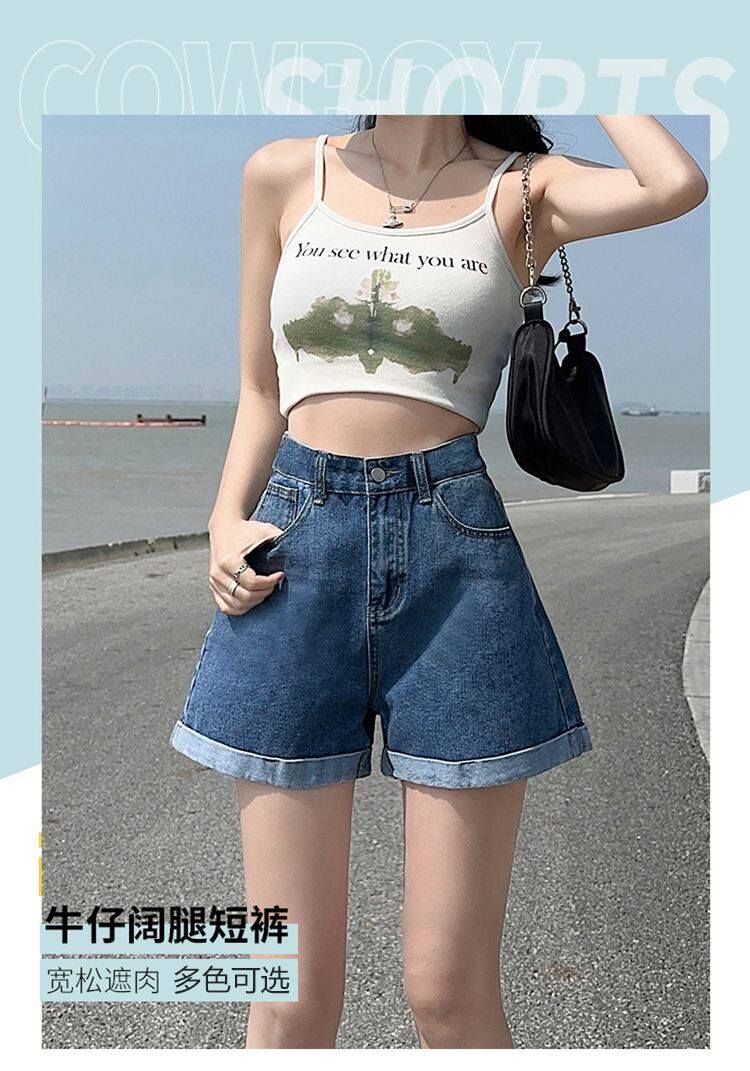 RY2396# 韩版夏季新款卷边牛仔短裤女高腰宽松遮胯显瘦韩版a字阔腿热裤子