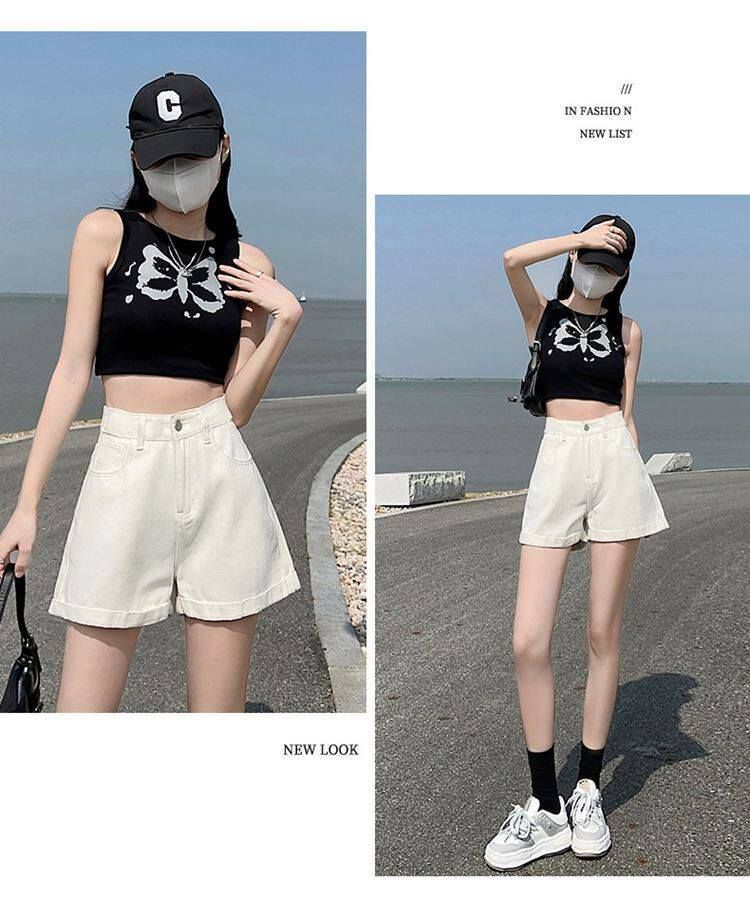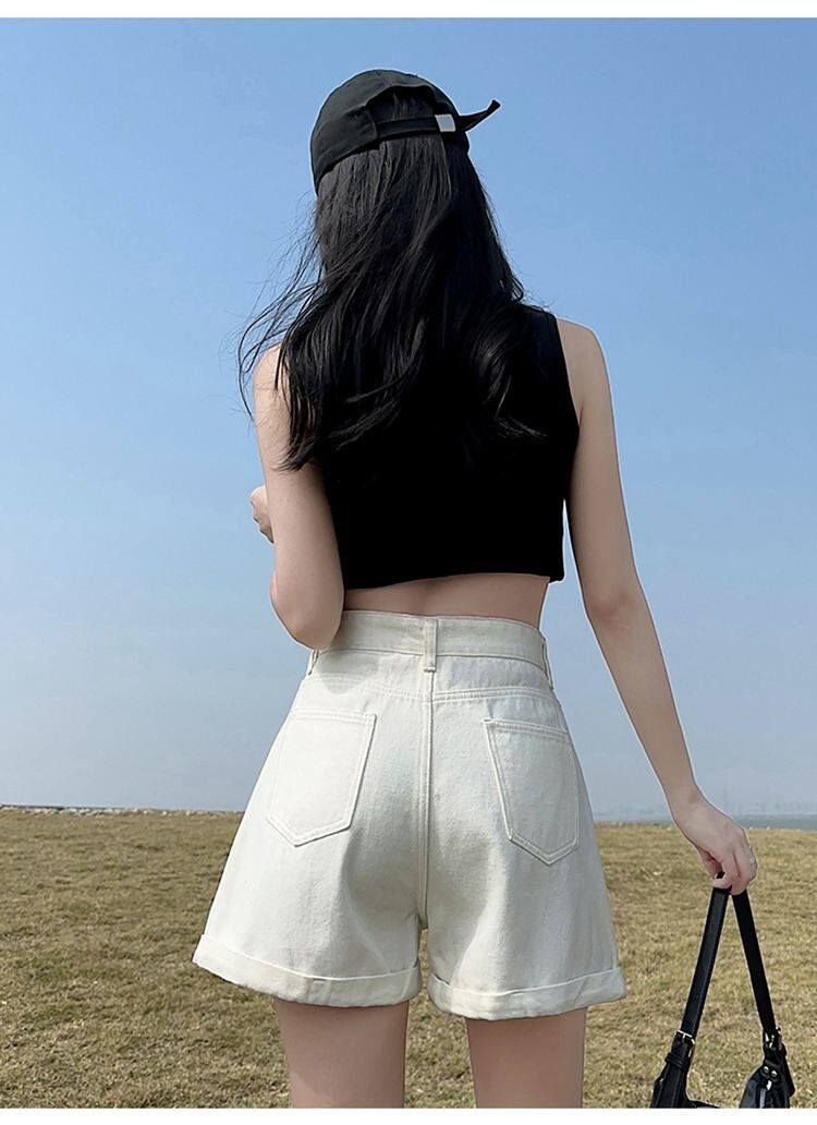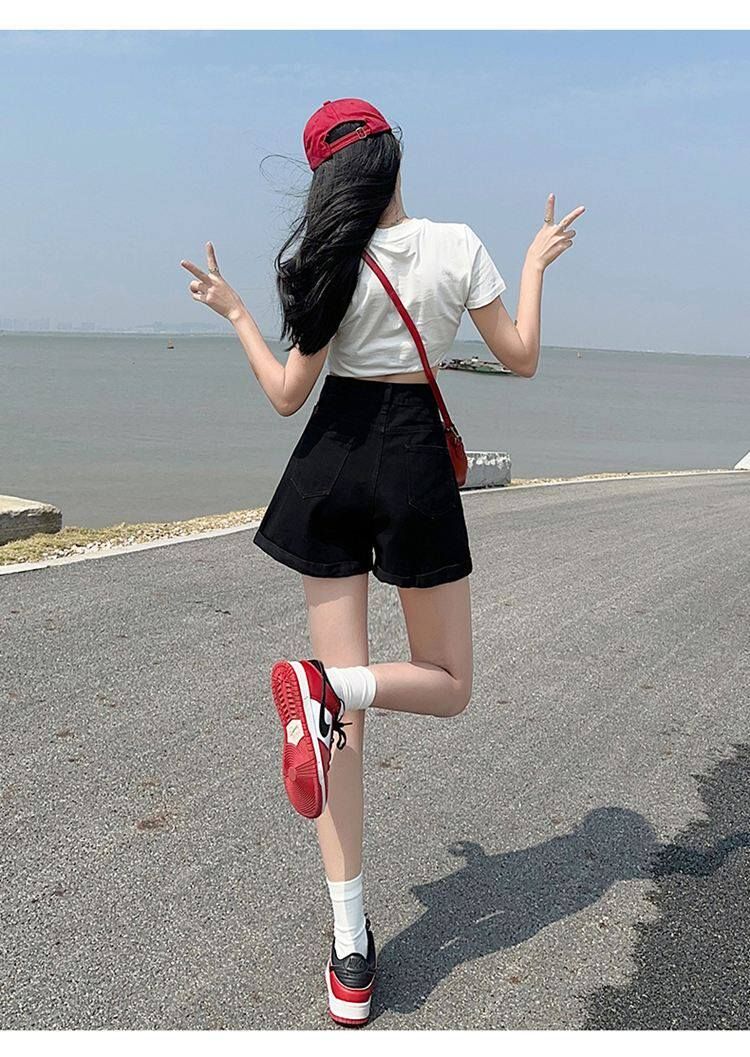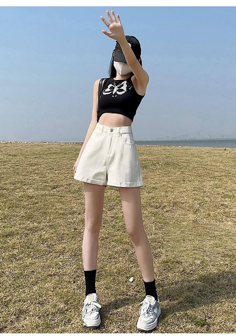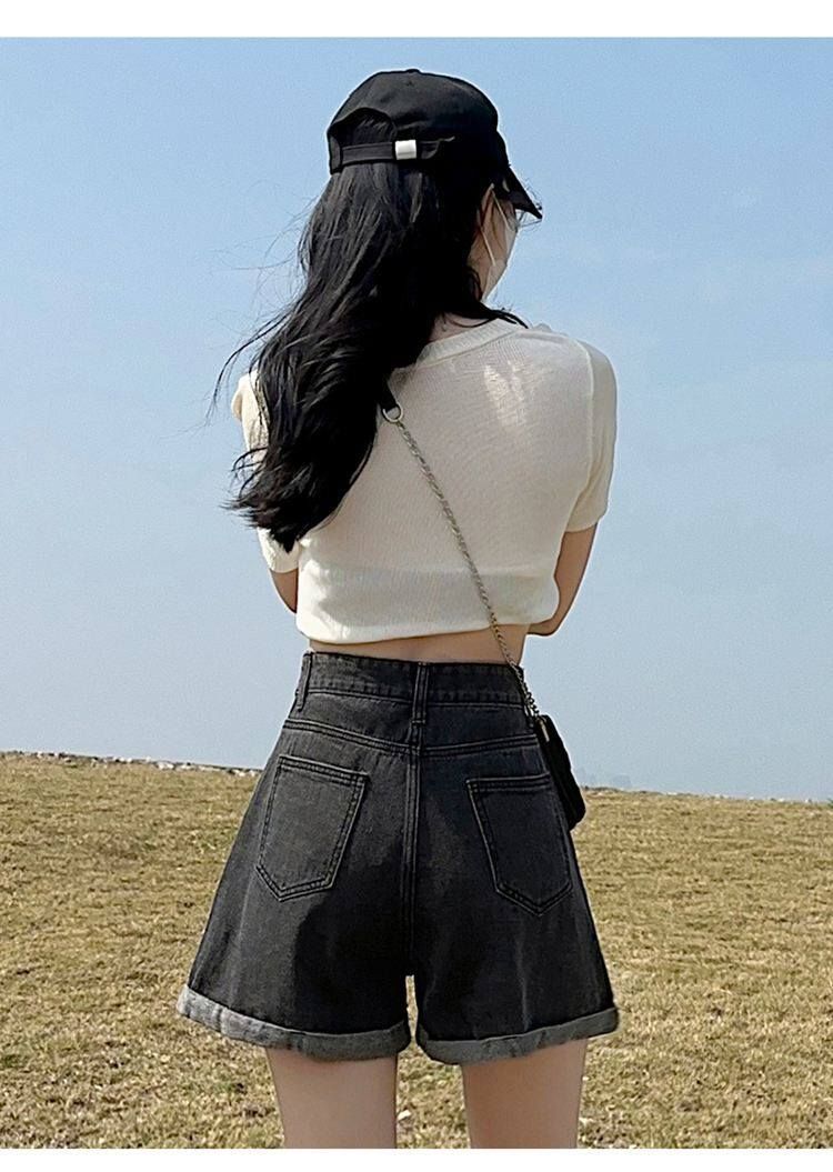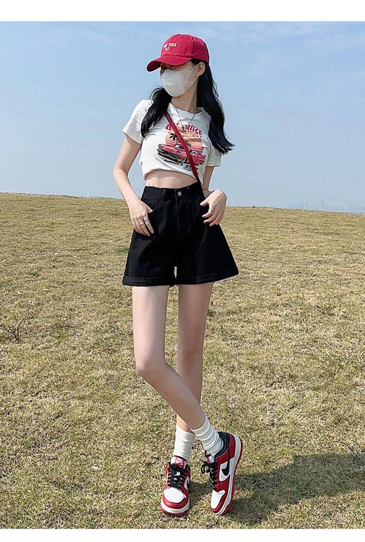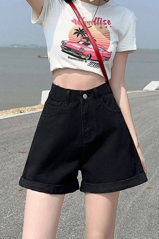 RY2396# 韩版夏季新款卷边牛仔短裤女高腰宽松遮胯显瘦韩版a字阔腿热裤子
