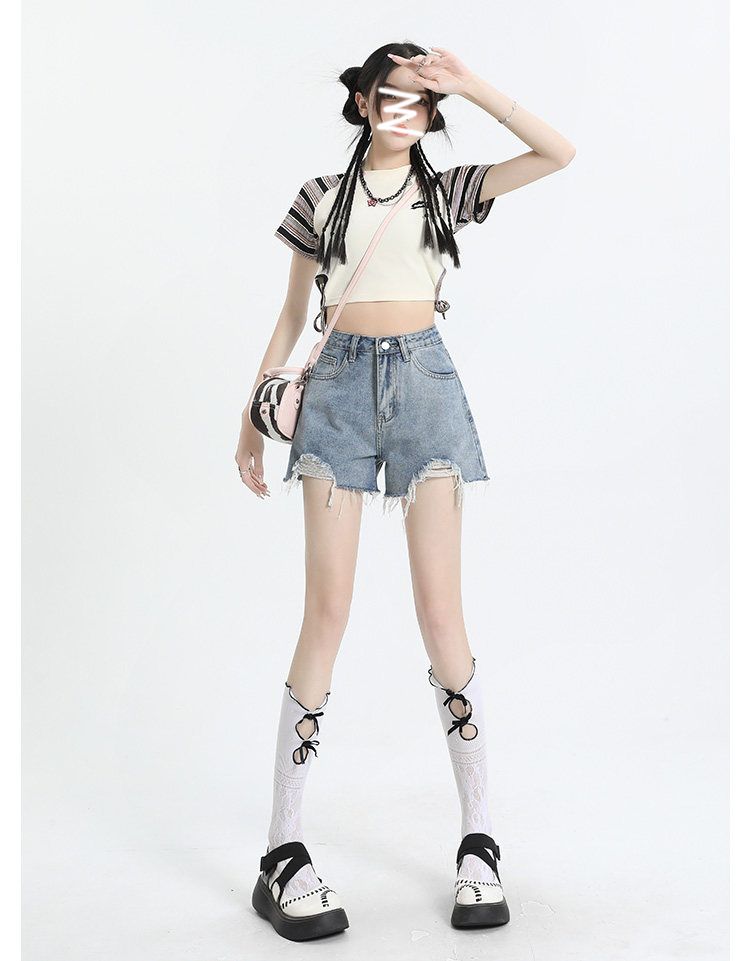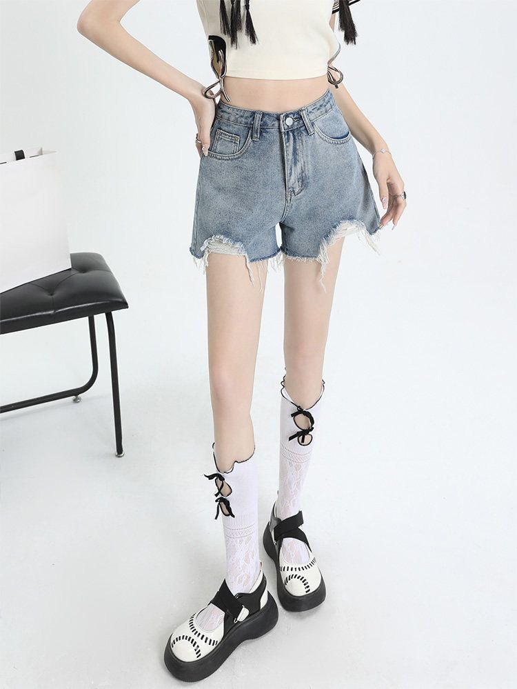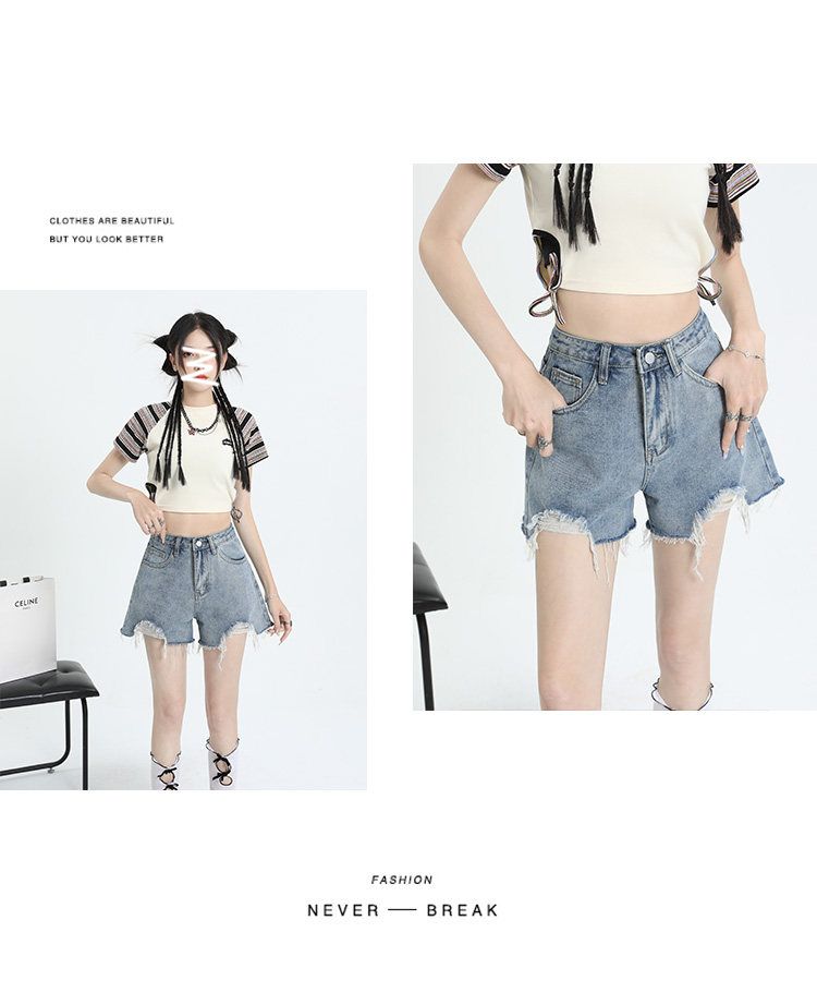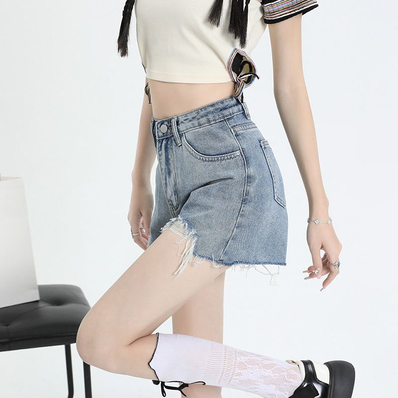RY2400# 2026夏季新款韩版毛边牛仔短裤女装百搭宽松薄款阔腿显瘦a字热裤