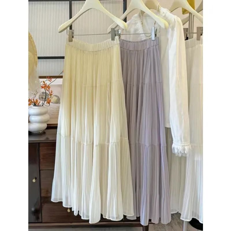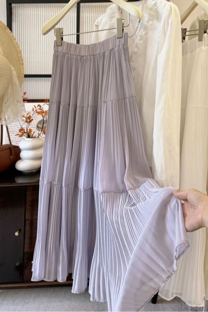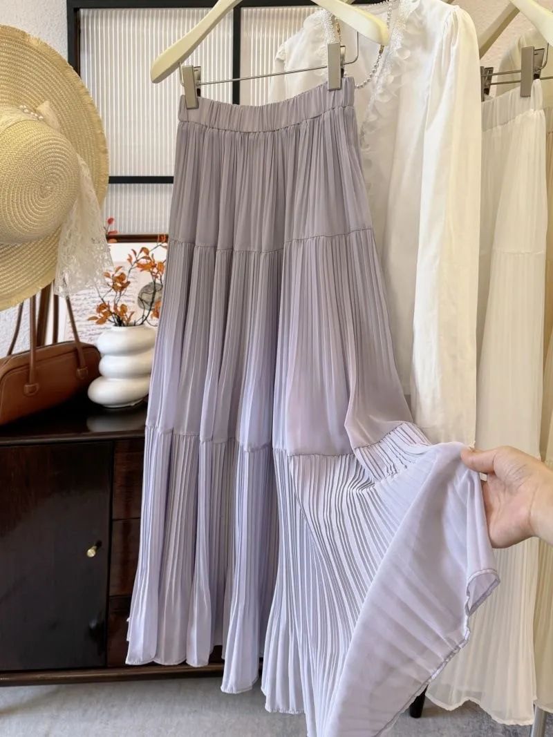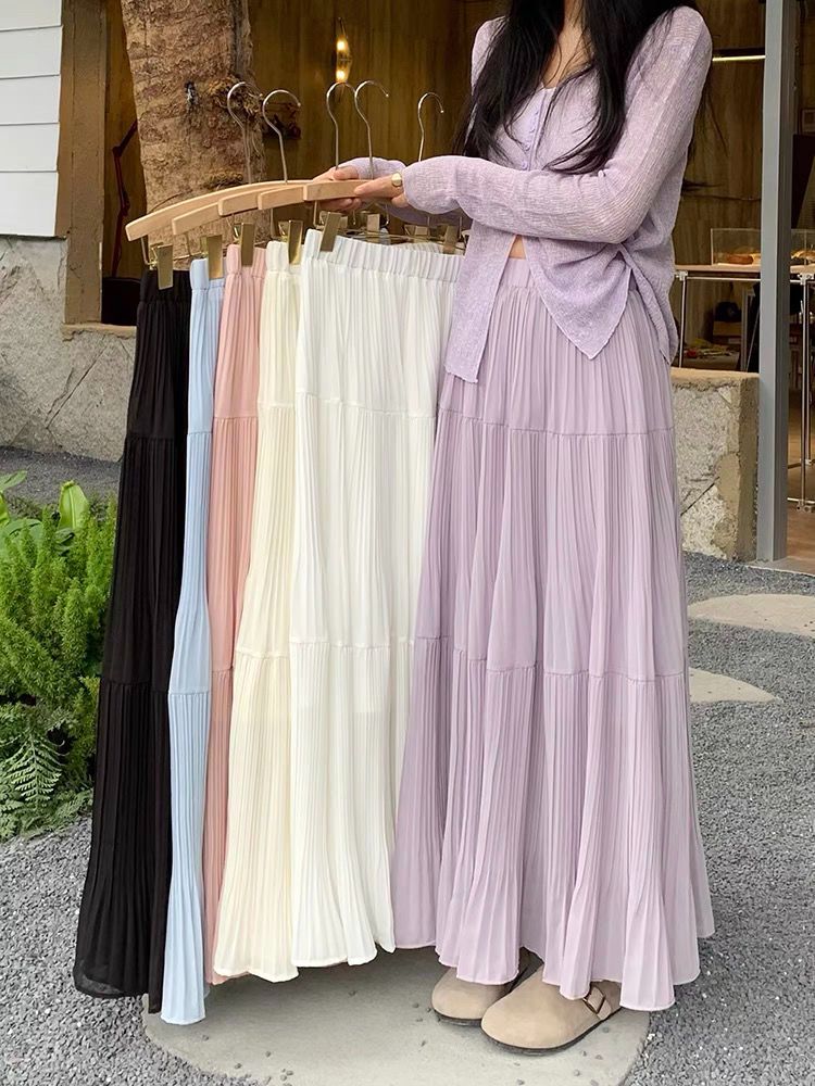RY2407# 雨雾紫藤压褶温柔半身裙春夏新款宽松大裙摆A字长裙百搭半身裙女