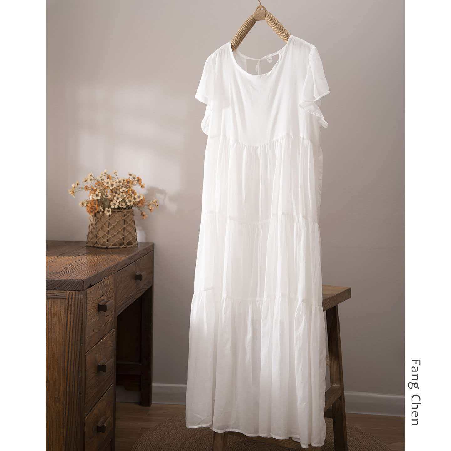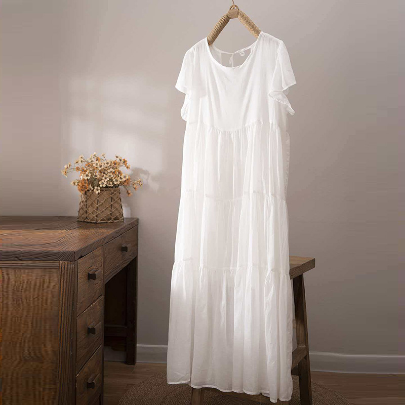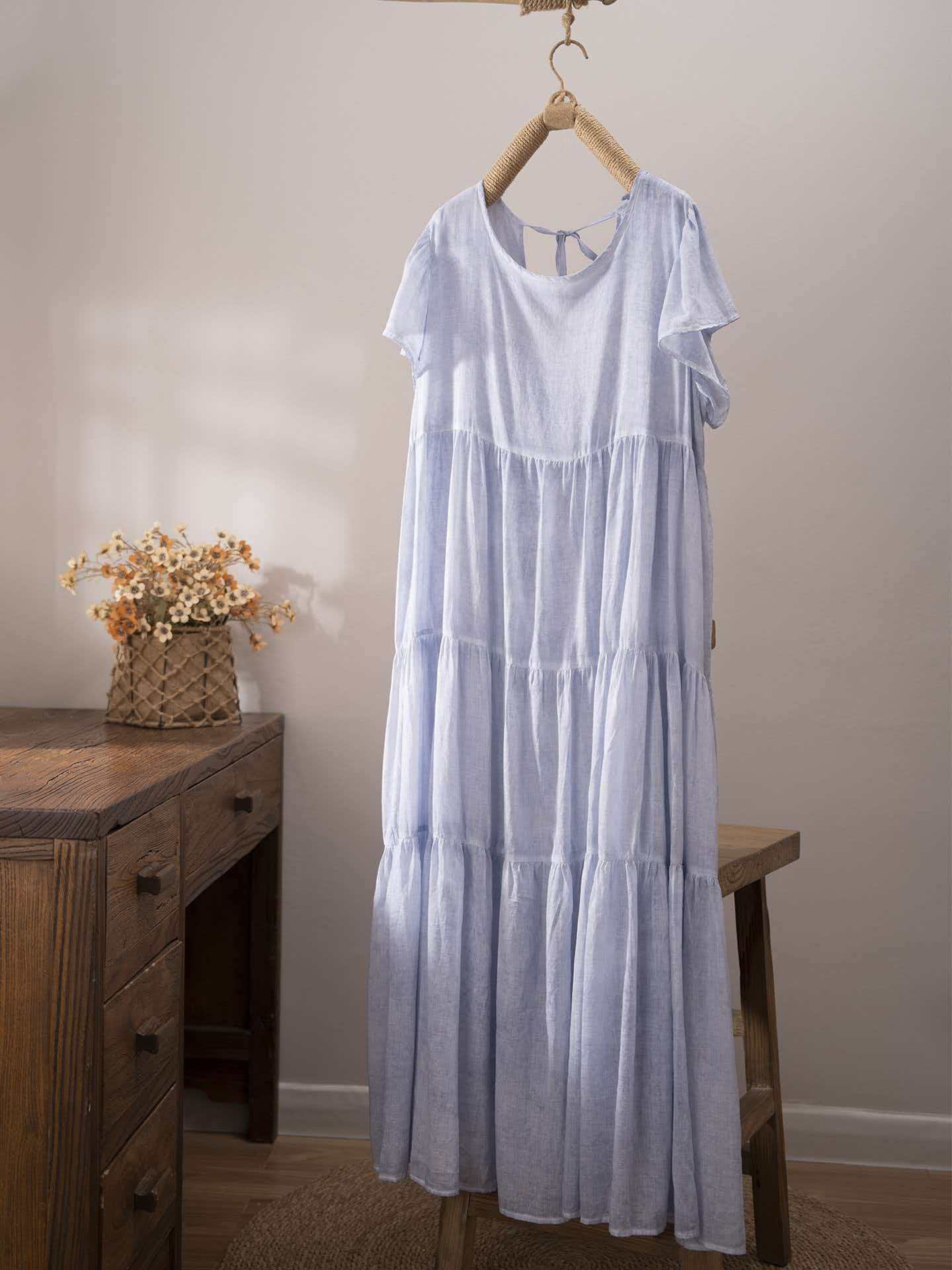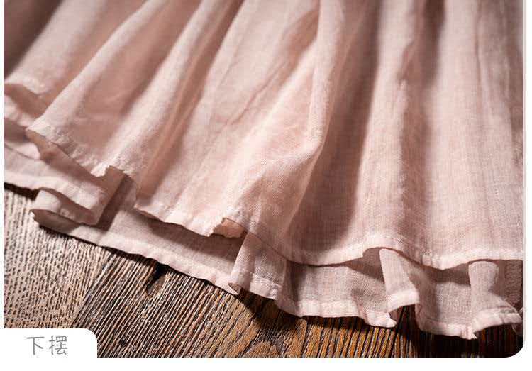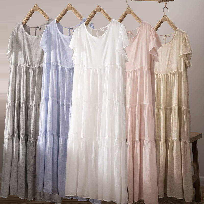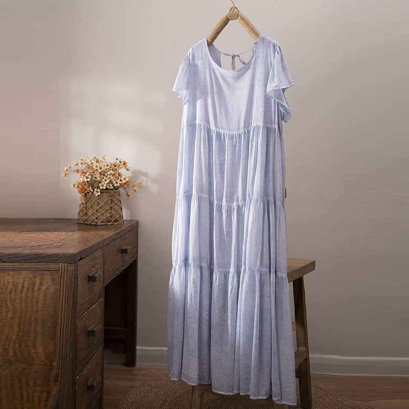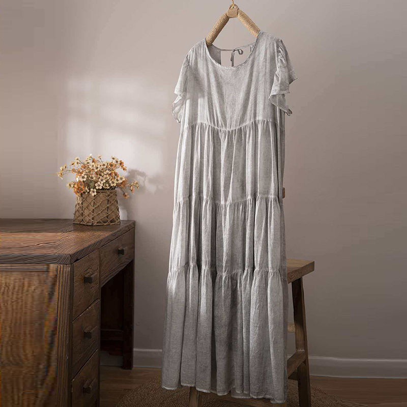RY2408# 棉麻连衣裙女2026夏季新品纯色中长款蛋糕裙短袖亚麻打底裙长裙子