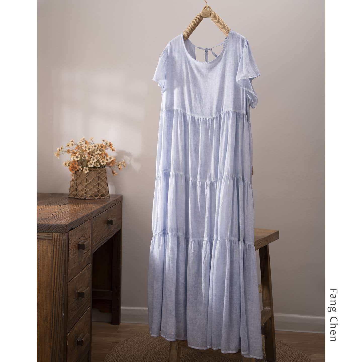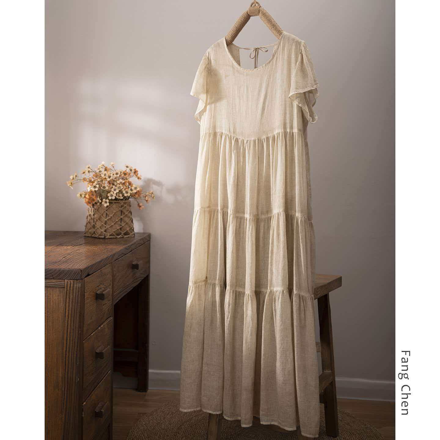 RY2409# 短袖亚麻连衣裙女2026夏季新款文艺范舒适休闲棉麻气质女神...