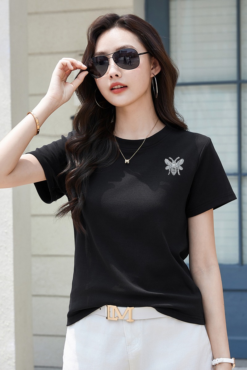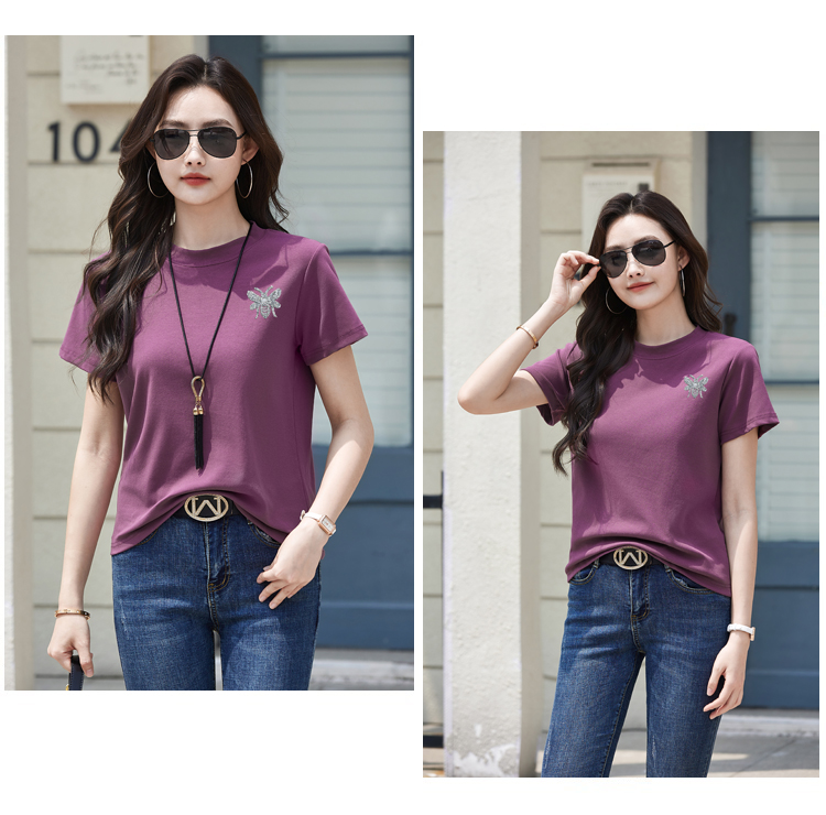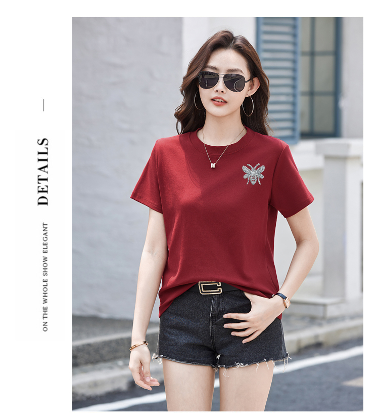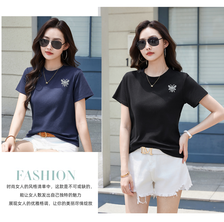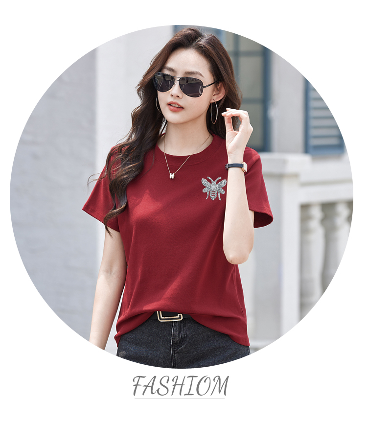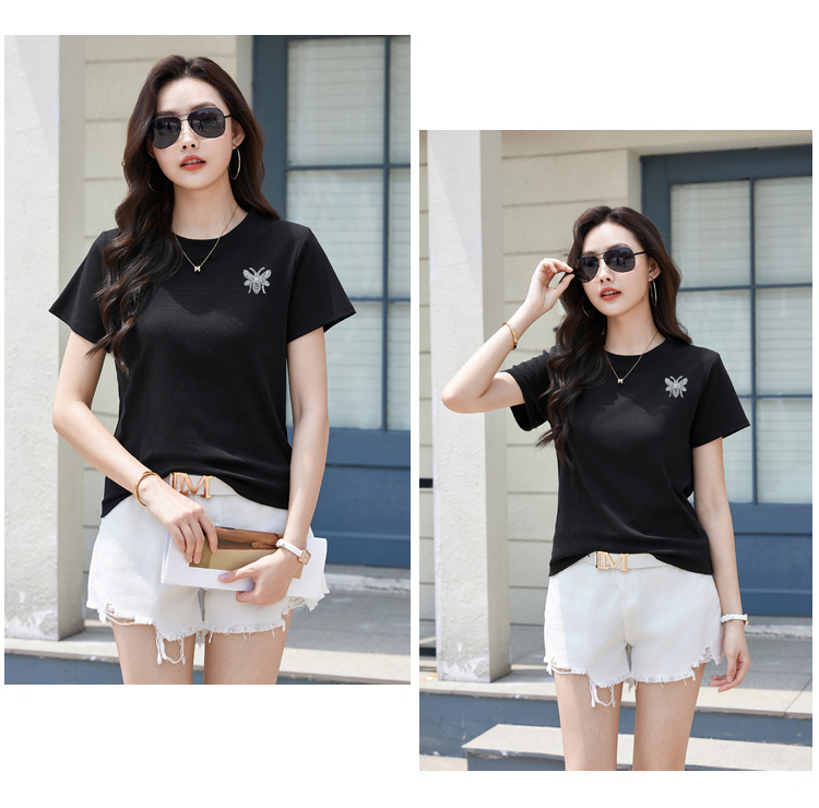 RY2432# 正肩短袖白色t恤女圆领夏季春秋内搭打底衫宽松大码体恤简约上衣
