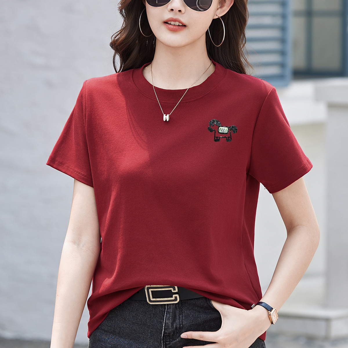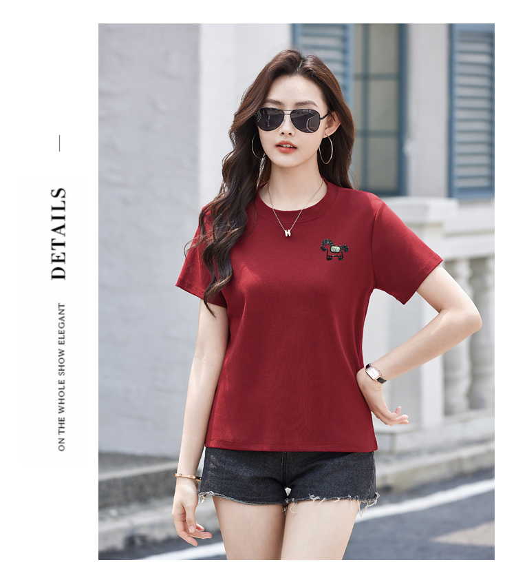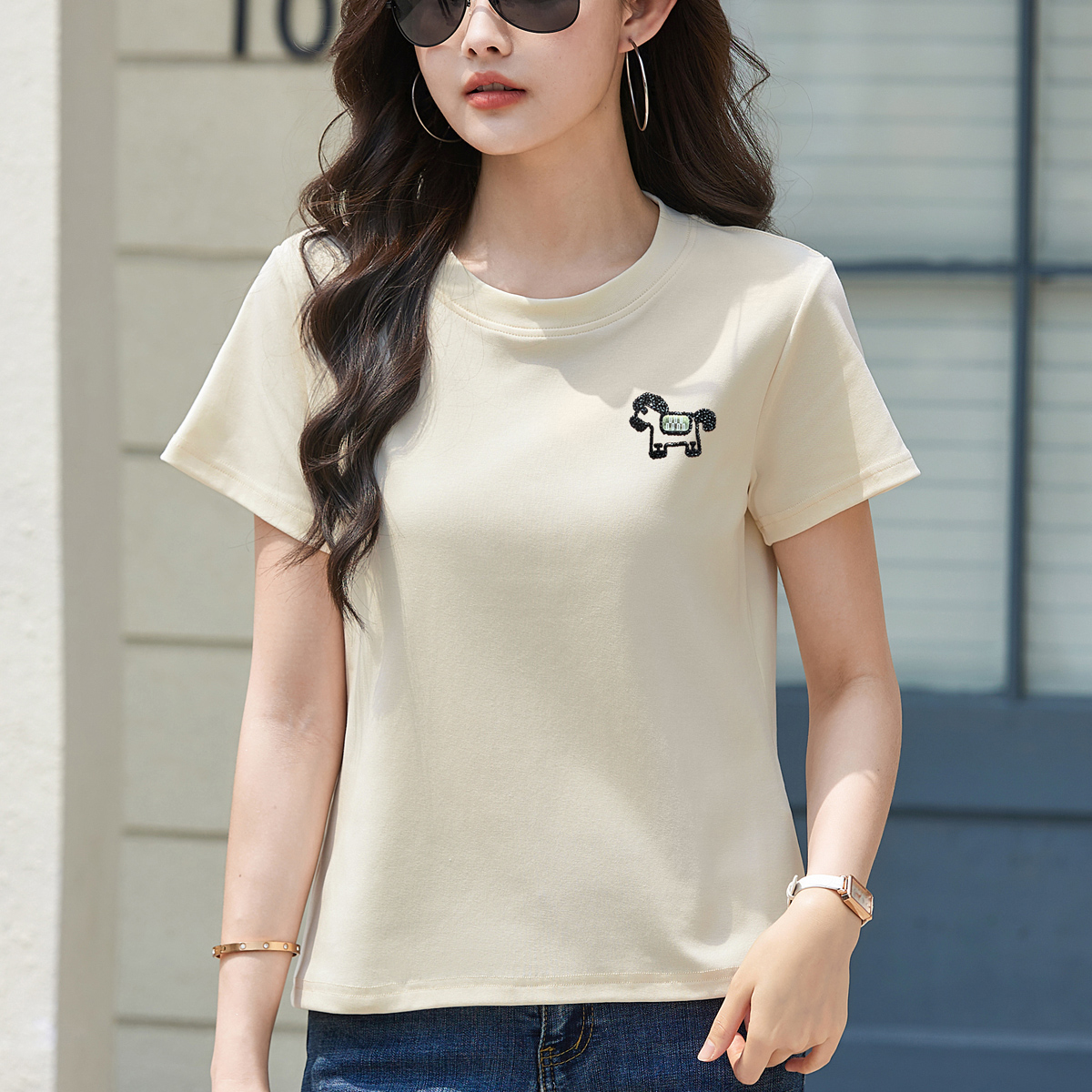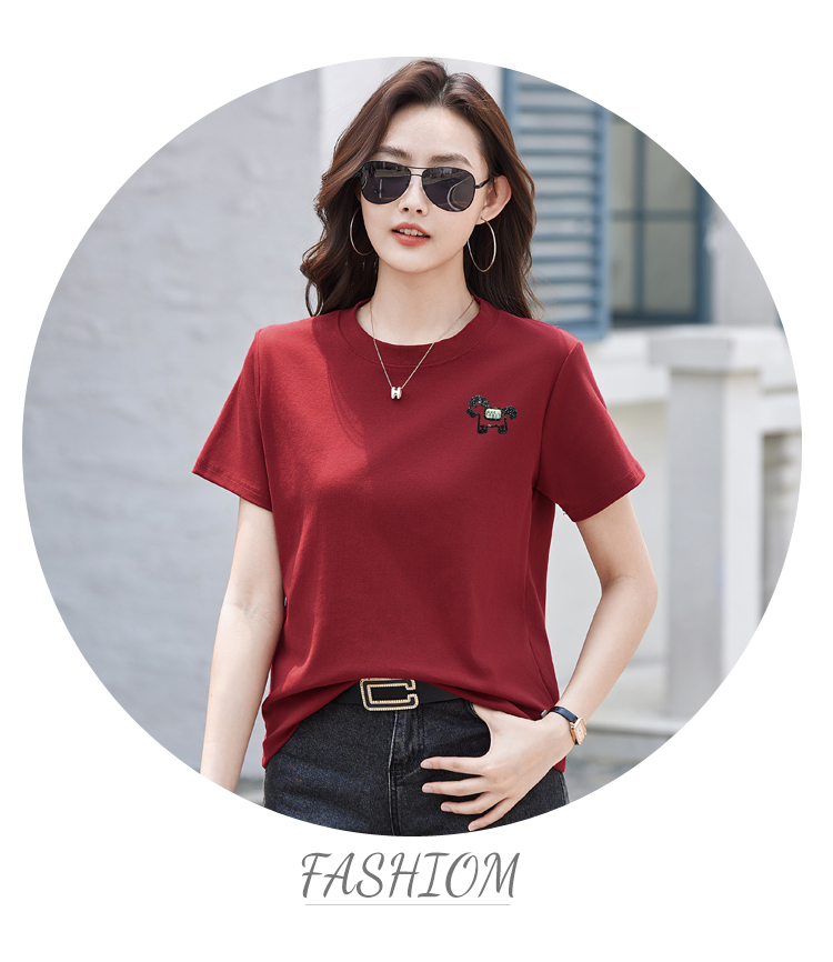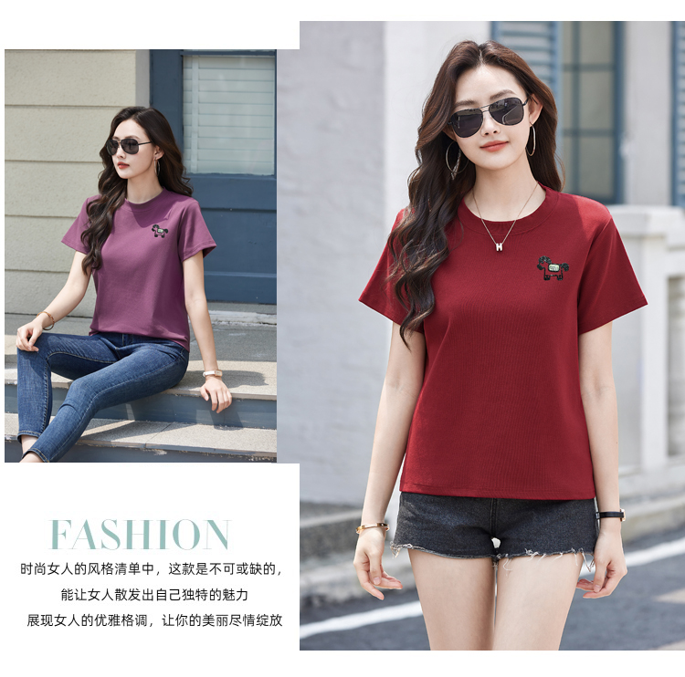 RY2433# 2026夏季新款正肩短袖T恤女纯色百搭宽松圆领简约半袖打底上衣潮