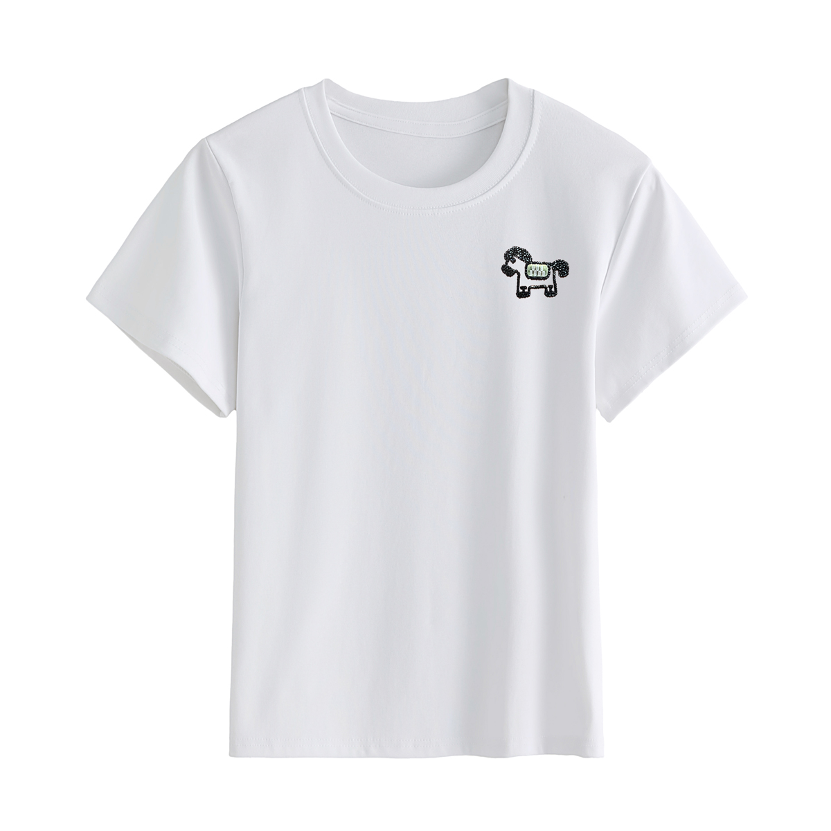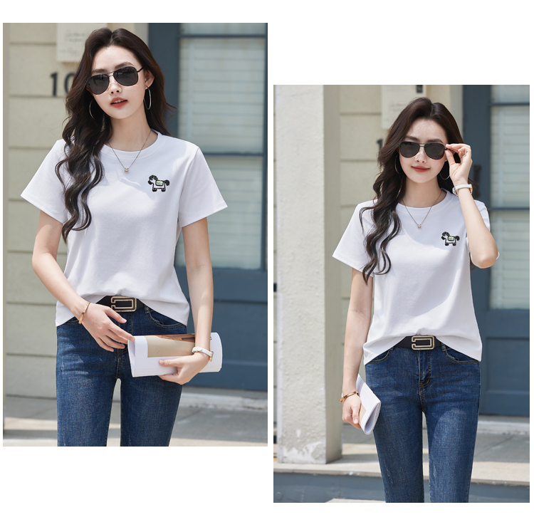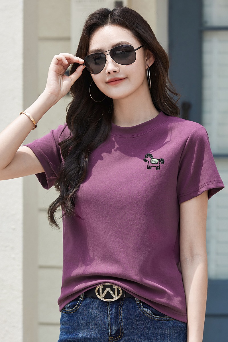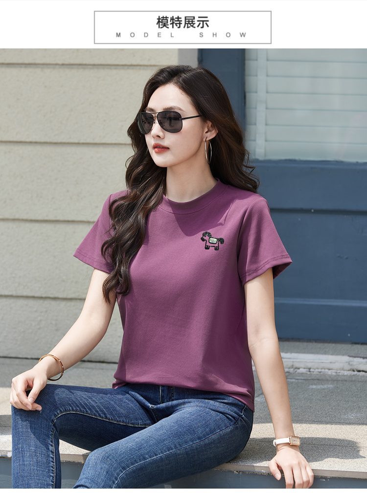 RY2433# 2026夏季新款正肩短袖T恤女纯色百搭宽松圆领简约半袖打底上衣潮