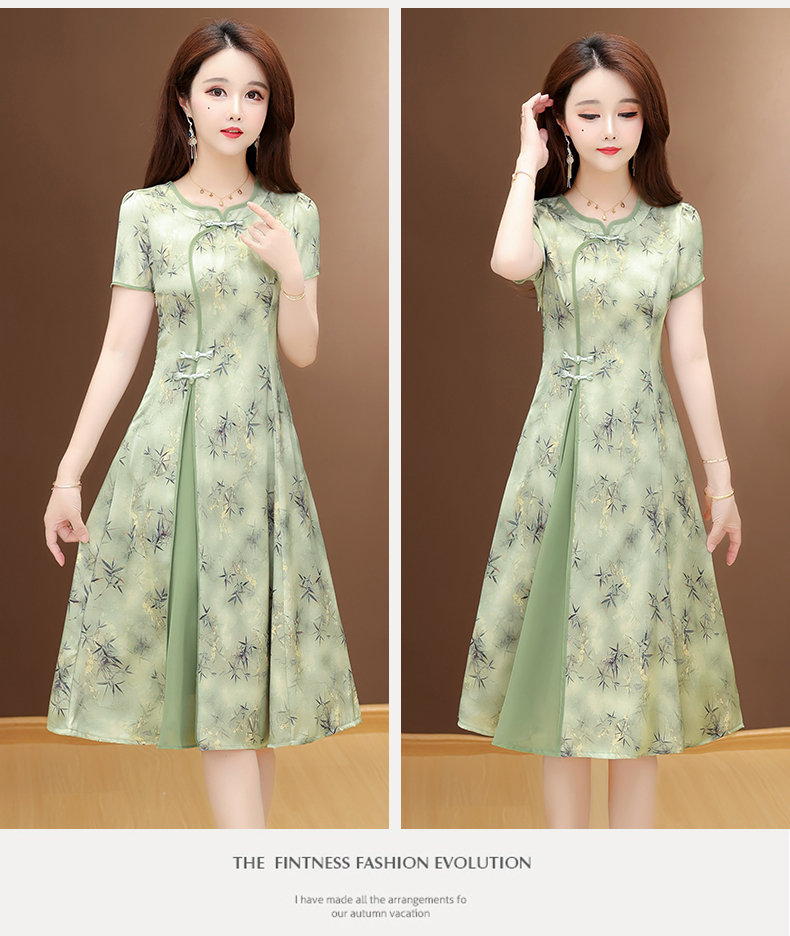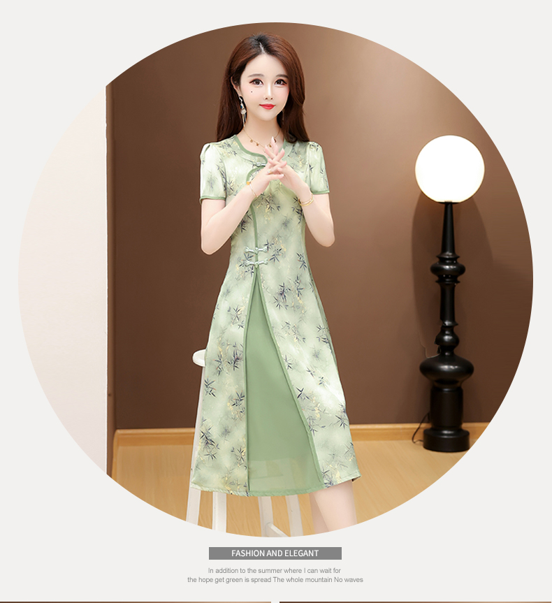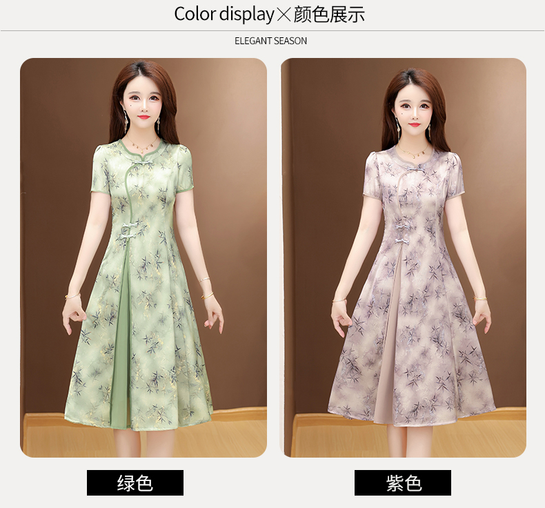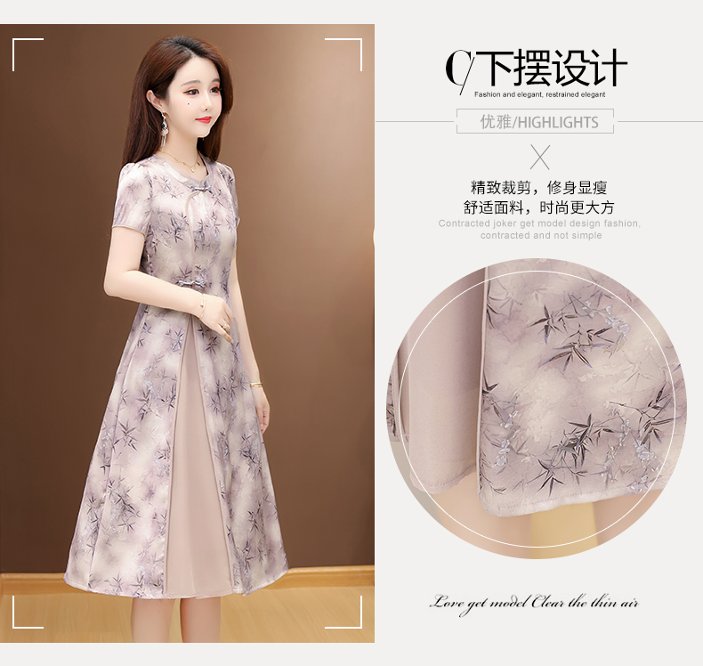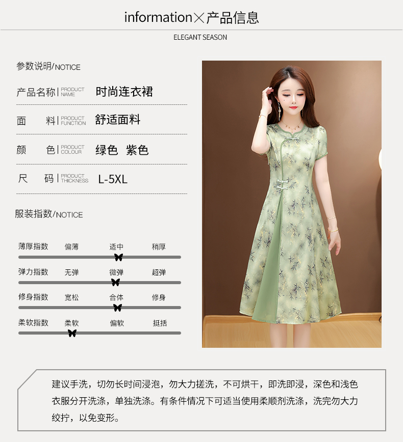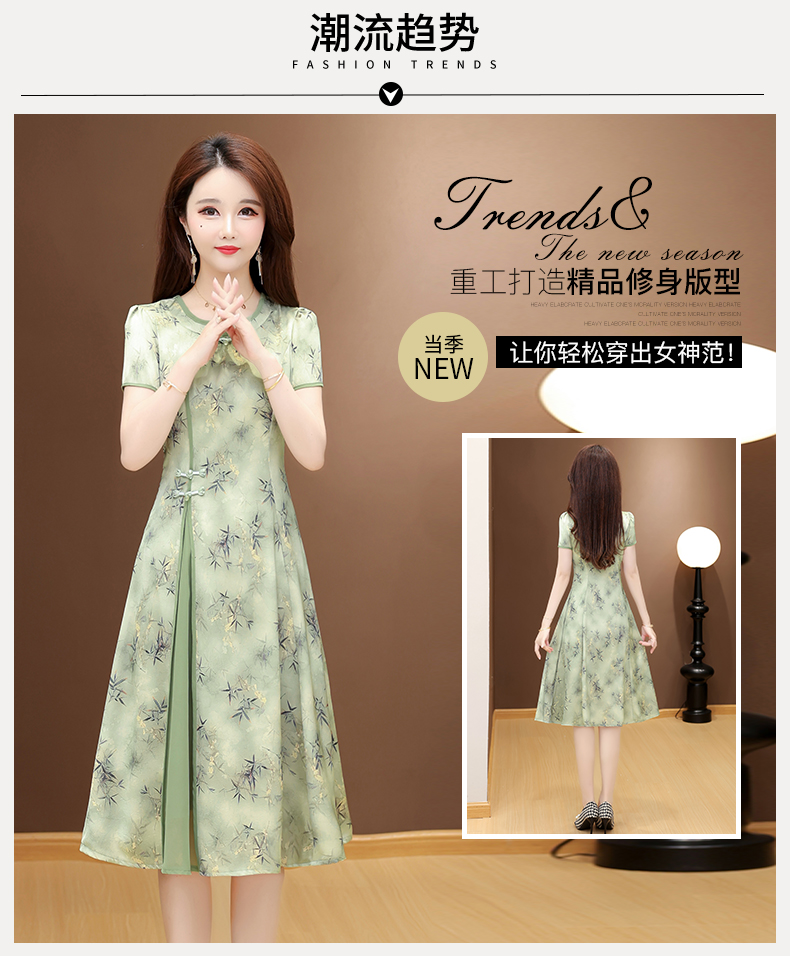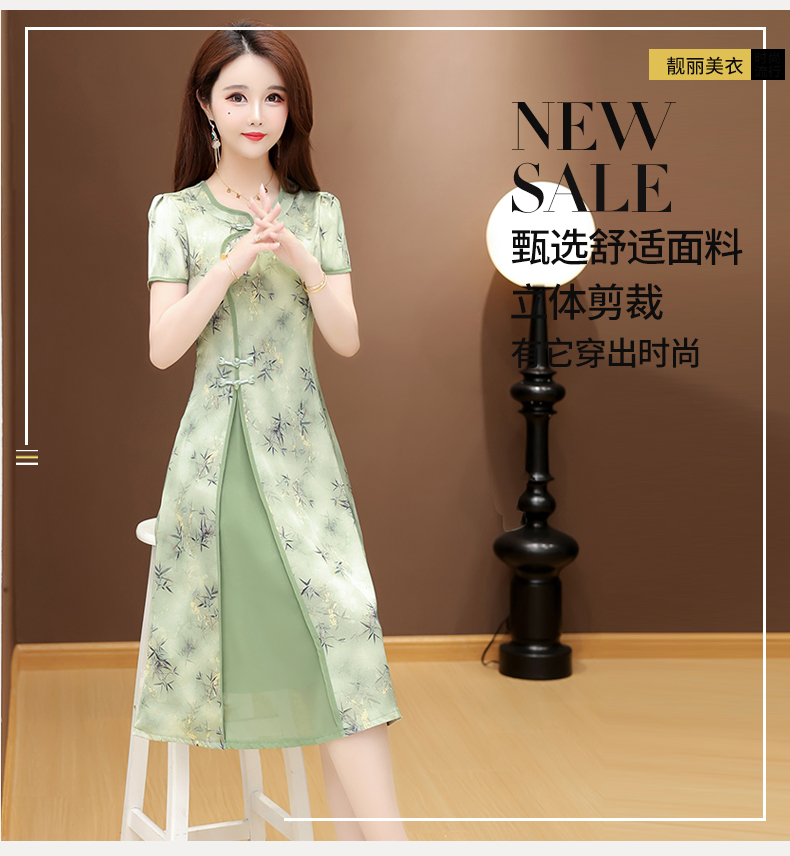 RY2435# 夏季新款大码连衣裙短袖改良旗袍裙遮肚显瘦时尚
