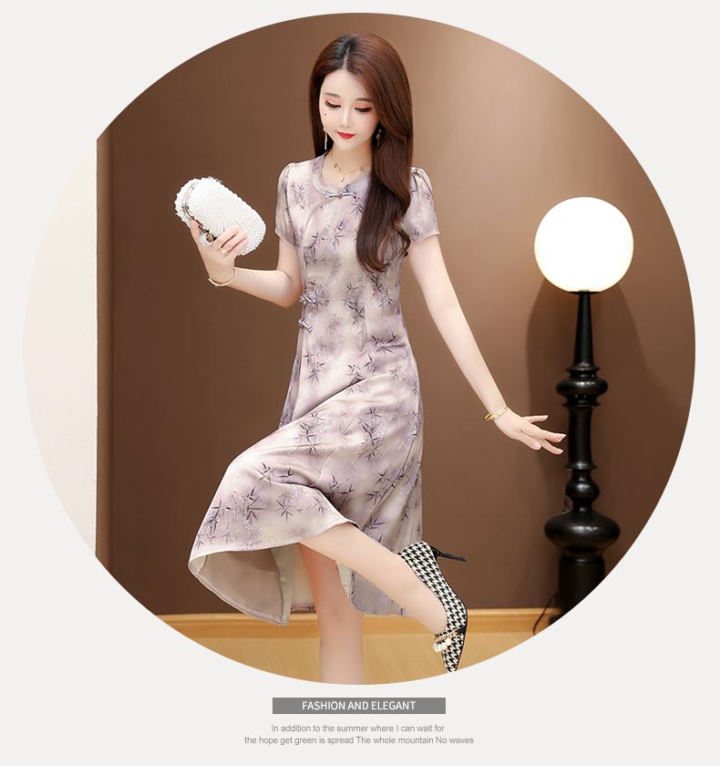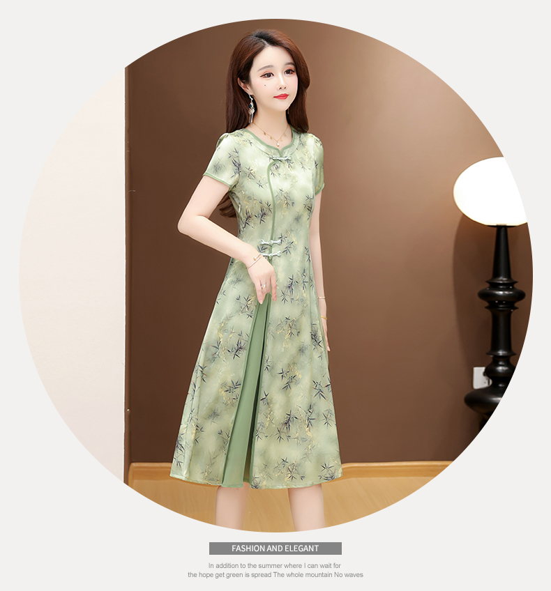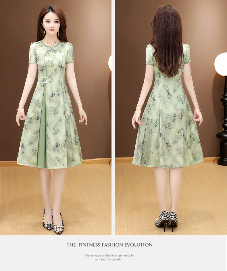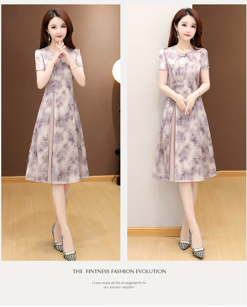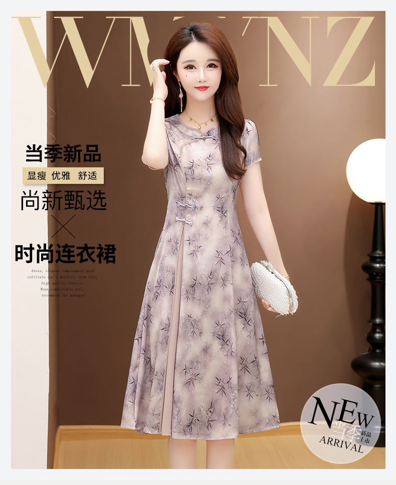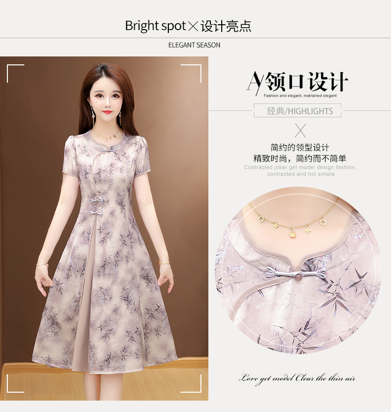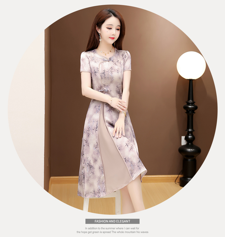 RY2435# 夏季新款大码连衣裙短袖改良旗袍裙遮肚显瘦时尚