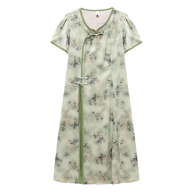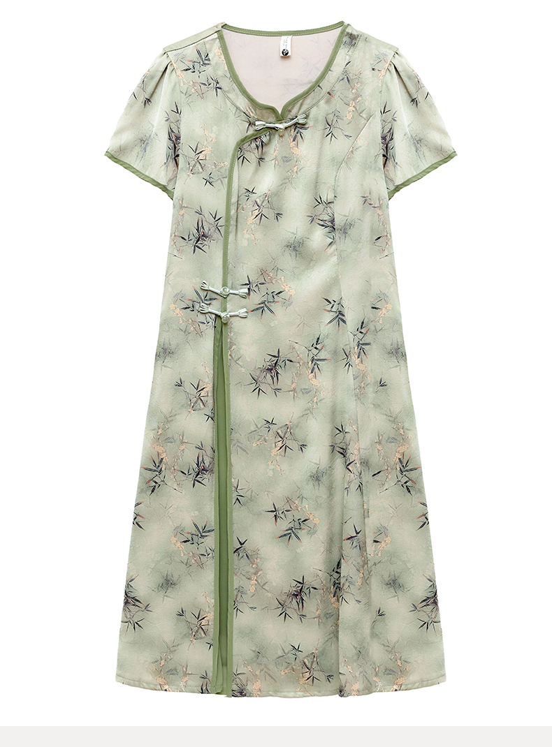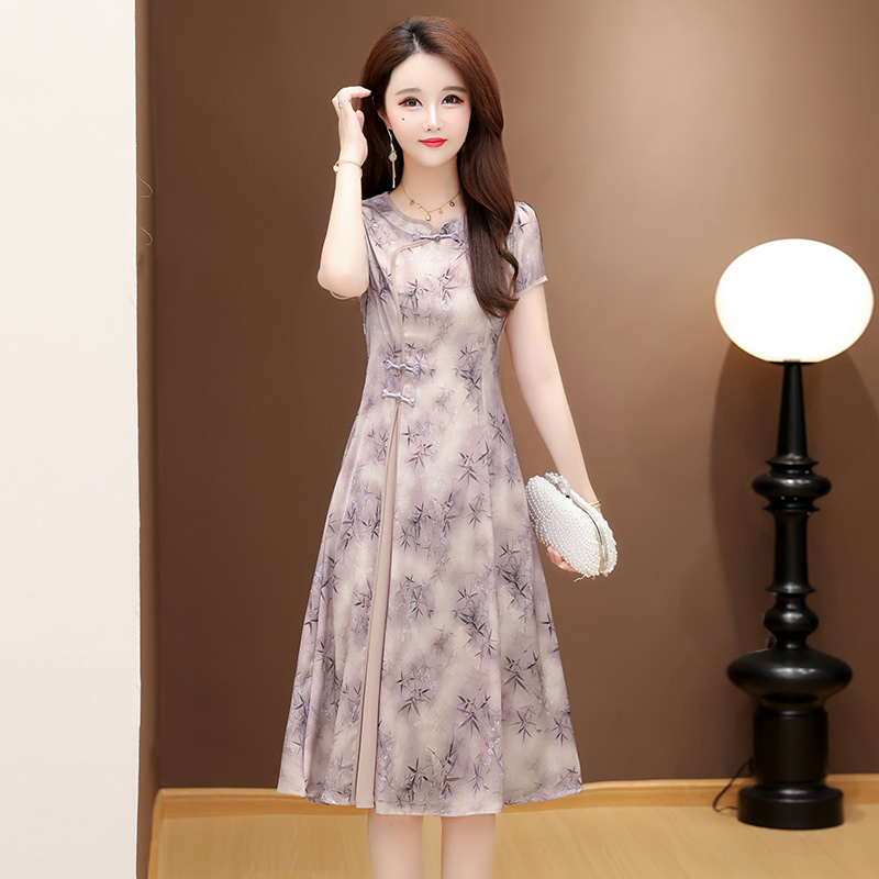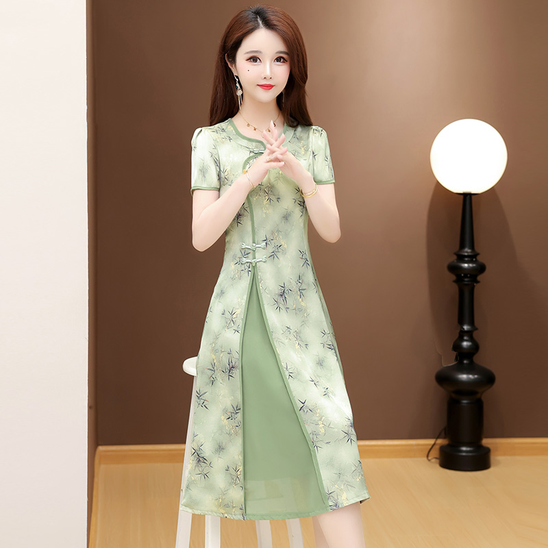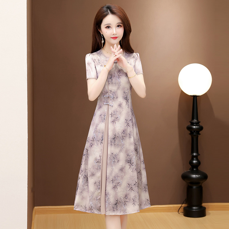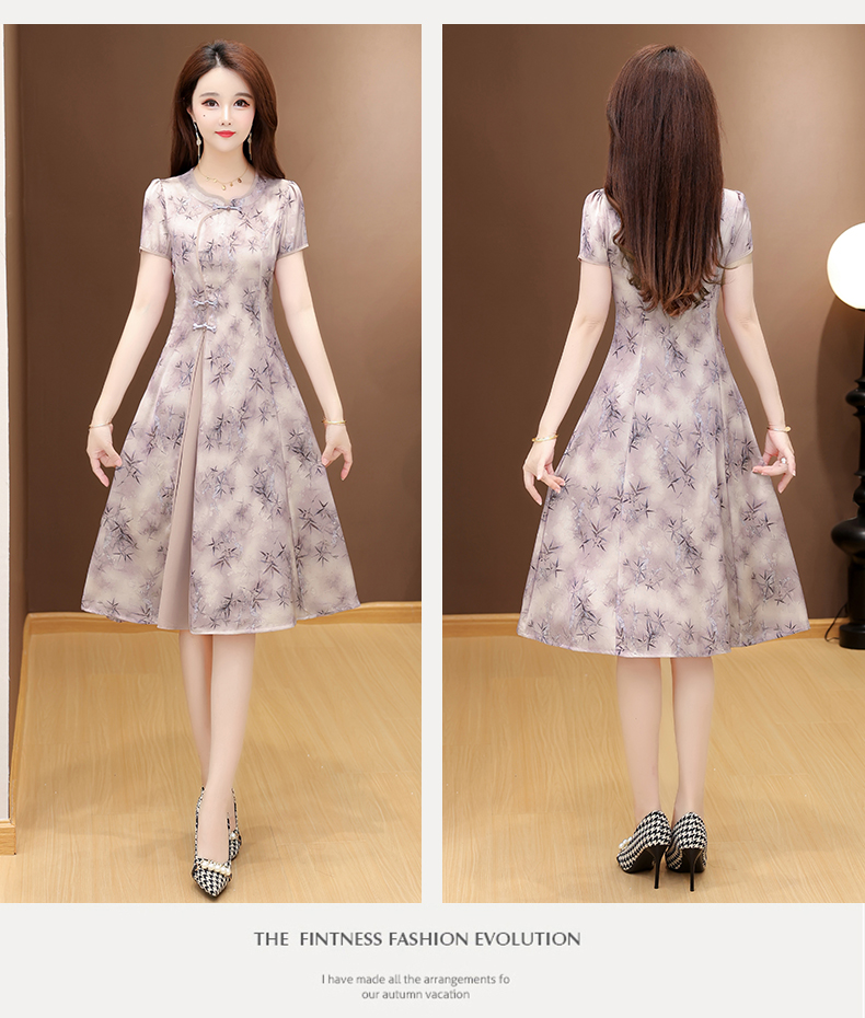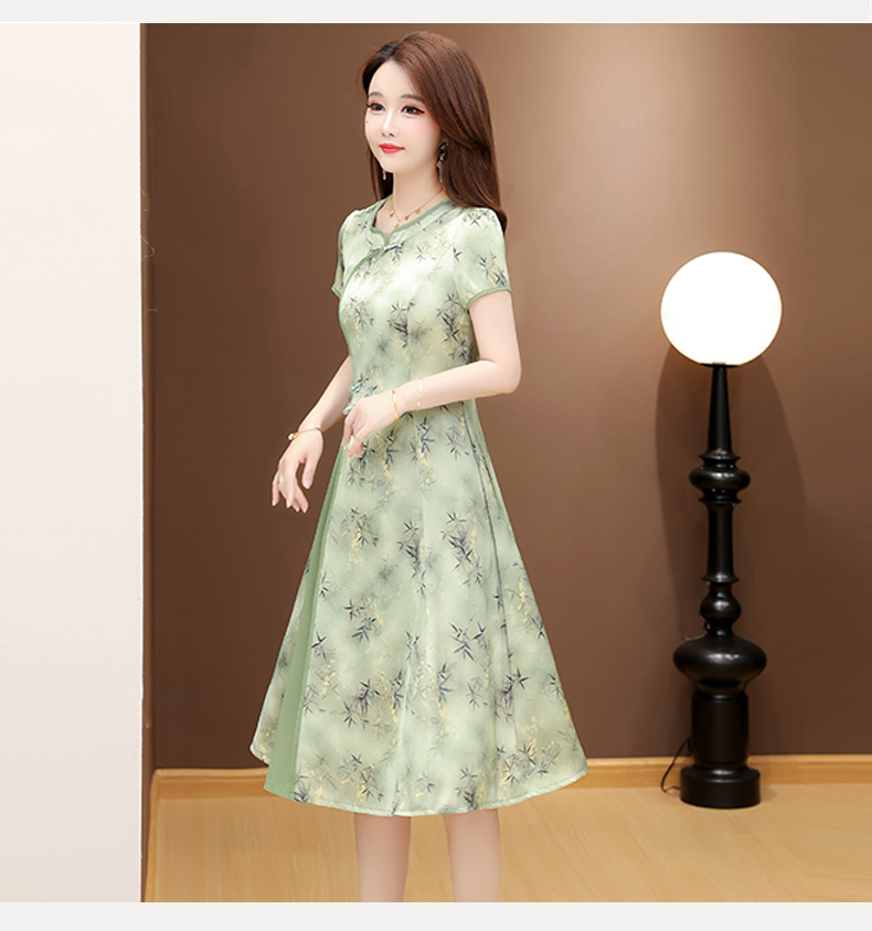 RY2435# 夏季新款大码连衣裙短袖改良旗袍裙遮肚显瘦时尚