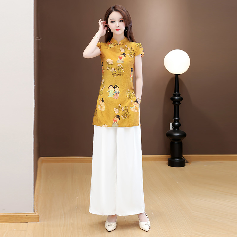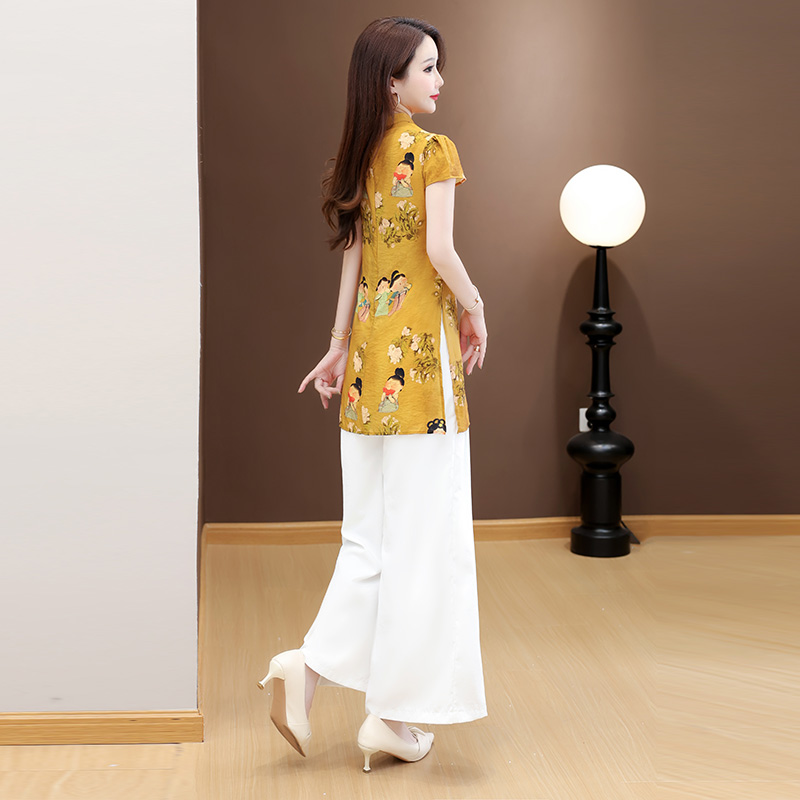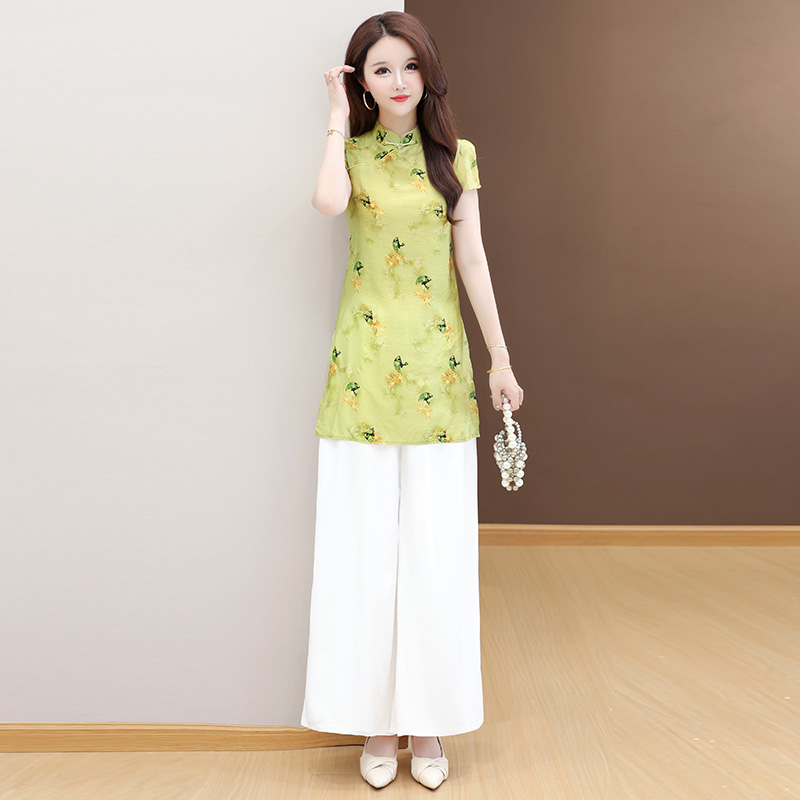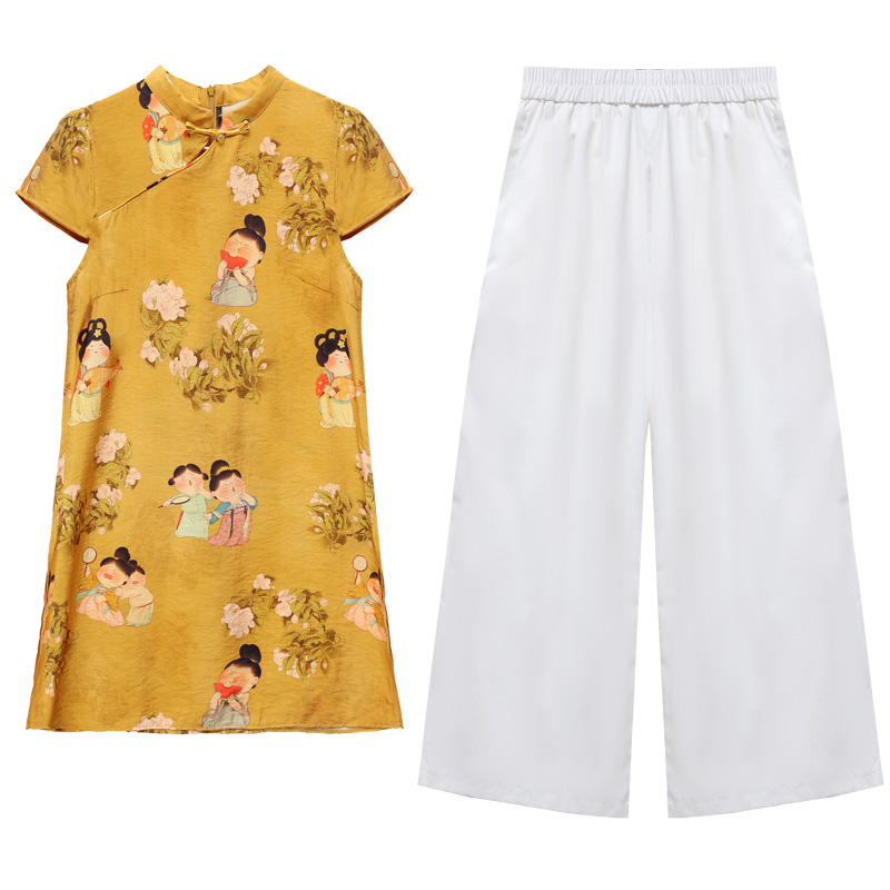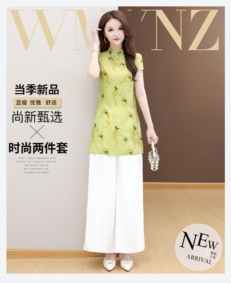 RY2446# 实拍 2026夏季新款大码短袖套装上衣+裤子时尚洋气宽松阔腿裤