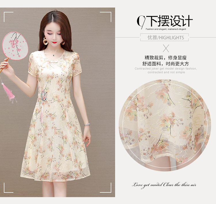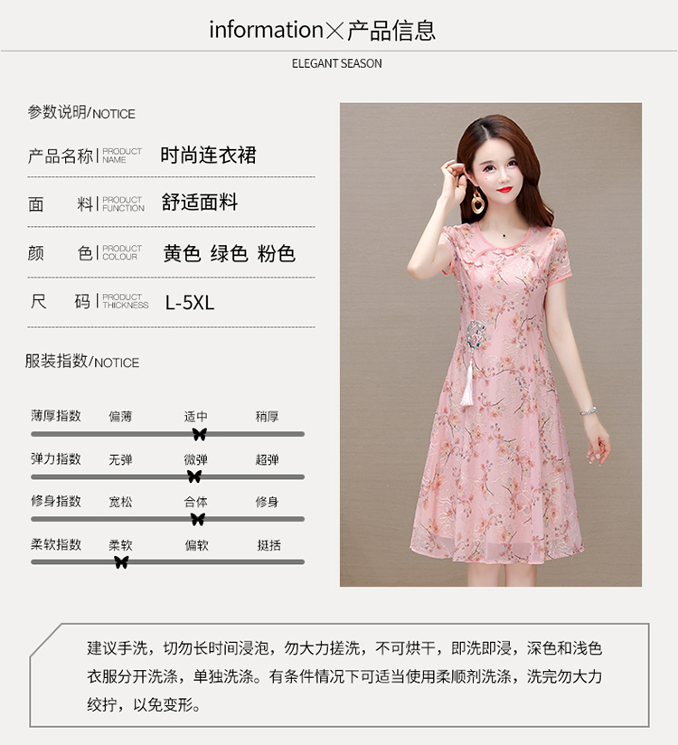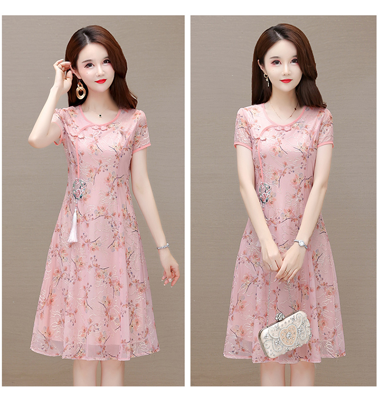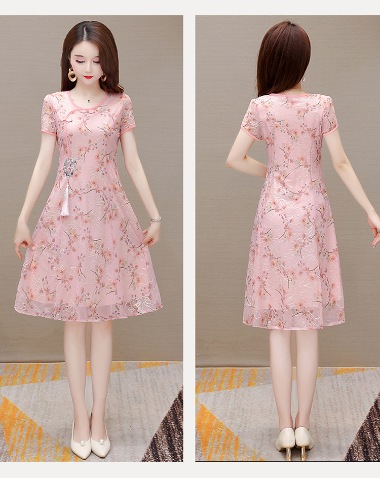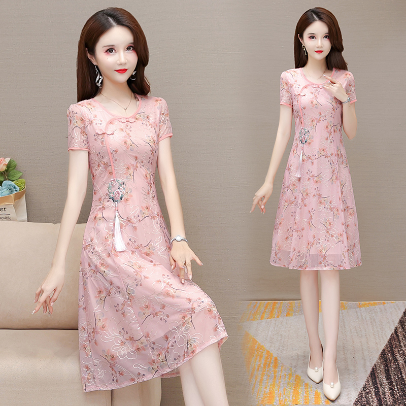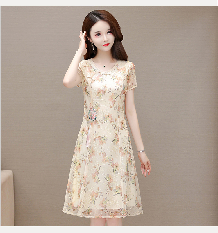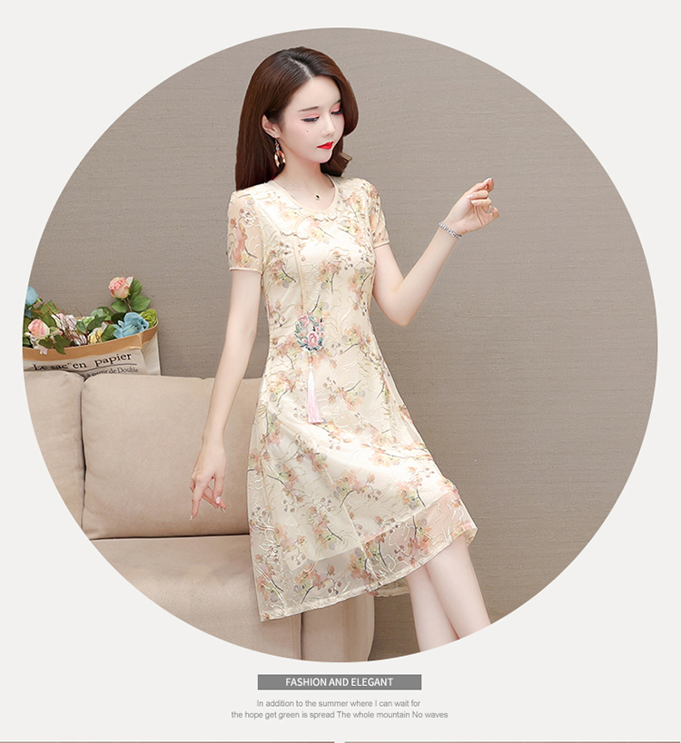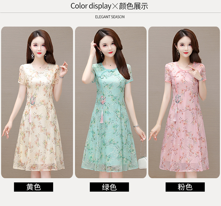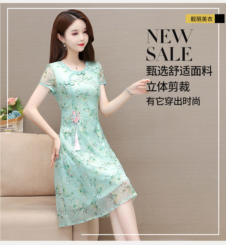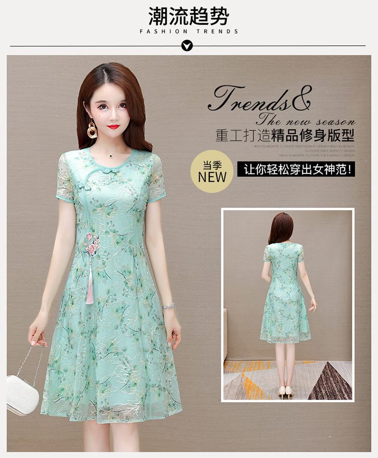 RY2454# 实拍 2026新款大码短袖连衣裙国风改良旗袍收腰洋气中长款