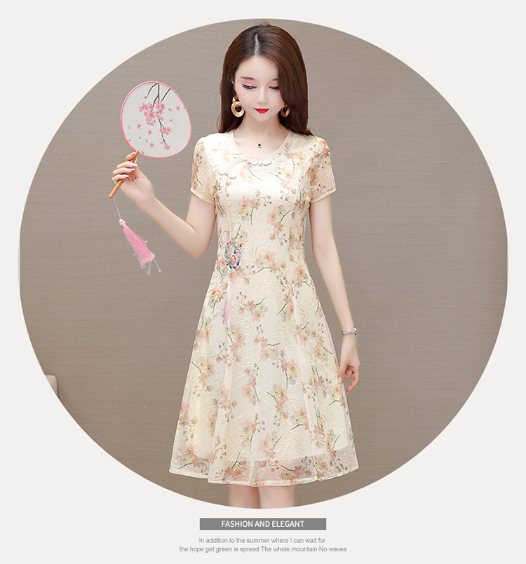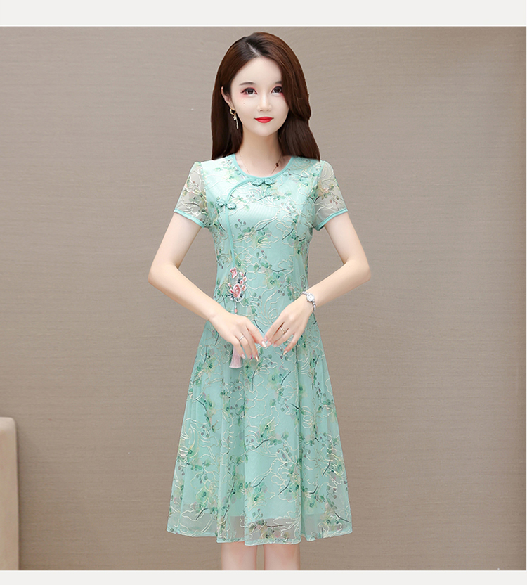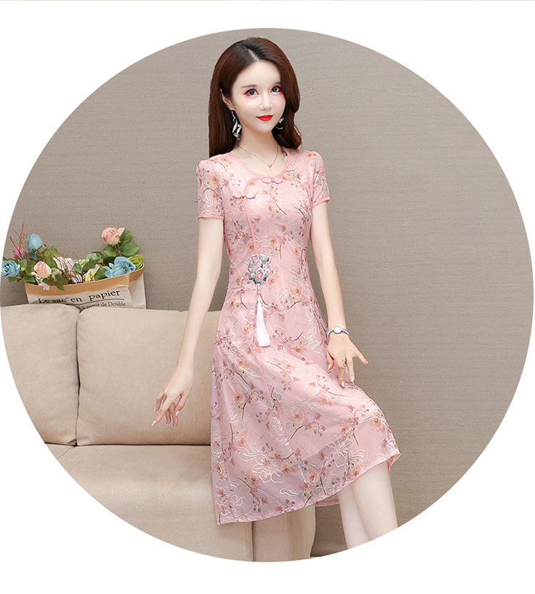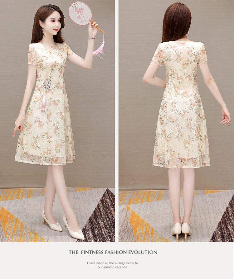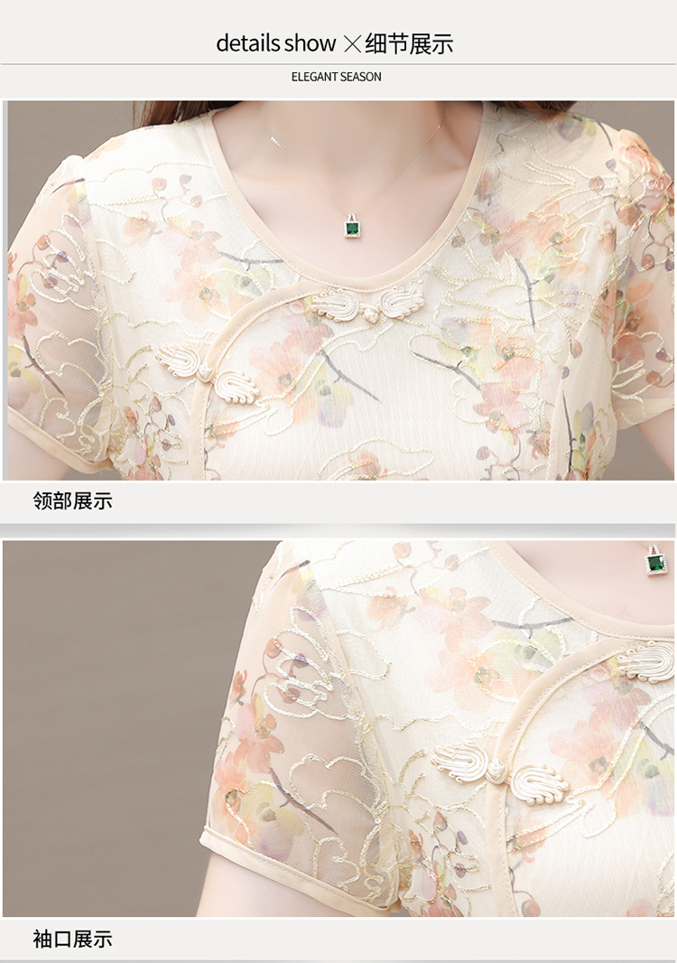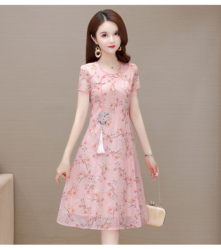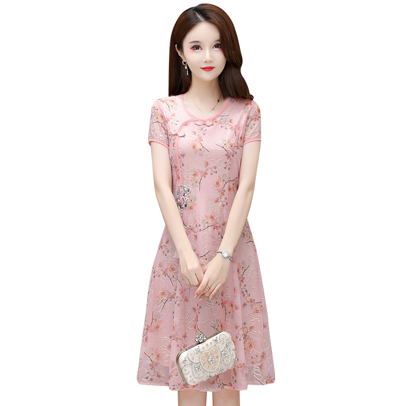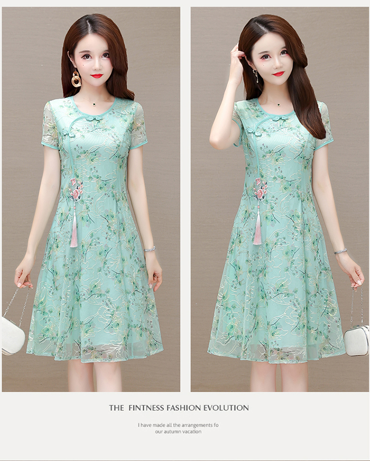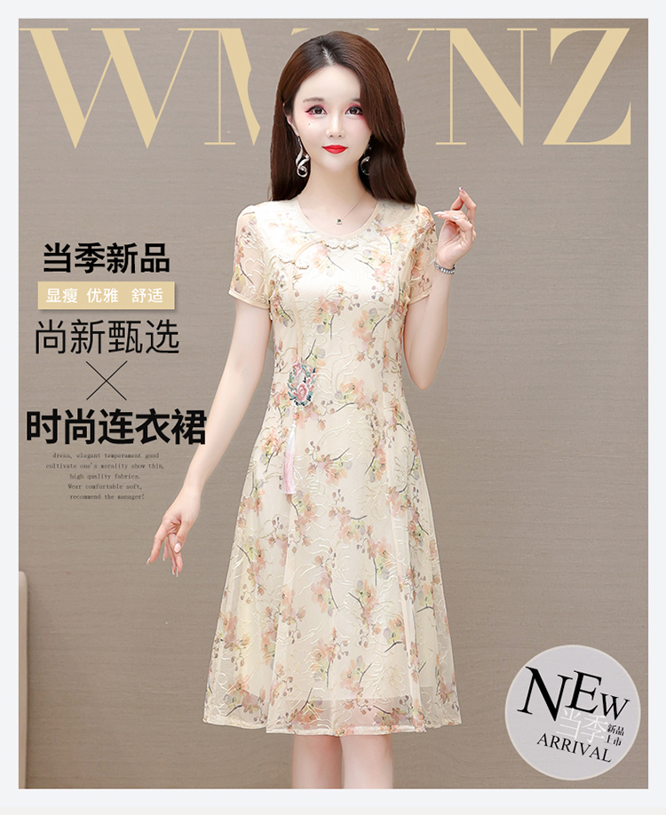 RY2454# 实拍 2026新款大码短袖连衣裙国风改良旗袍收腰洋气中长款