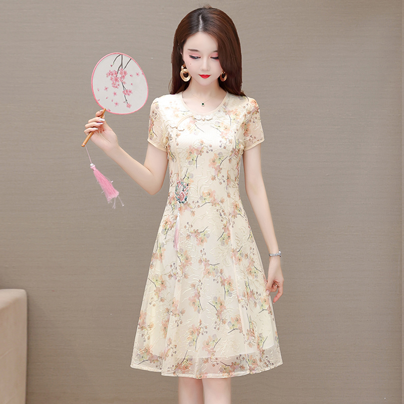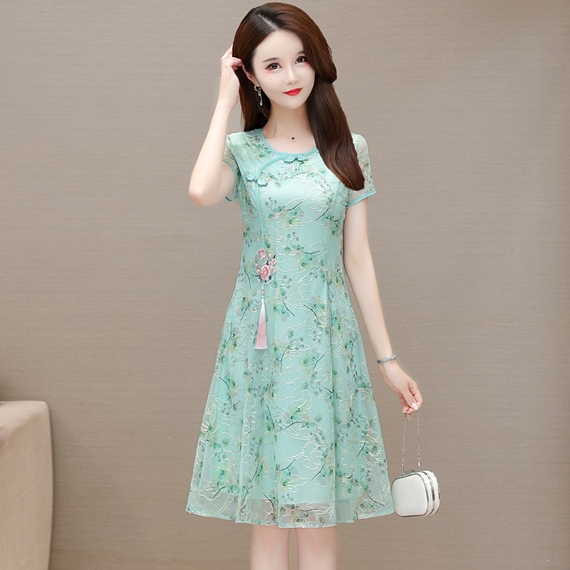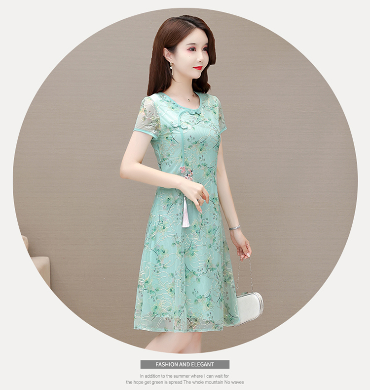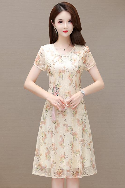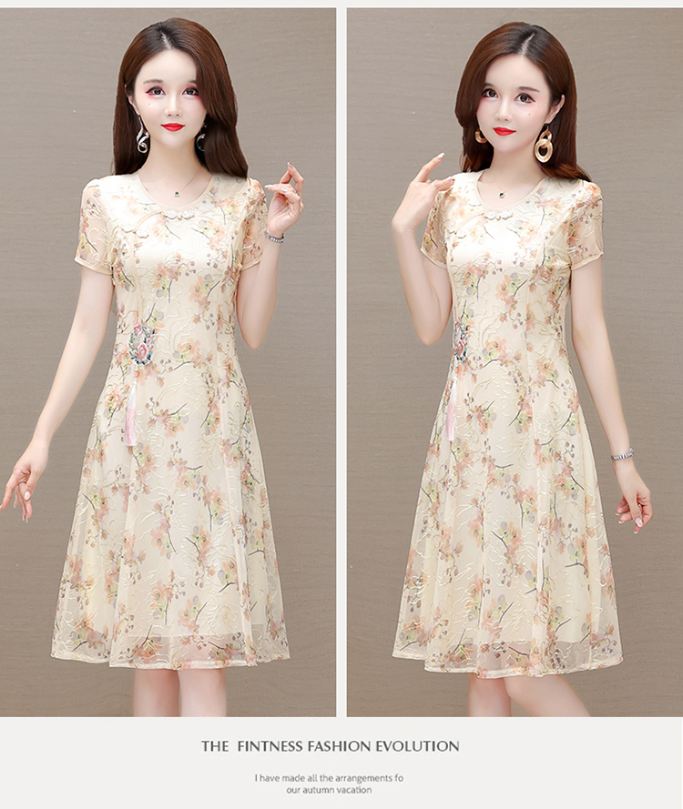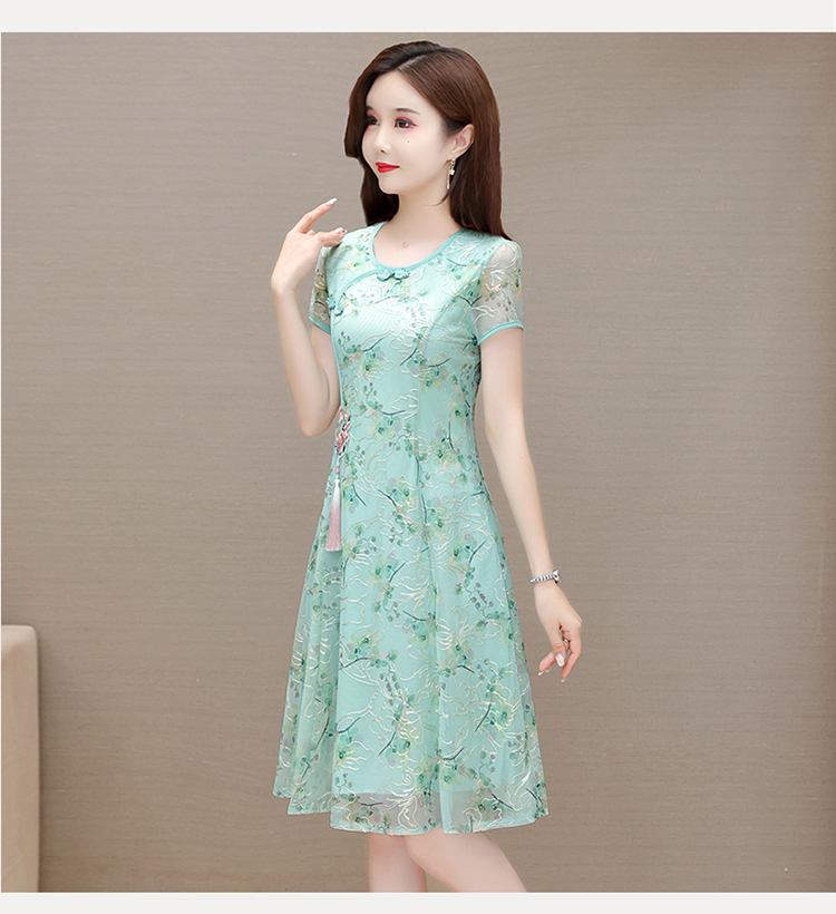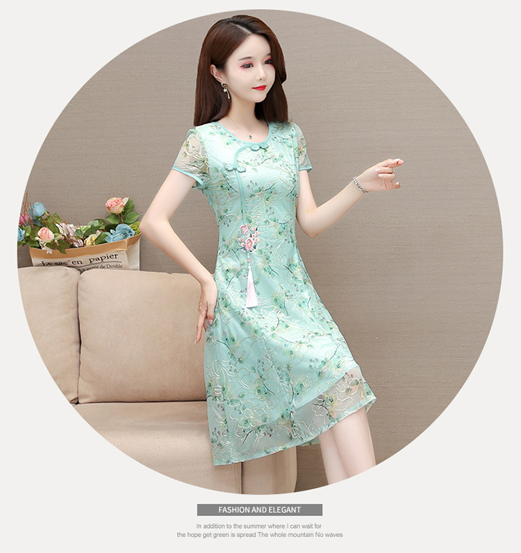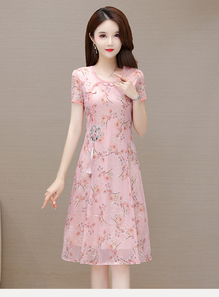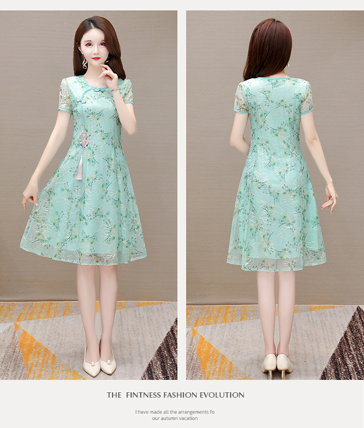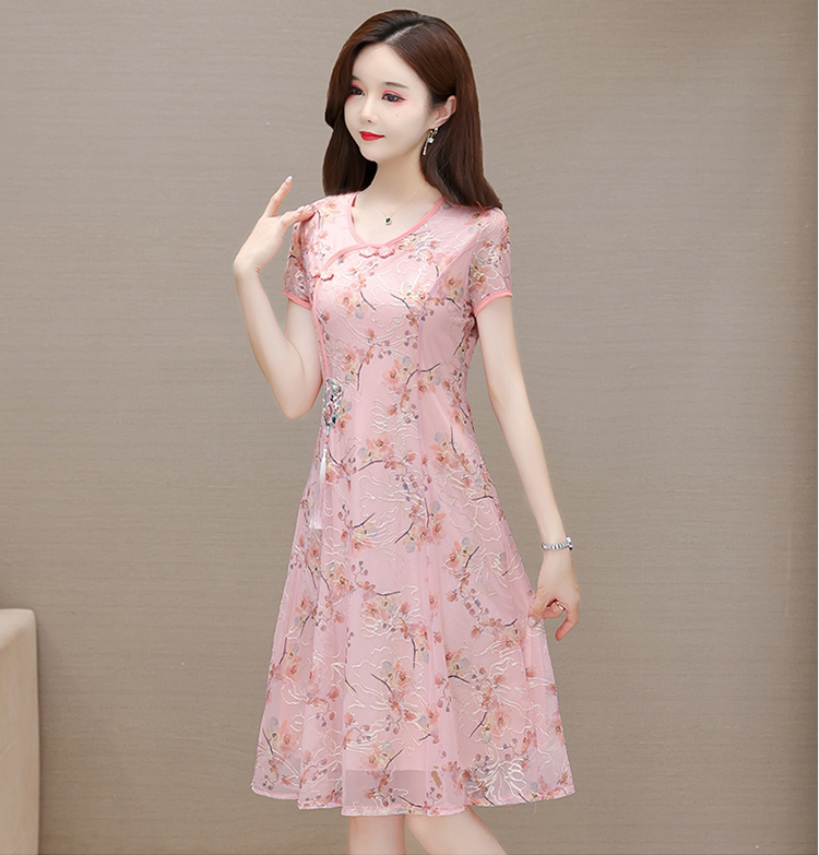 RY2454# 实拍 2026新款大码短袖连衣裙国风改良旗袍收腰洋气中长款