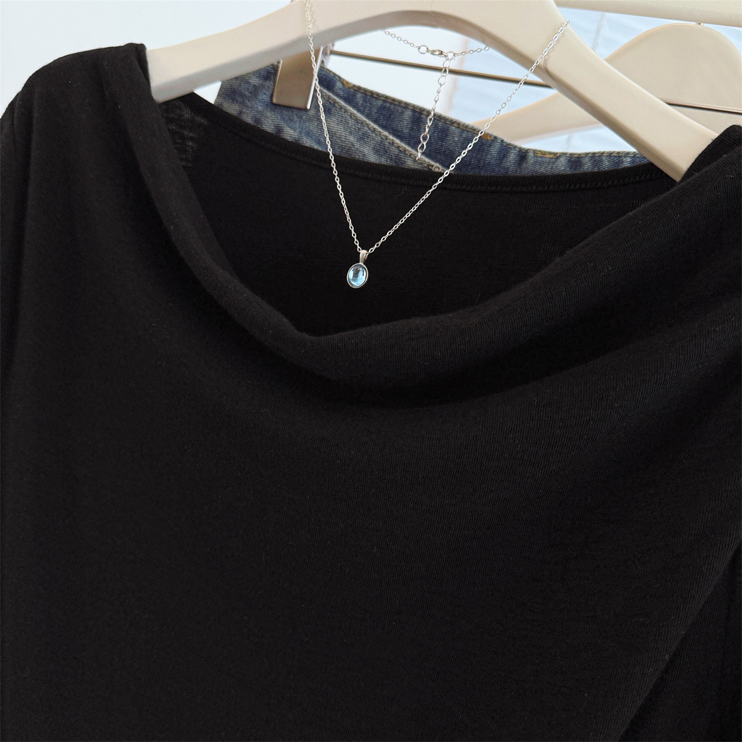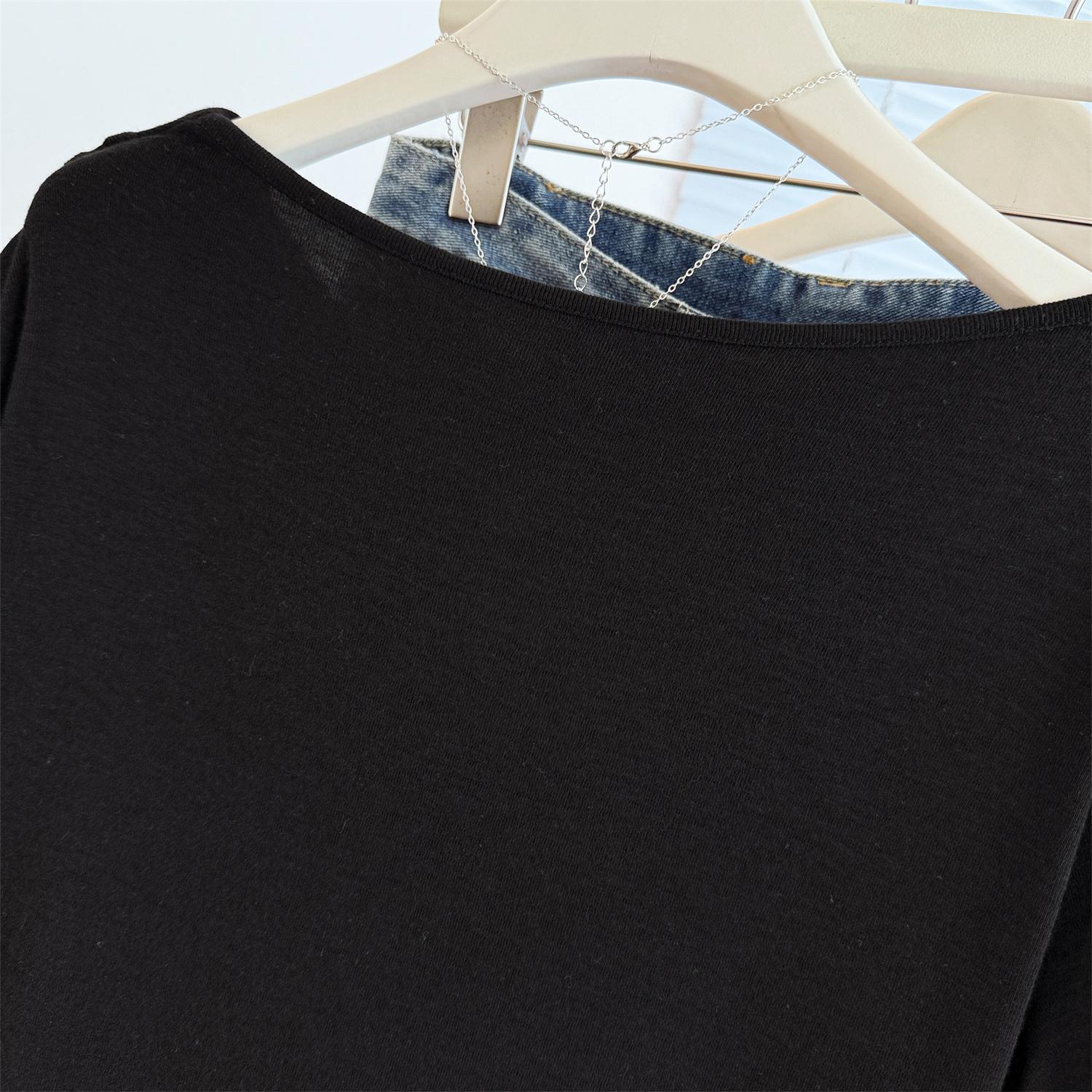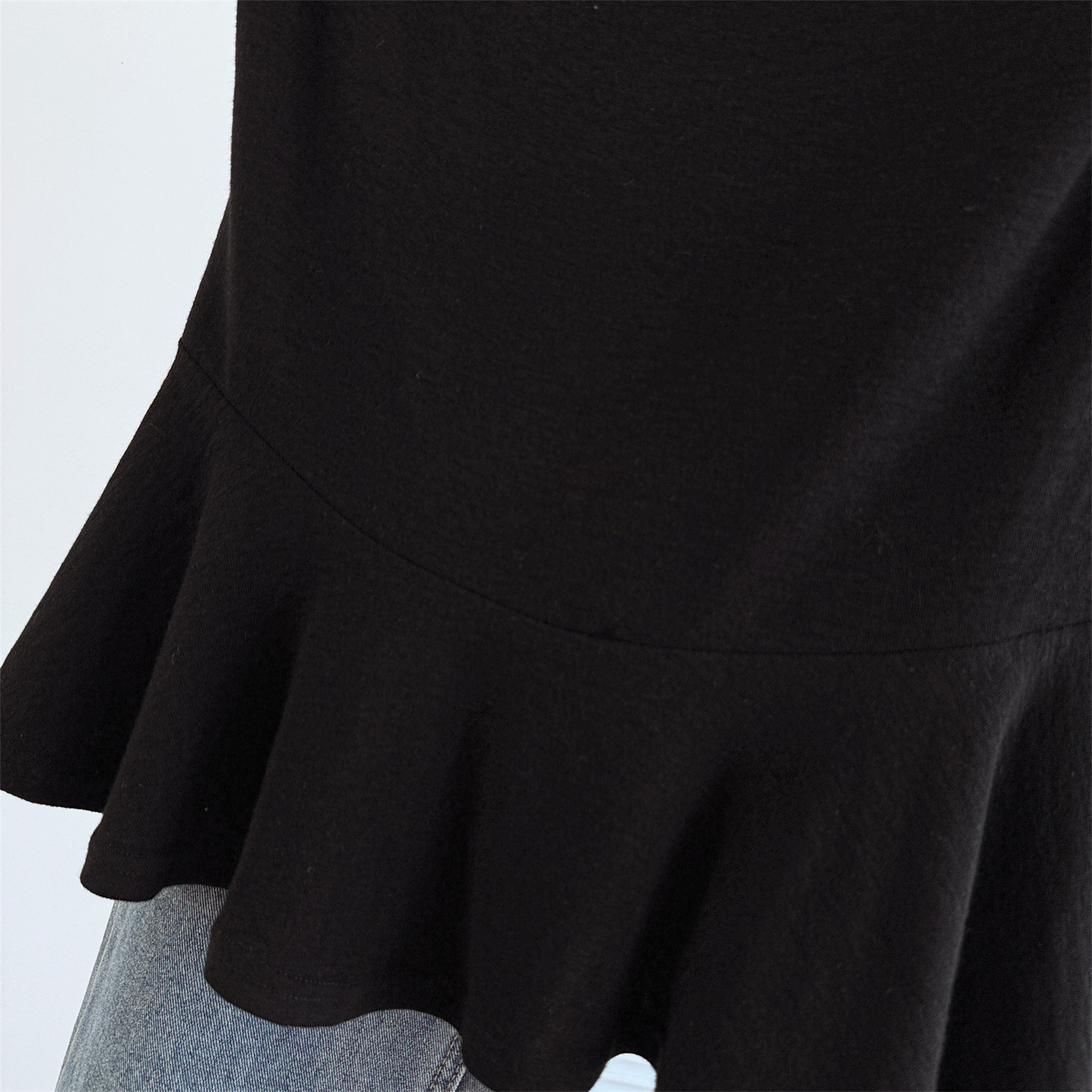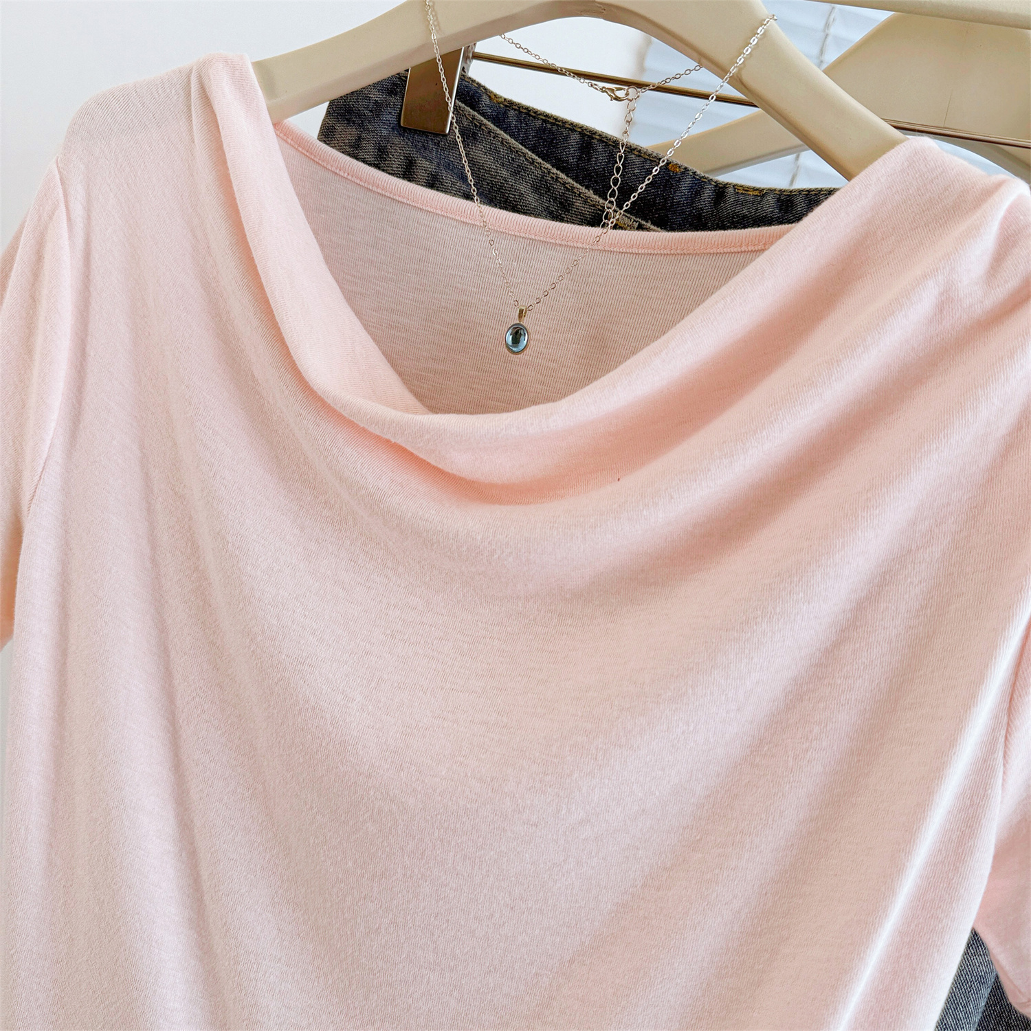 RY2455# 实拍大码女装夏季新不规则荡领气质甜美显瘦百搭短袖上衣