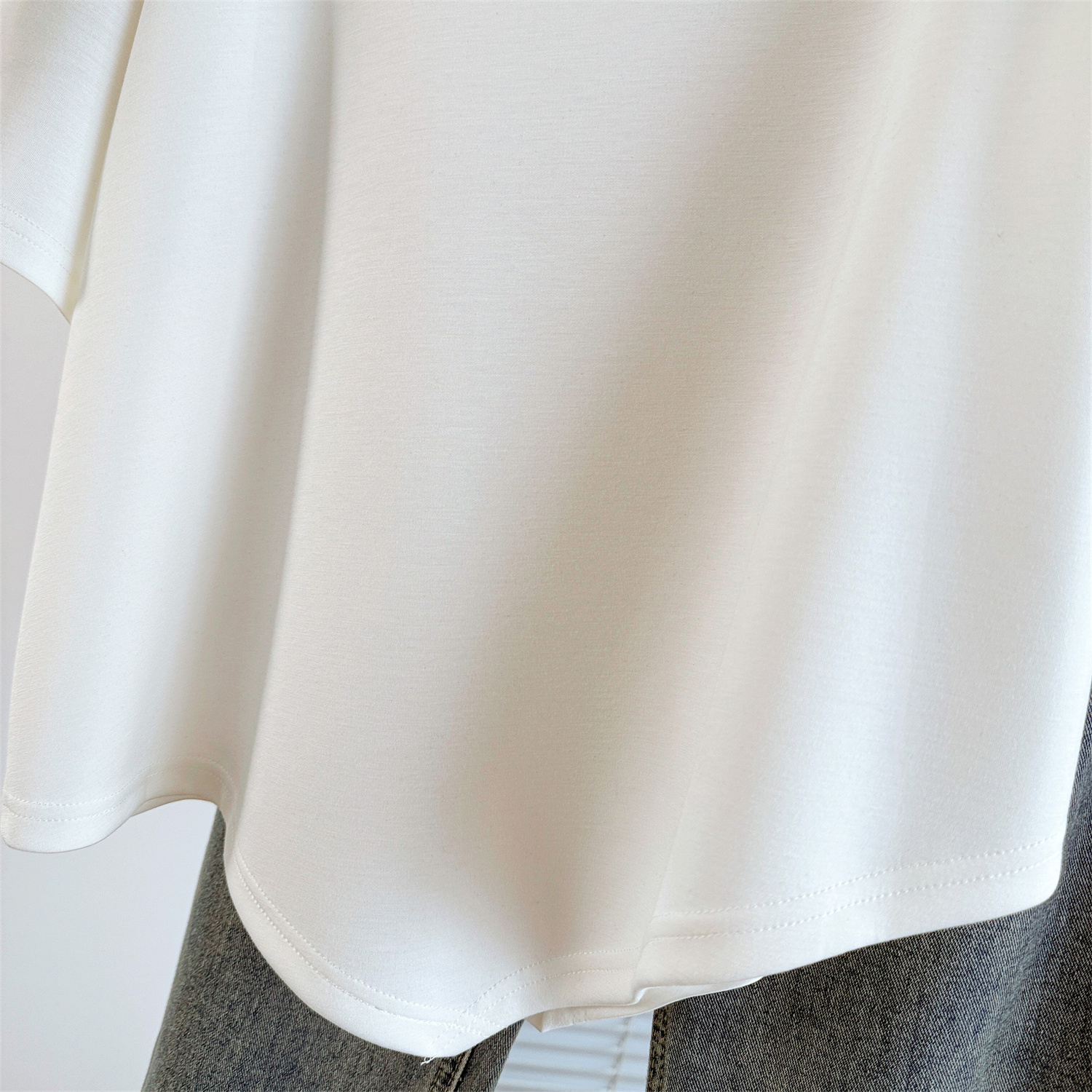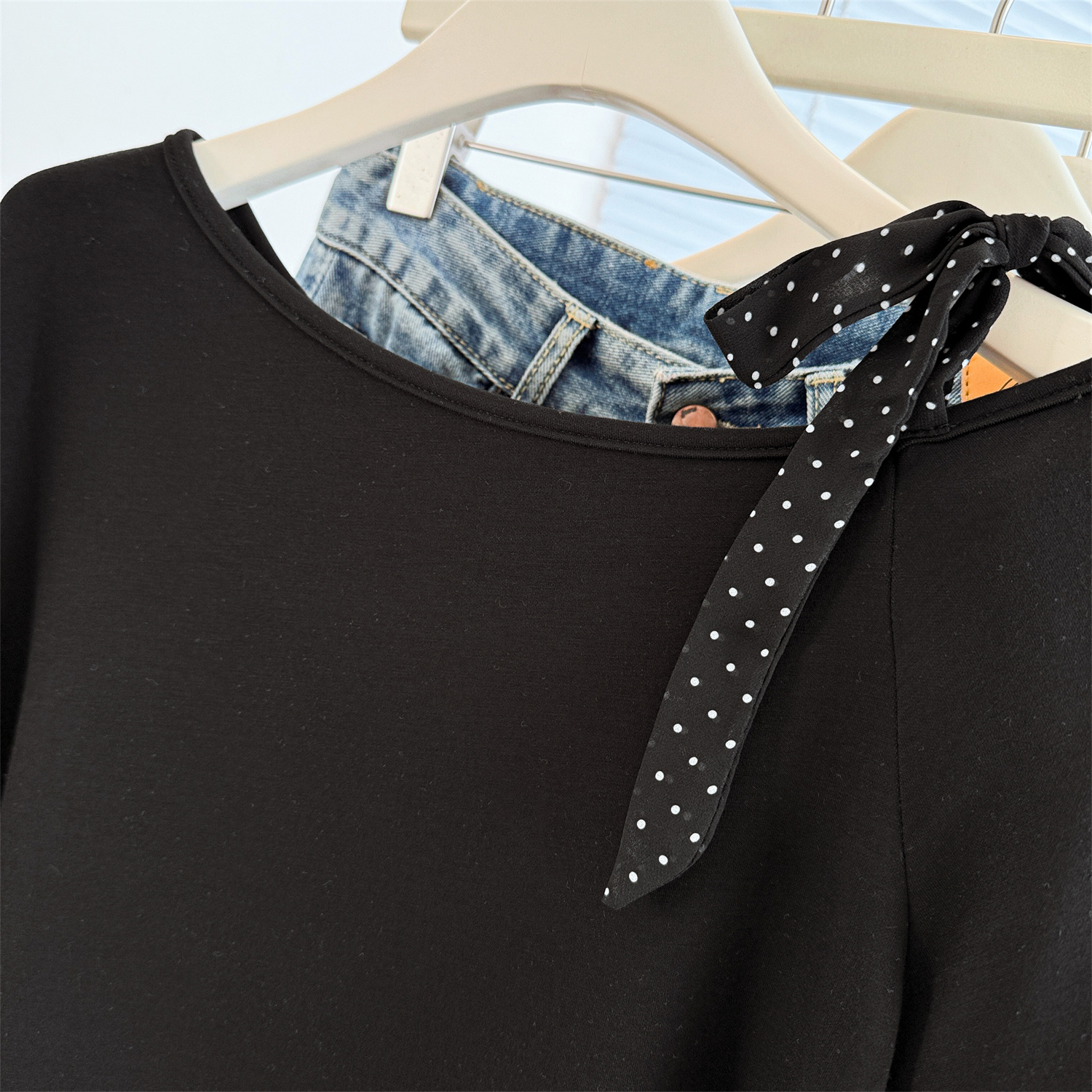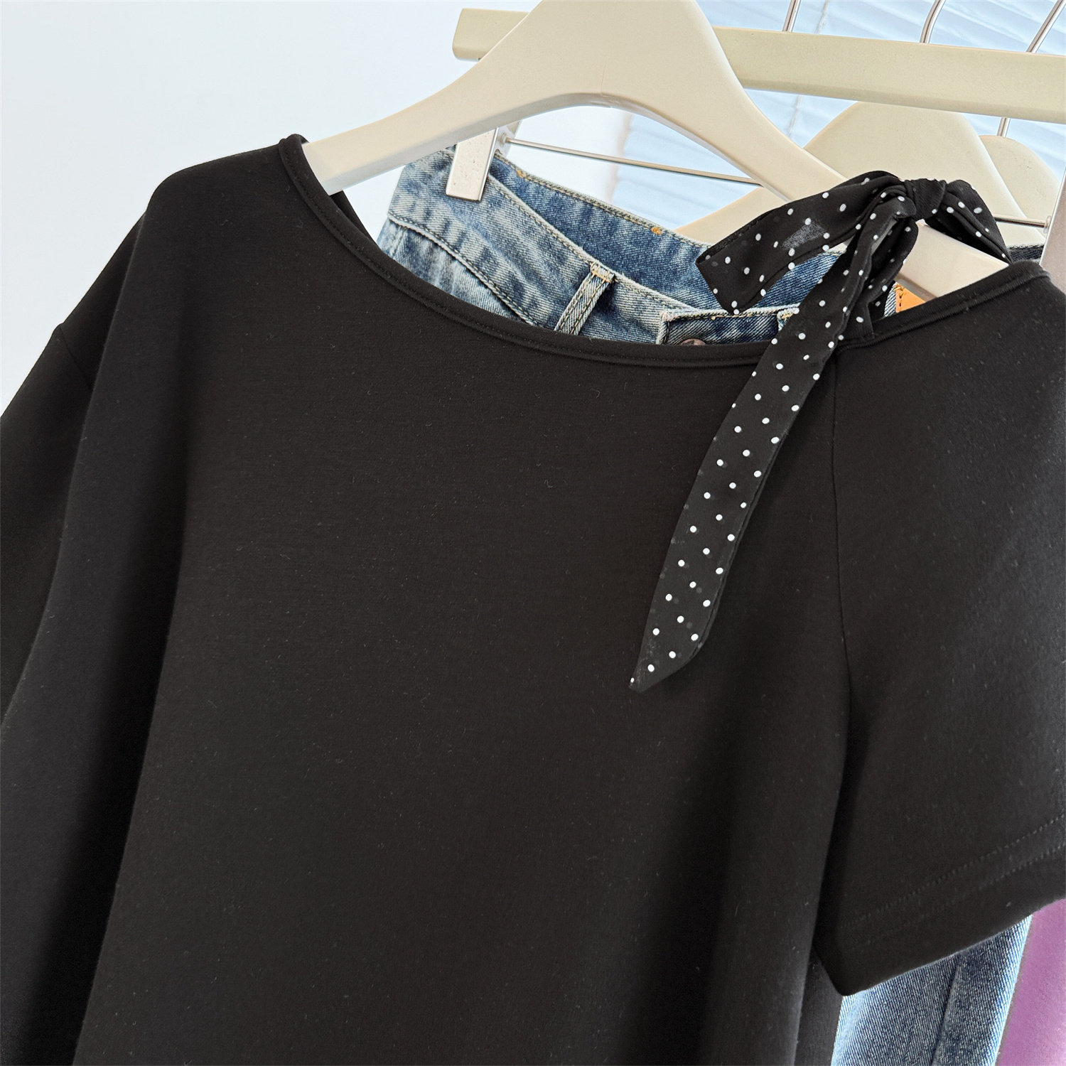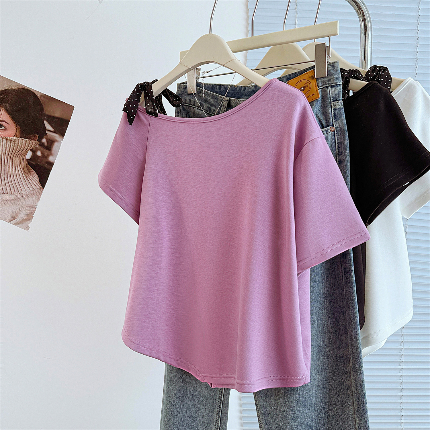 RY2456# 实拍大码女韩版高级感潮流斜肩绑带不规则下摆设计感显瘦宽松上衣