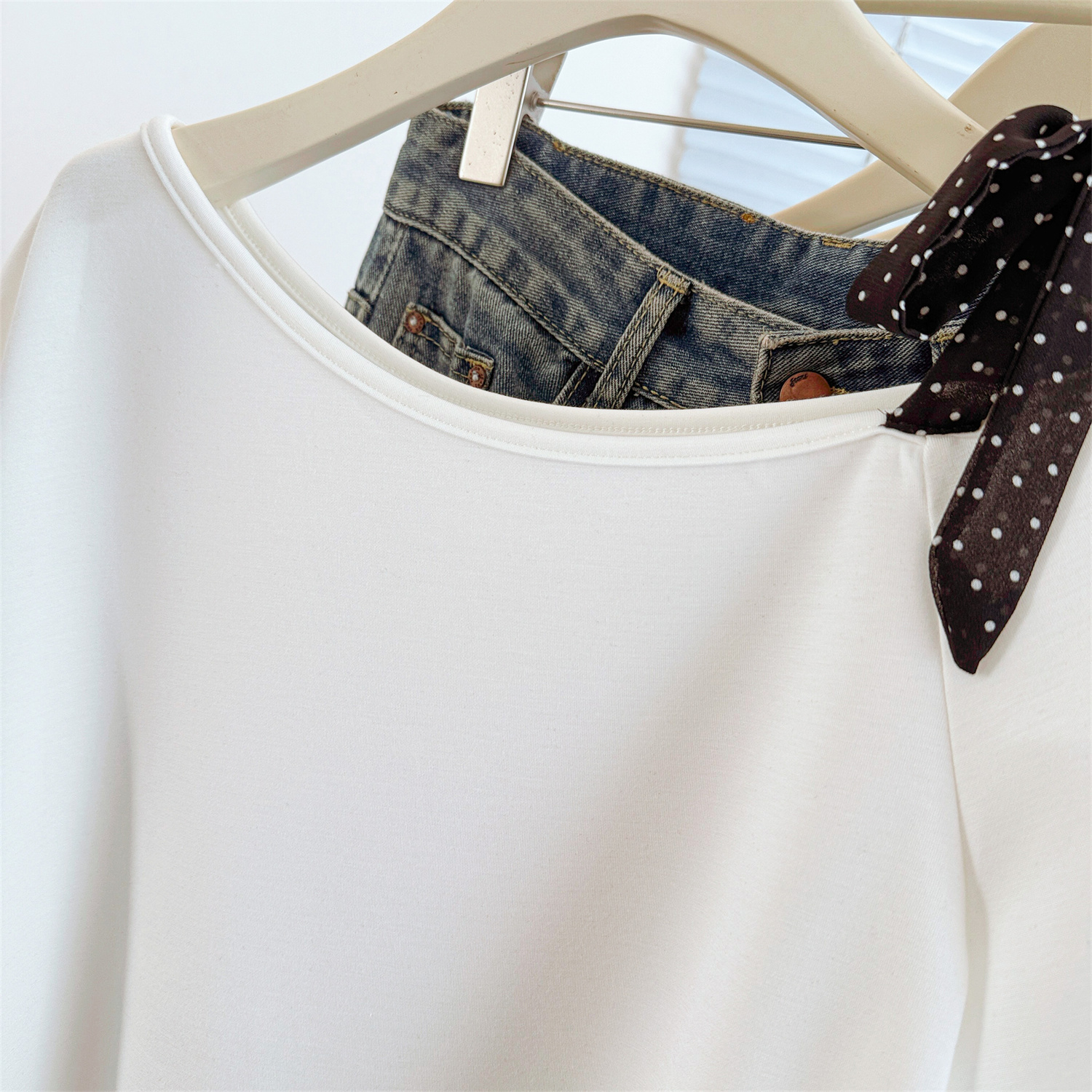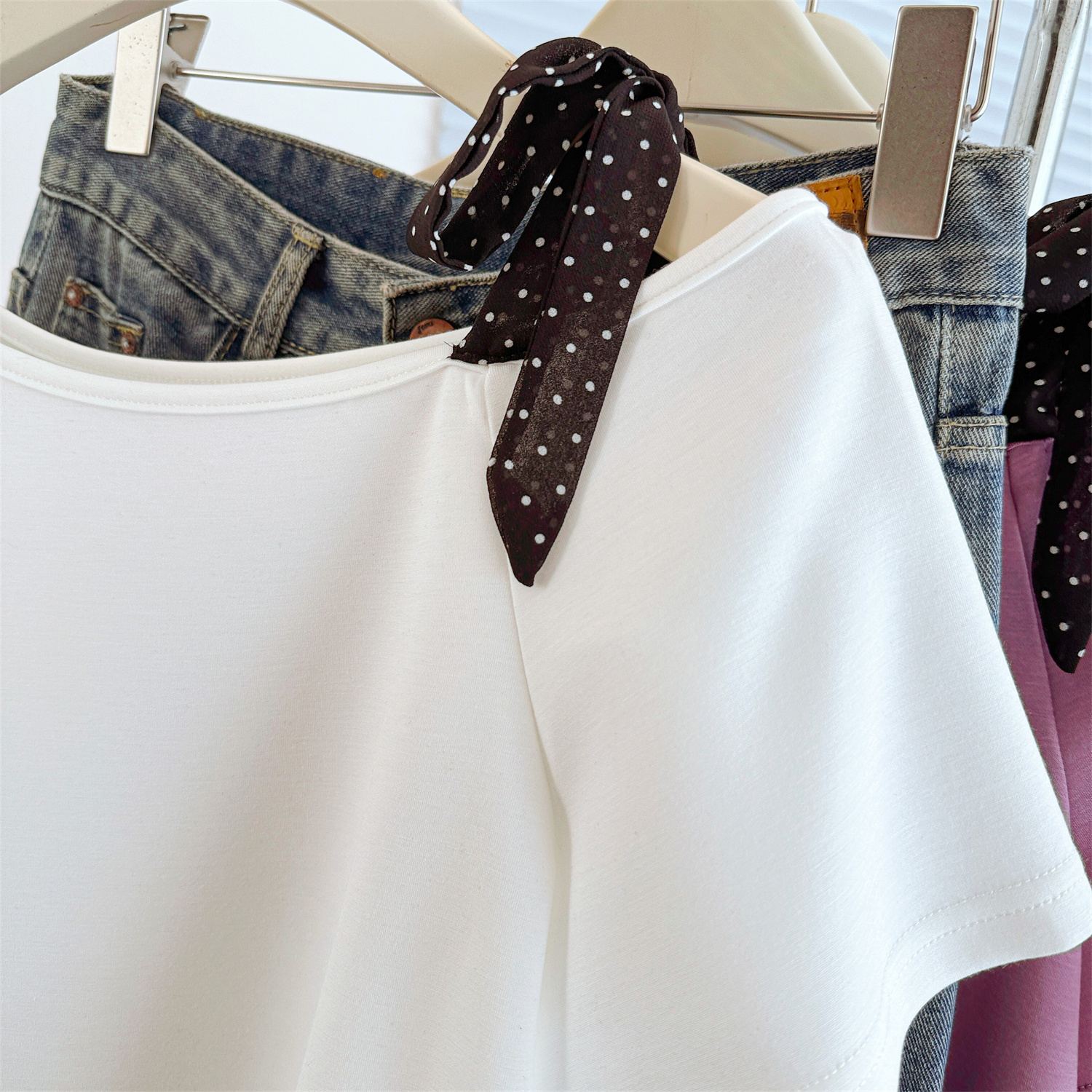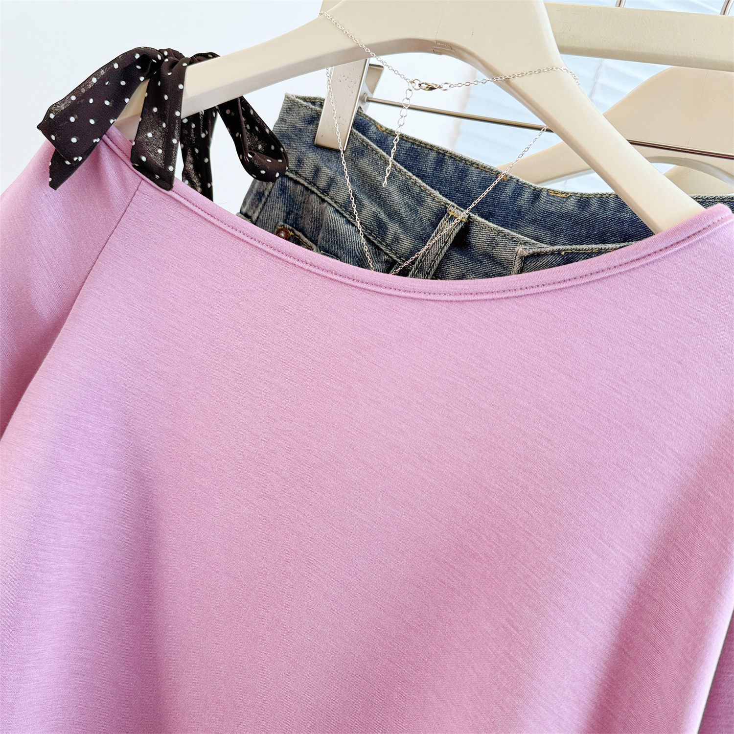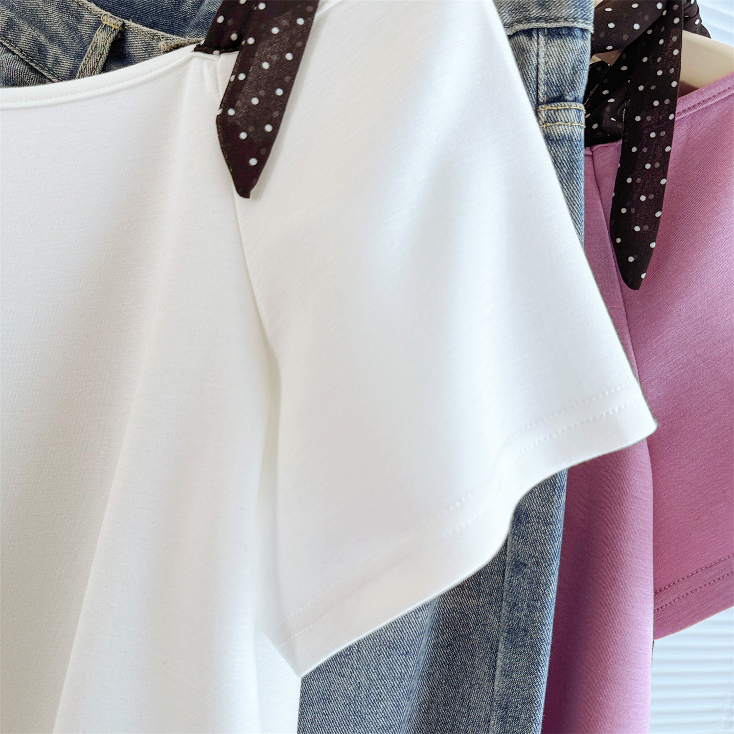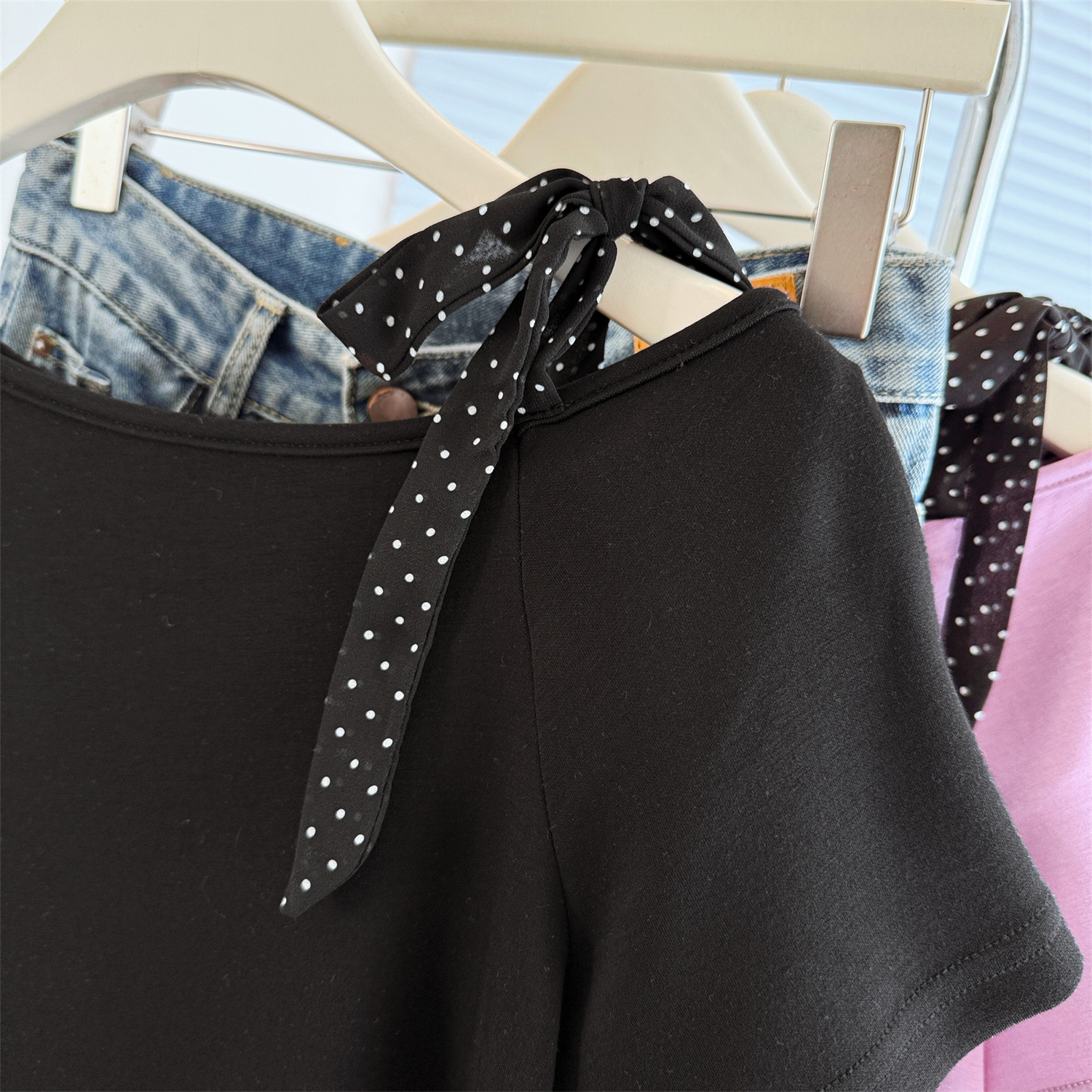 RY2456# 实拍大码女韩版高级感潮流斜肩绑带不规则下摆设计感显瘦宽松上衣