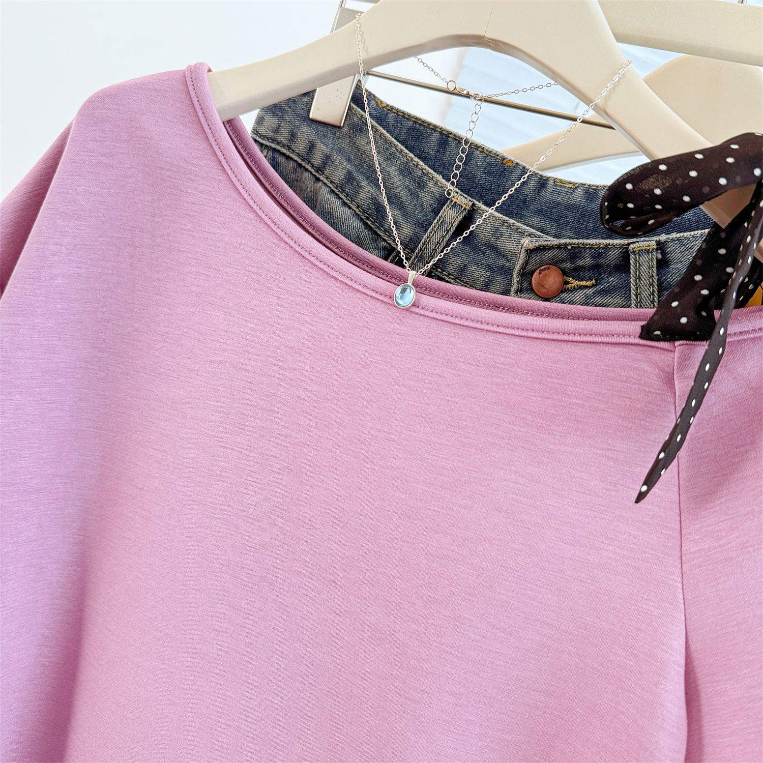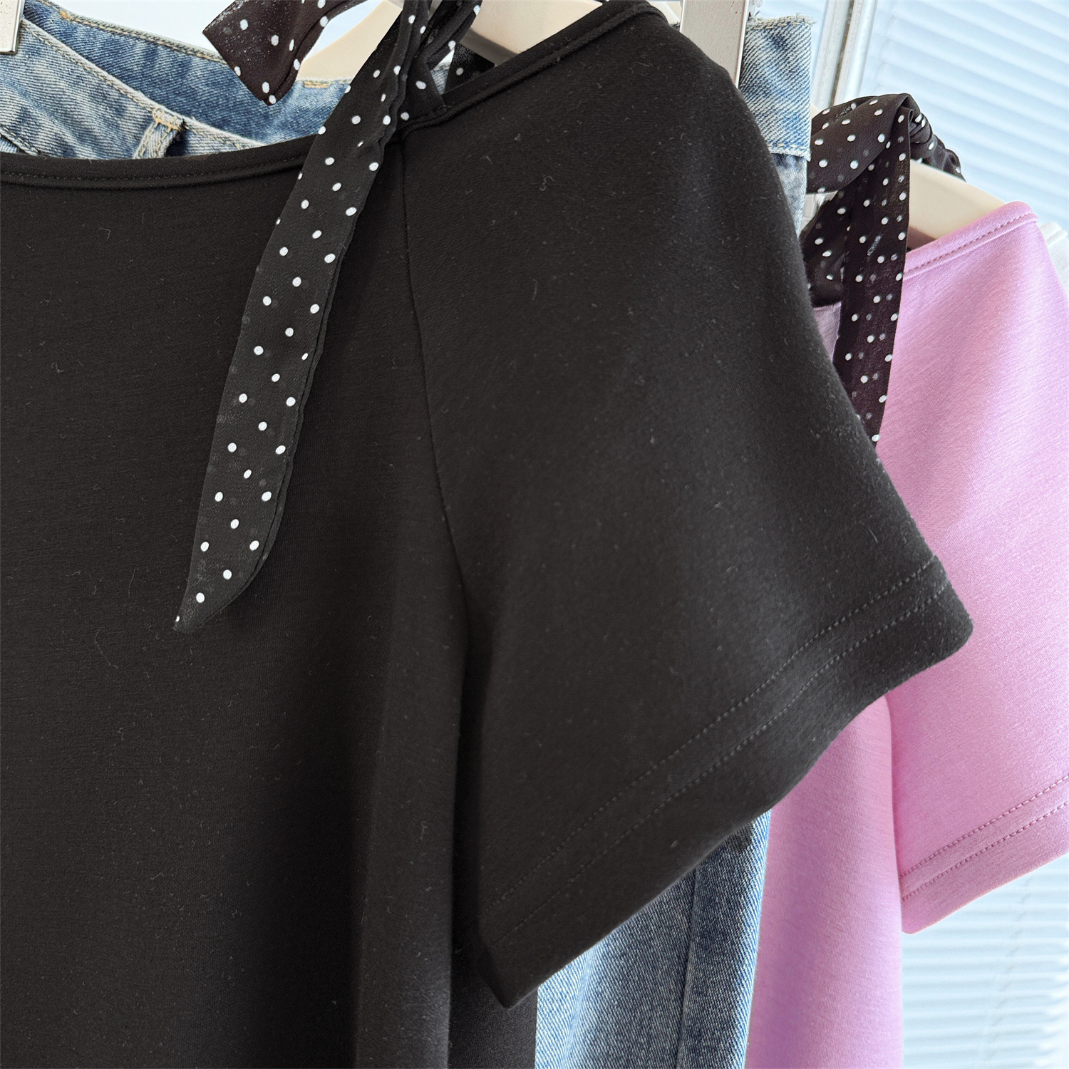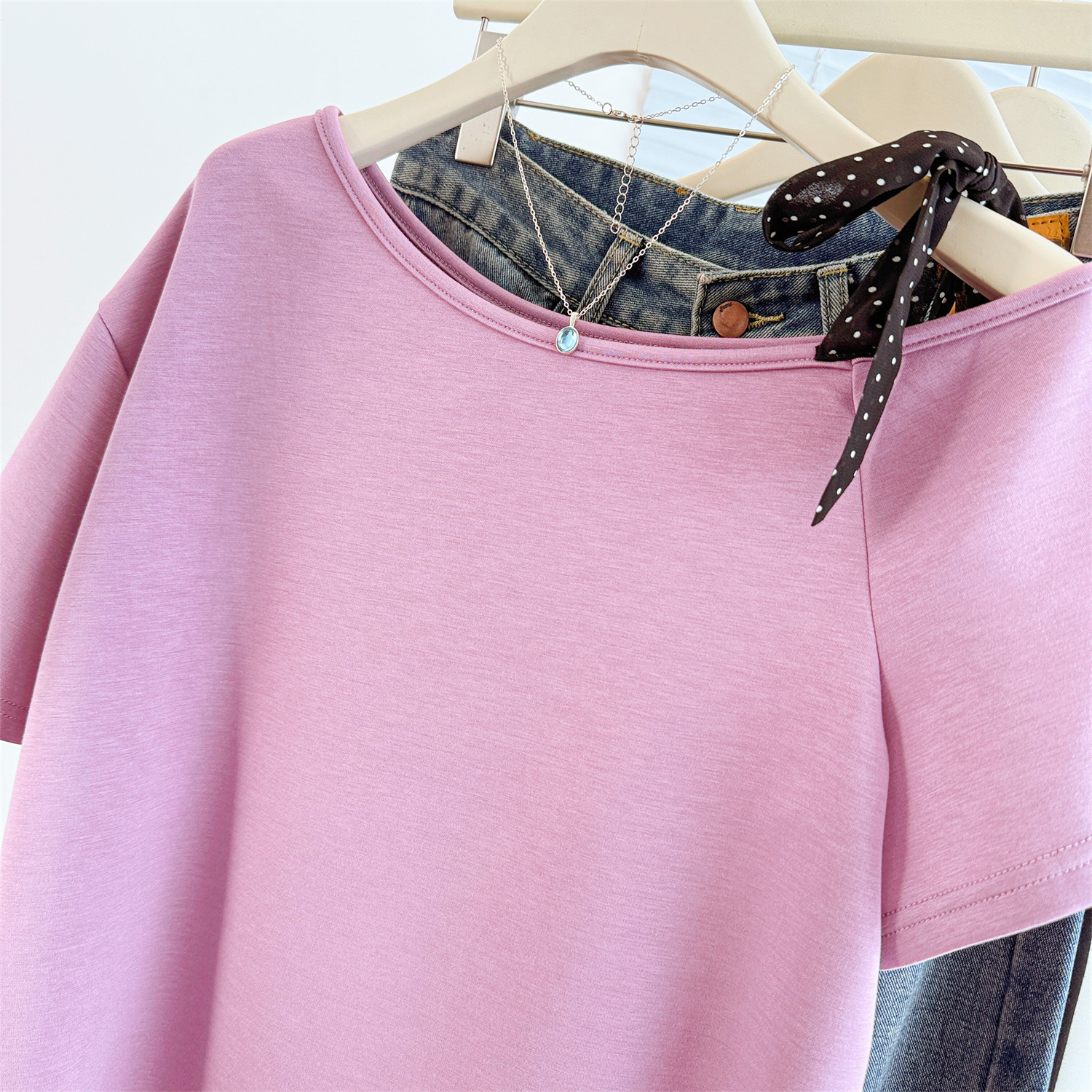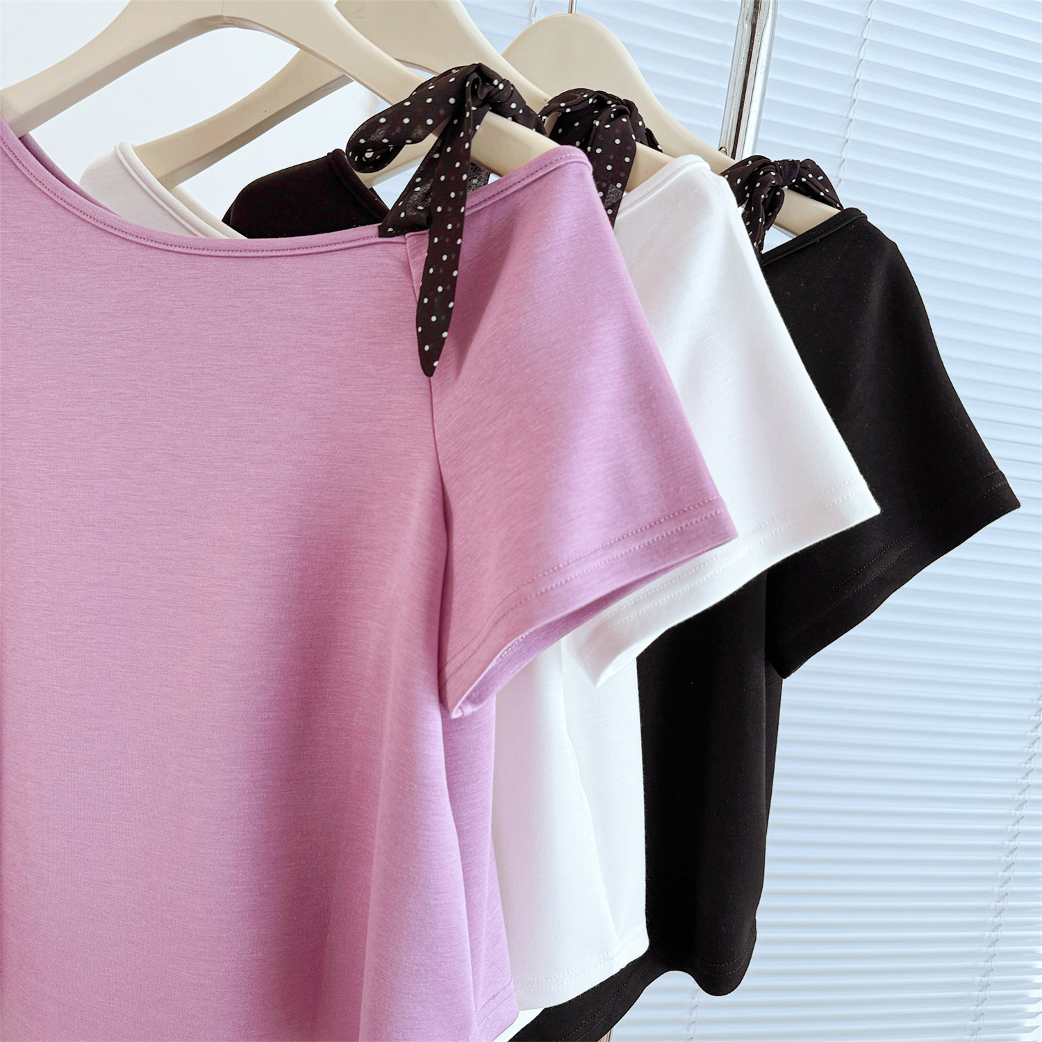 RY2456# 实拍大码女韩版高级感潮流斜肩绑带不规则下摆设计感显瘦宽松上衣