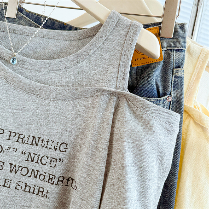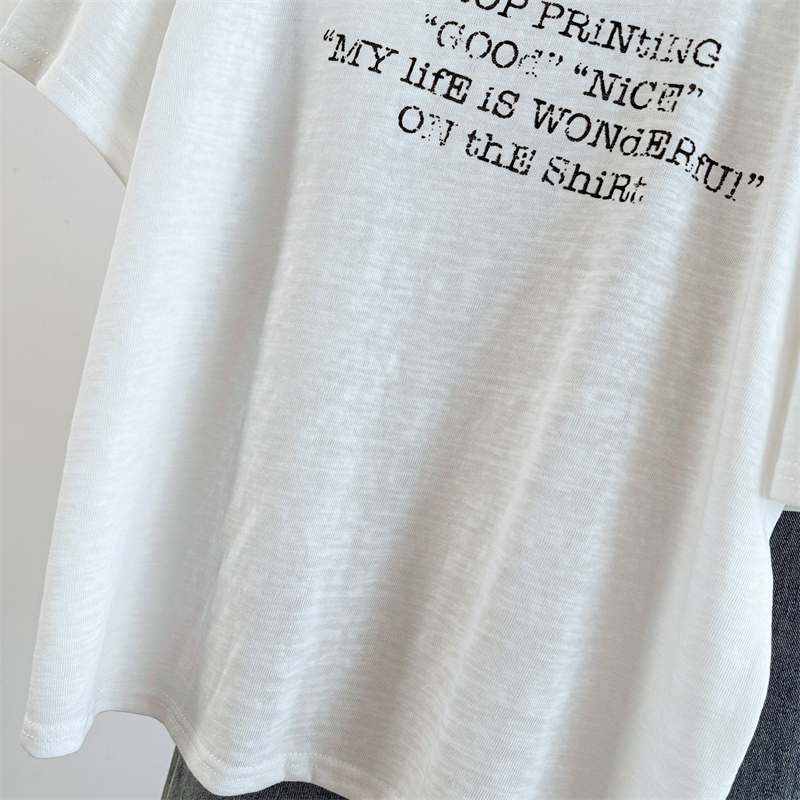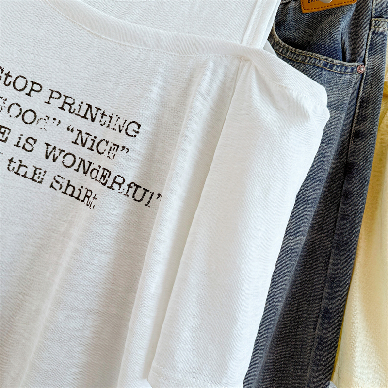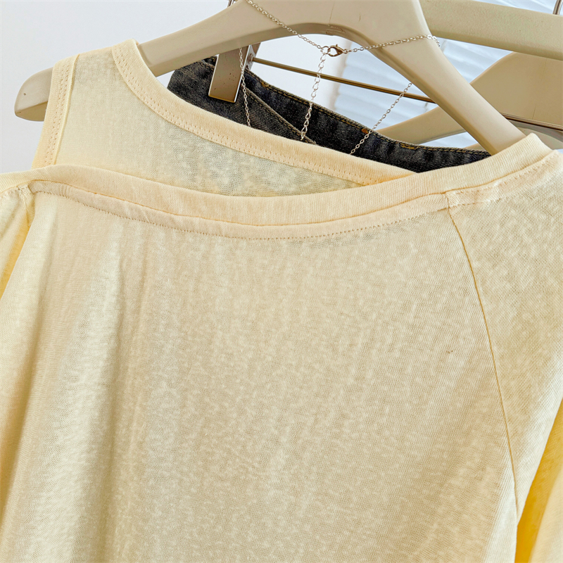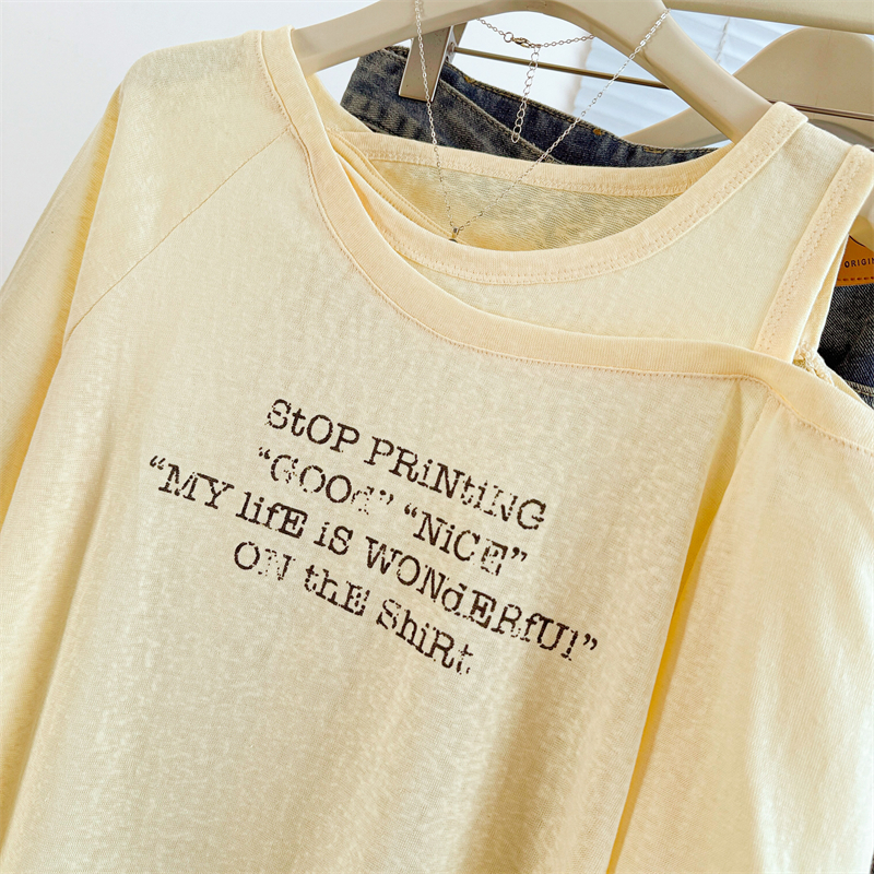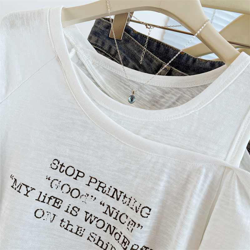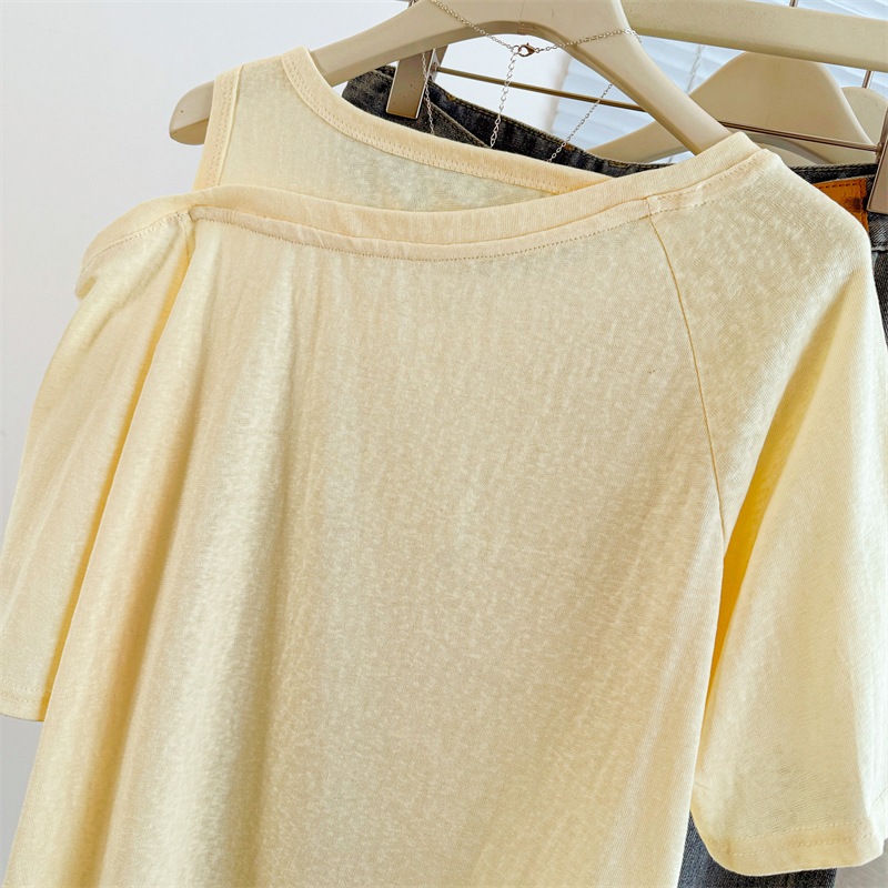 RY2459# 实拍大码女装夏季新款露肩设计字母百搭针织棉T宽松显瘦休闲上衣